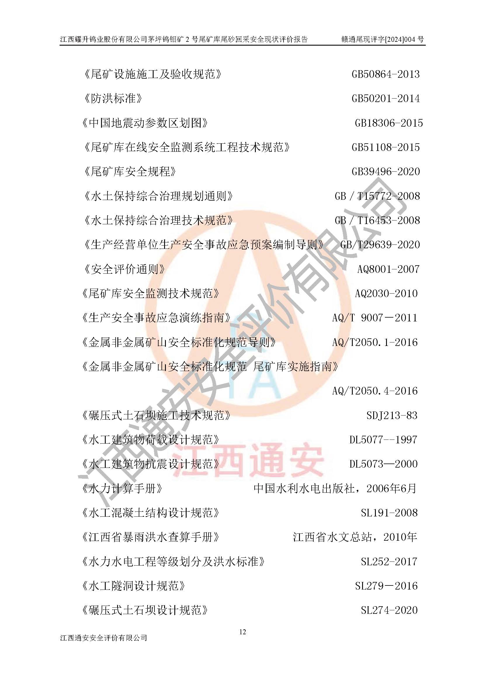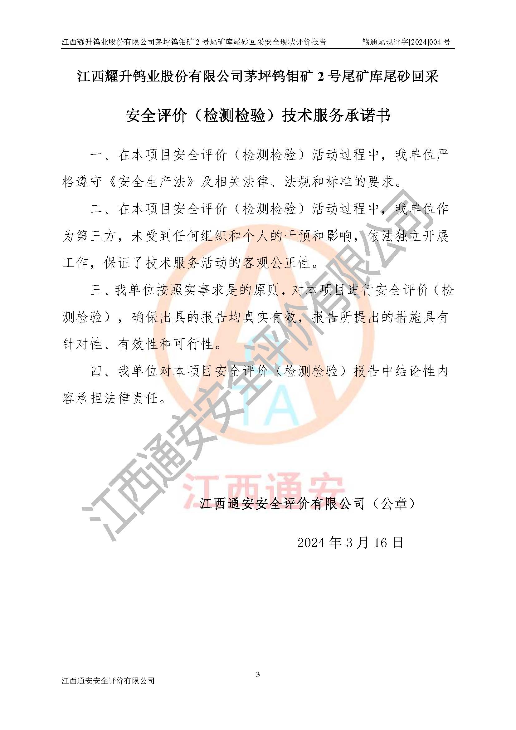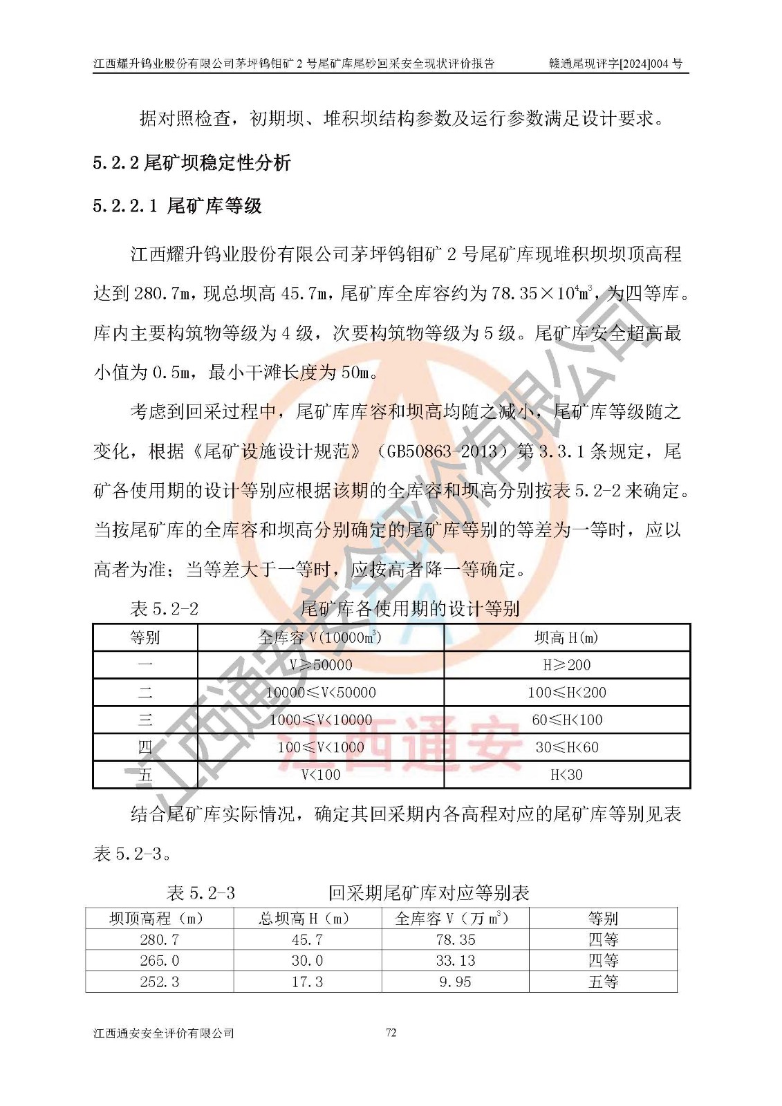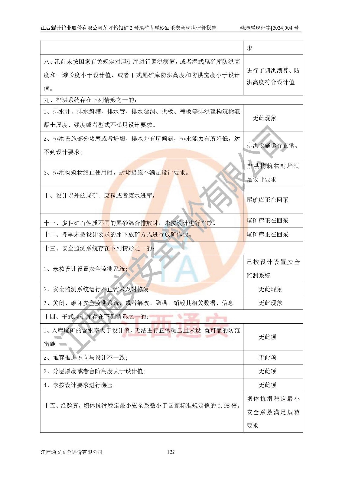 評價報告名稱 | 江西耀升鎢業(yè)股份有限公司茅坪鎢鉬礦2號尾礦庫尾砂回采安全現(xiàn)狀評價報告 | |||