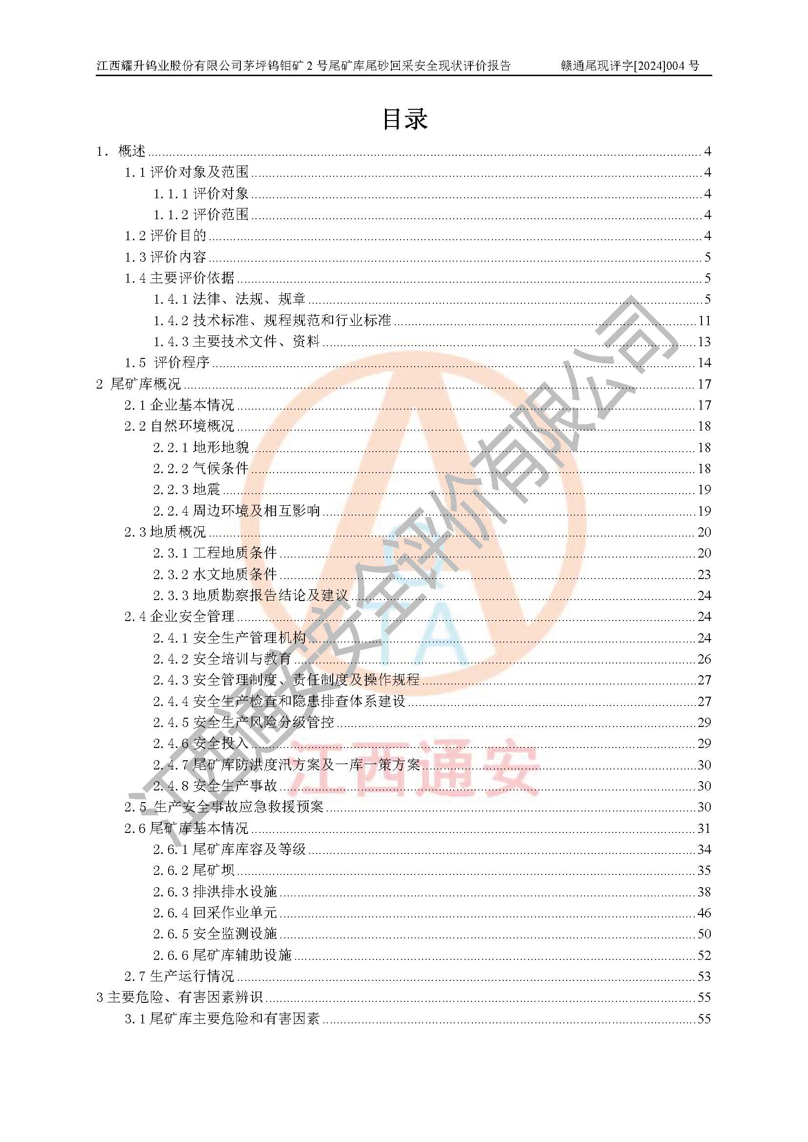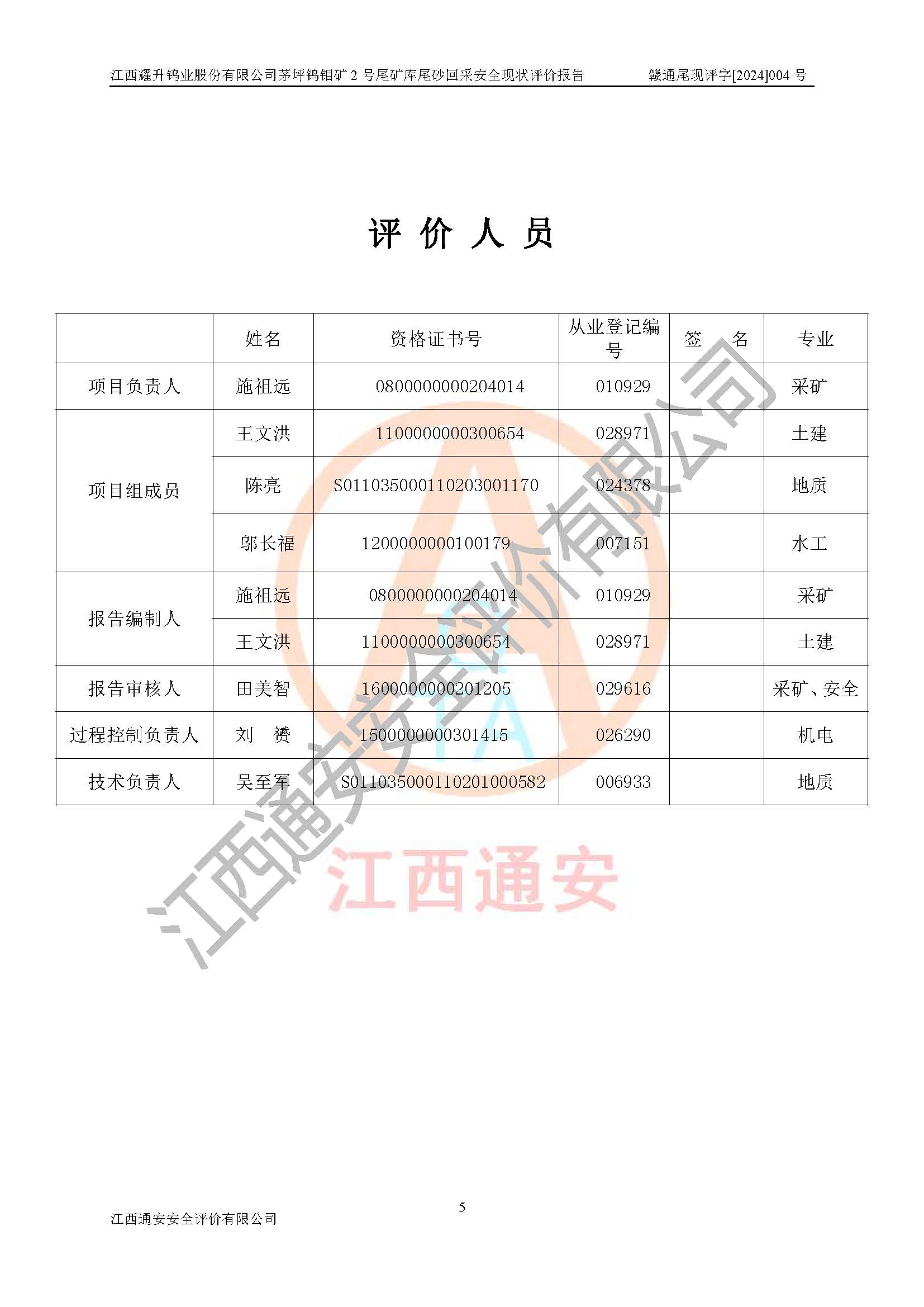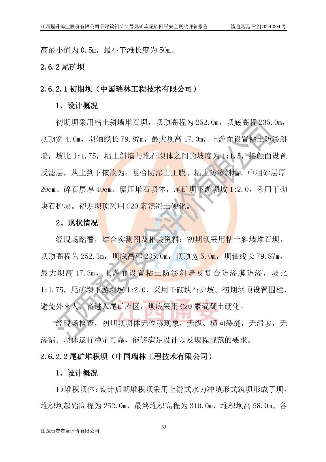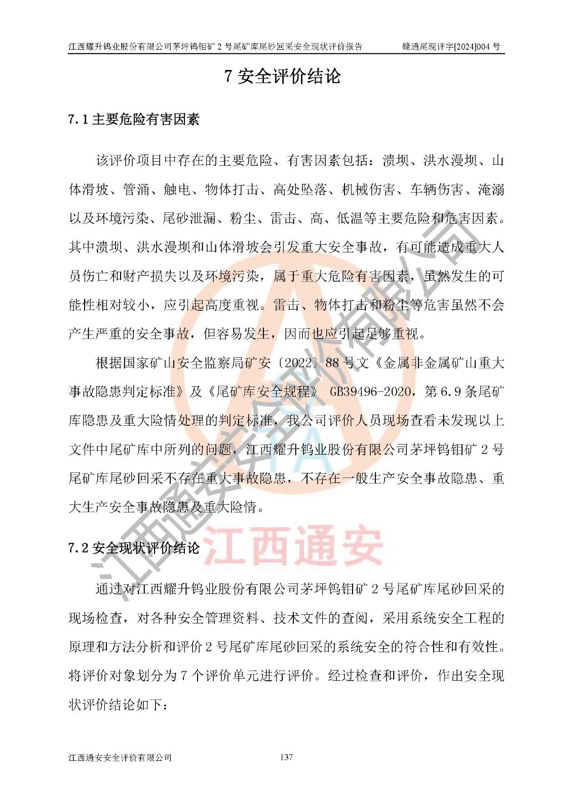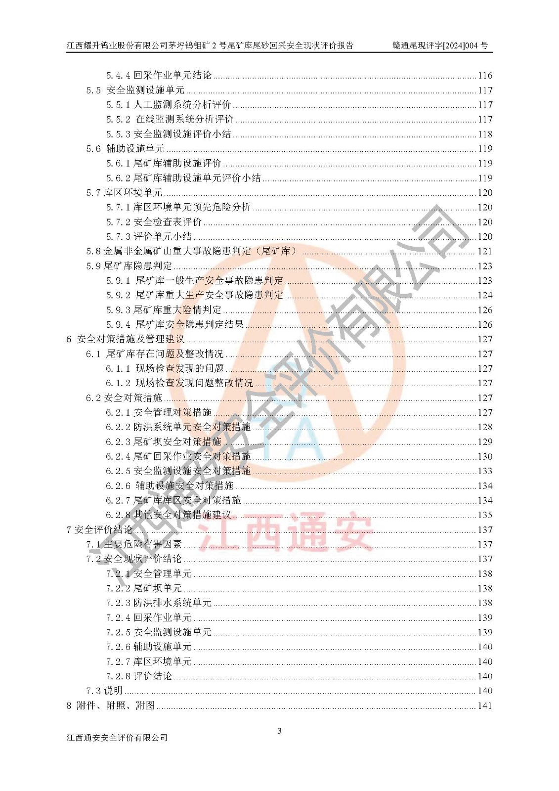 評價報告名稱 | 江西耀升鎢業(yè)股份有限公司茅坪鎢鉬礦2號尾礦庫尾砂回采安全現(xiàn)狀評價報告 | |||