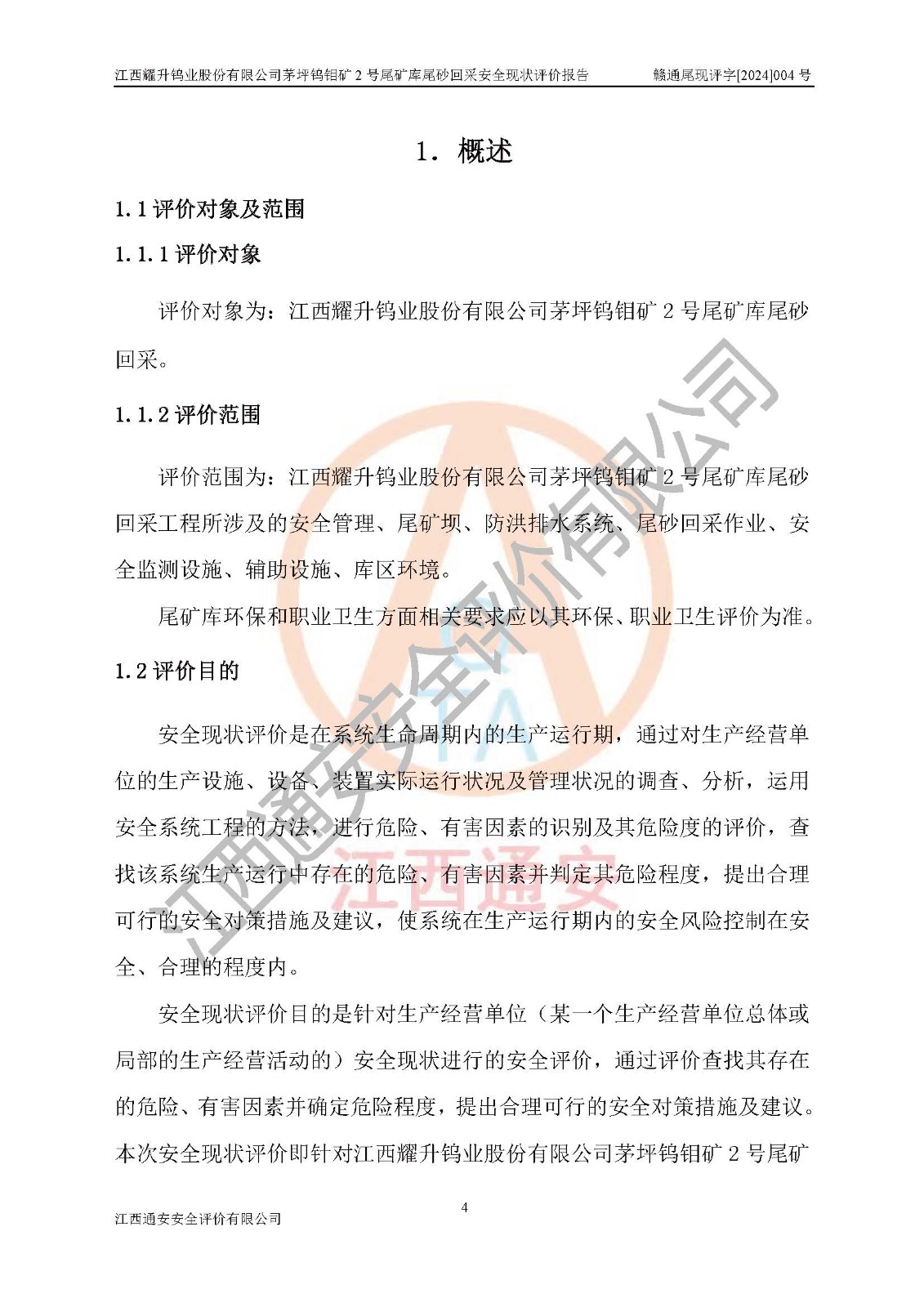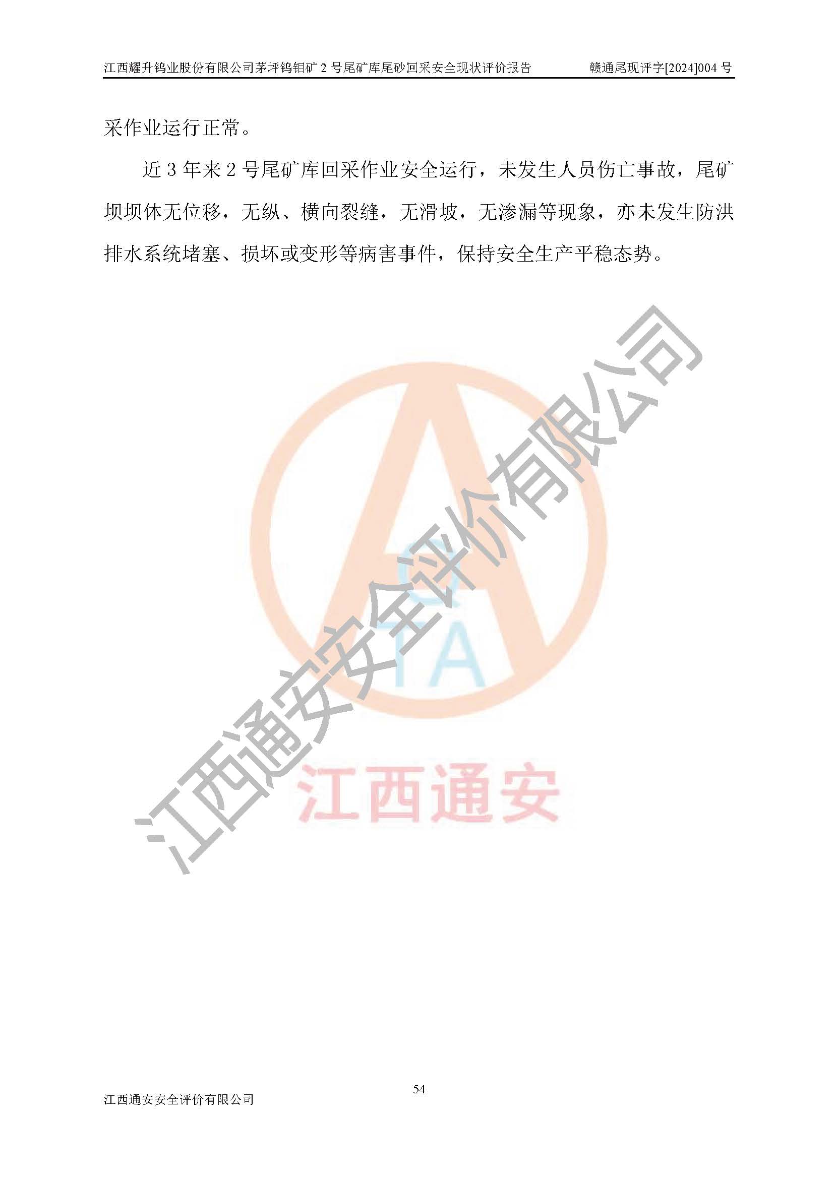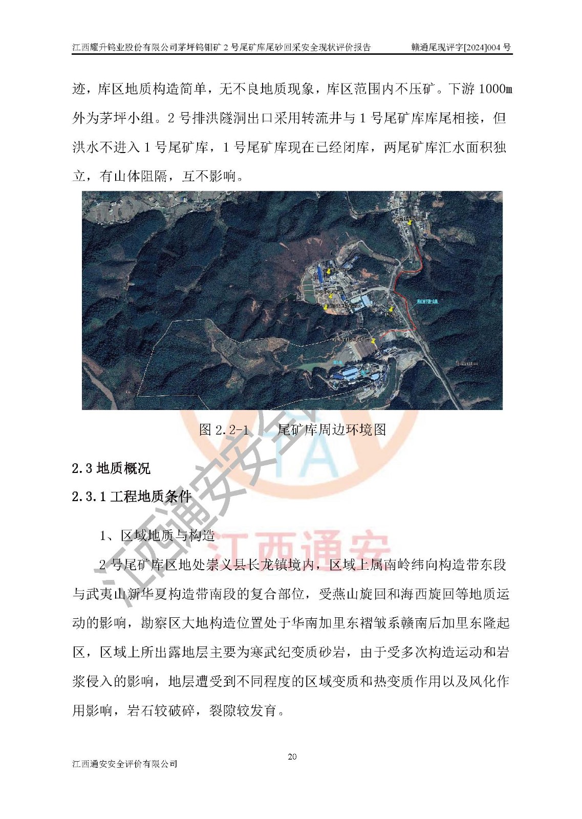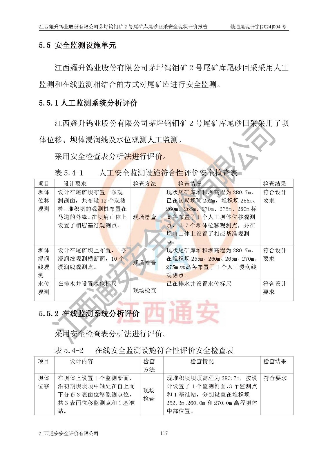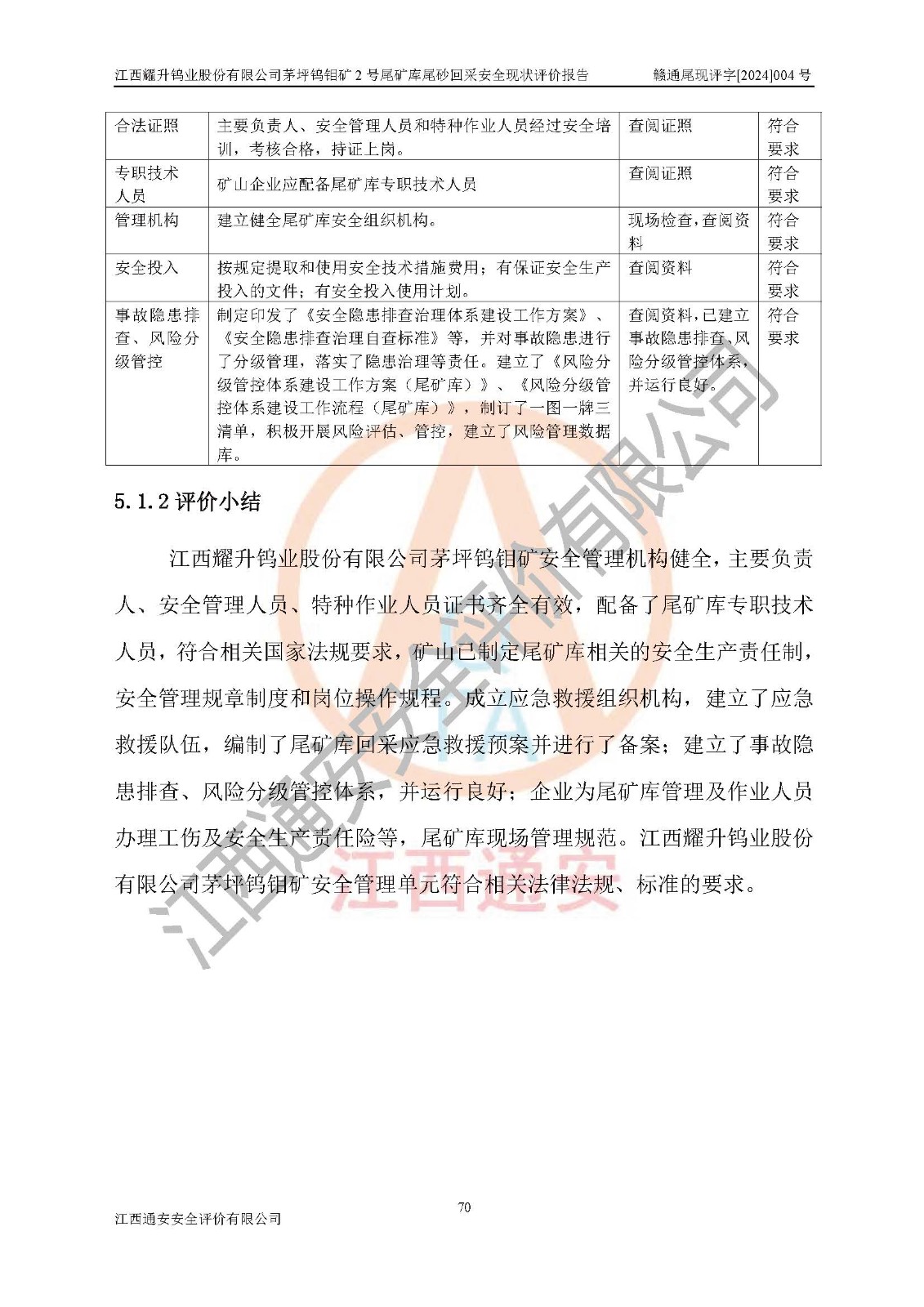 評價報告名稱 | 江西耀升鎢業(yè)股份有限公司茅坪鎢鉬礦2號尾礦庫尾砂回采安全現(xiàn)狀評價報告 | |||