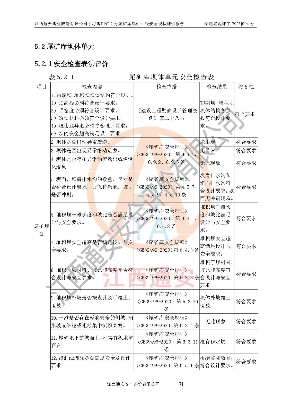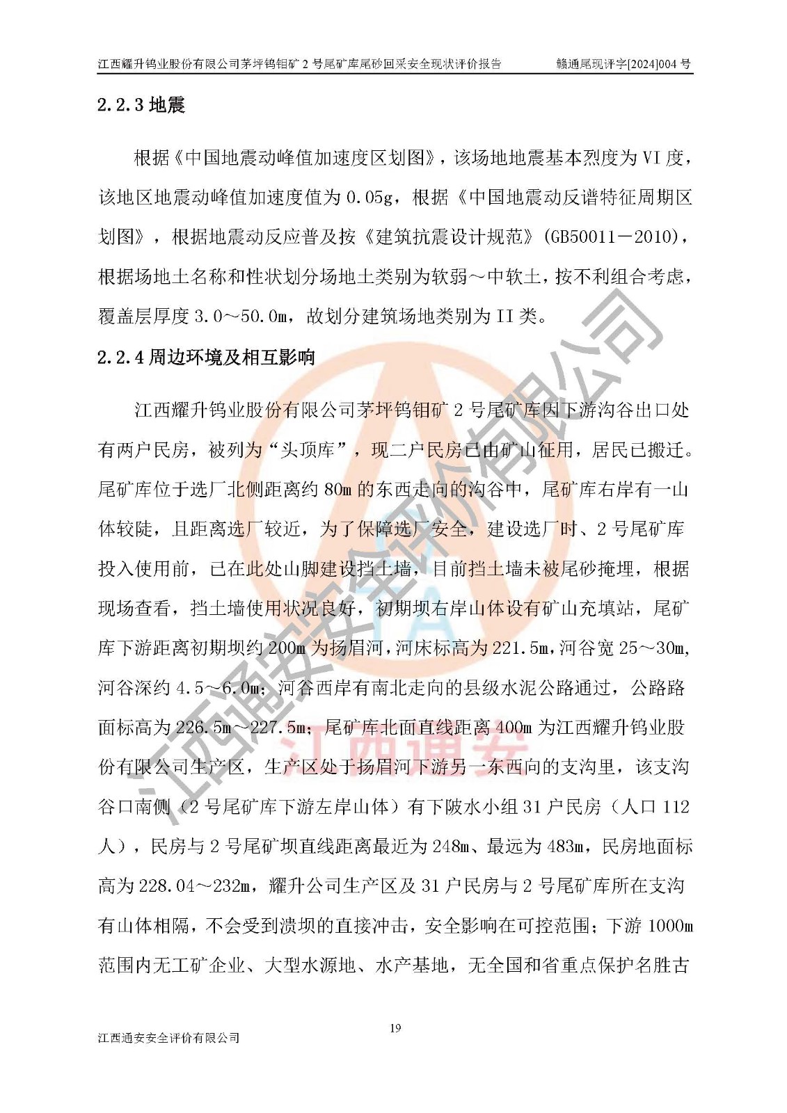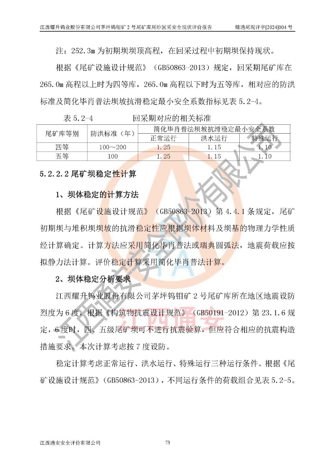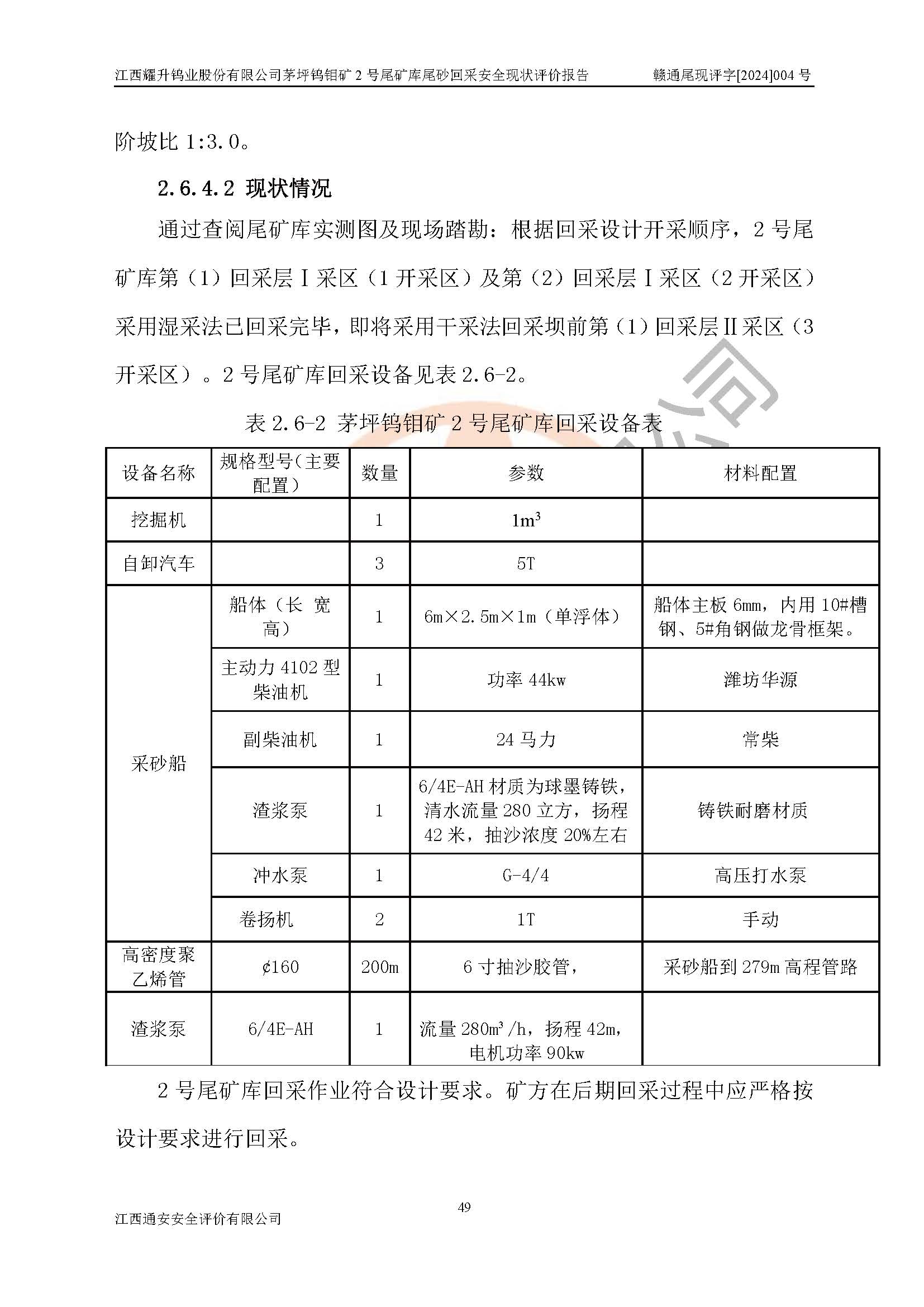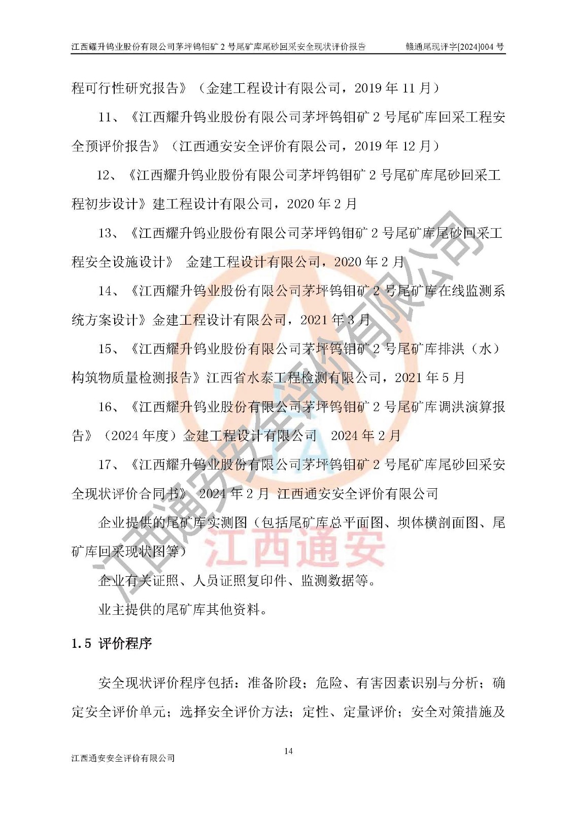 評價報告名稱 | 江西耀升鎢業(yè)股份有限公司茅坪鎢鉬礦2號尾礦庫尾砂回采安全現(xiàn)狀評價報告 | |||