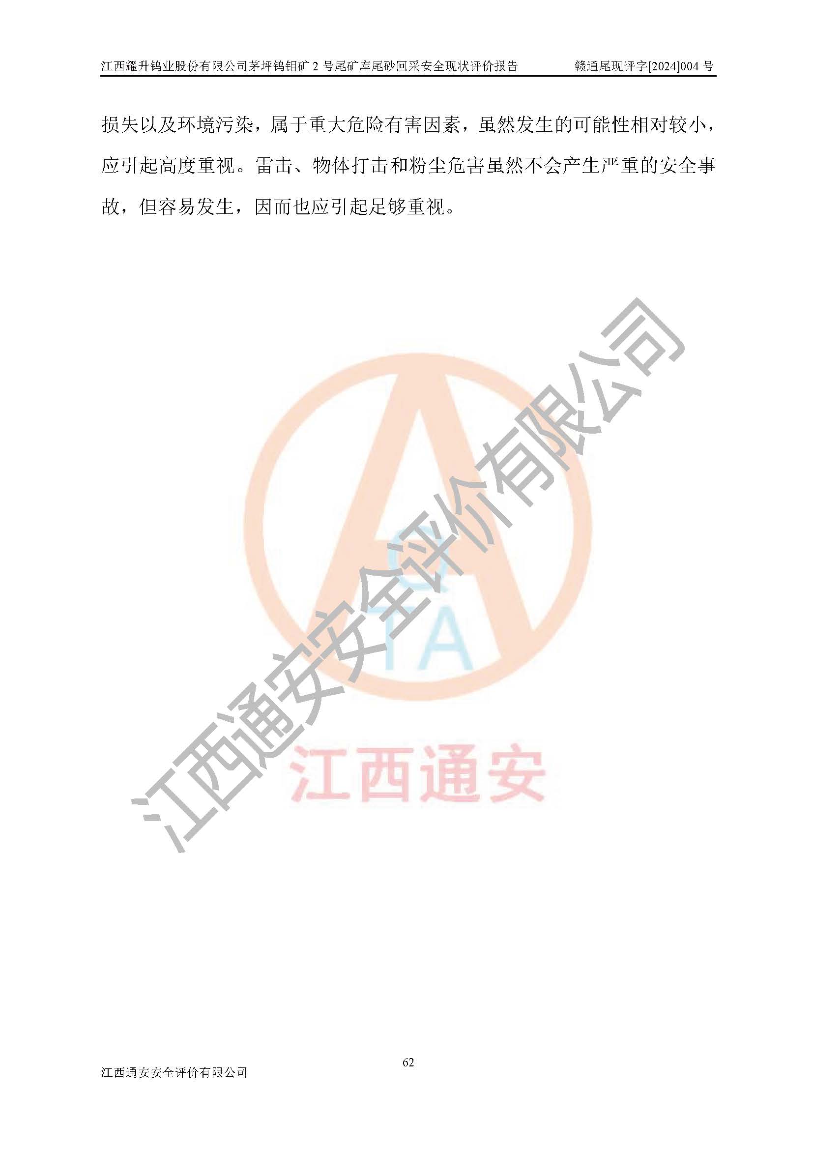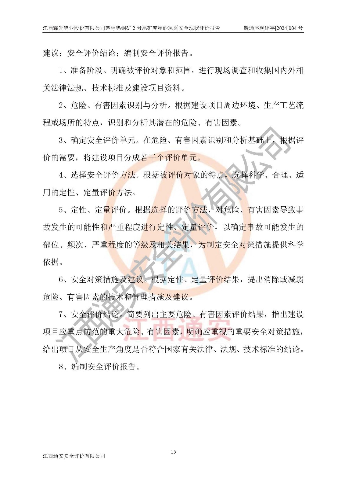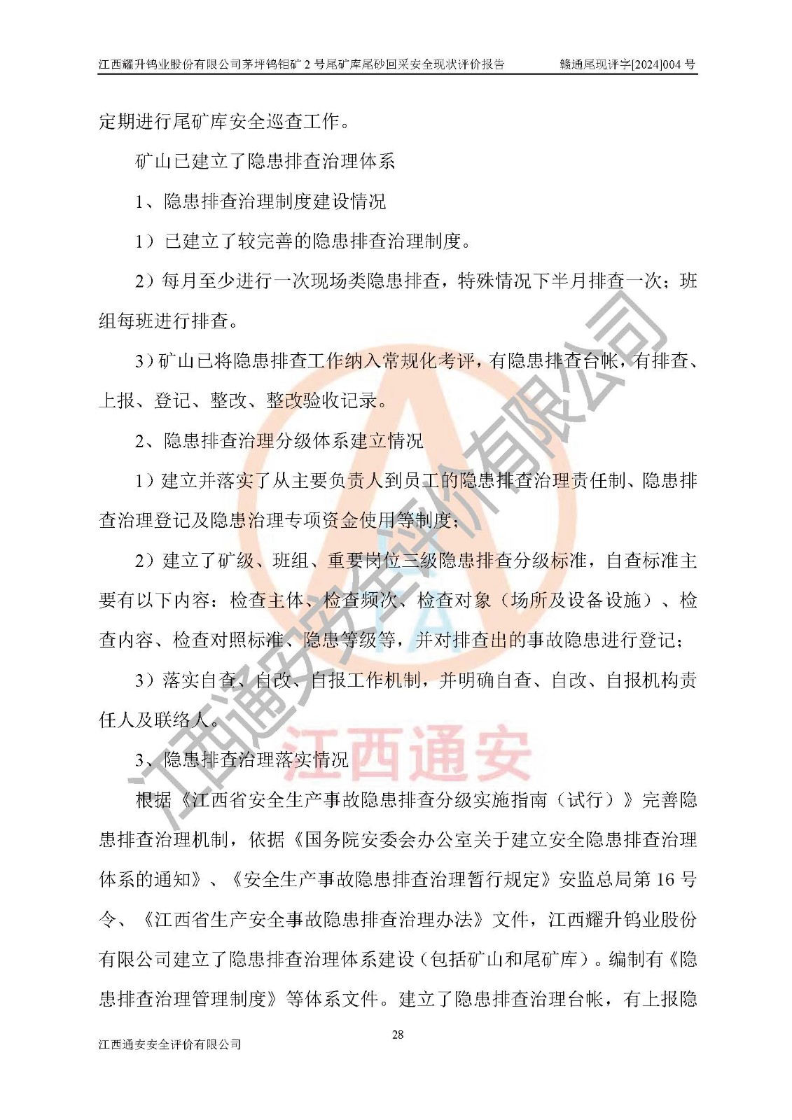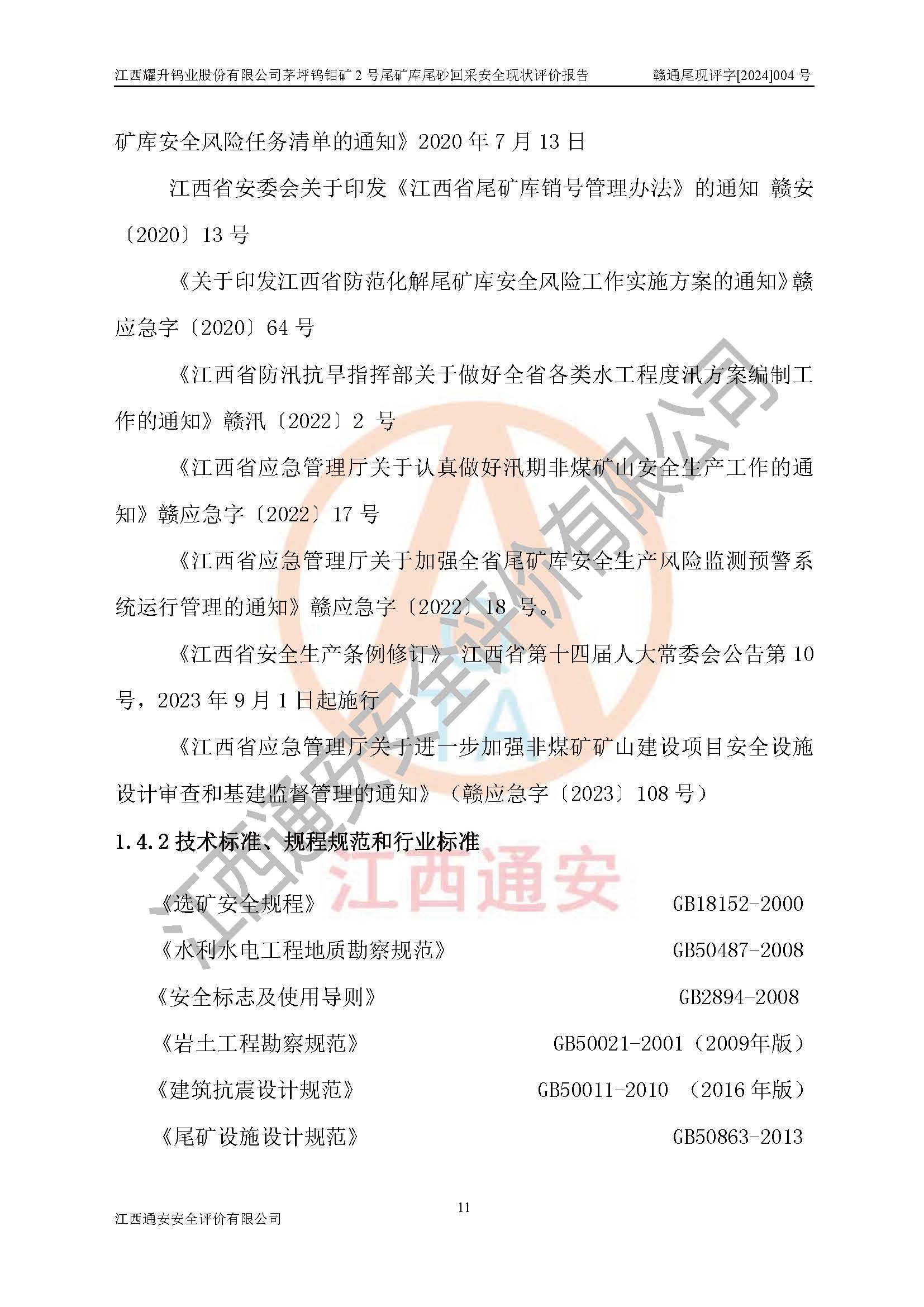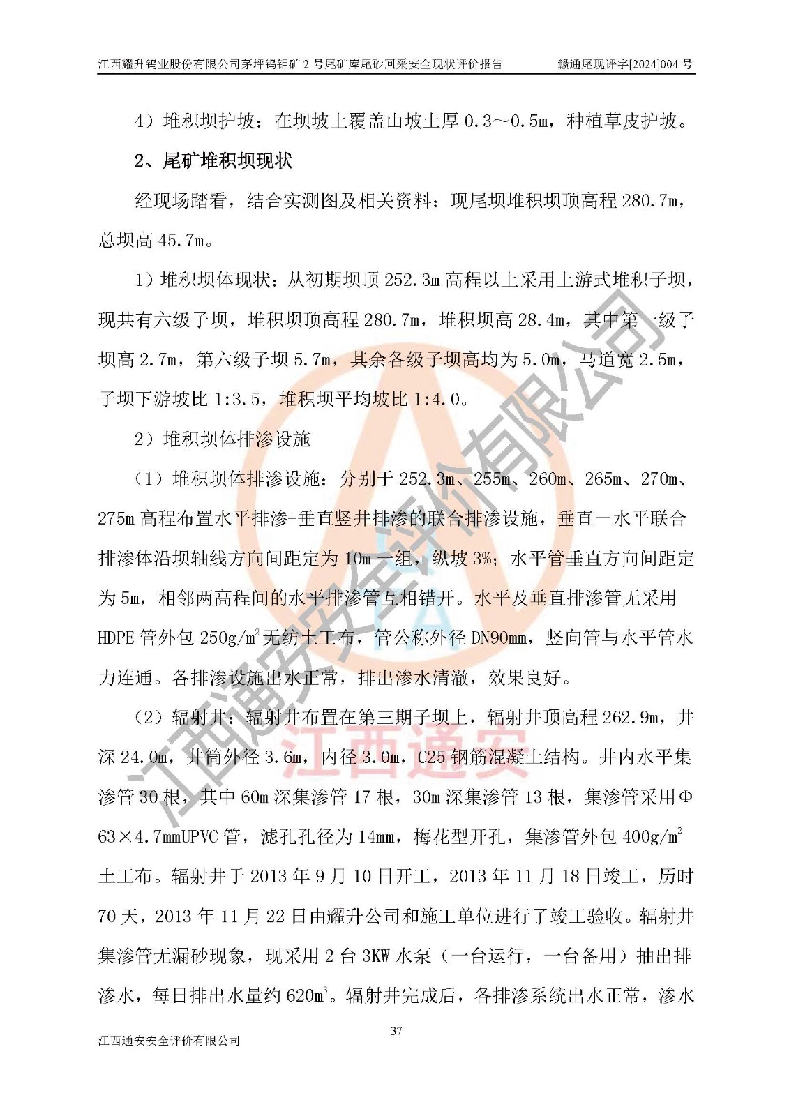 評價報告名稱 | 江西耀升鎢業(yè)股份有限公司茅坪鎢鉬礦2號尾礦庫尾砂回采安全現(xiàn)狀評價報告 | |||