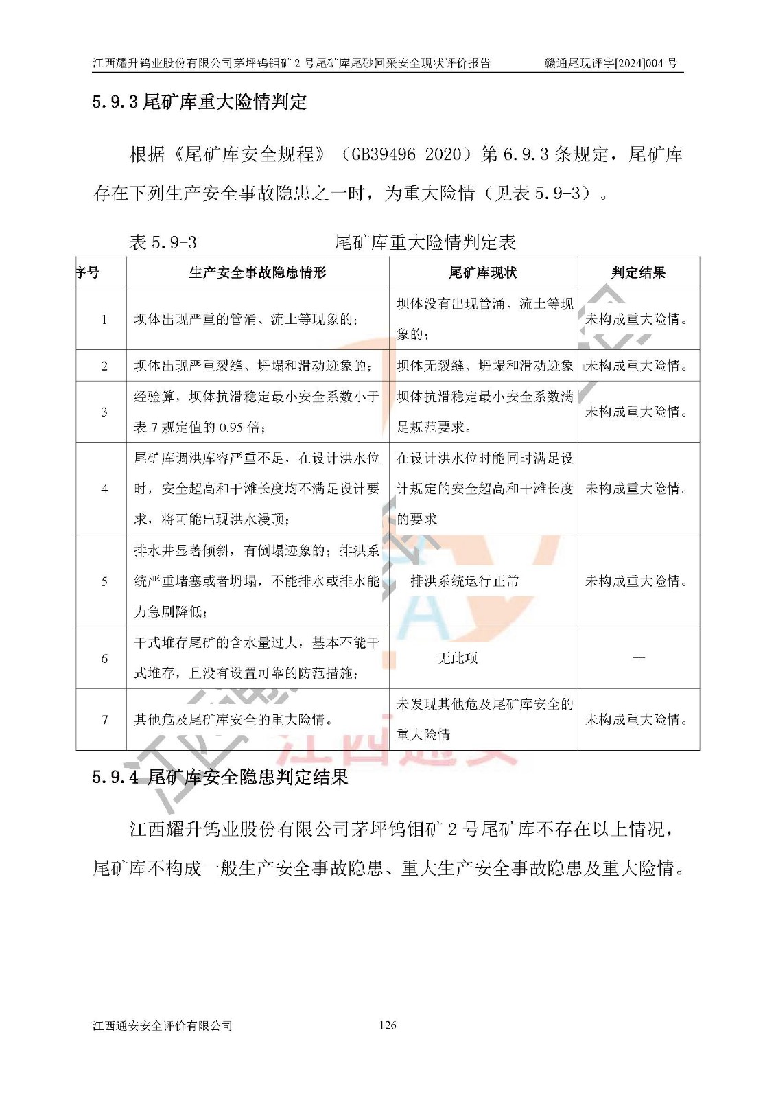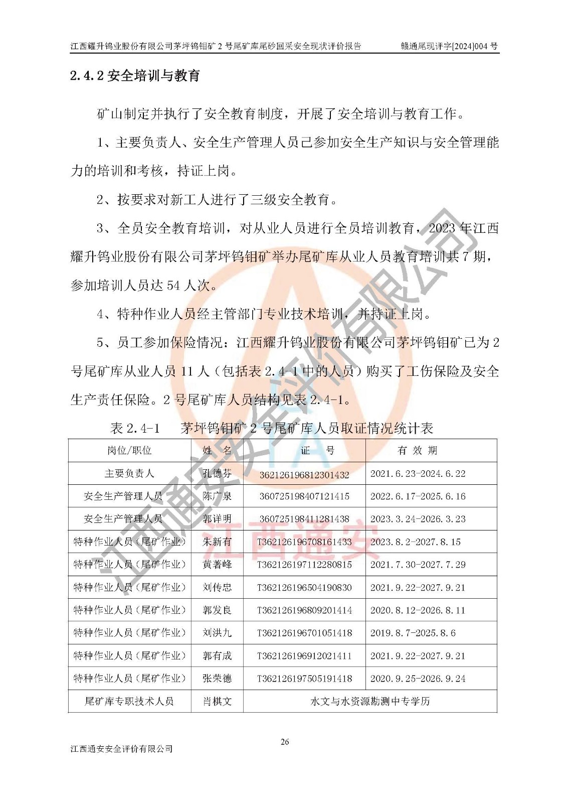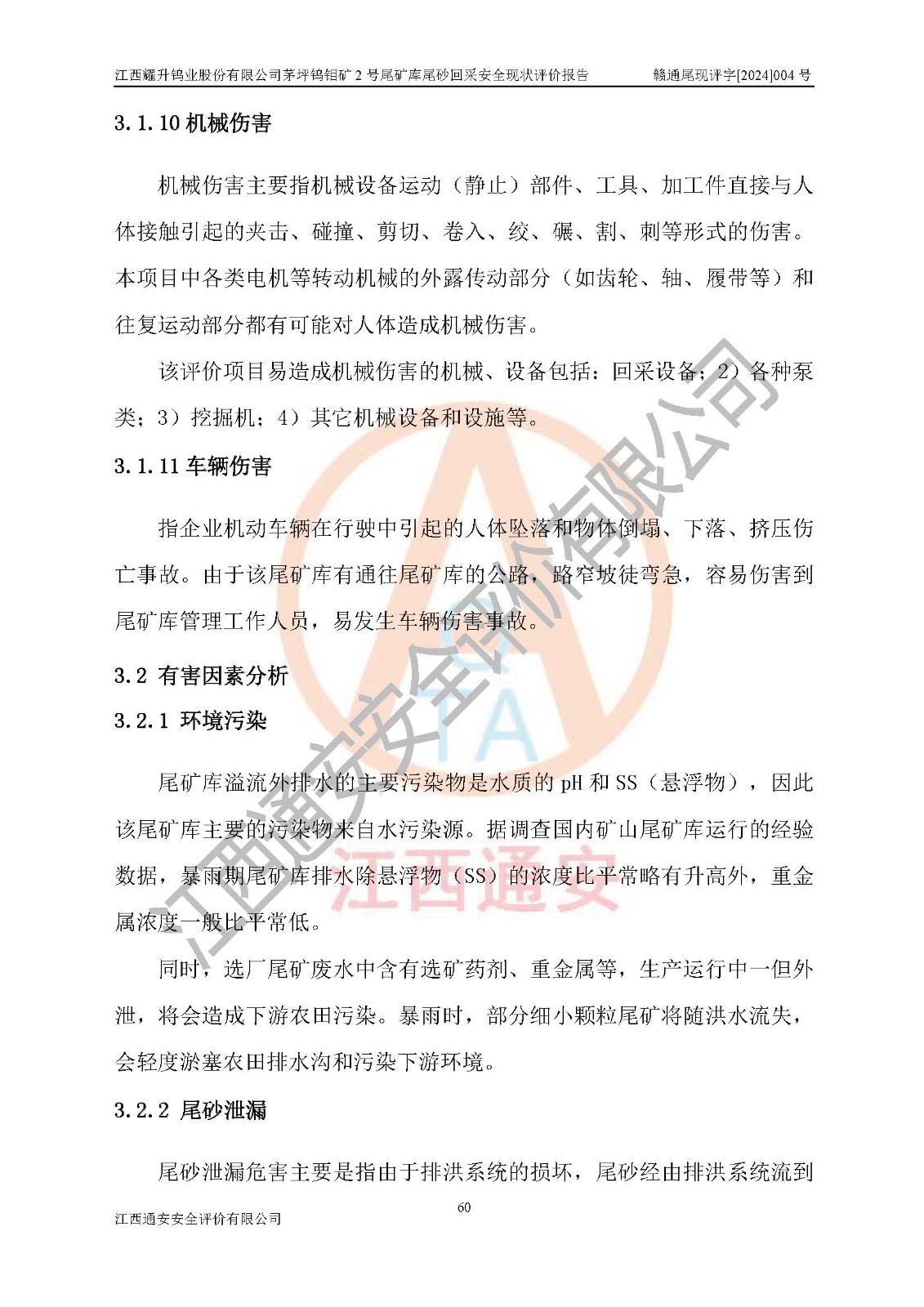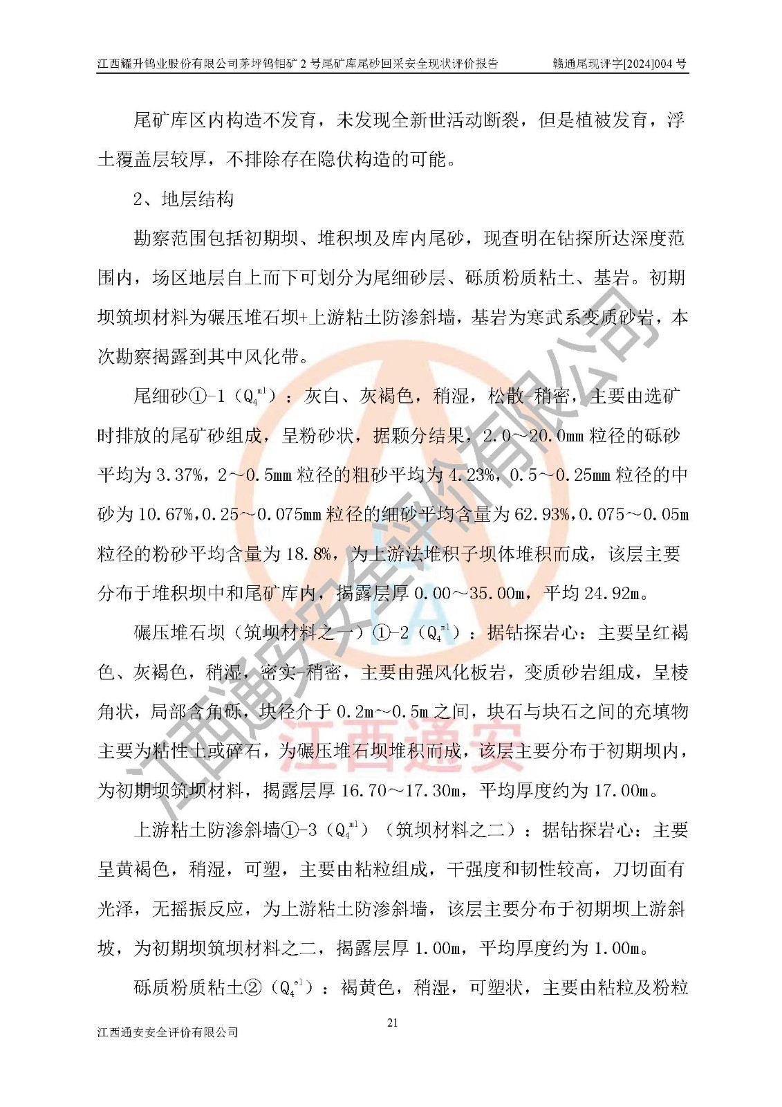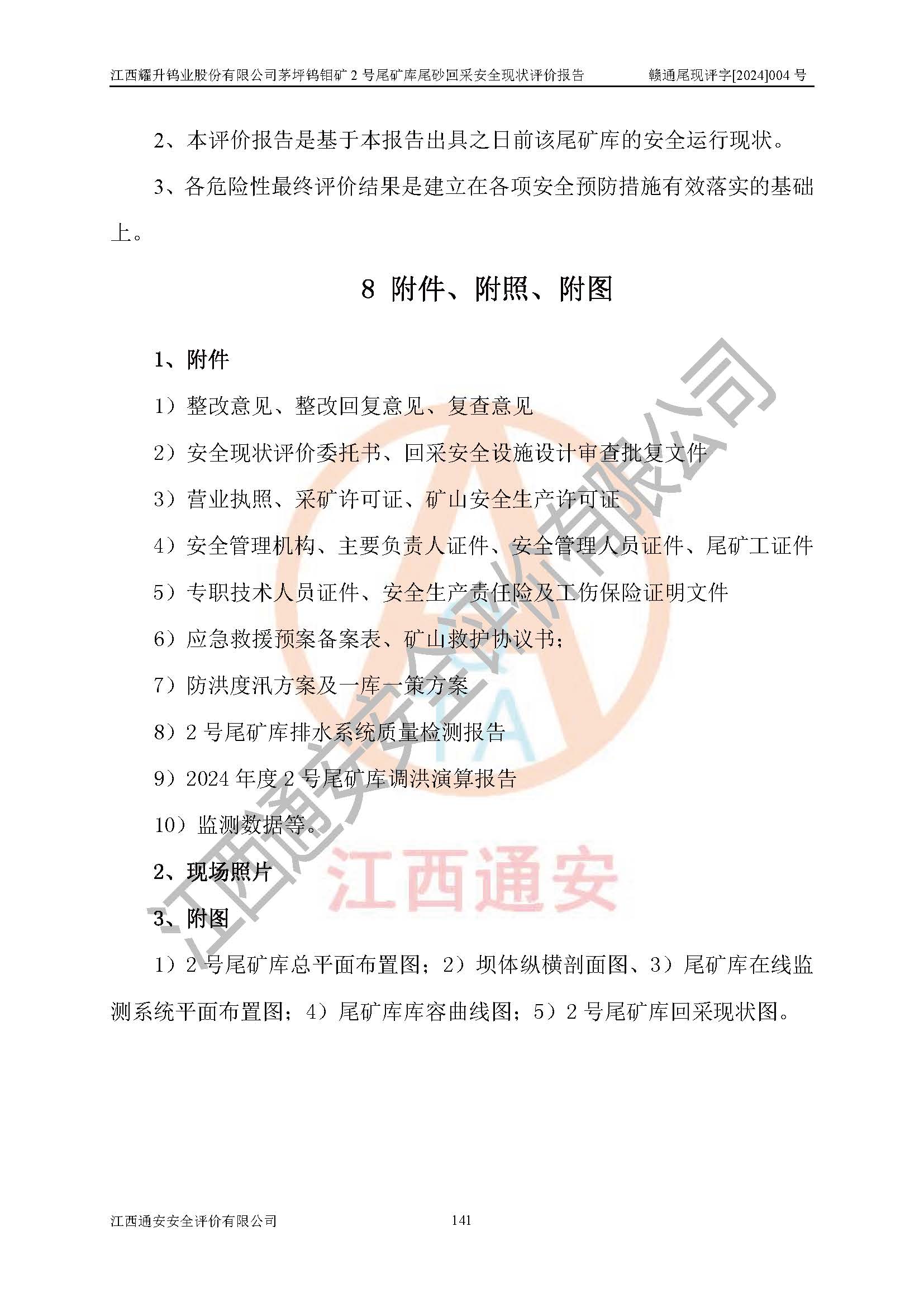 評價報告名稱 | 江西耀升鎢業(yè)股份有限公司茅坪鎢鉬礦2號尾礦庫尾砂回采安全現(xiàn)狀評價報告 | |||