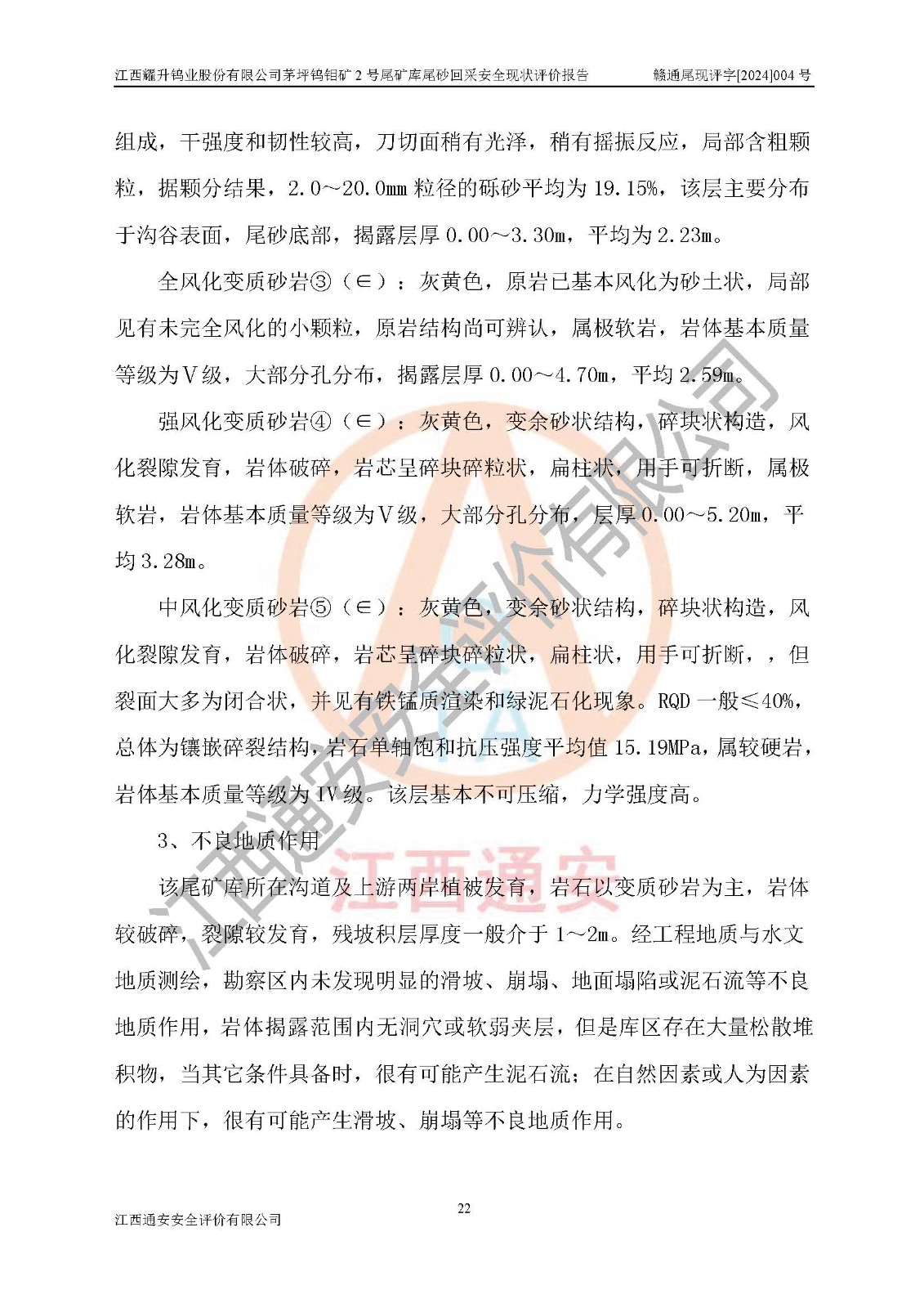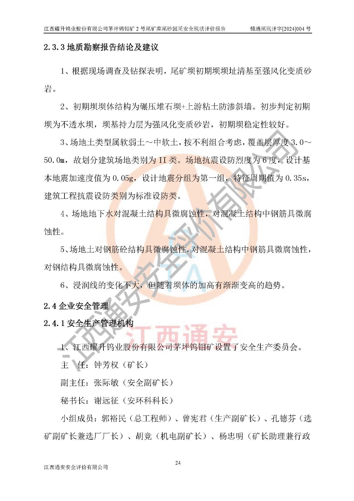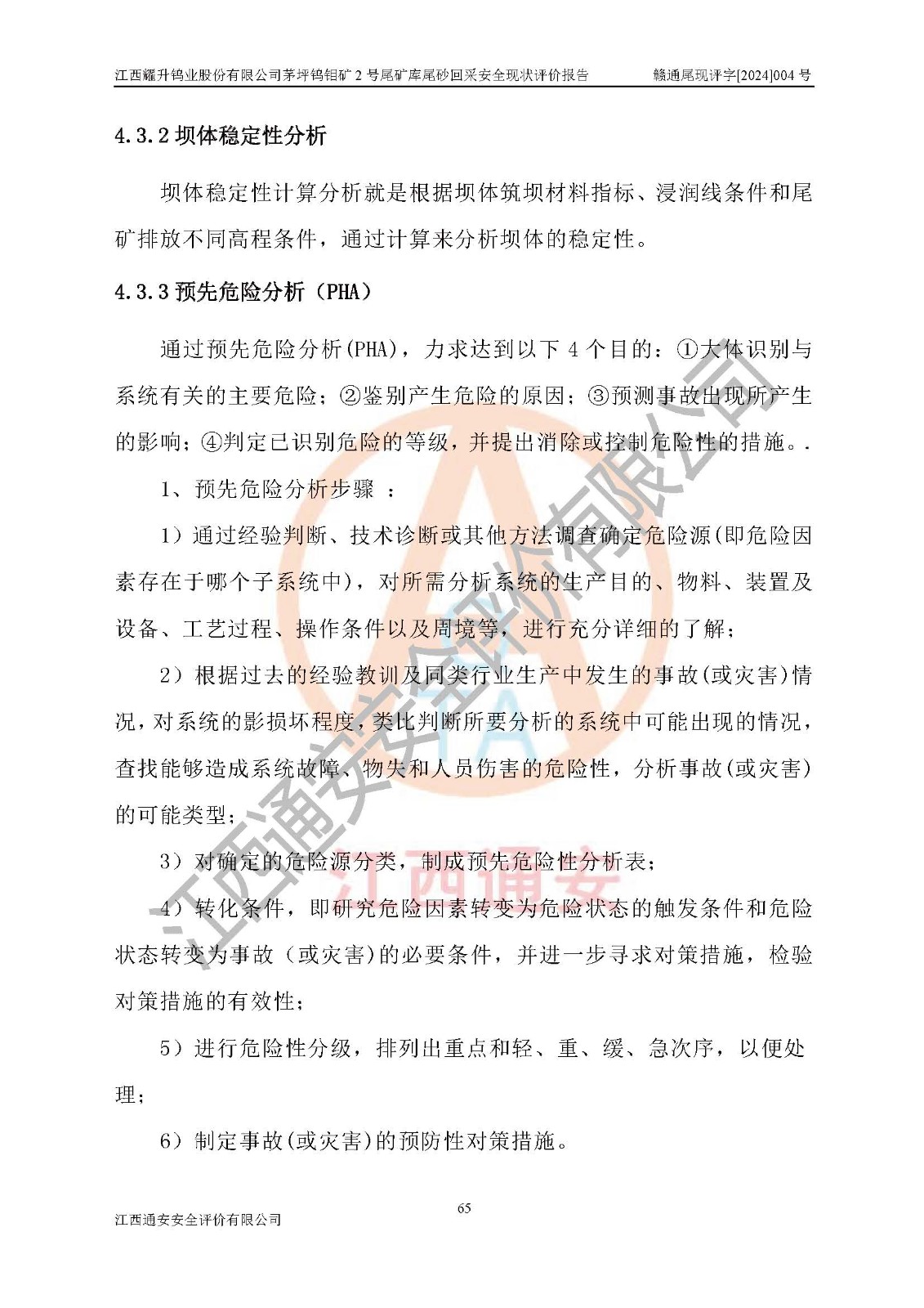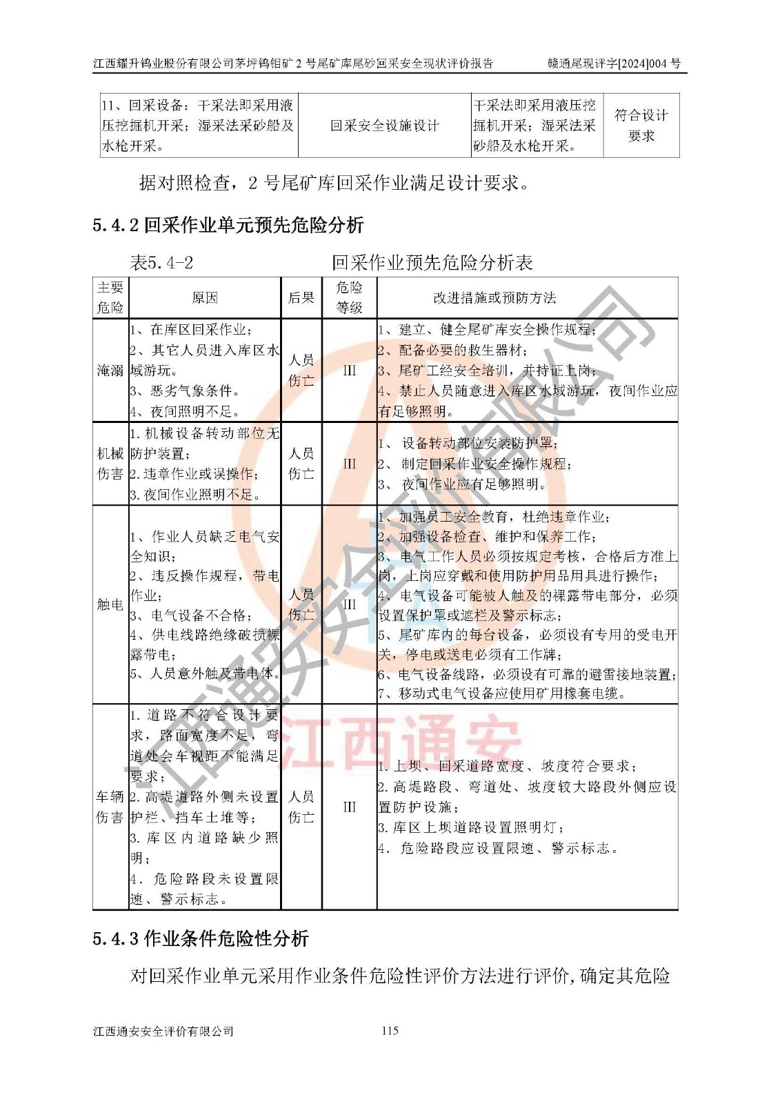 評價報告名稱 | 江西耀升鎢業(yè)股份有限公司茅坪鎢鉬礦2號尾礦庫尾砂回采安全現(xiàn)狀評價報告 | |||