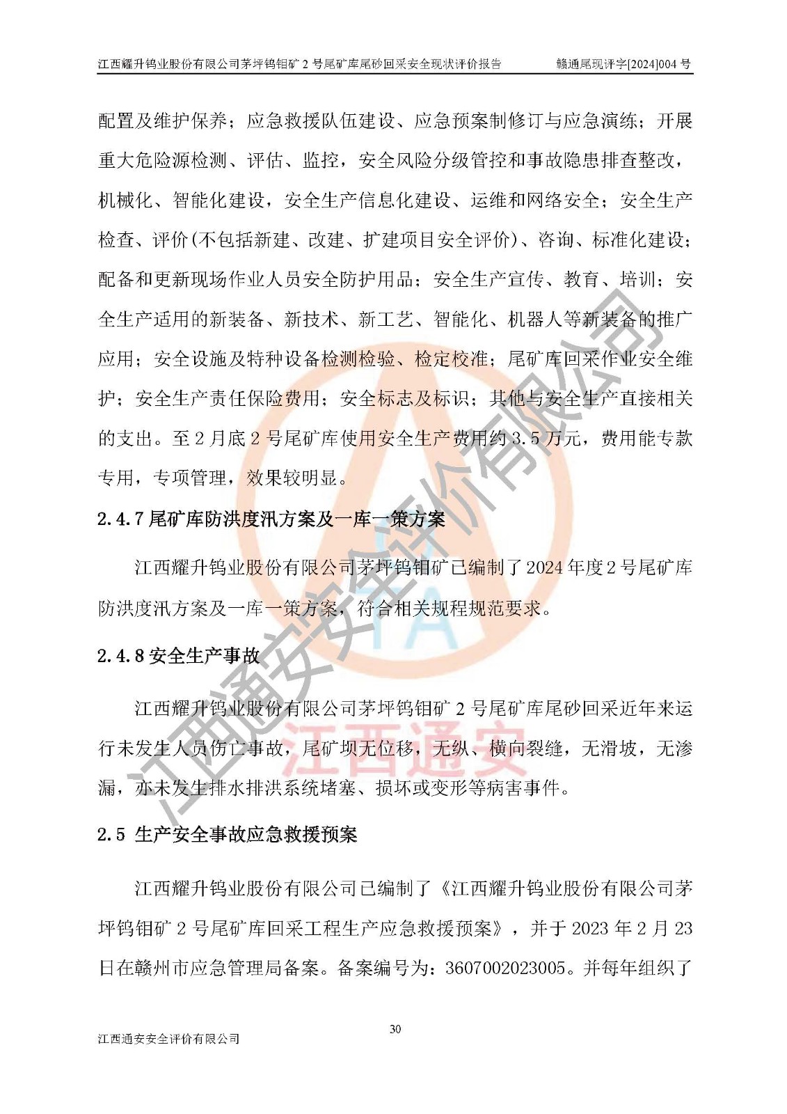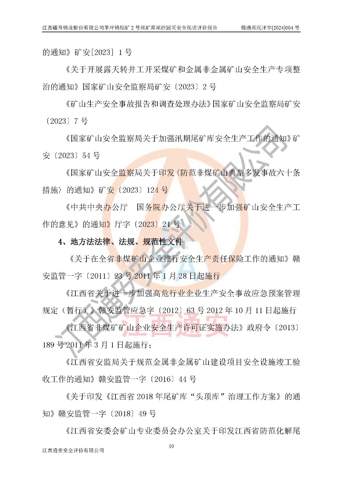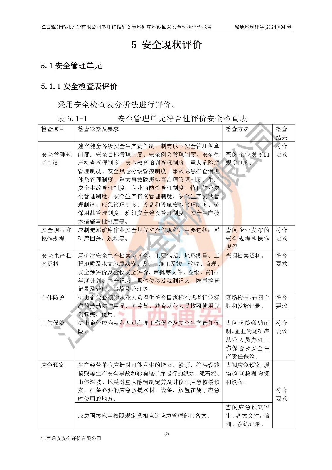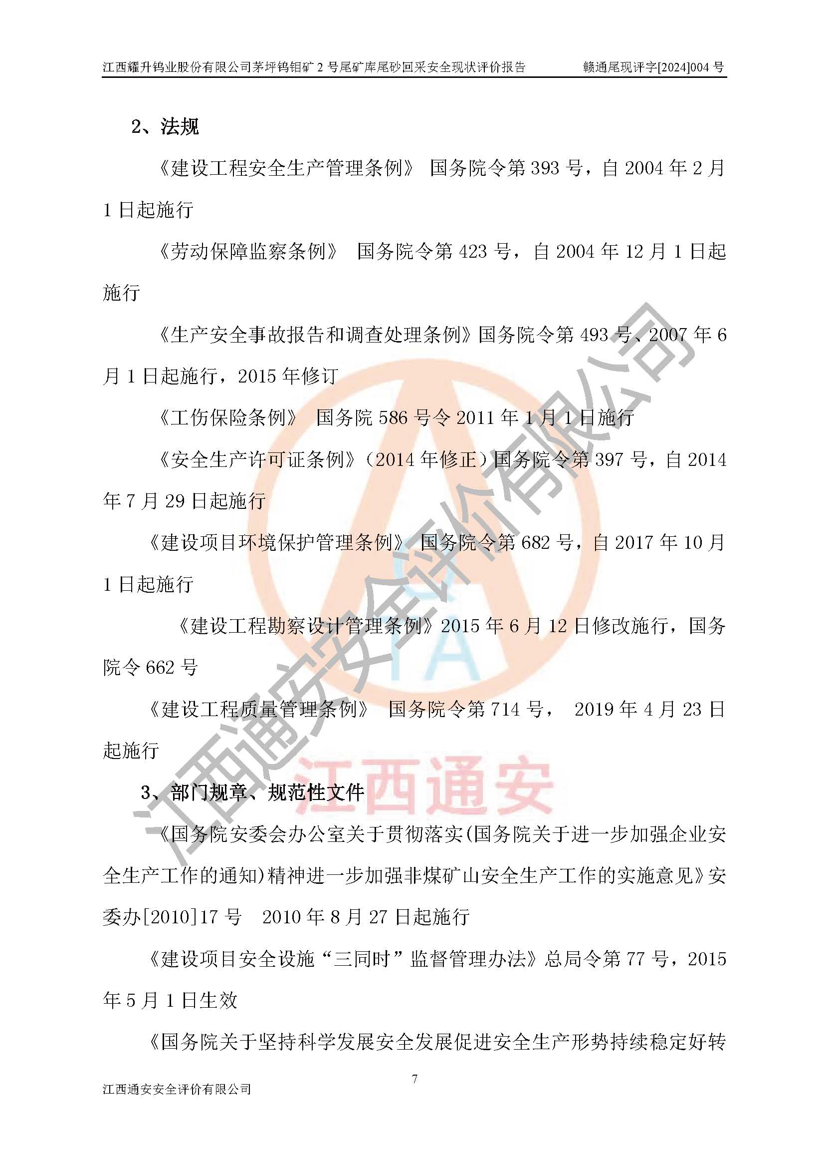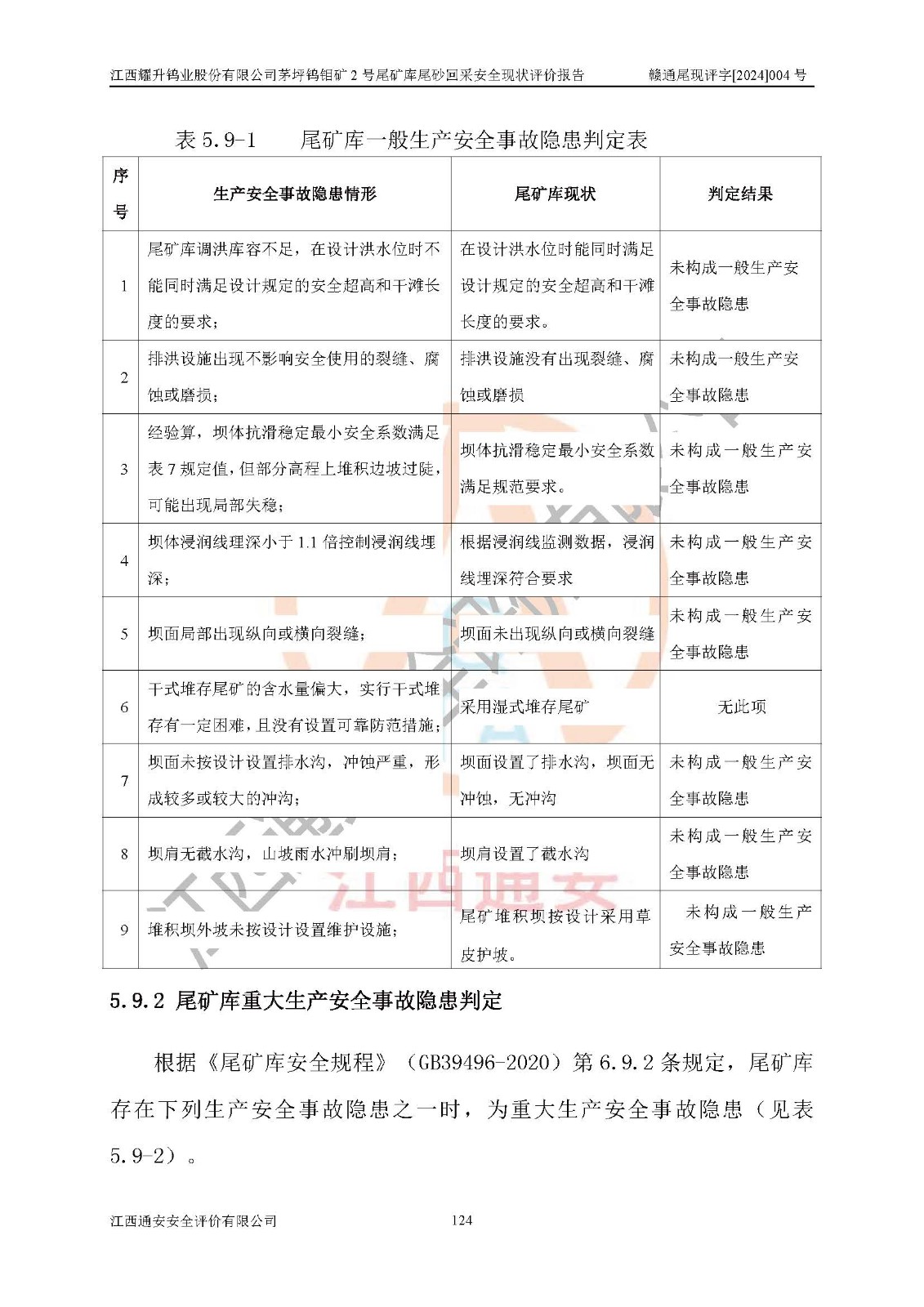 評價報告名稱 | 江西耀升鎢業(yè)股份有限公司茅坪鎢鉬礦2號尾礦庫尾砂回采安全現(xiàn)狀評價報告 | |||