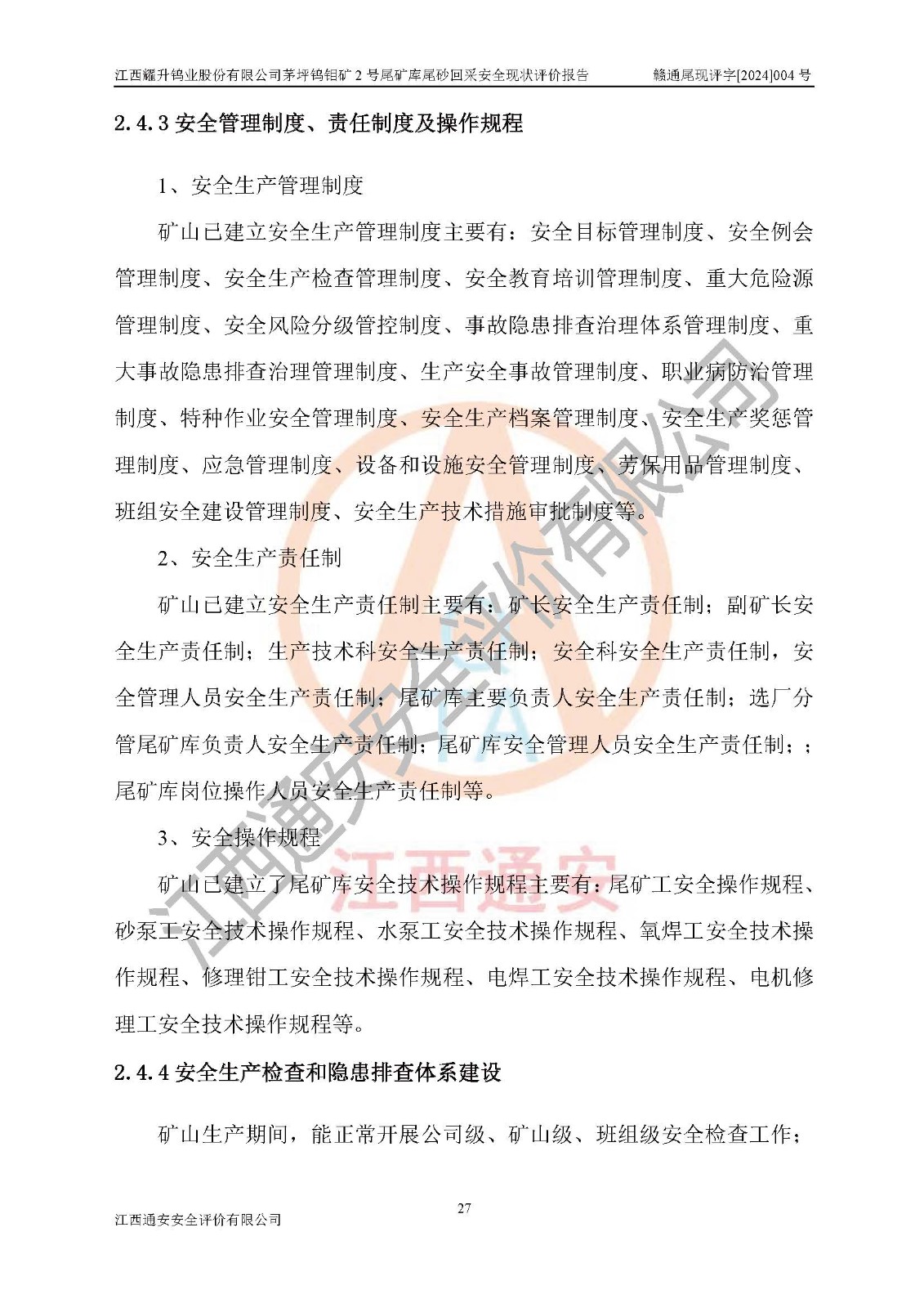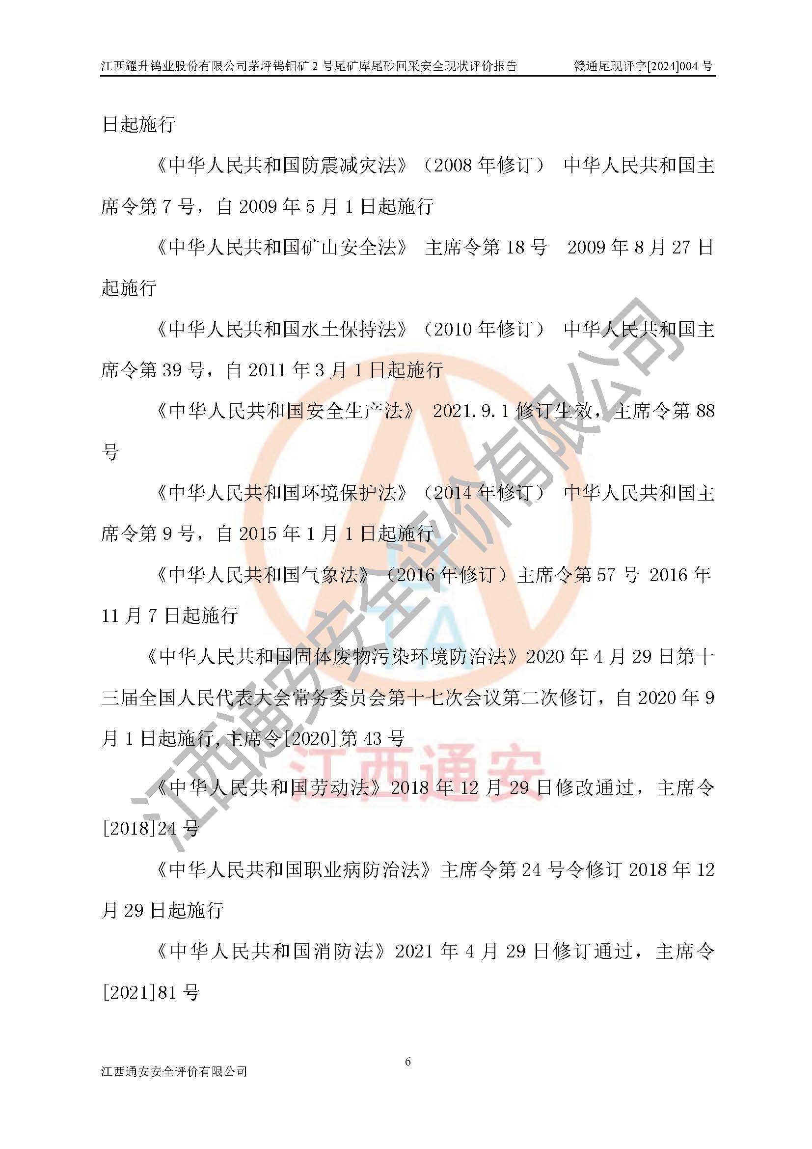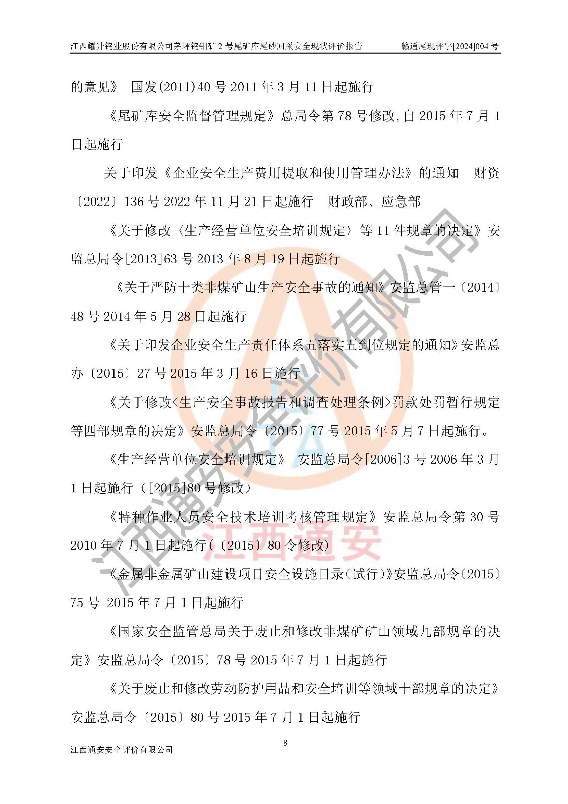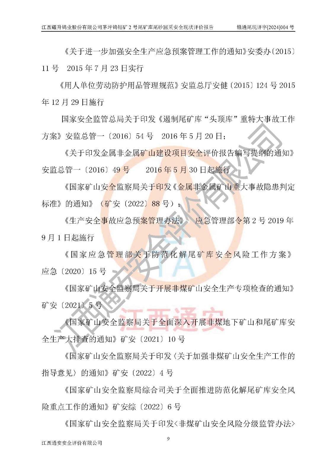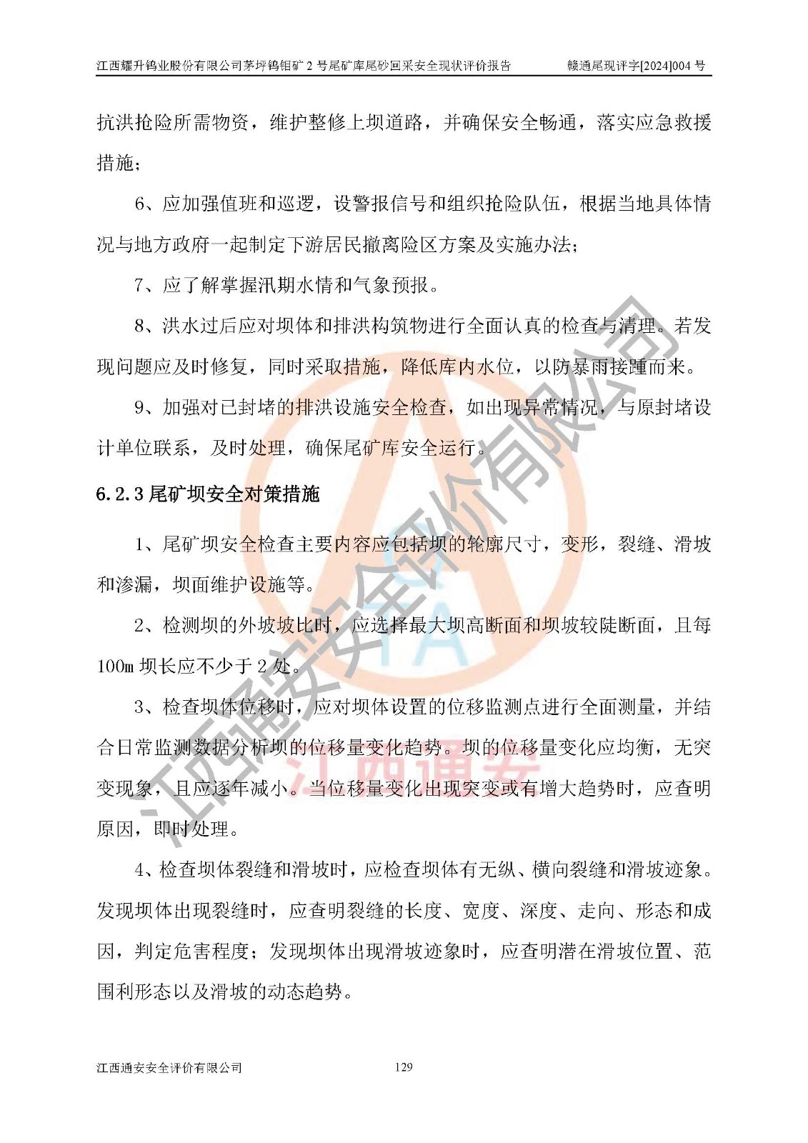 評價報告名稱 | 江西耀升鎢業(yè)股份有限公司茅坪鎢鉬礦2號尾礦庫尾砂回采安全現(xiàn)狀評價報告 | |||