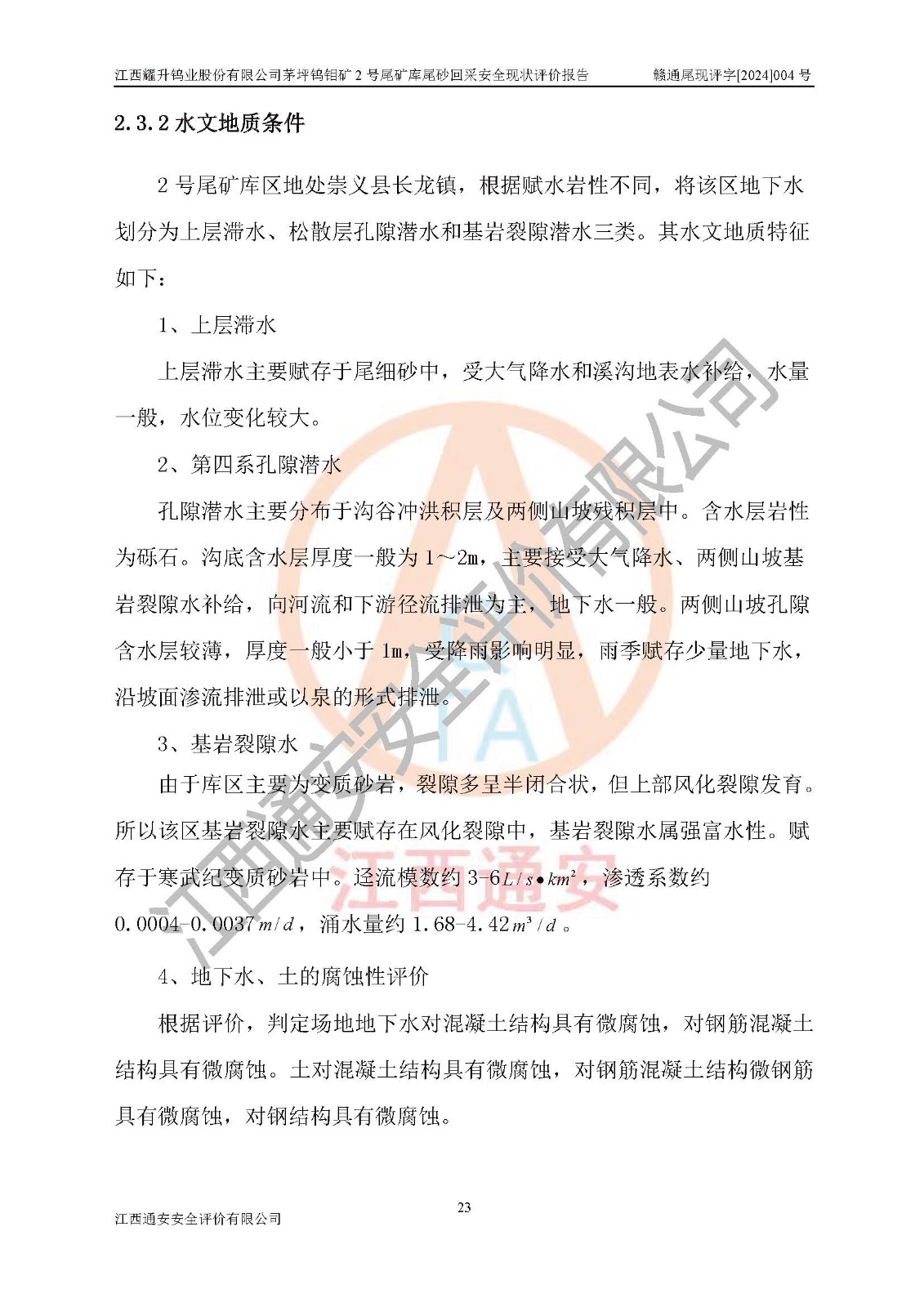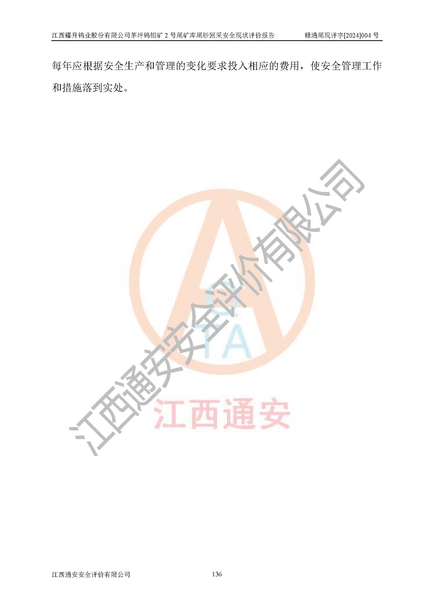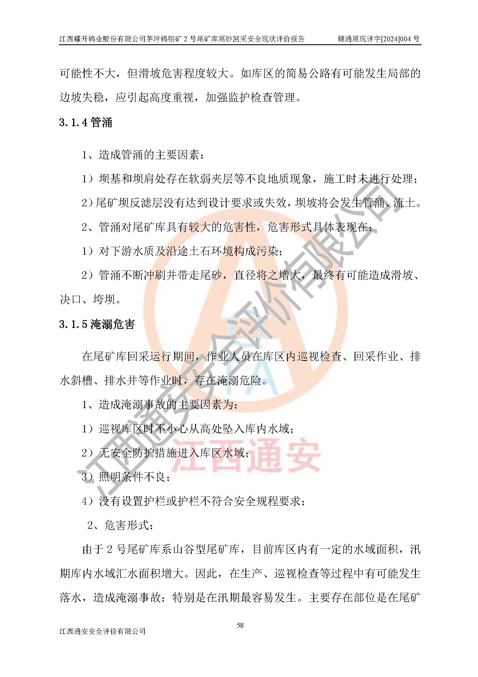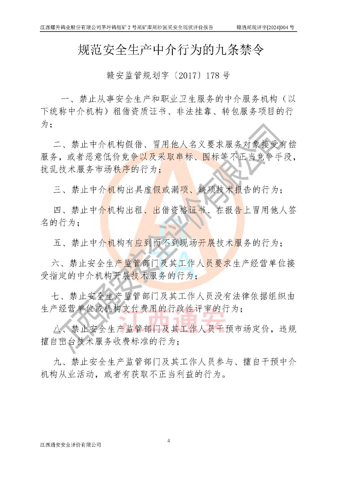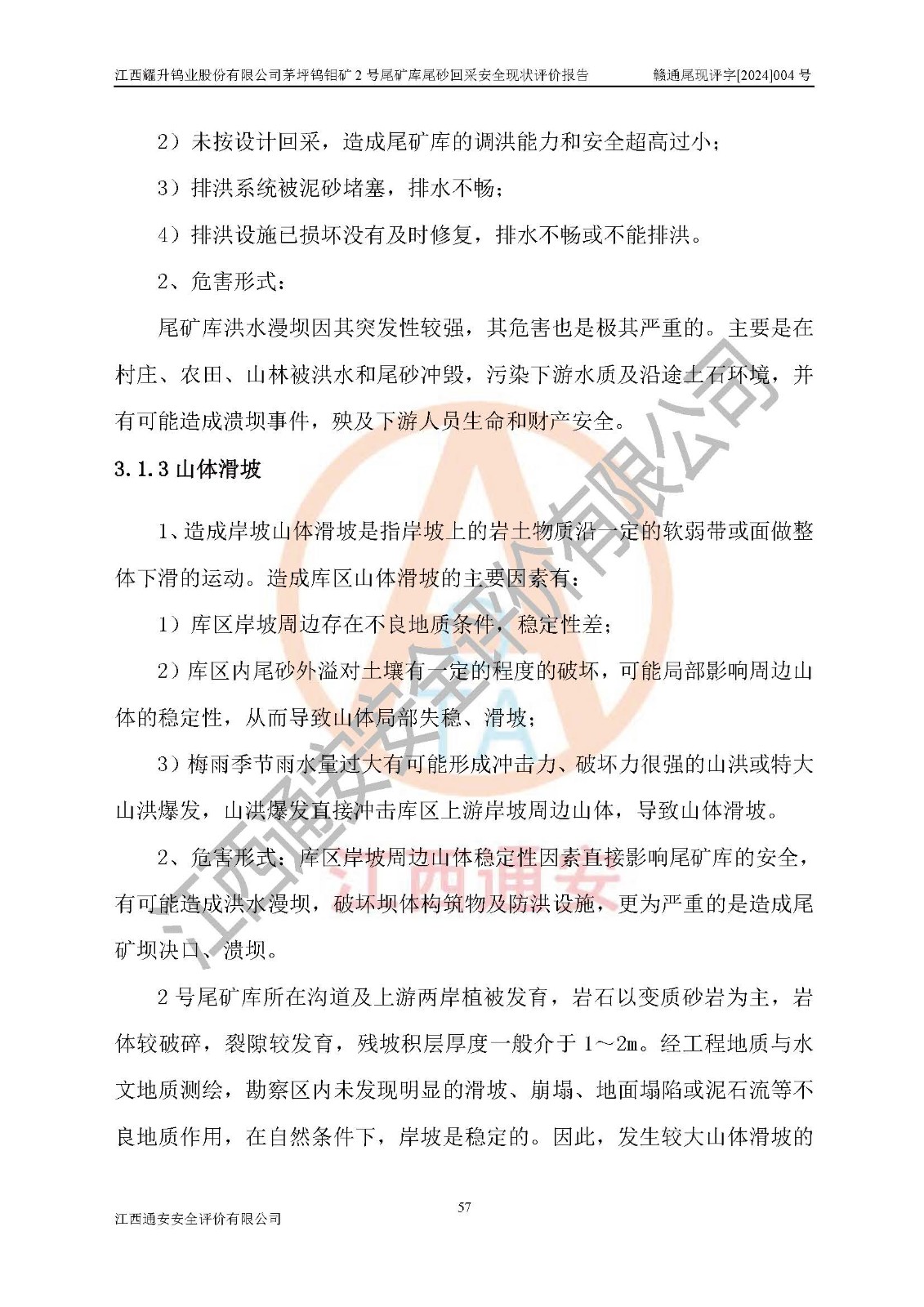 評價報告名稱 | 江西耀升鎢業(yè)股份有限公司茅坪鎢鉬礦2號尾礦庫尾砂回采安全現(xiàn)狀評價報告 | |||