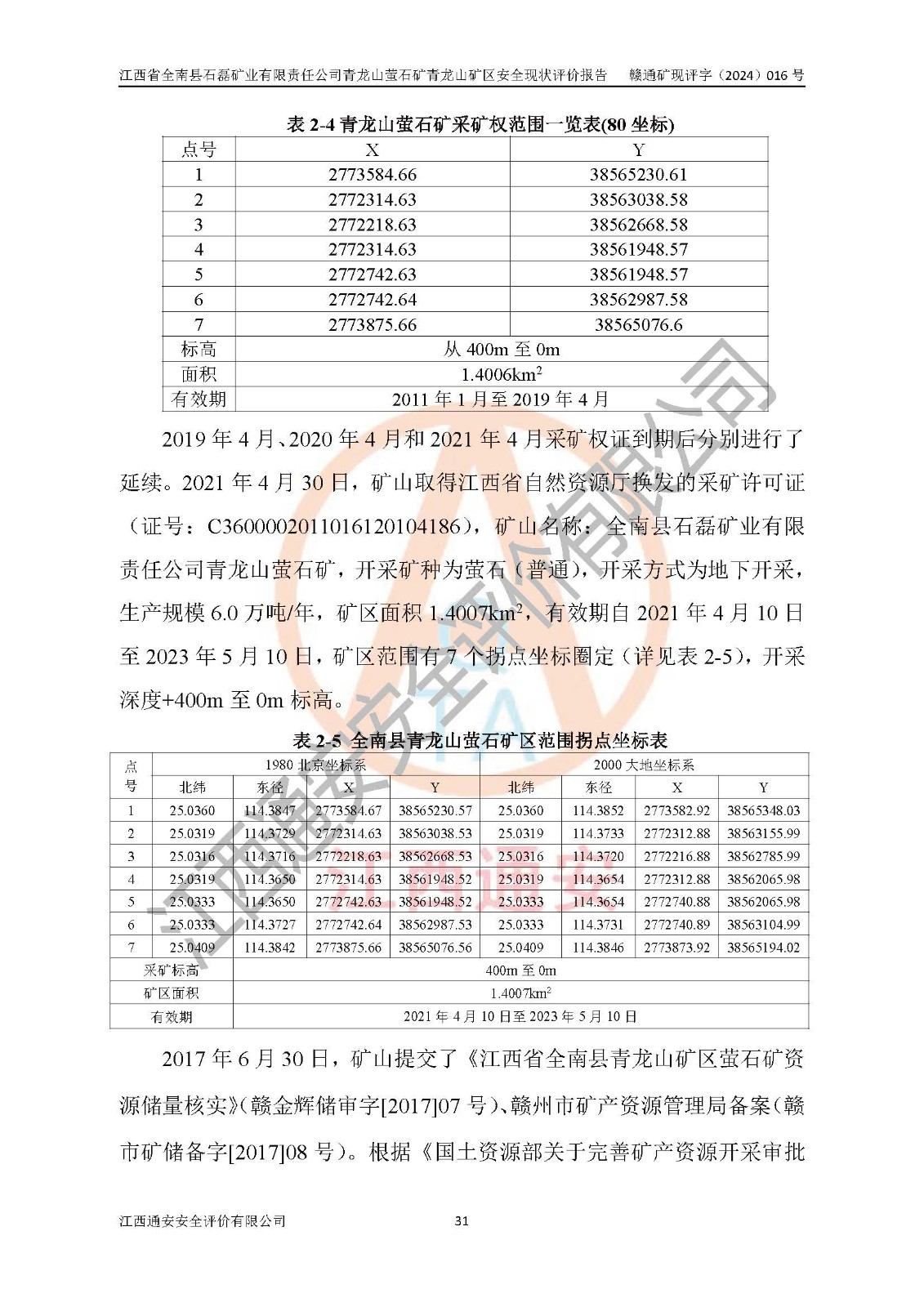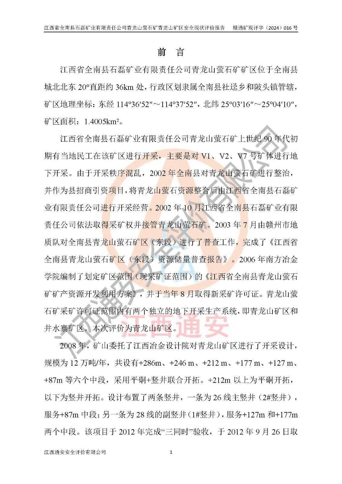 報(bào)告編號(hào):贛通礦現(xiàn)評(píng)字[2024]016號(hào)