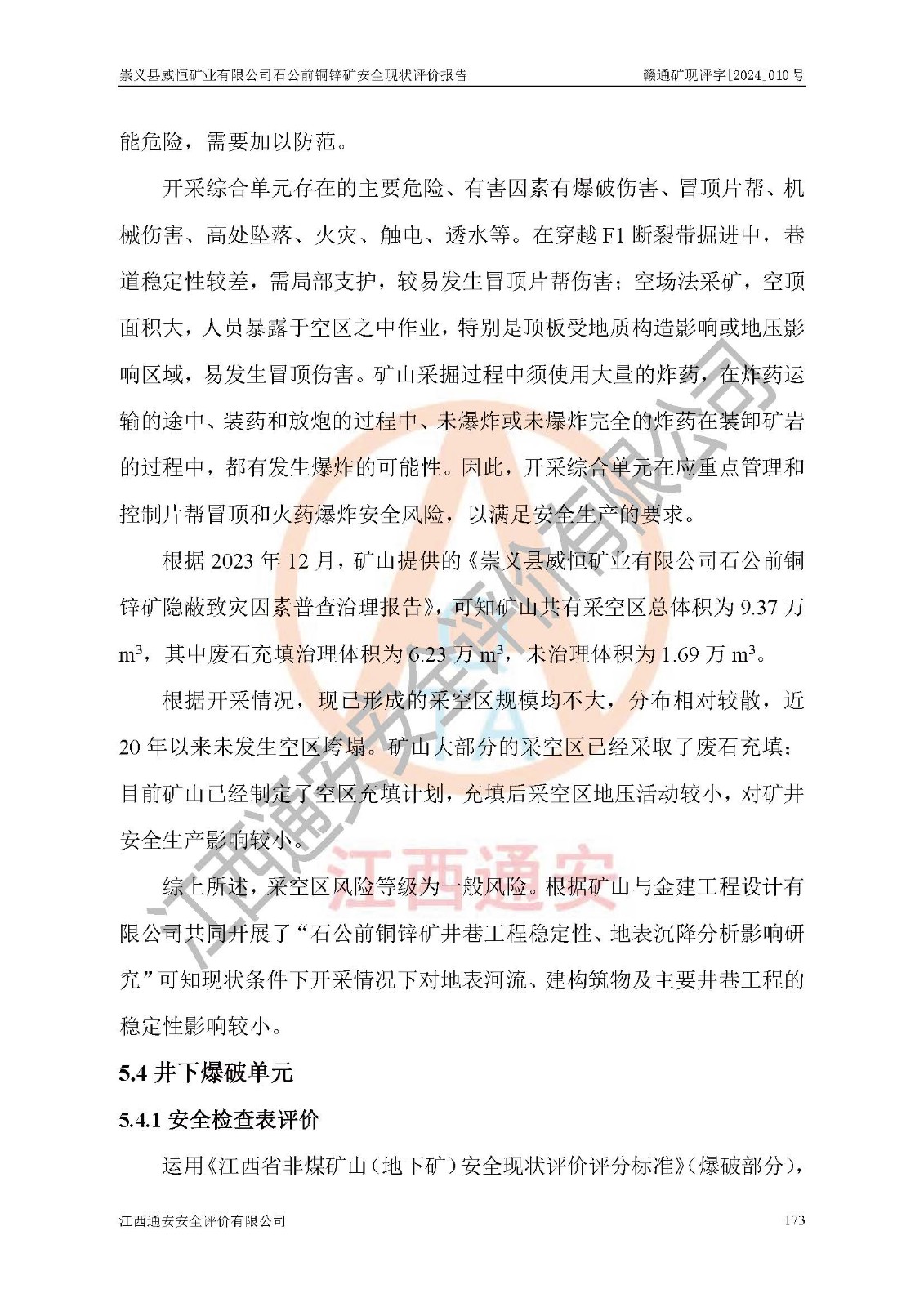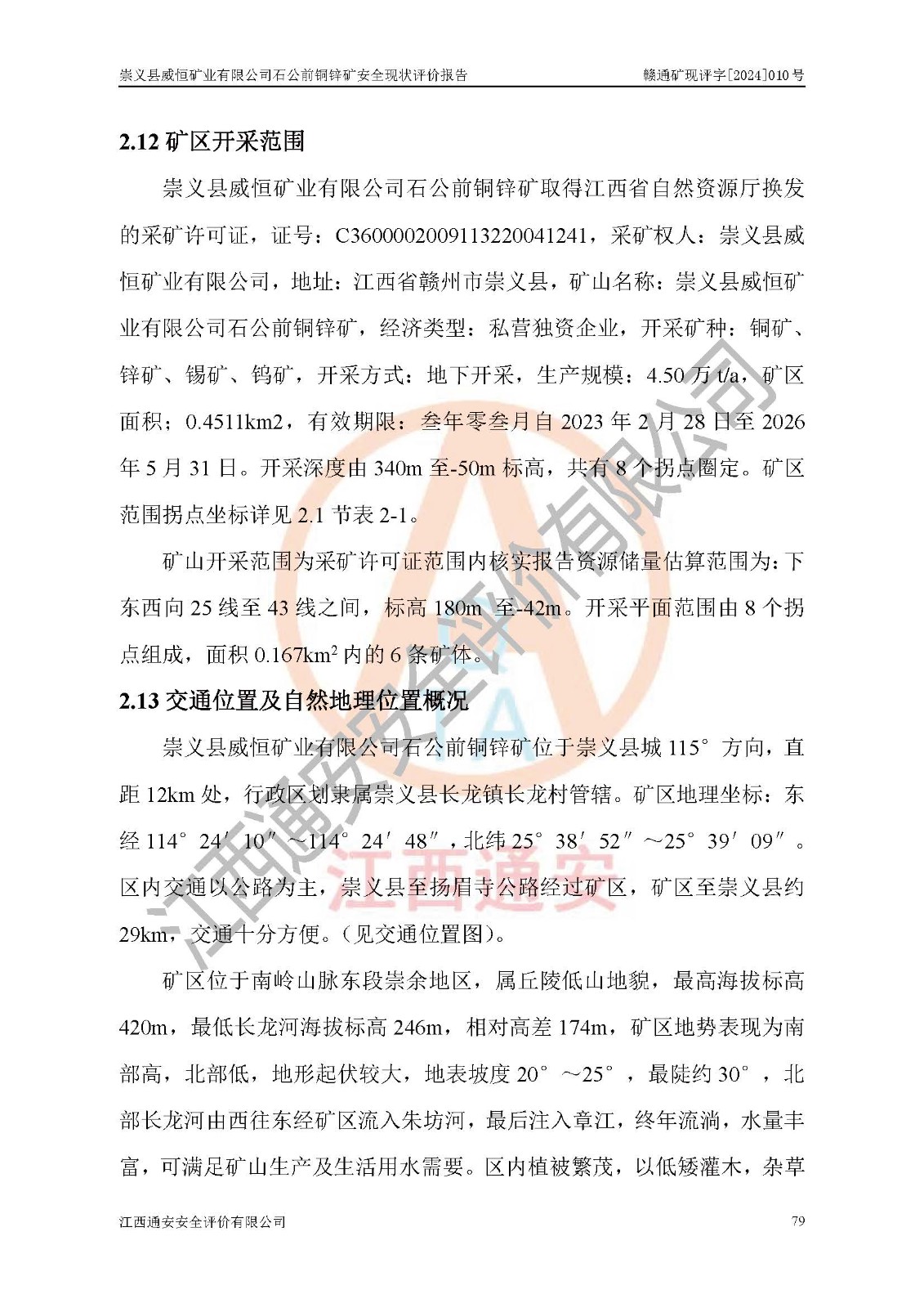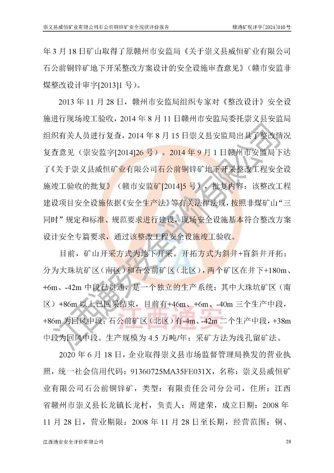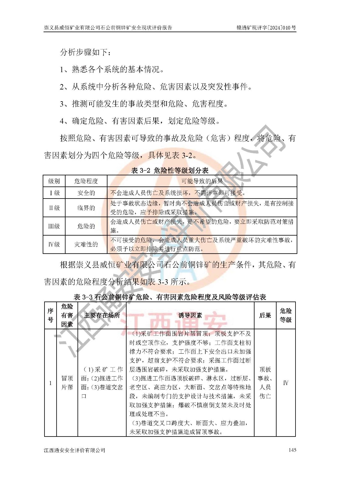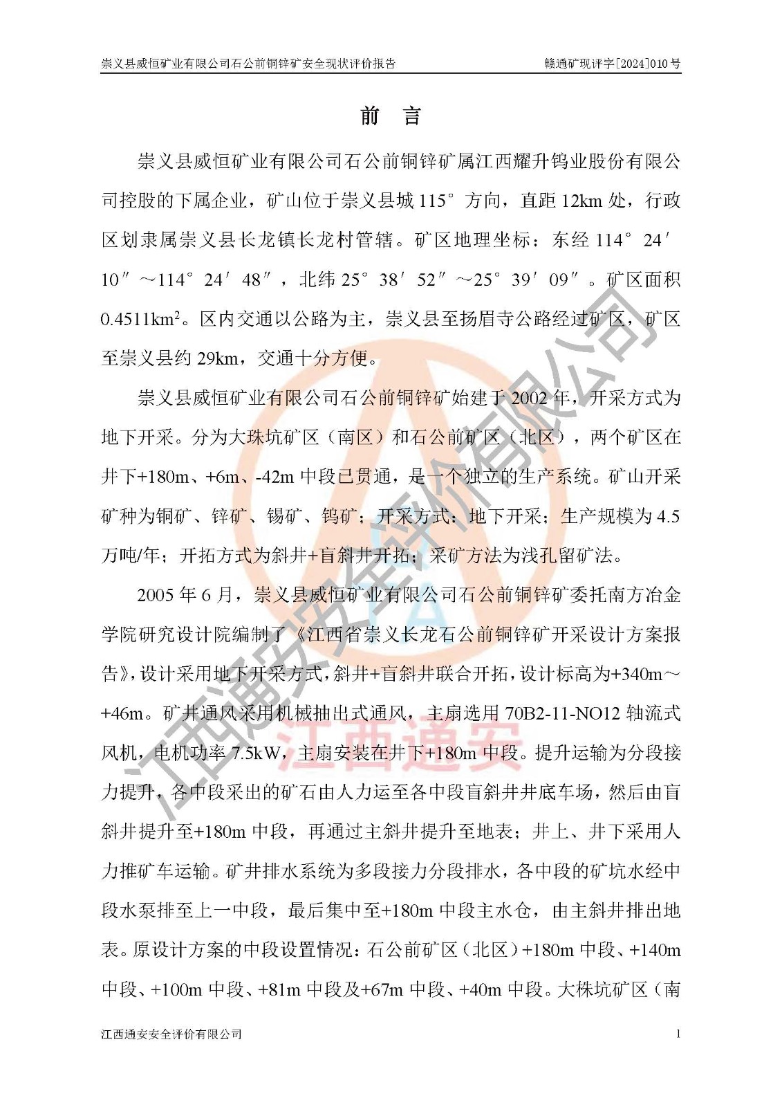 項目名稱 | 崇義縣威恒礦業(yè)有限公司石公前銅鋅礦安全現(xiàn)狀評價報告 | ||||