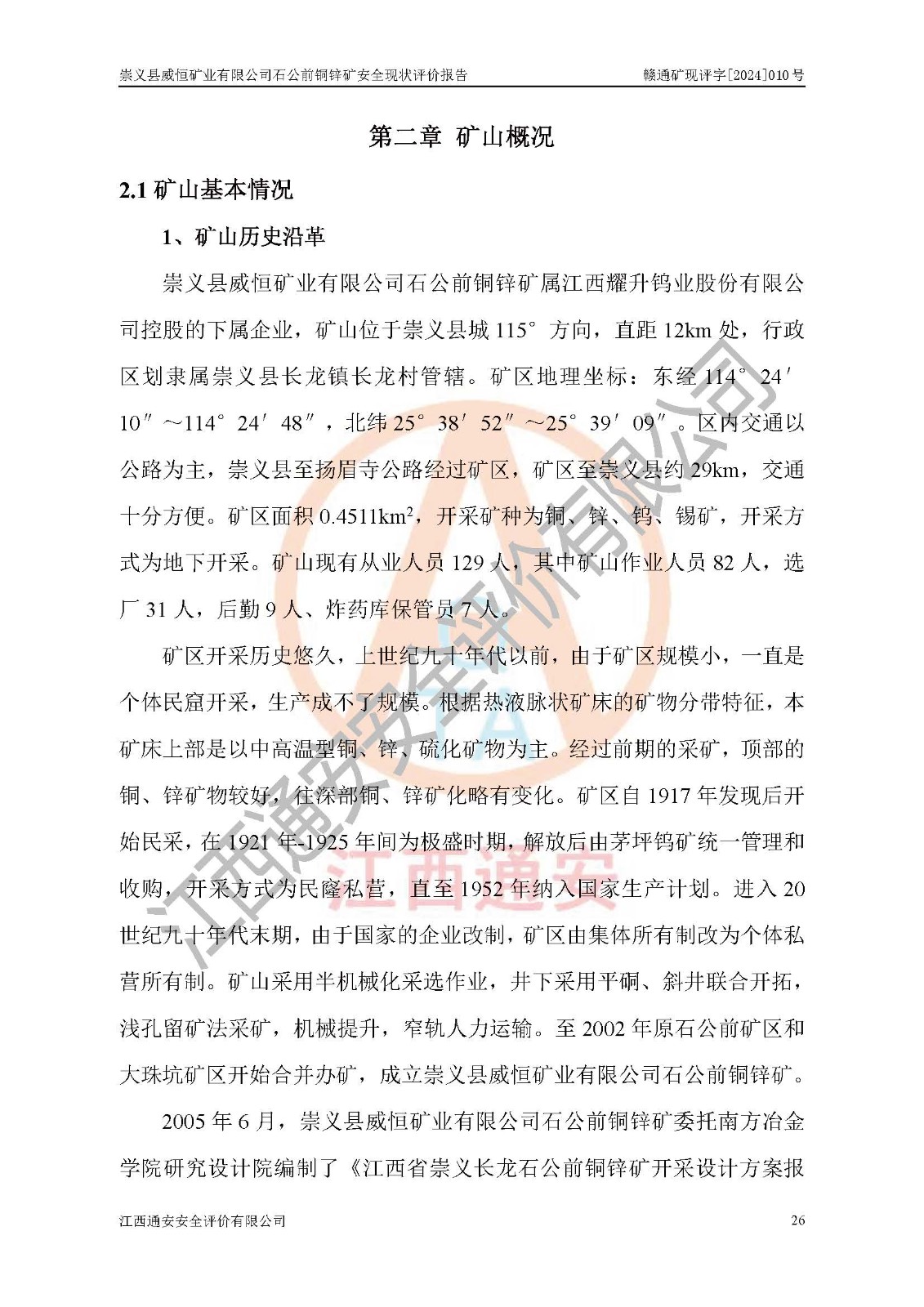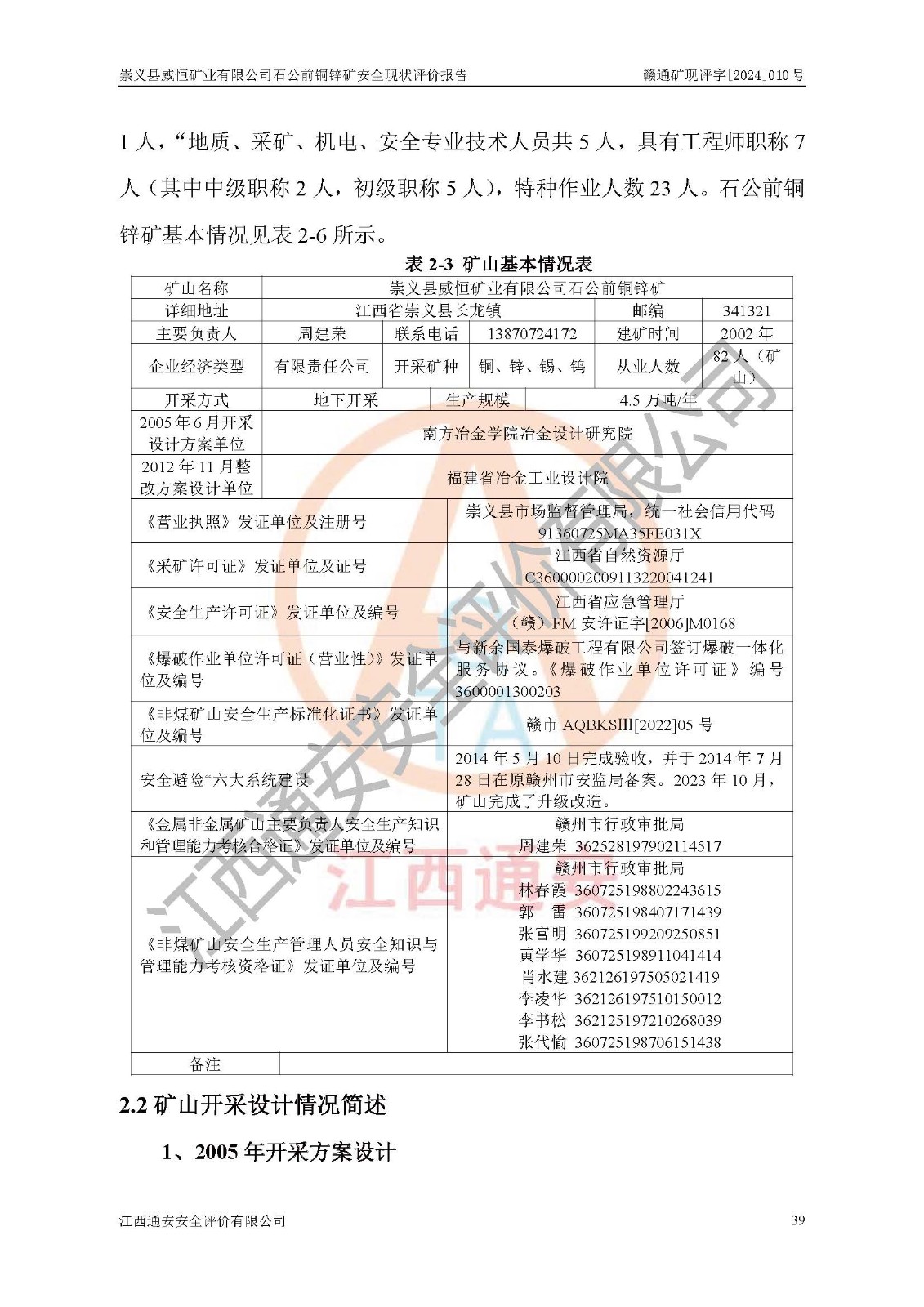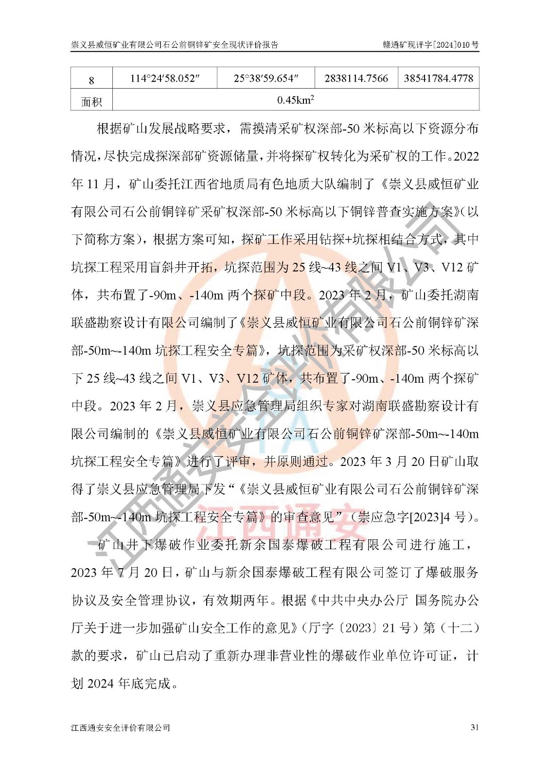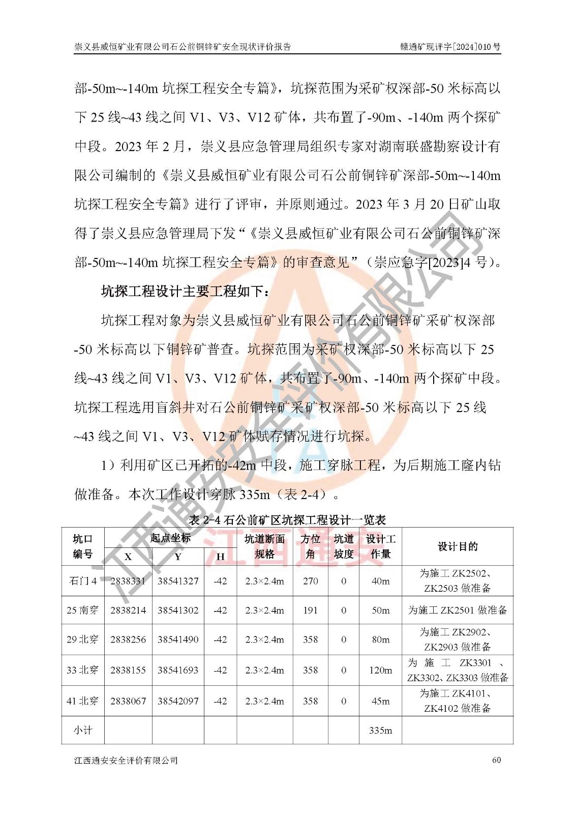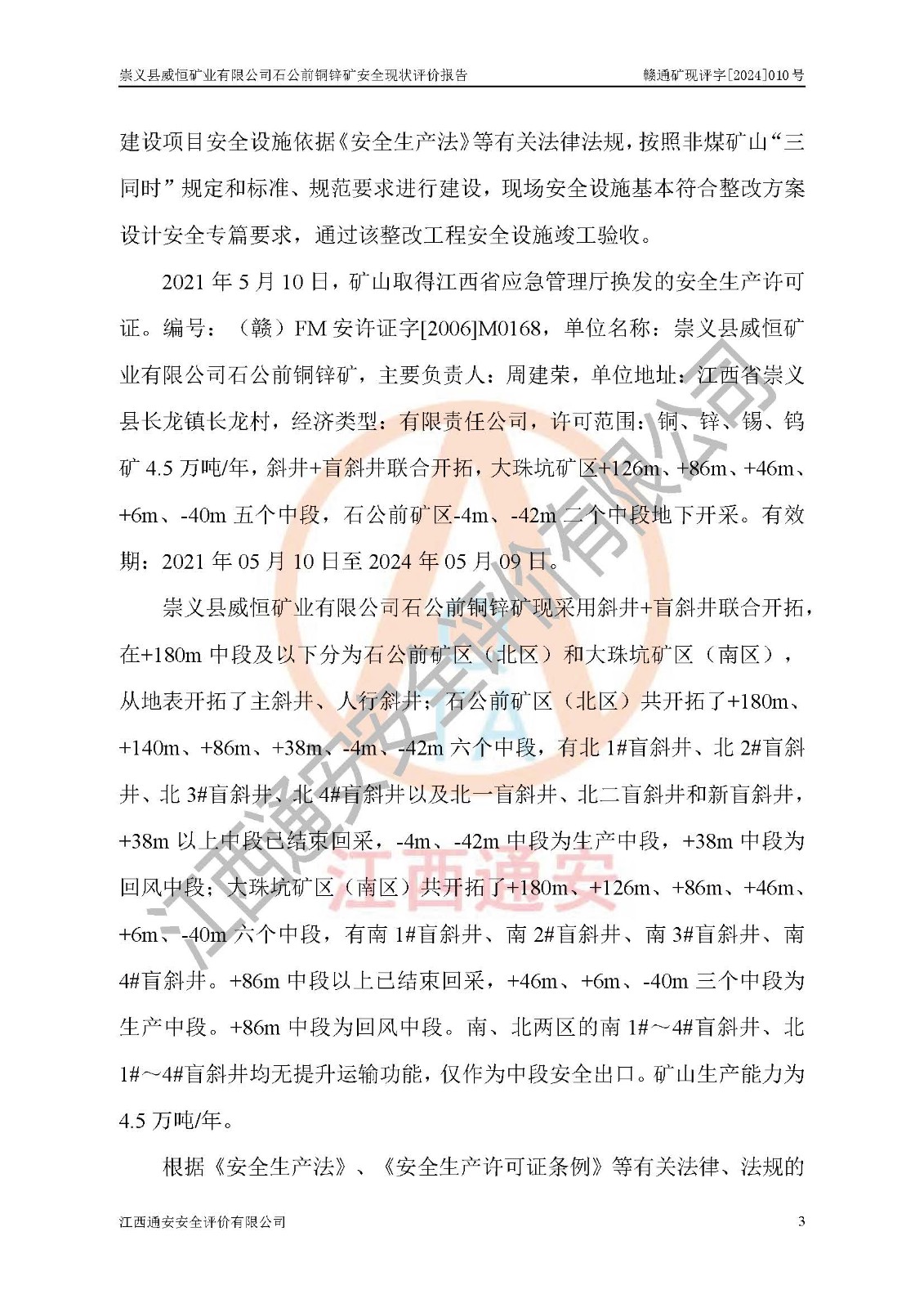 項目名稱 | 崇義縣威恒礦業(yè)有限公司石公前銅鋅礦安全現(xiàn)狀評價報告 | ||||