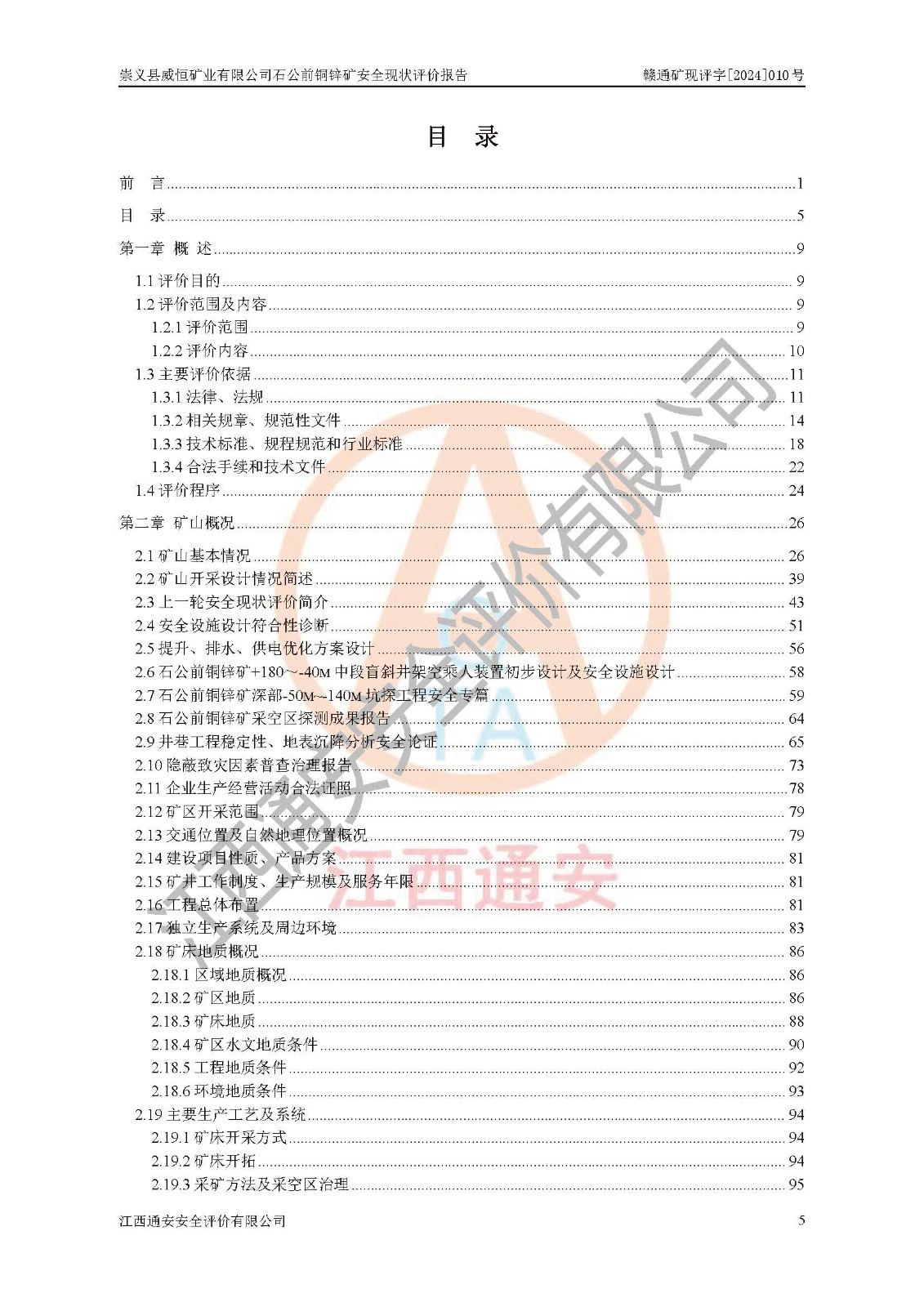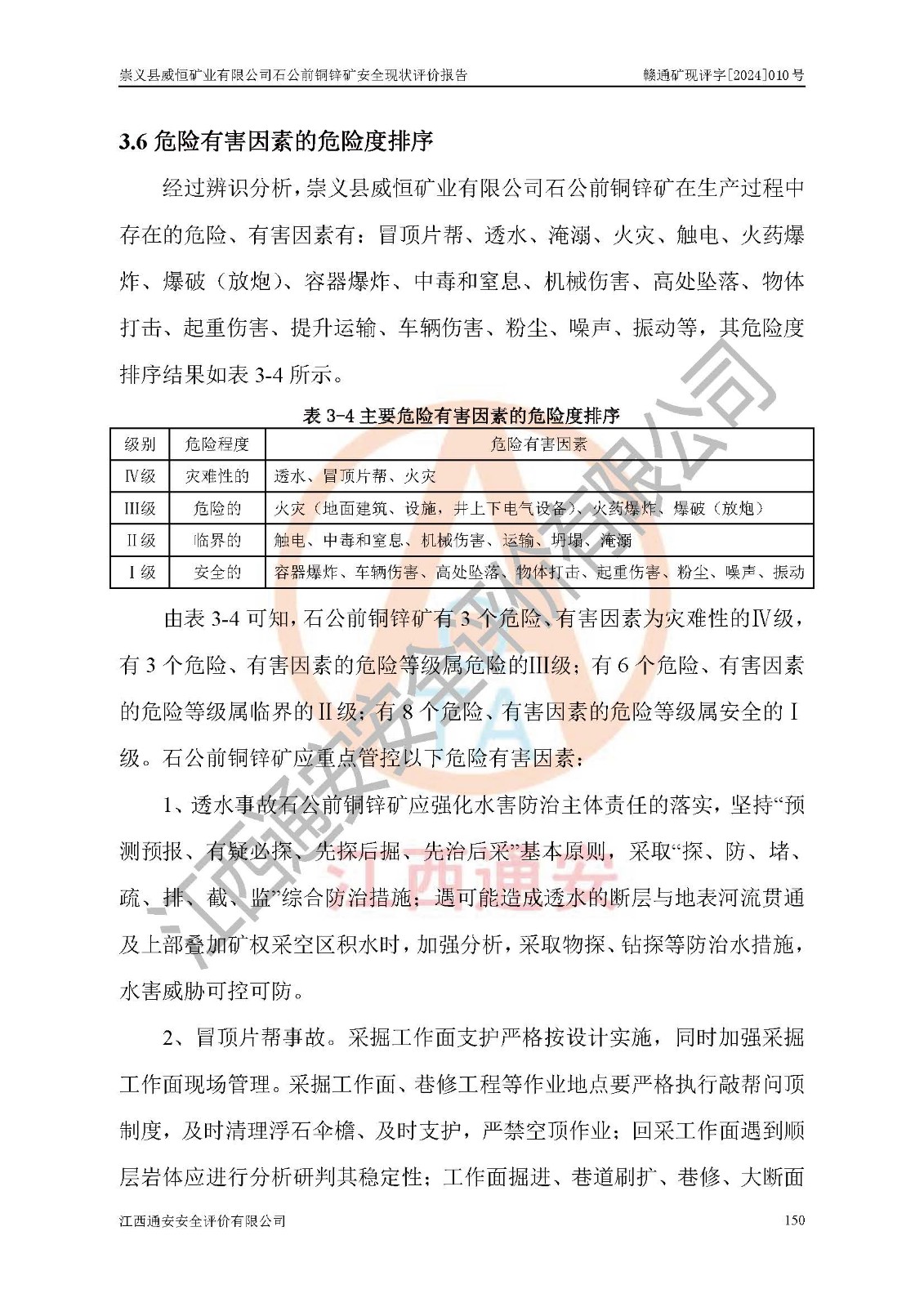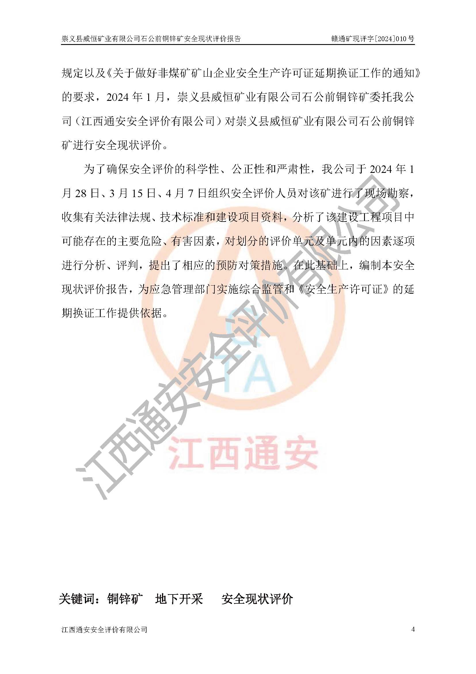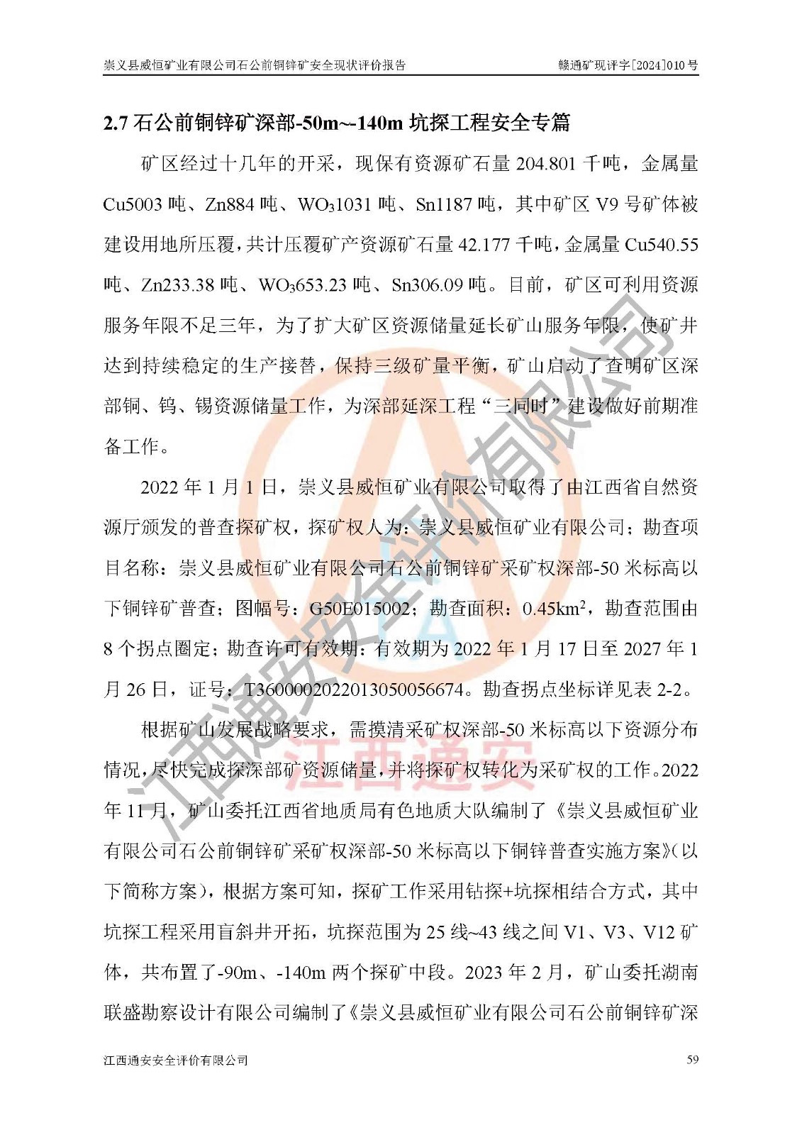 項目名稱 | 崇義縣威恒礦業(yè)有限公司石公前銅鋅礦安全現(xiàn)狀評價報告 | ||||