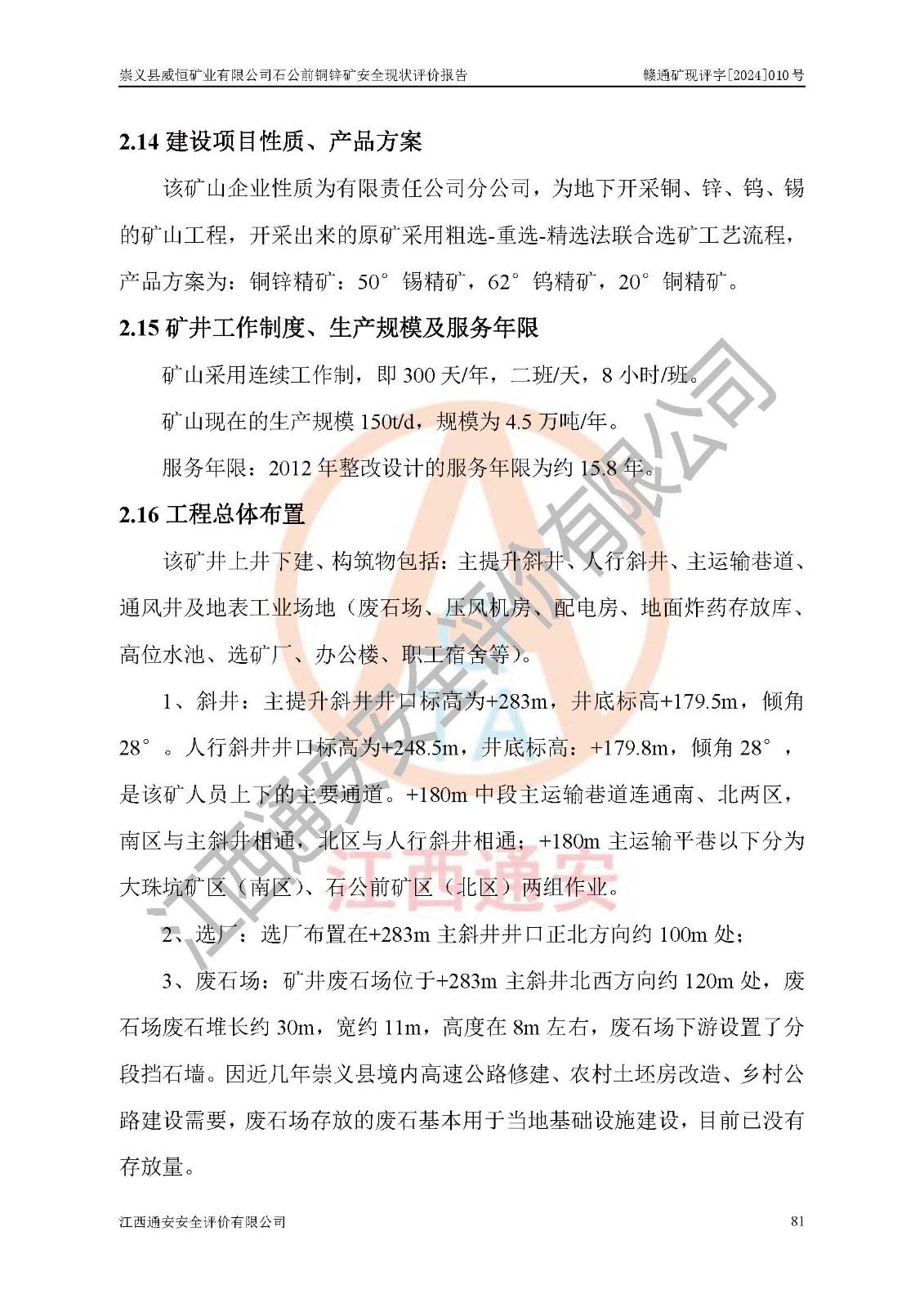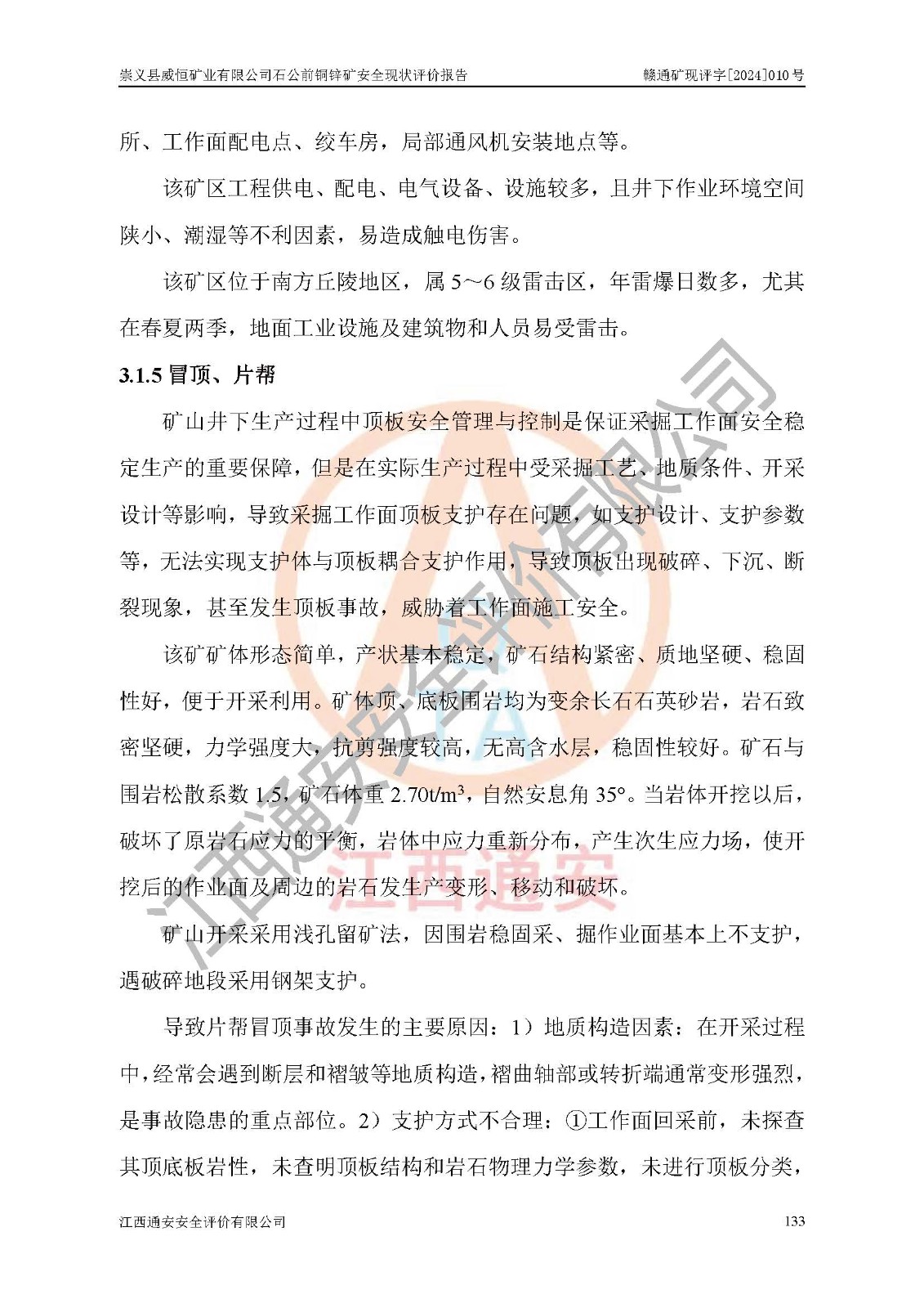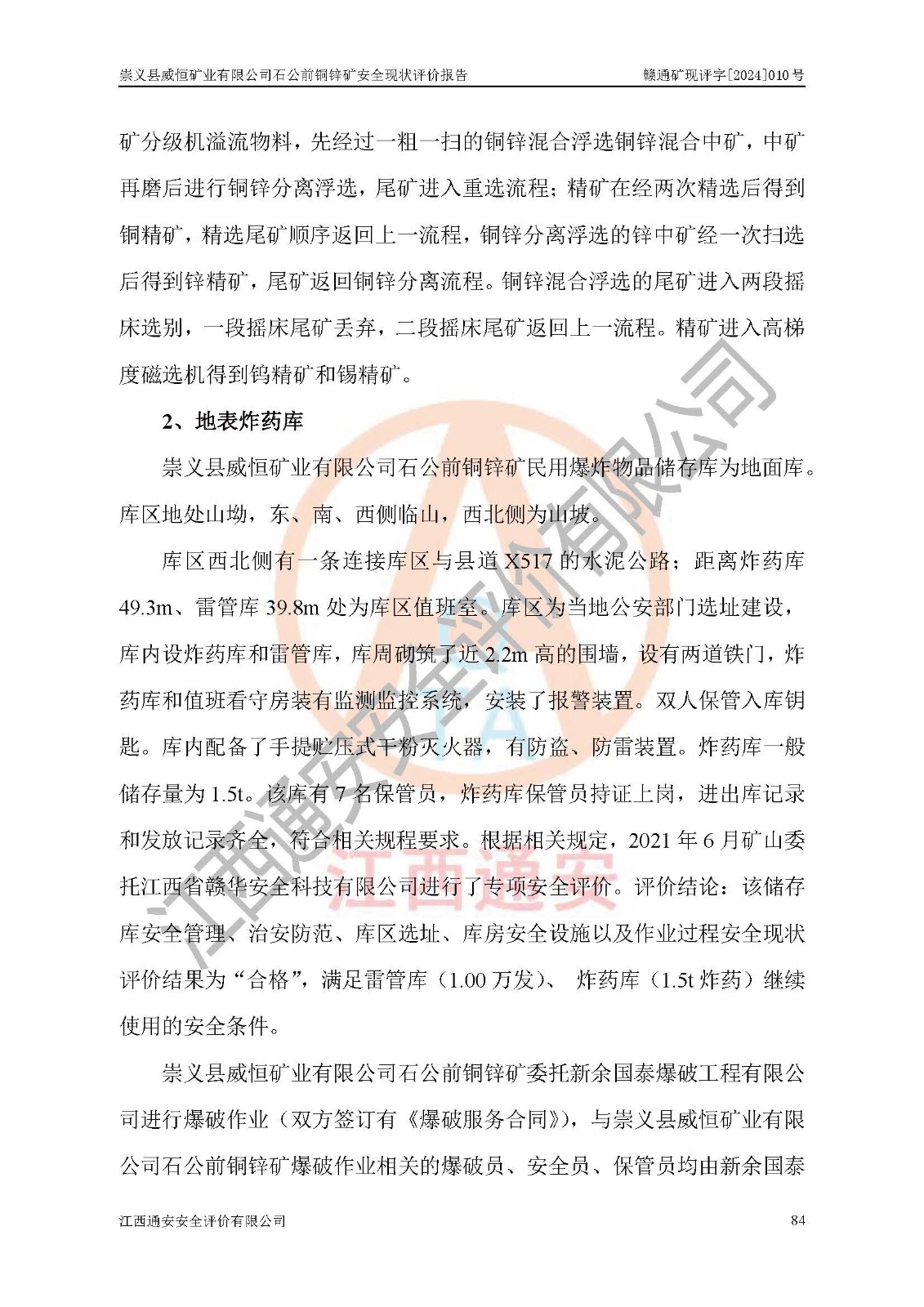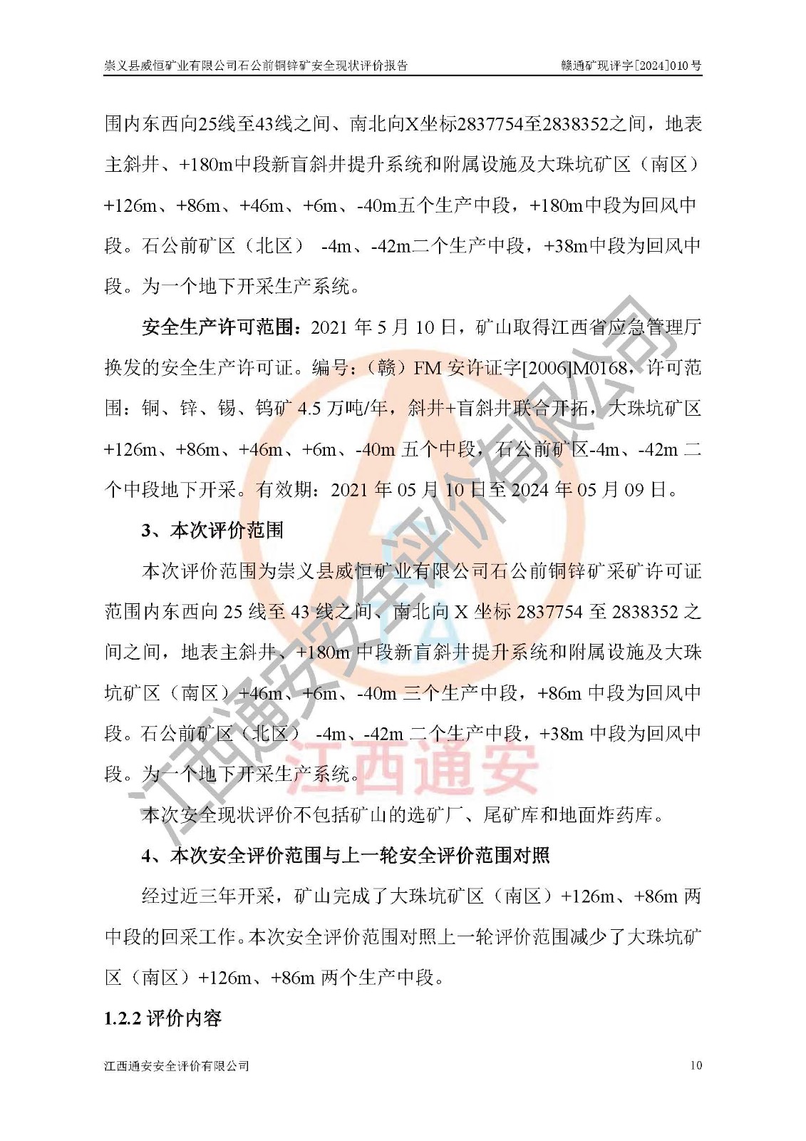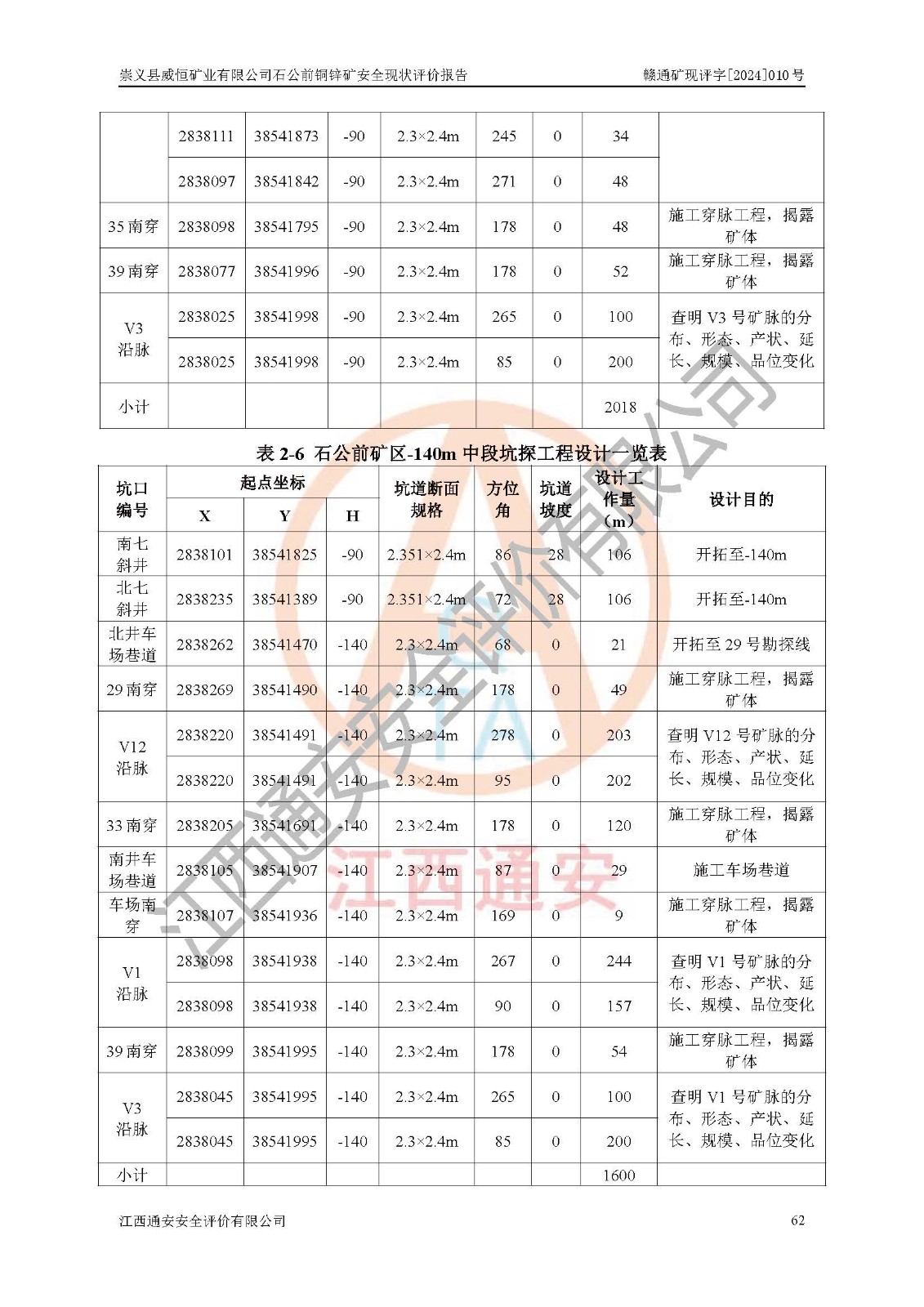 項目名稱 | 崇義縣威恒礦業(yè)有限公司石公前銅鋅礦安全現(xiàn)狀評價報告 | ||||