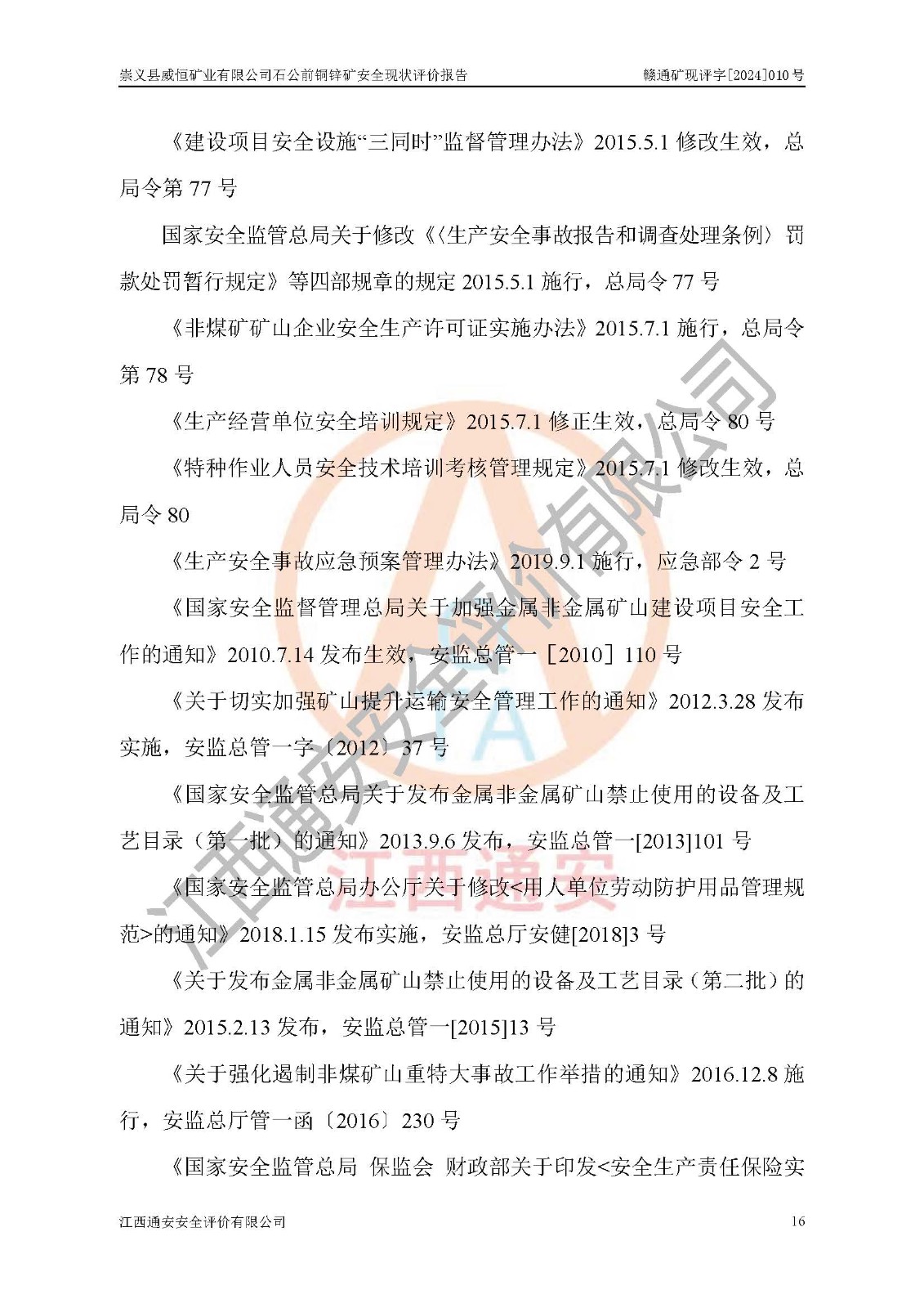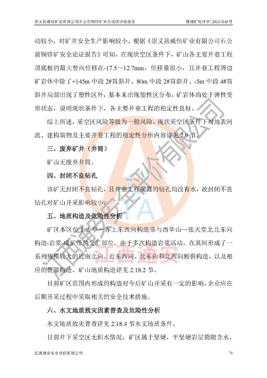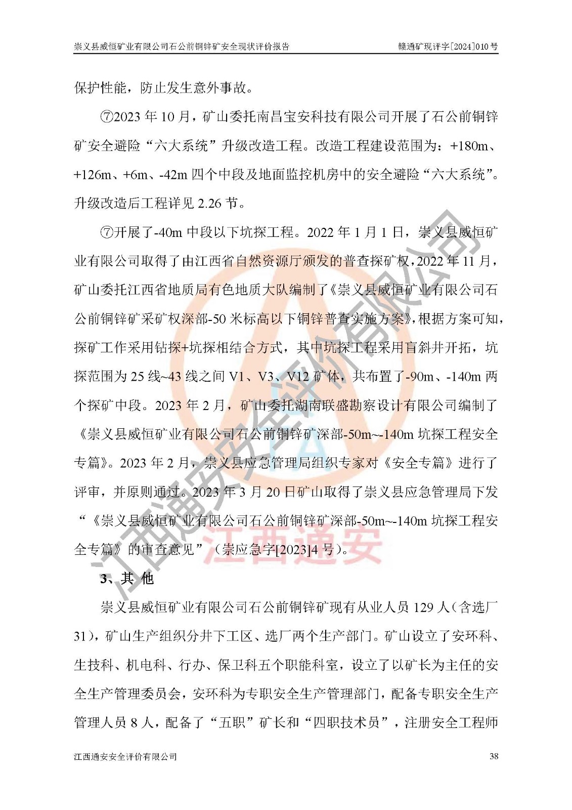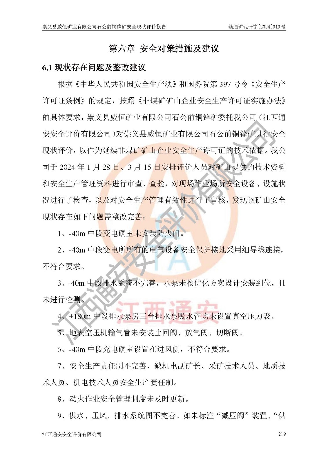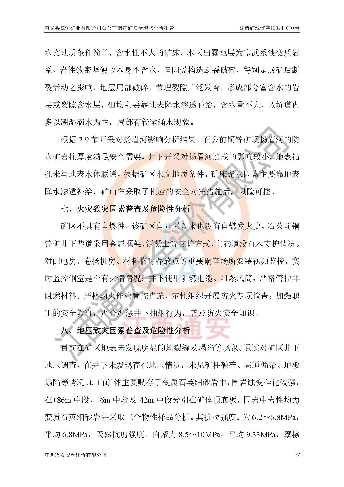 項目名稱 | 崇義縣威恒礦業(yè)有限公司石公前銅鋅礦安全現(xiàn)狀評價報告 | ||||