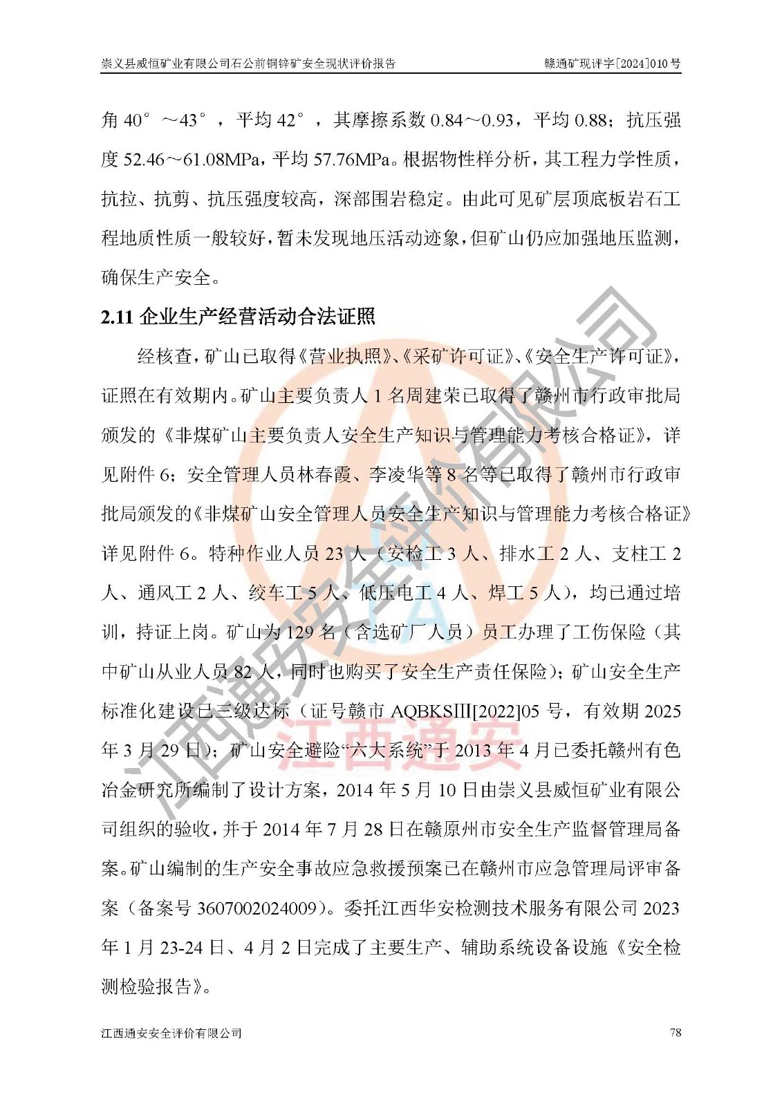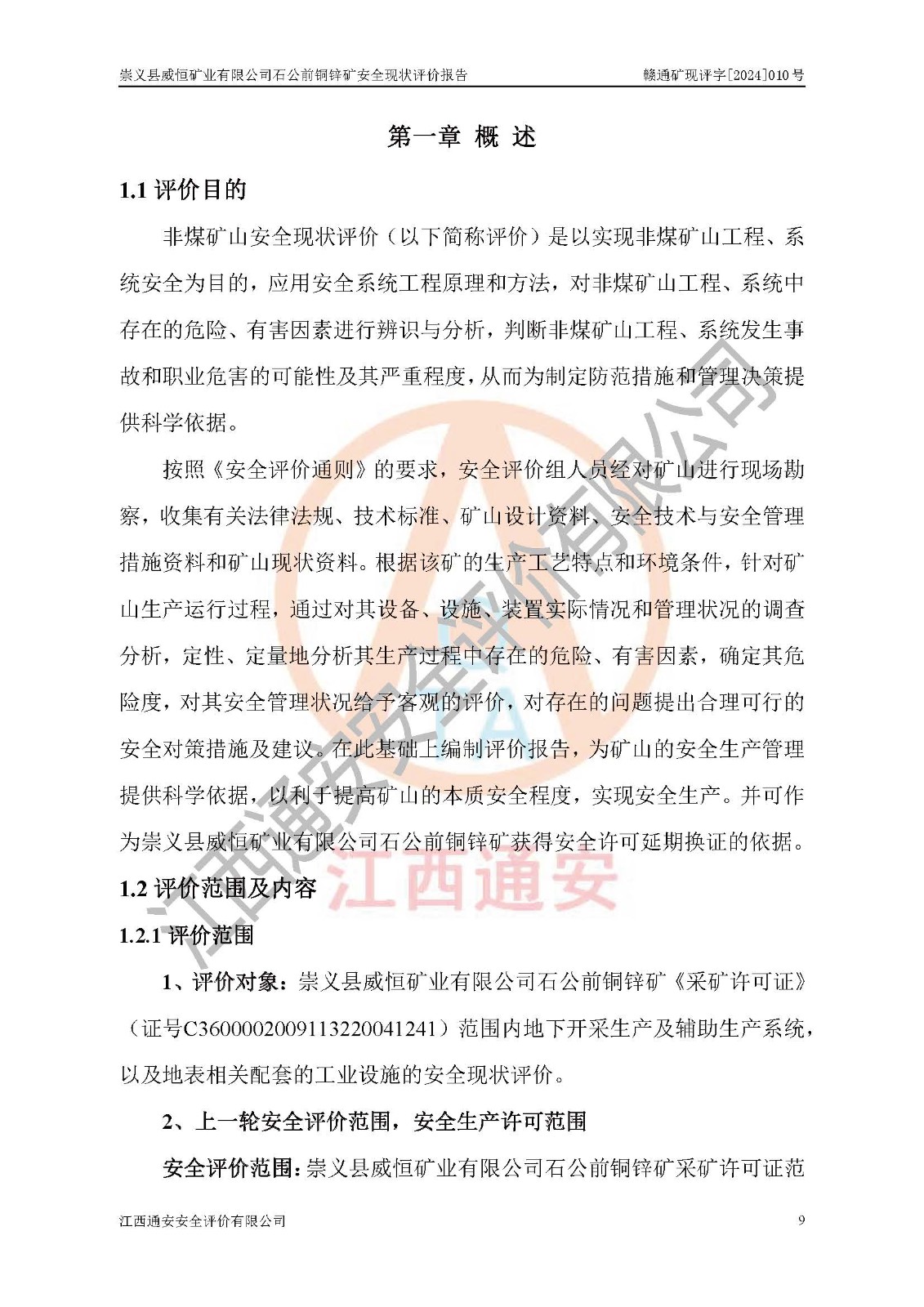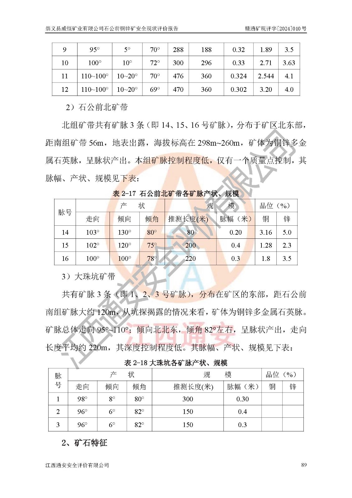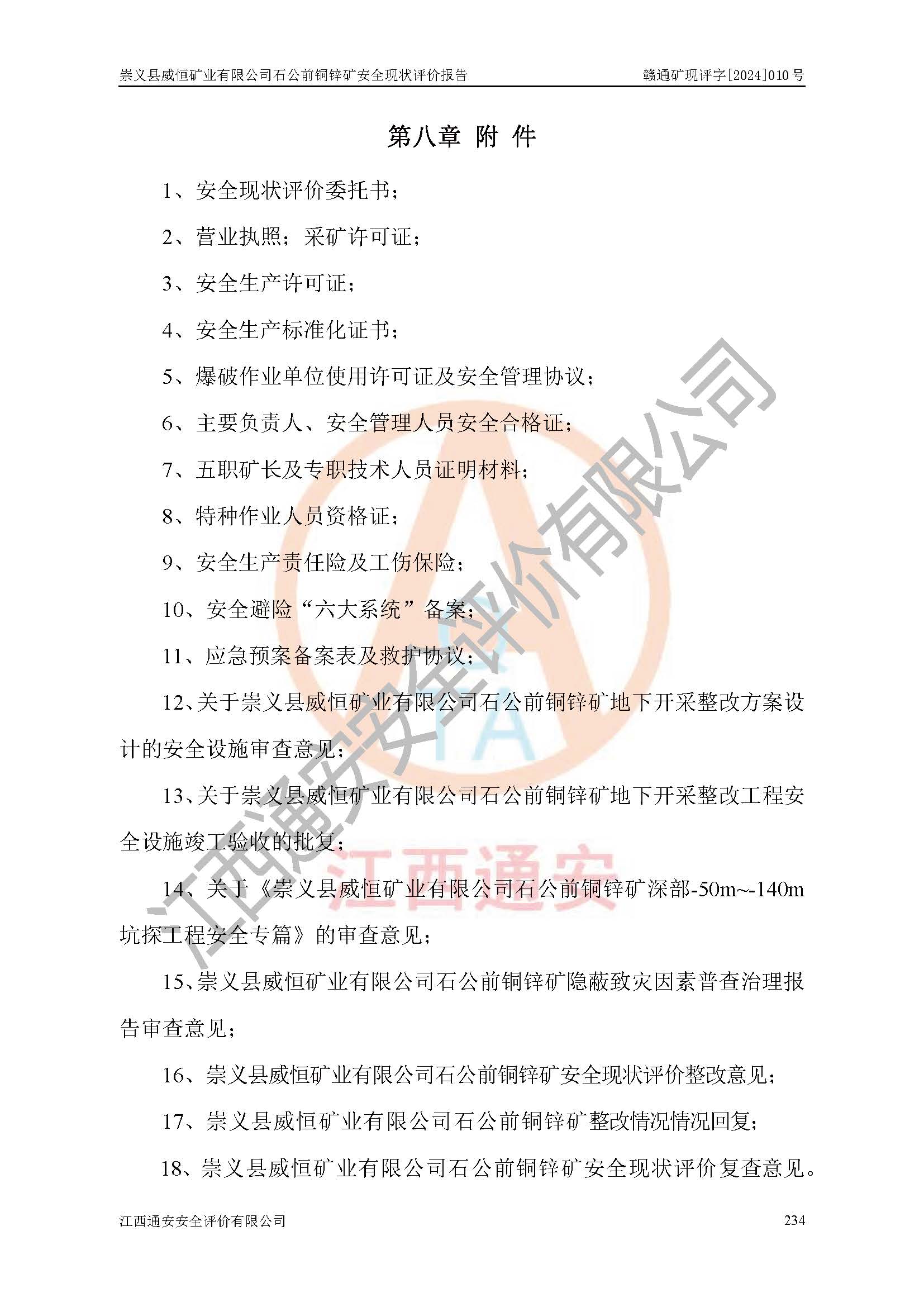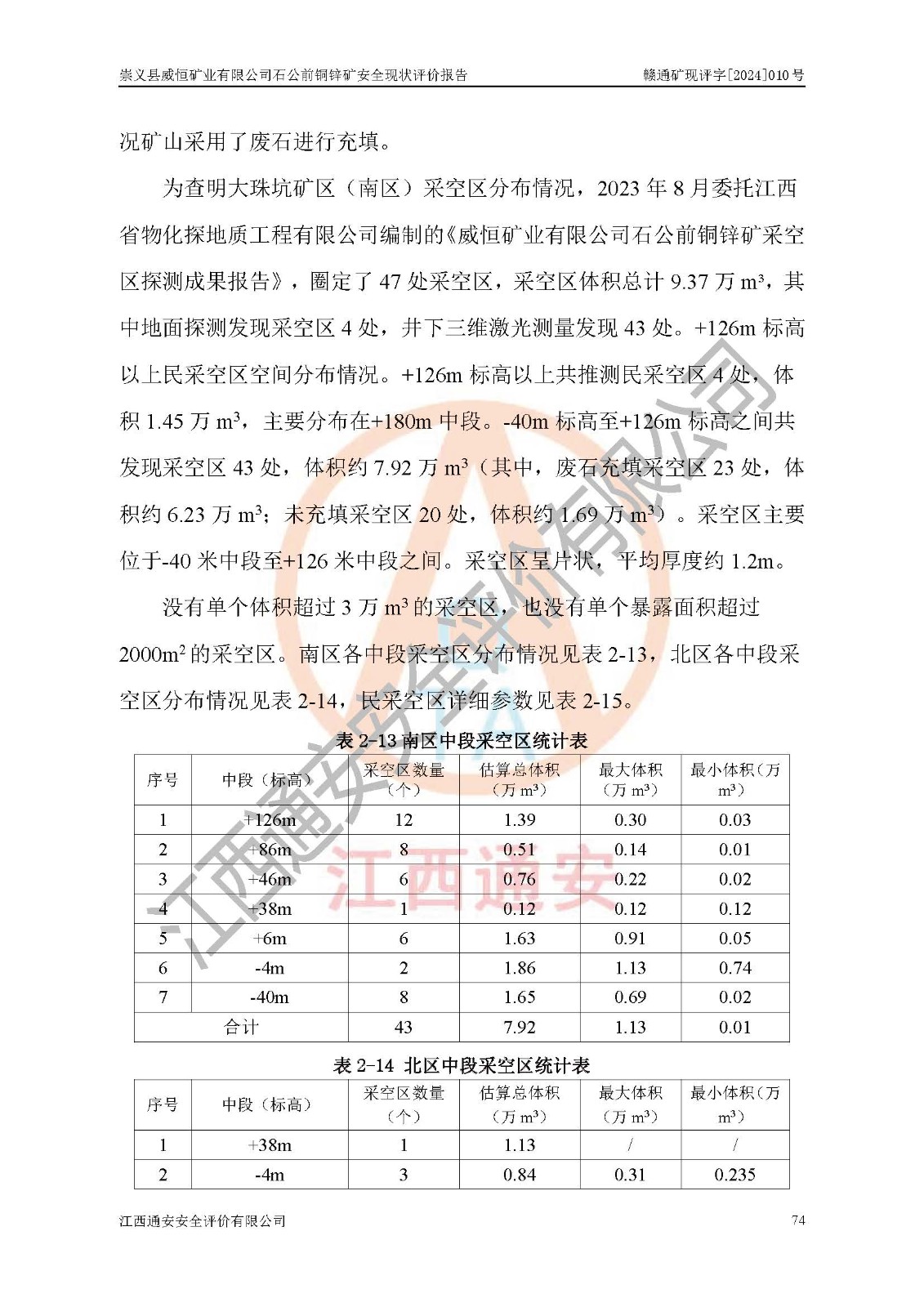 項目名稱 | 崇義縣威恒礦業(yè)有限公司石公前銅鋅礦安全現(xiàn)狀評價報告 | ||||
