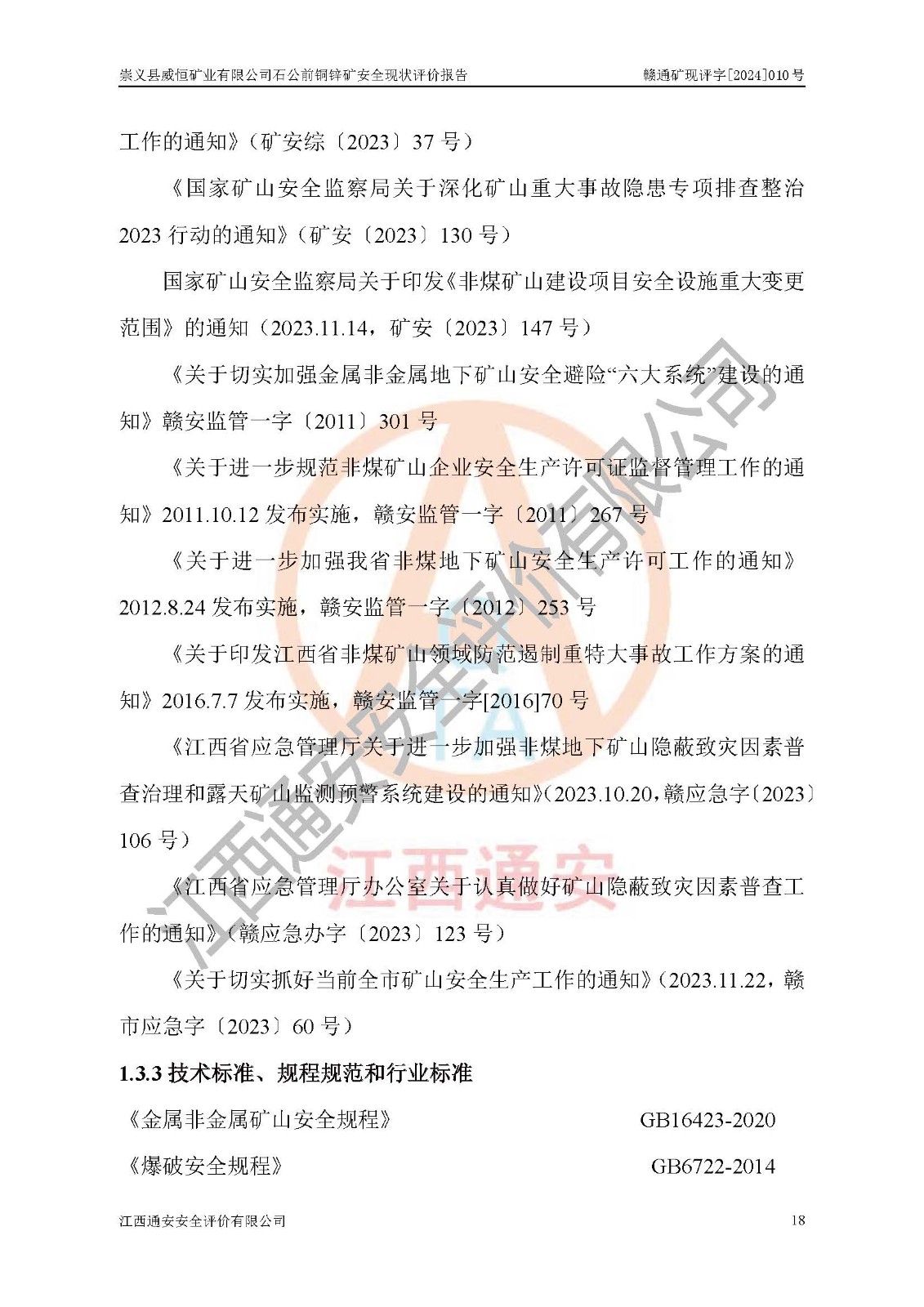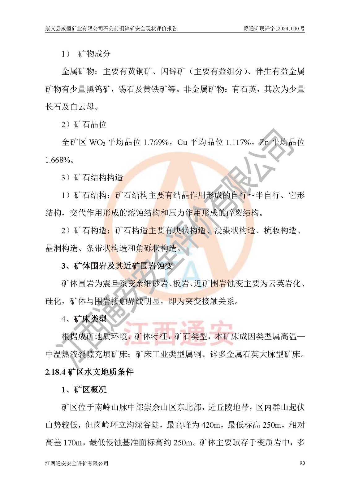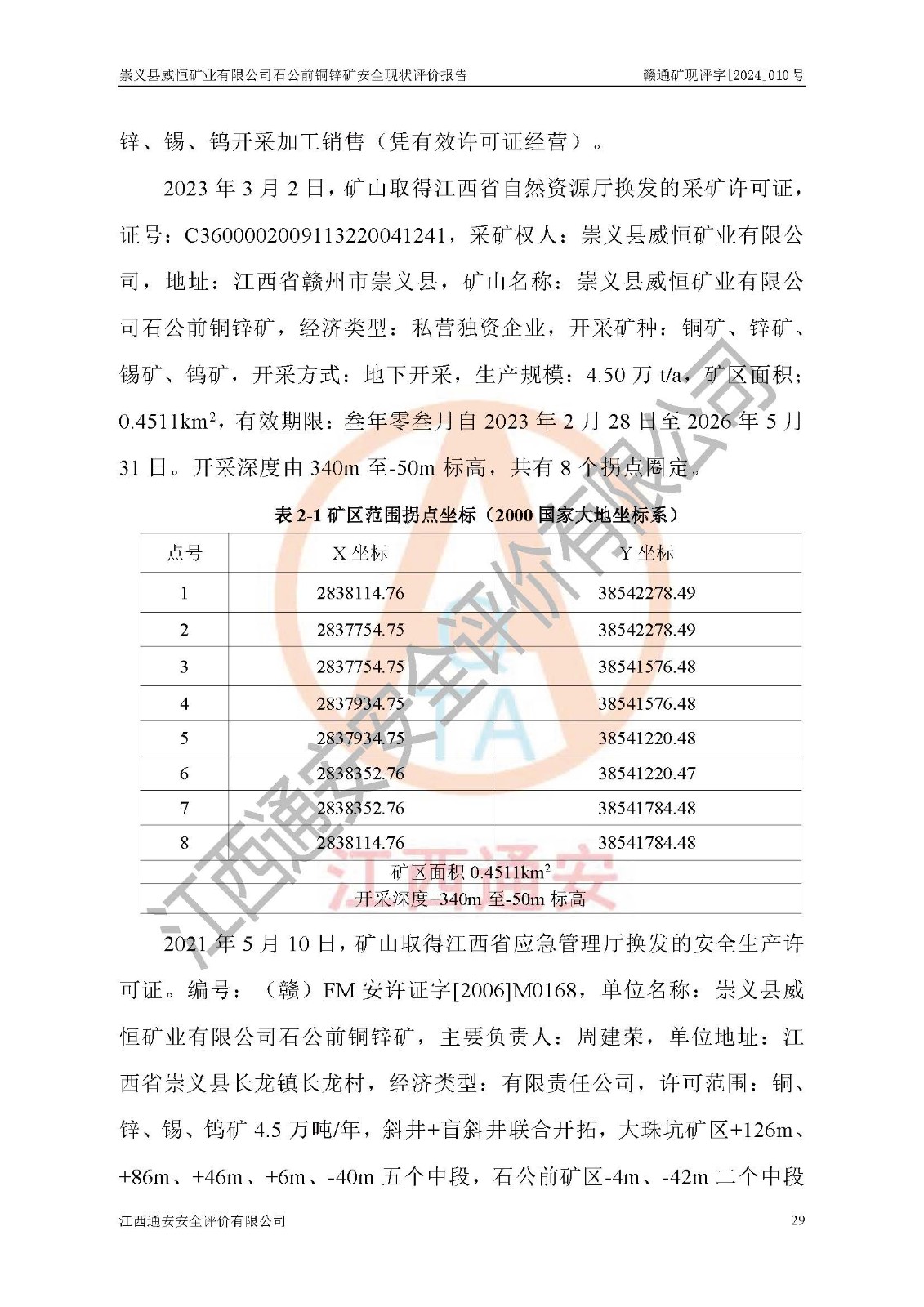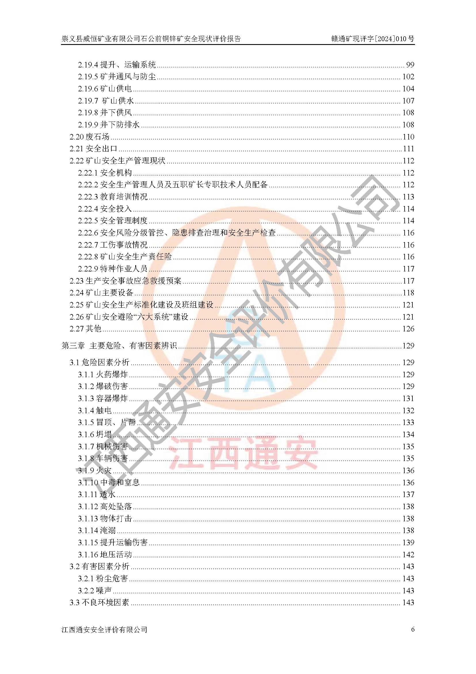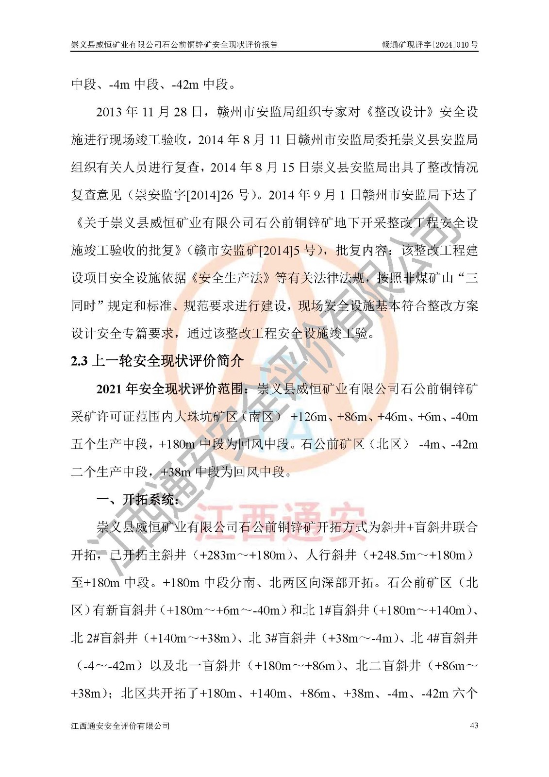 項目名稱 | 崇義縣威恒礦業(yè)有限公司石公前銅鋅礦安全現(xiàn)狀評價報告 | ||||