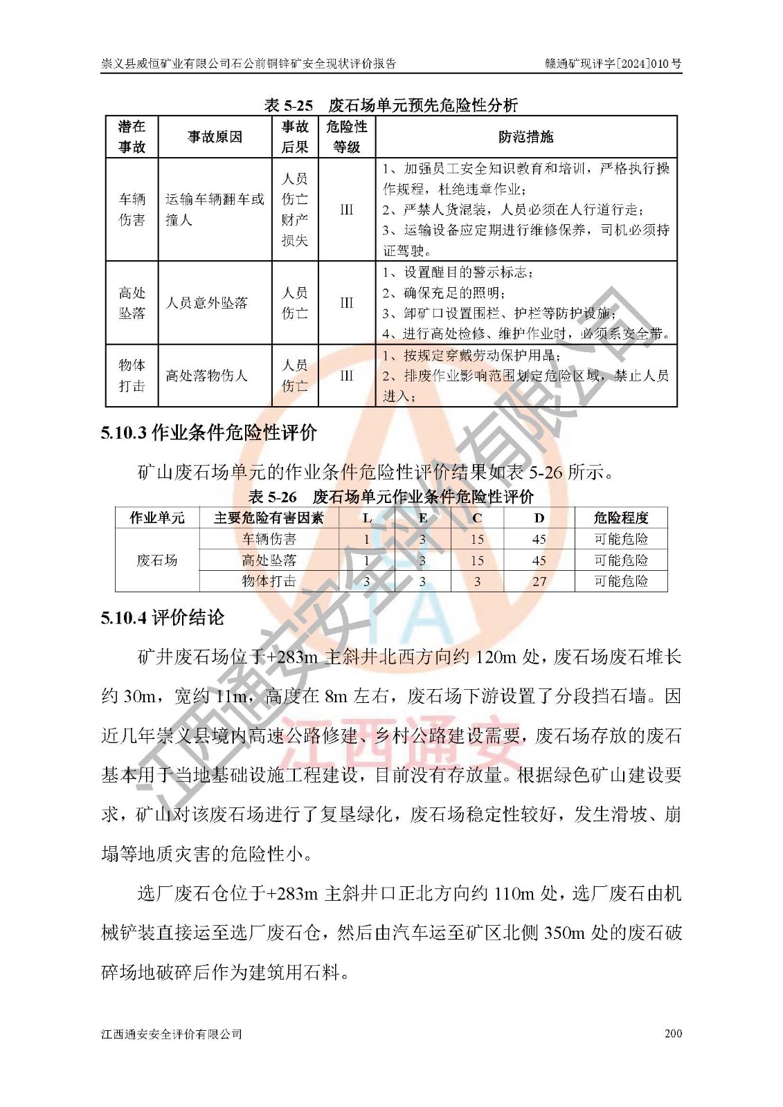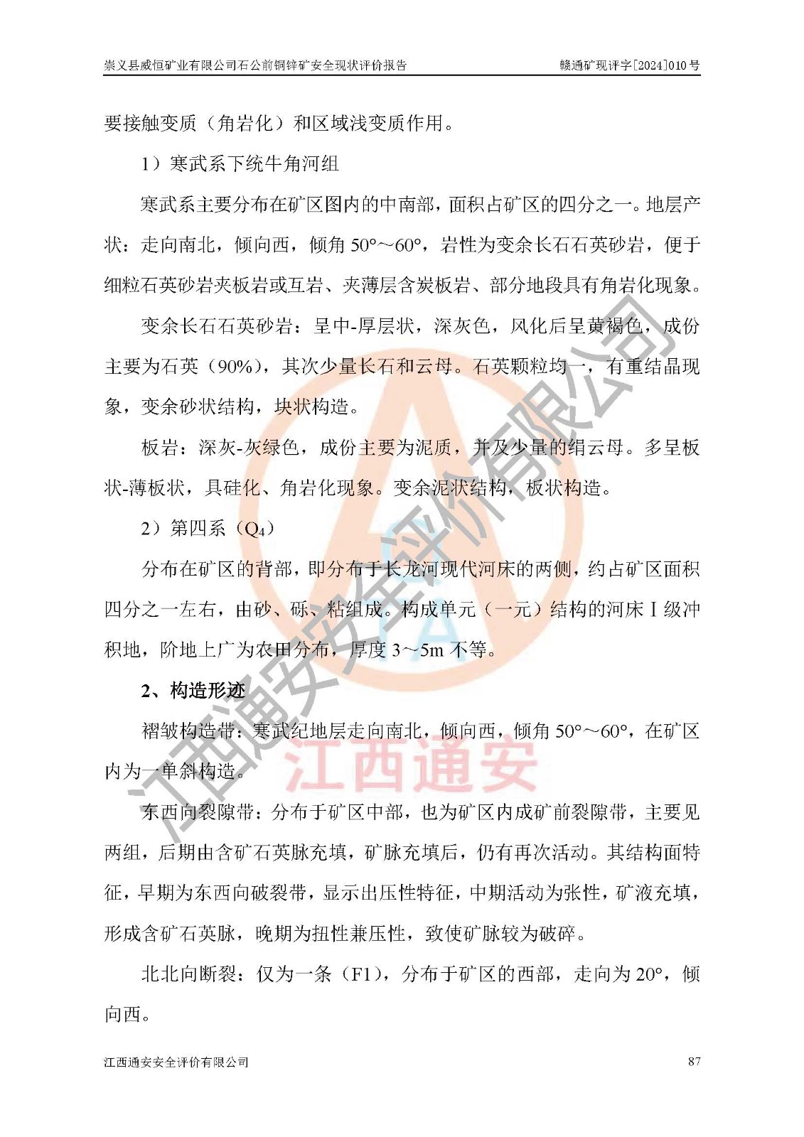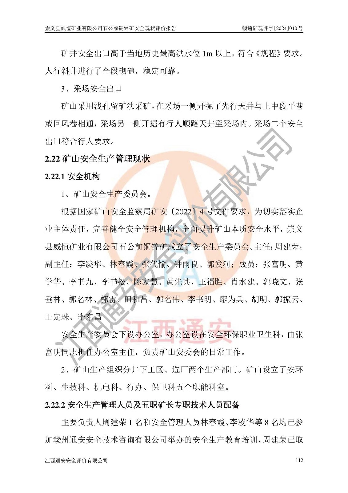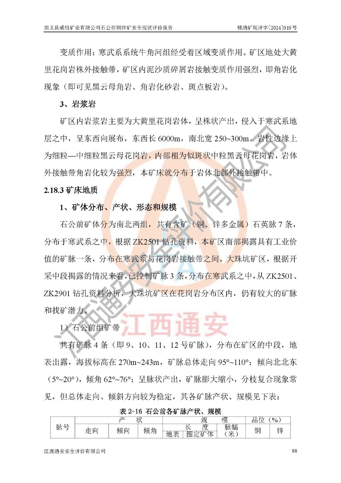 項目名稱 | 崇義縣威恒礦業(yè)有限公司石公前銅鋅礦安全現(xiàn)狀評價報告 | ||||