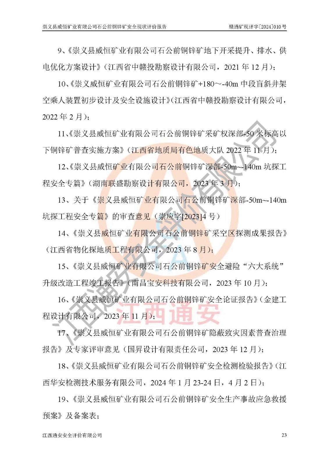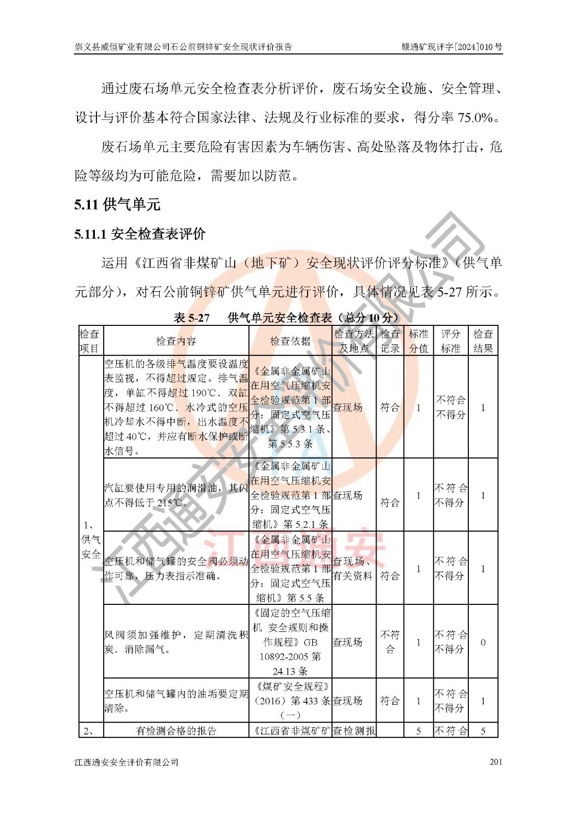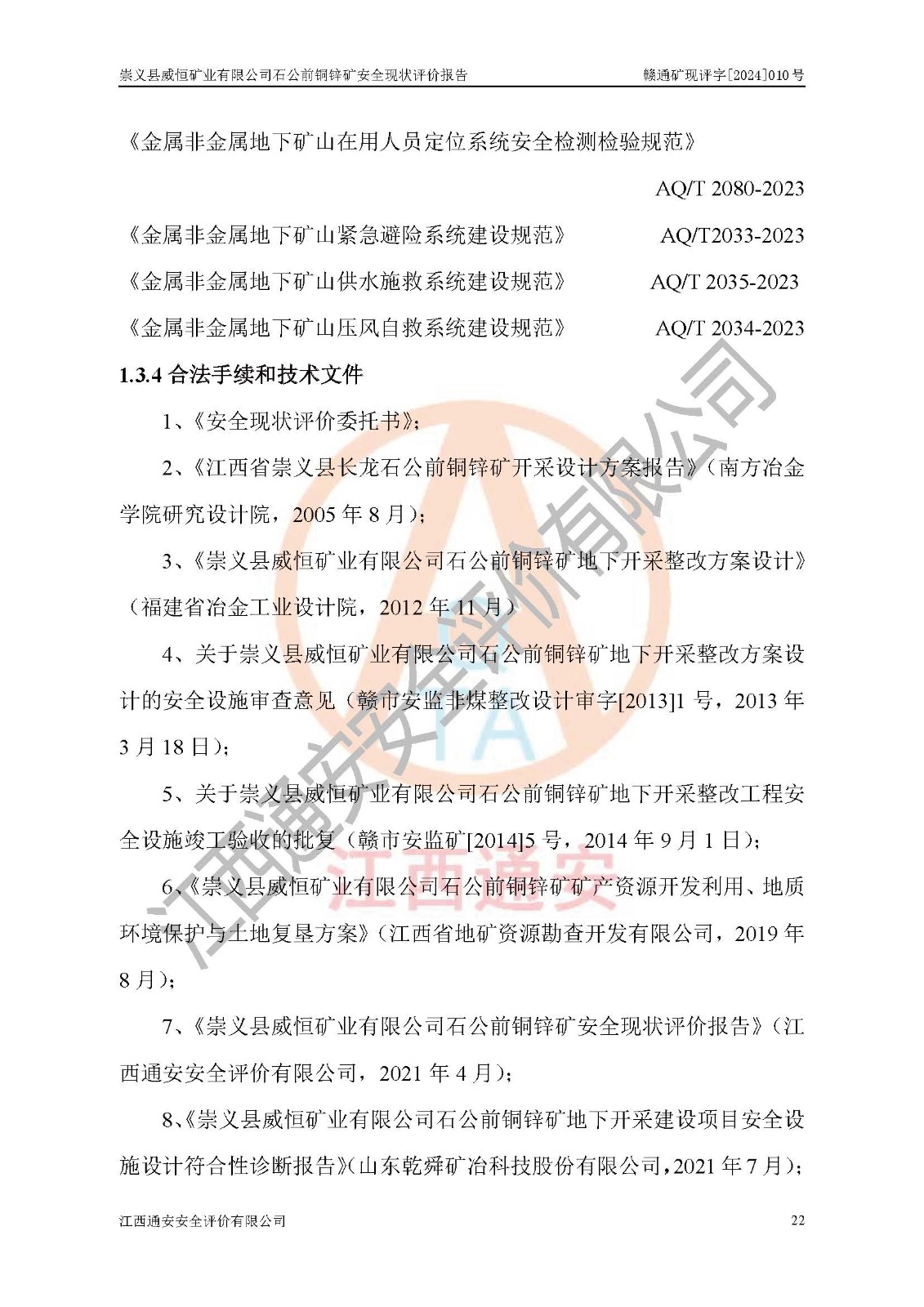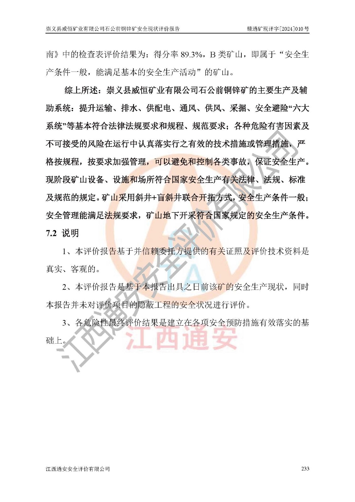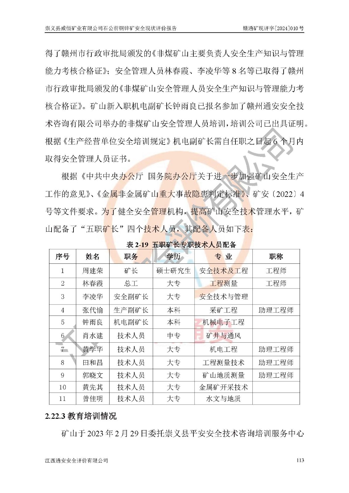 項目名稱 | 崇義縣威恒礦業(yè)有限公司石公前銅鋅礦安全現(xiàn)狀評價報告 | ||||