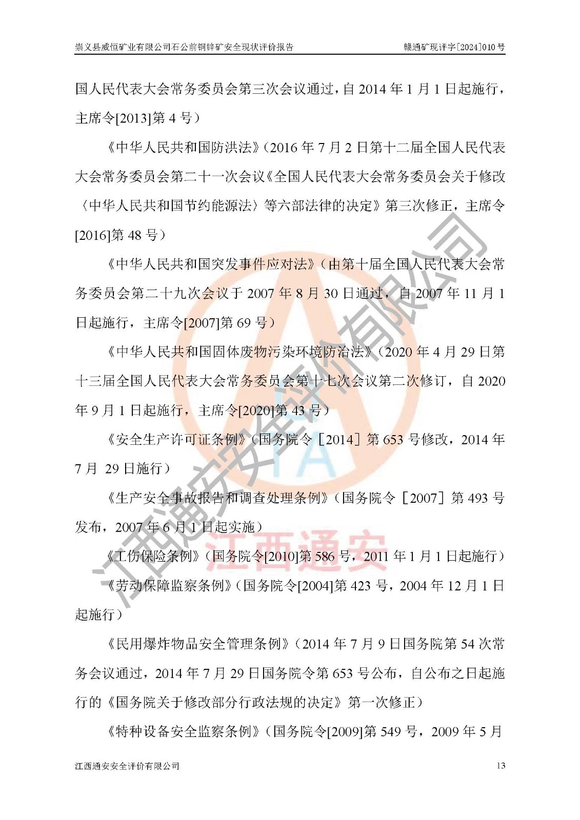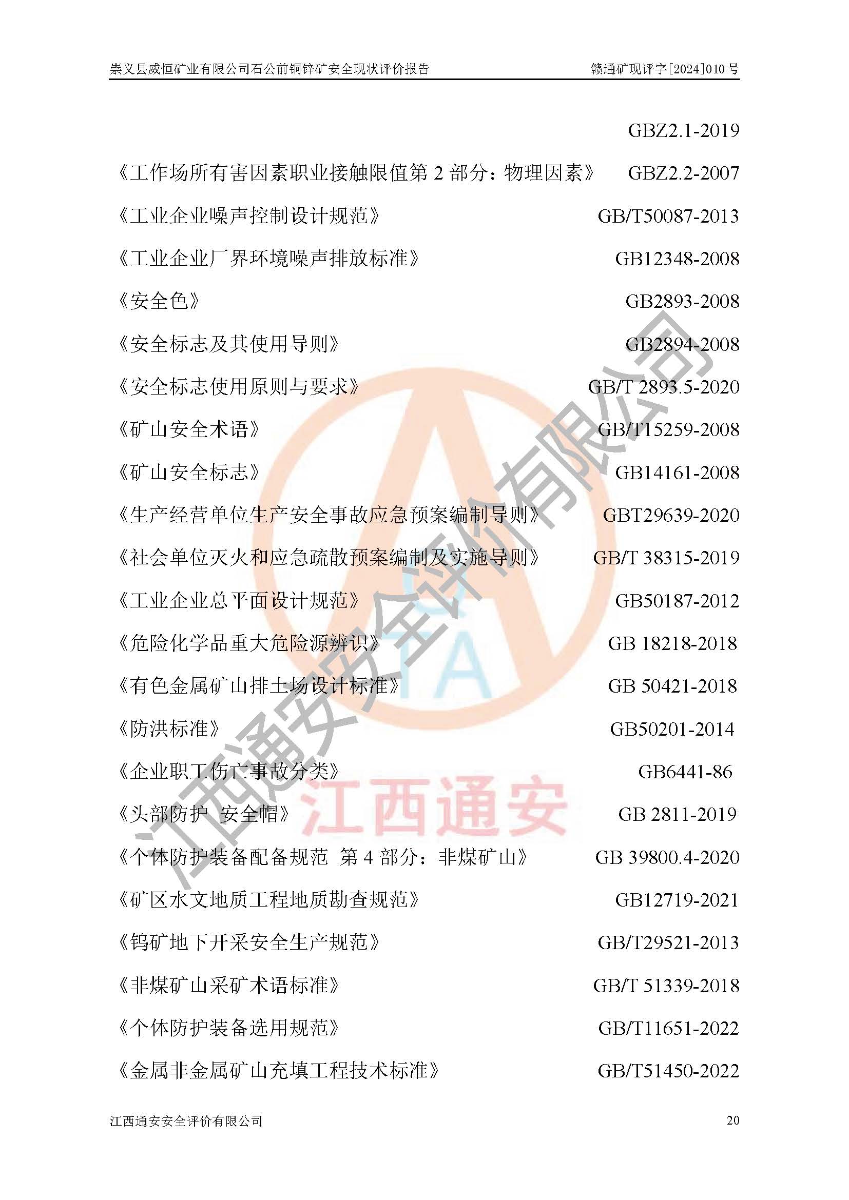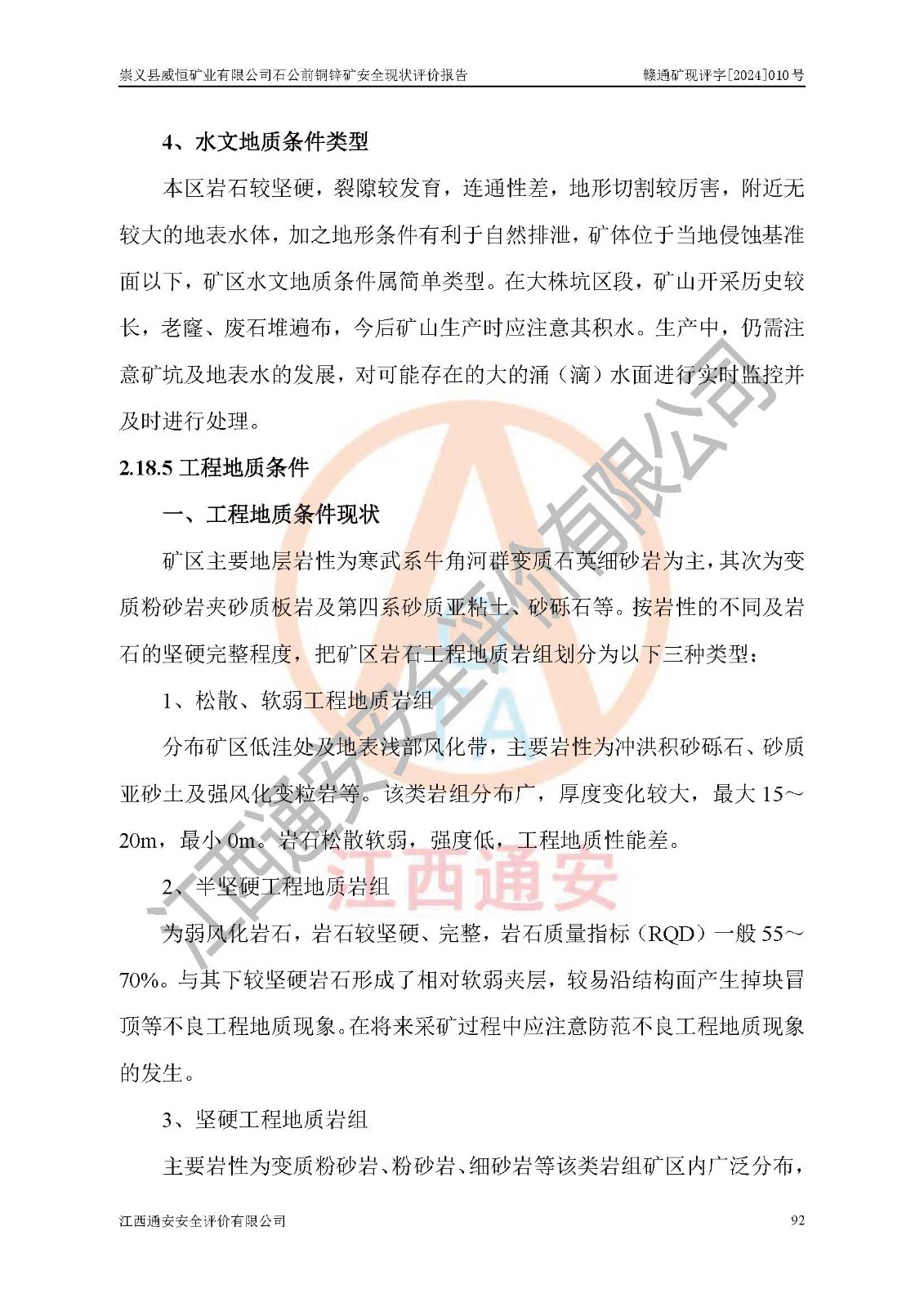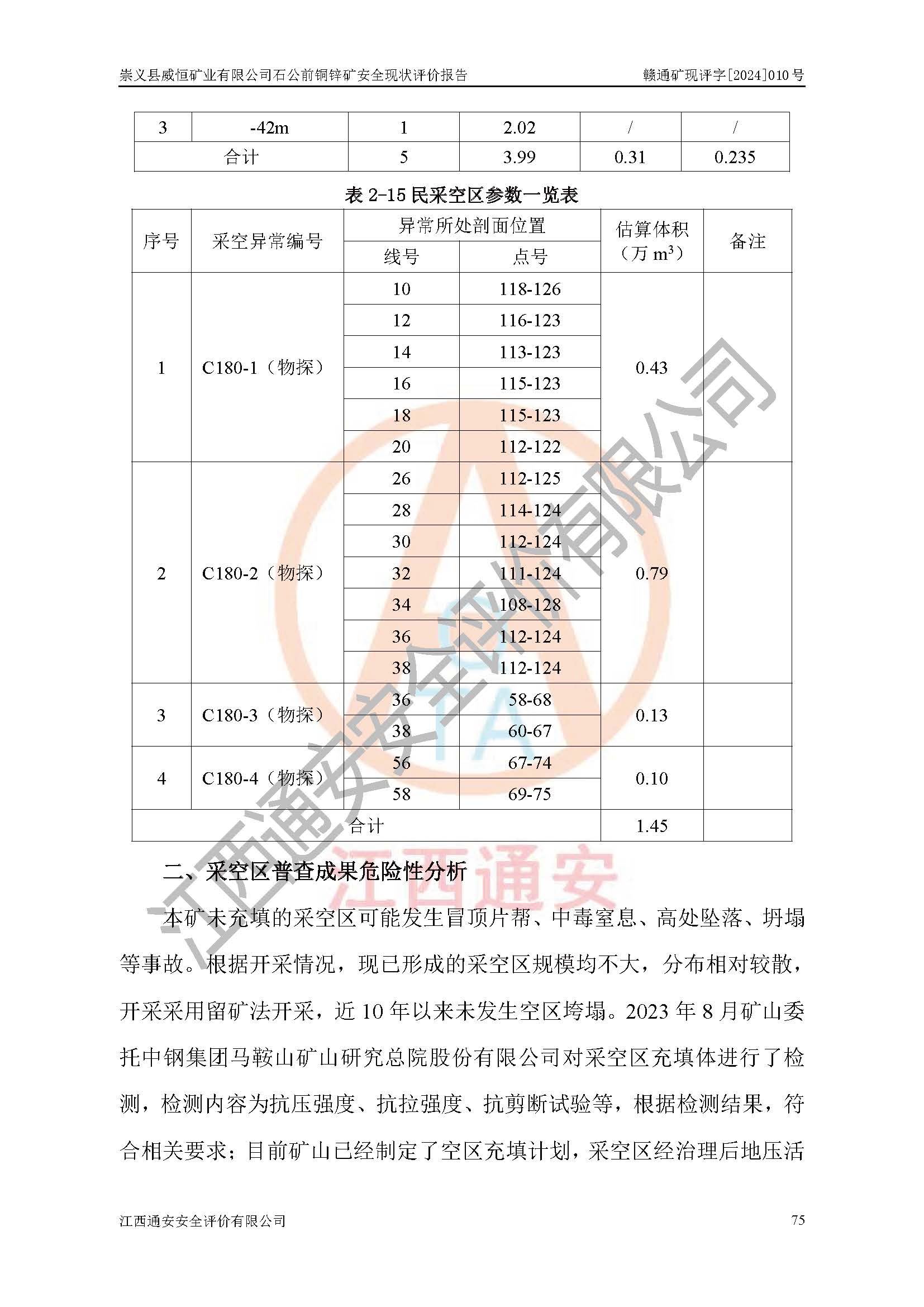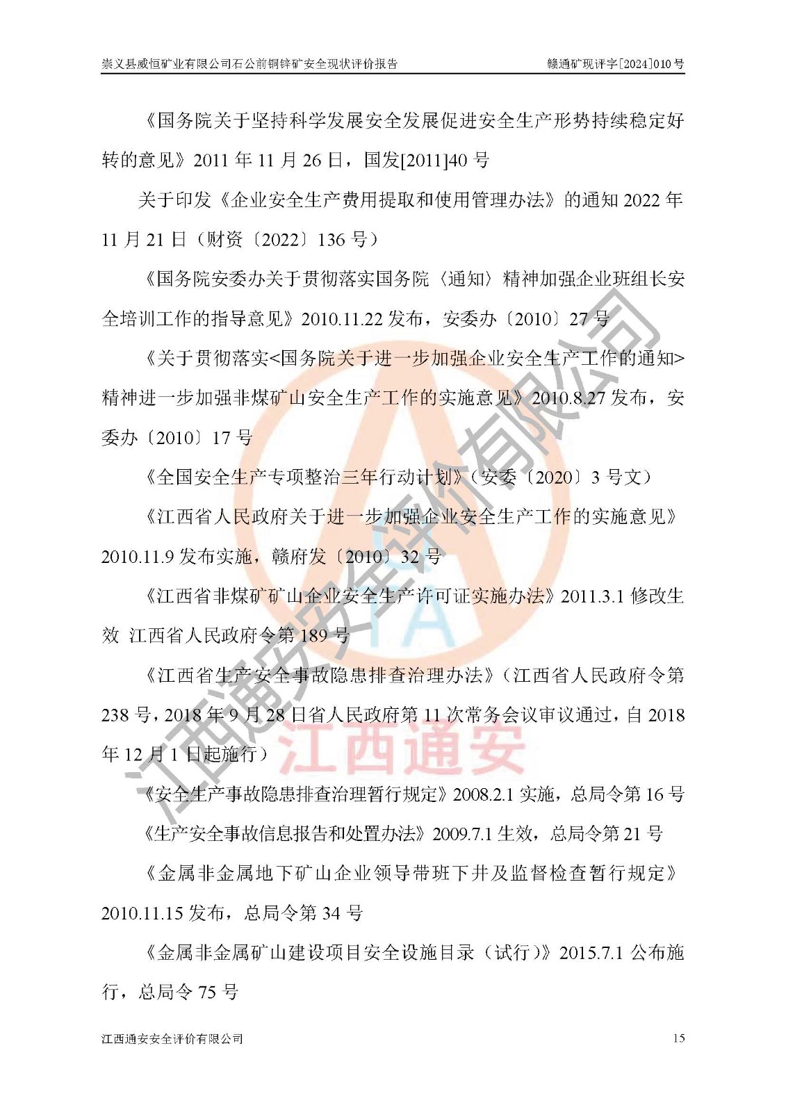 項目名稱 | 崇義縣威恒礦業(yè)有限公司石公前銅鋅礦安全現(xiàn)狀評價報告 | ||||