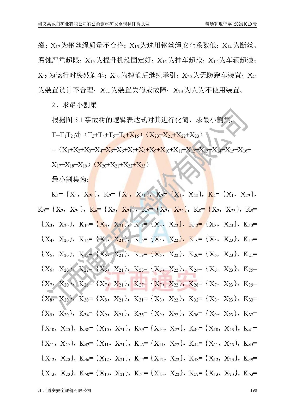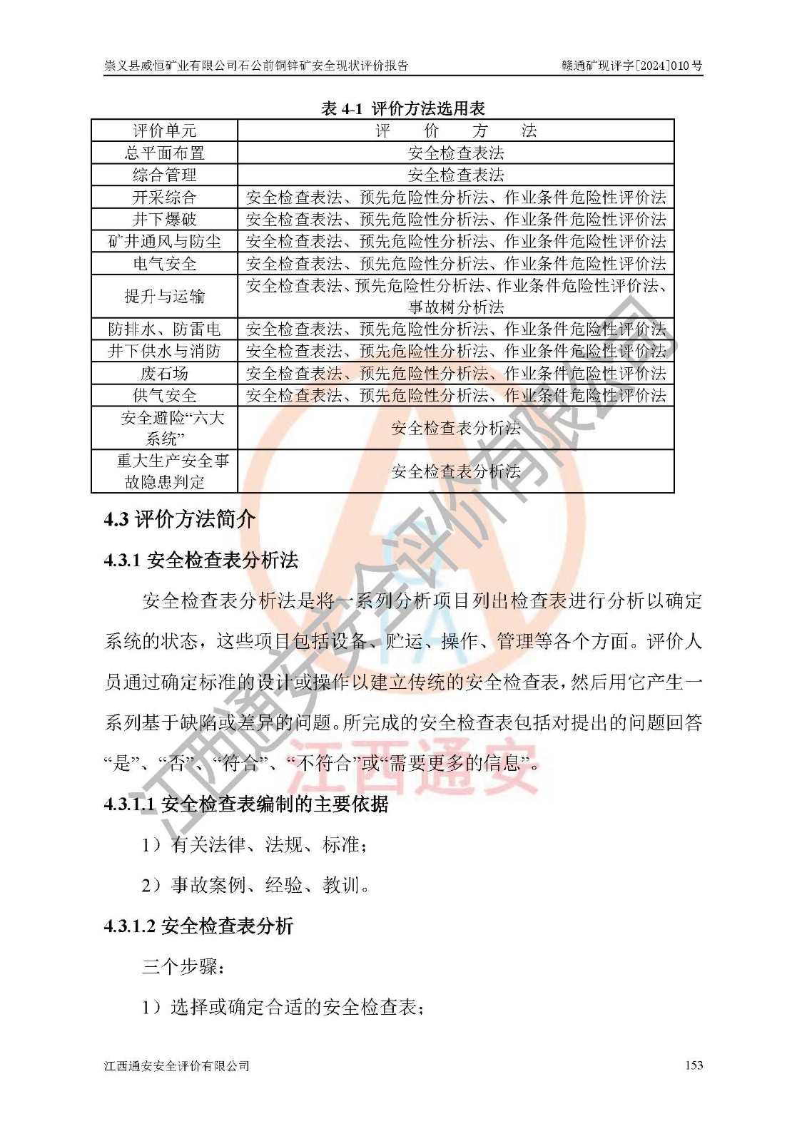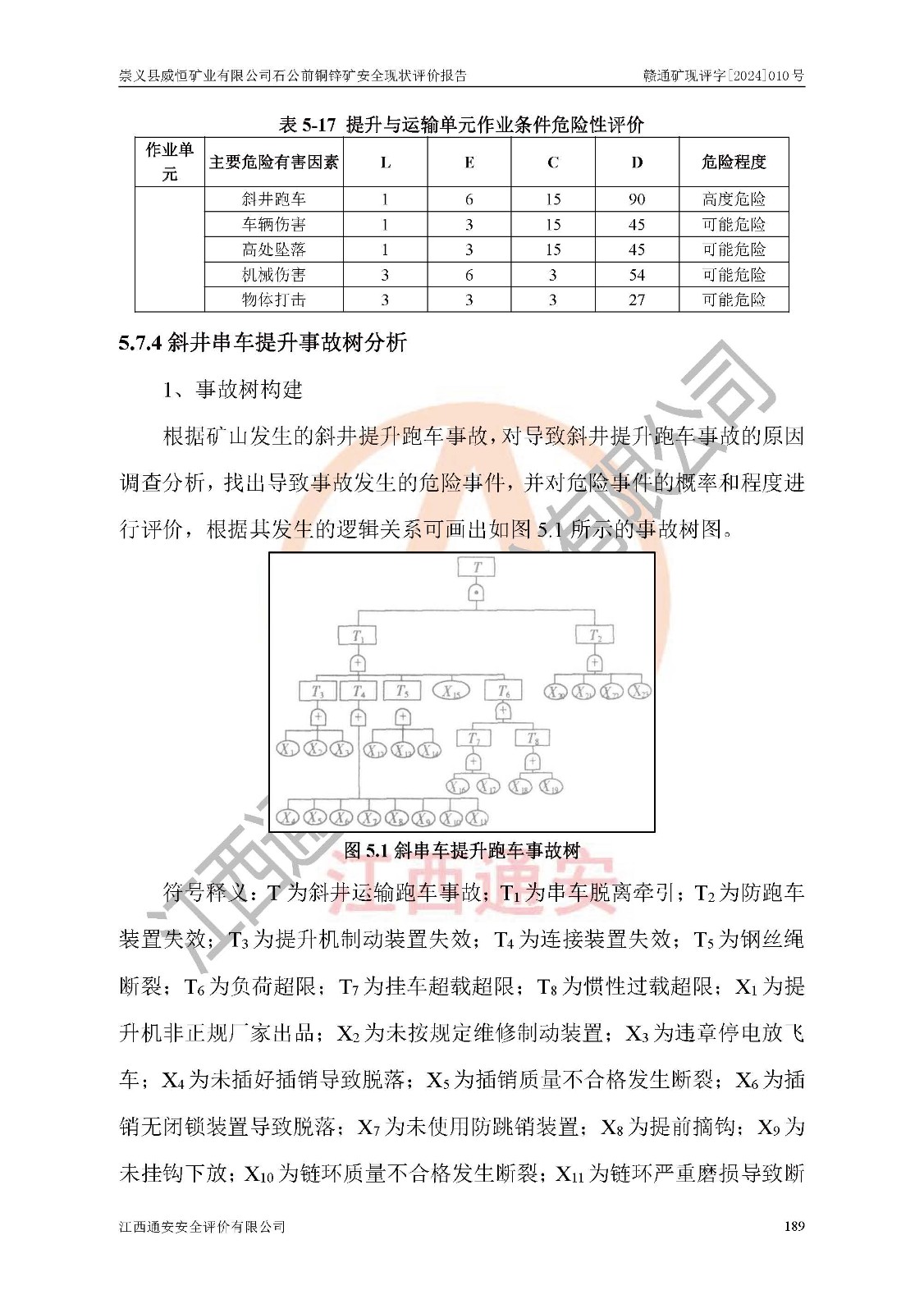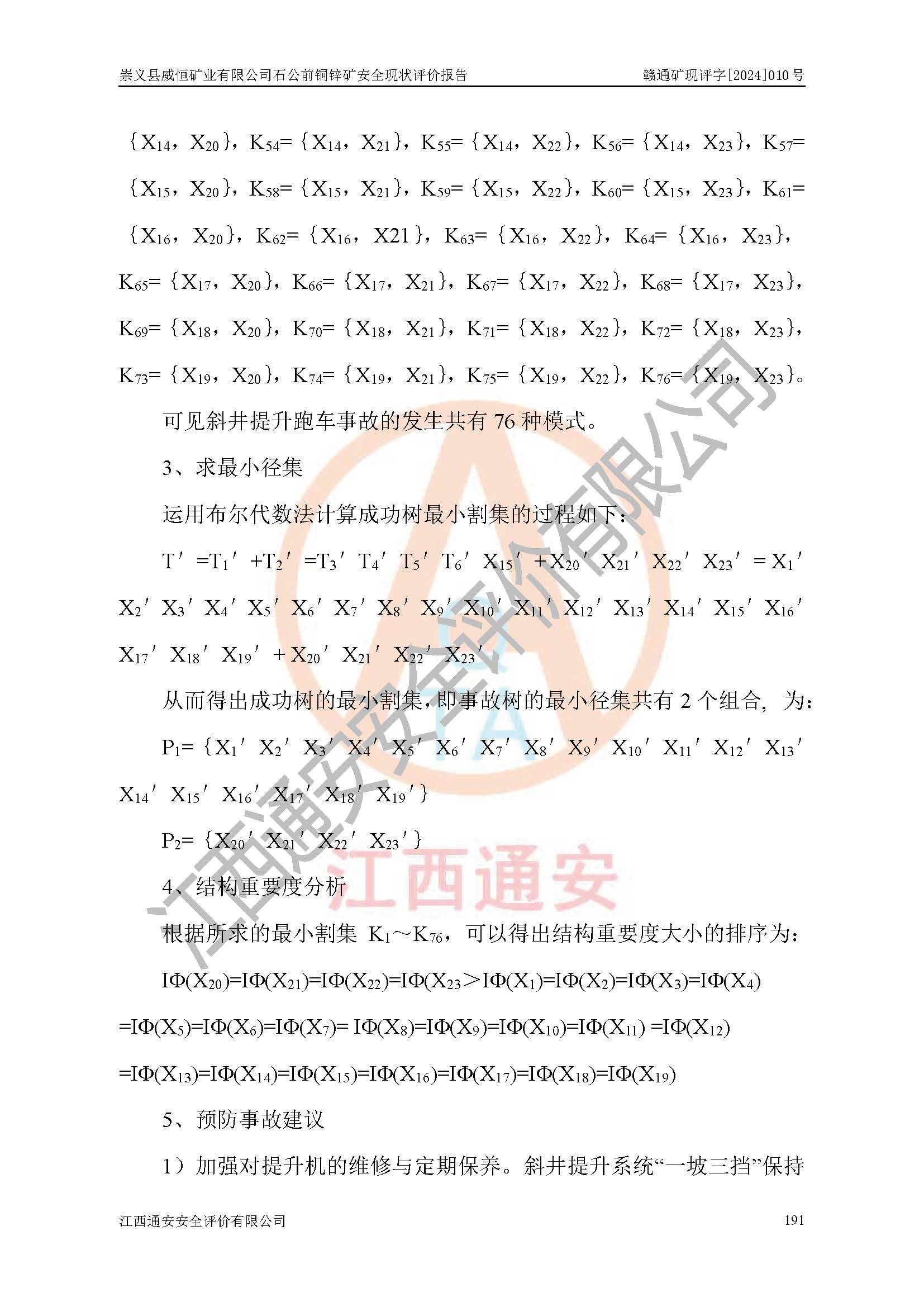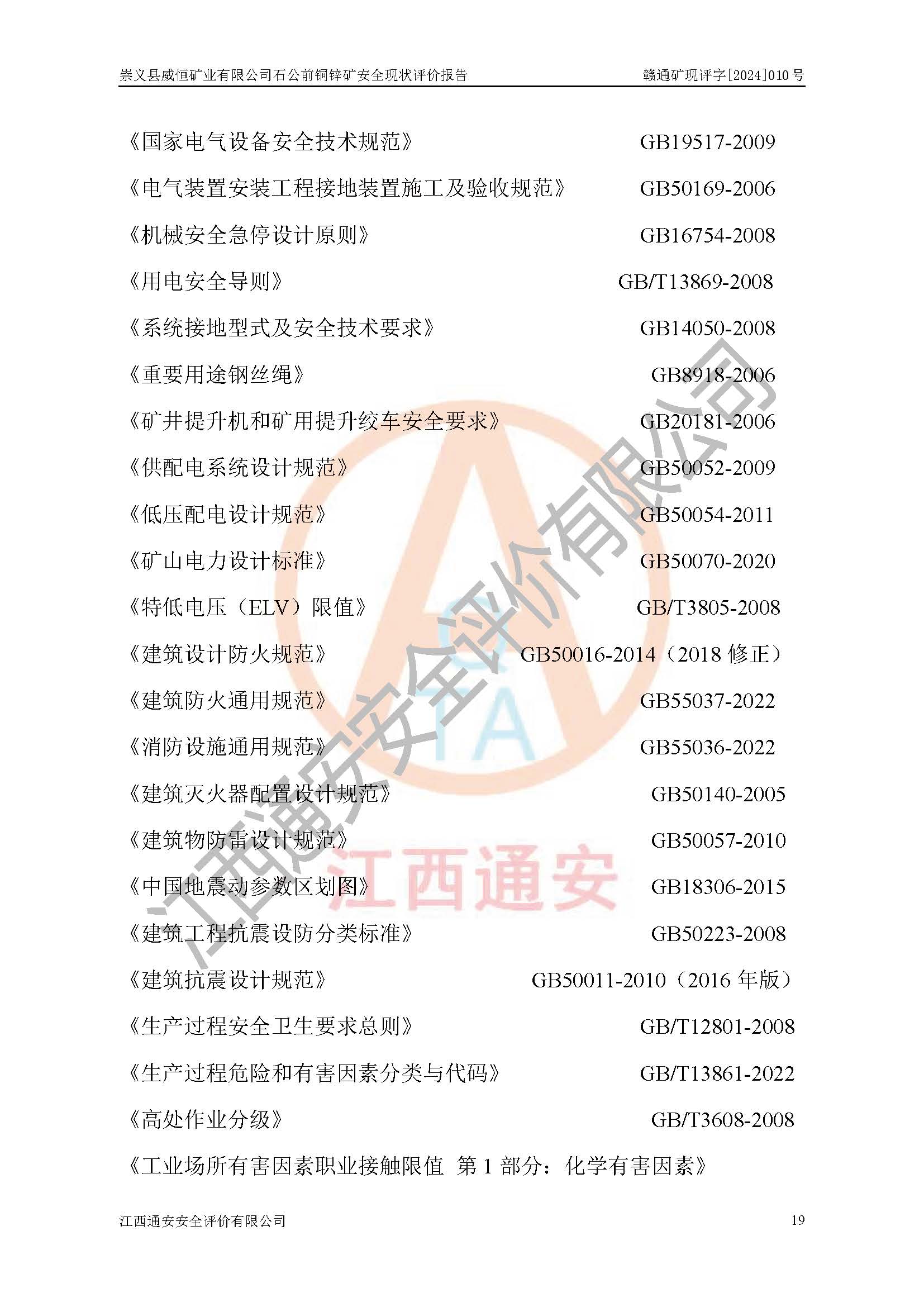 其它 | 崇義縣威恒礦業(yè)有限公司石公前銅鋅礦的主要生產(chǎn)及輔助系統(tǒng):提升運輸、排水、供配電、通風(fēng)、供風(fēng)、采掘、安全避險“六大系統(tǒng)”等基本符合法律法規(guī)要求和規(guī)程、規(guī)范要求;各種危險有害因素及不可接受的風(fēng)險在運行中認(rèn)真落實行之**的技術(shù)措施或管理措施,嚴(yán)格按規(guī)程,按要求加強管理,可以避免和控制各類事故,**安全生產(chǎn)。現(xiàn)階段礦山設(shè)備、設(shè)施和場所符合**安全生產(chǎn)有關(guān)法律、法規(guī)、標(biāo)準(zhǔn)及規(guī)范的規(guī)定。礦山采用斜井+盲斜井聯(lián)合開拓方式,安全生產(chǎn)條件一般;安全管理能滿足法規(guī)要求,礦山地下開采符合**規(guī)定的安全生產(chǎn)條件。 | ||||