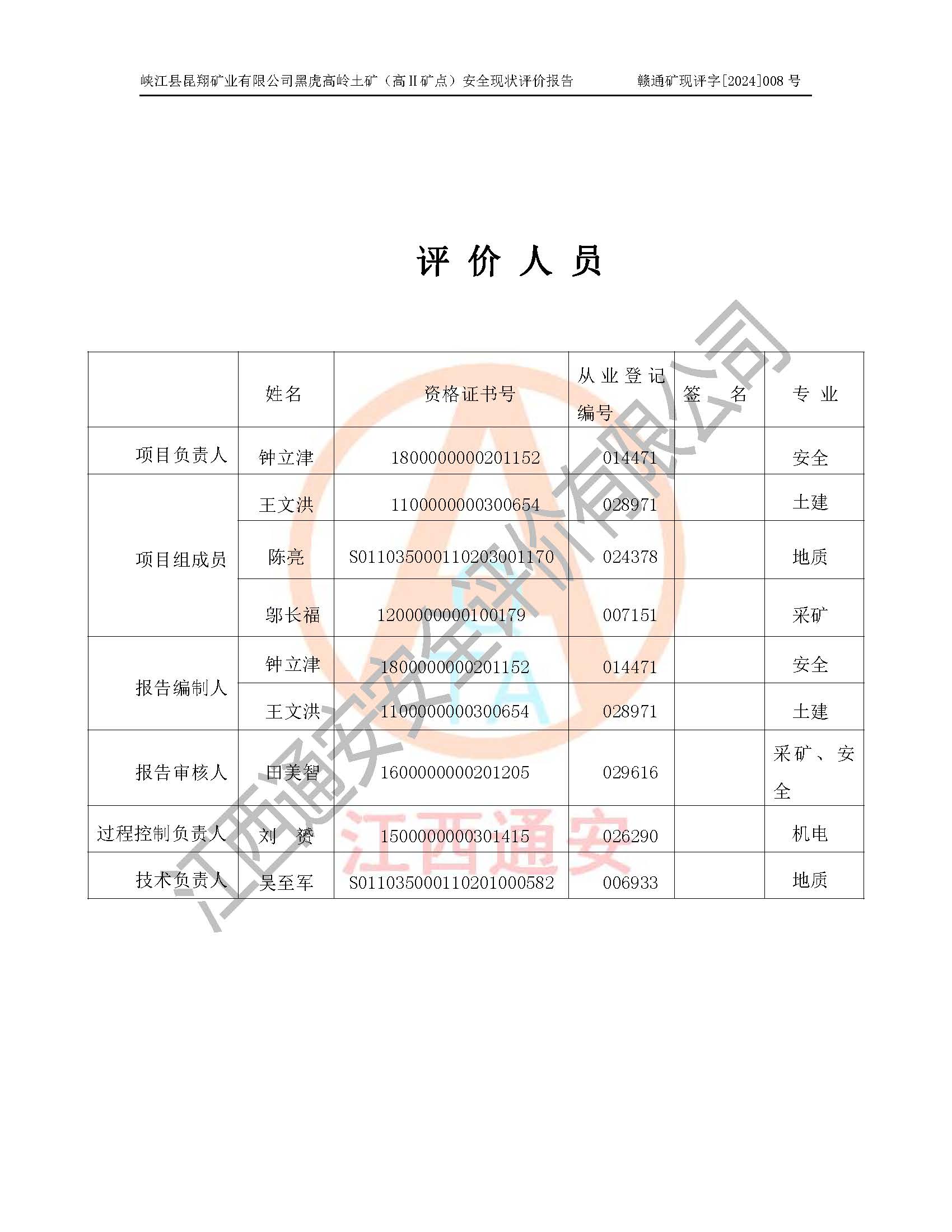 參與評價項目相關(guān)人員 | 姓名 | 資格證書號 | 從業(yè)登記號 | |