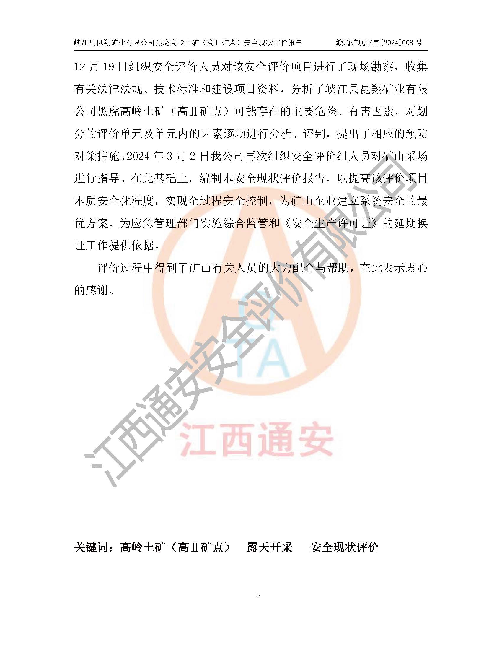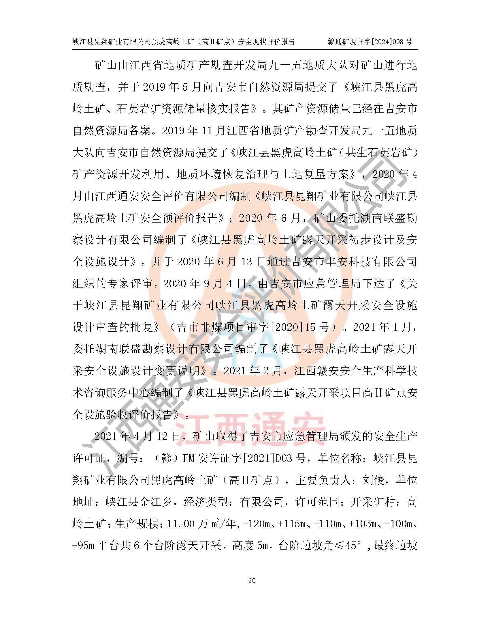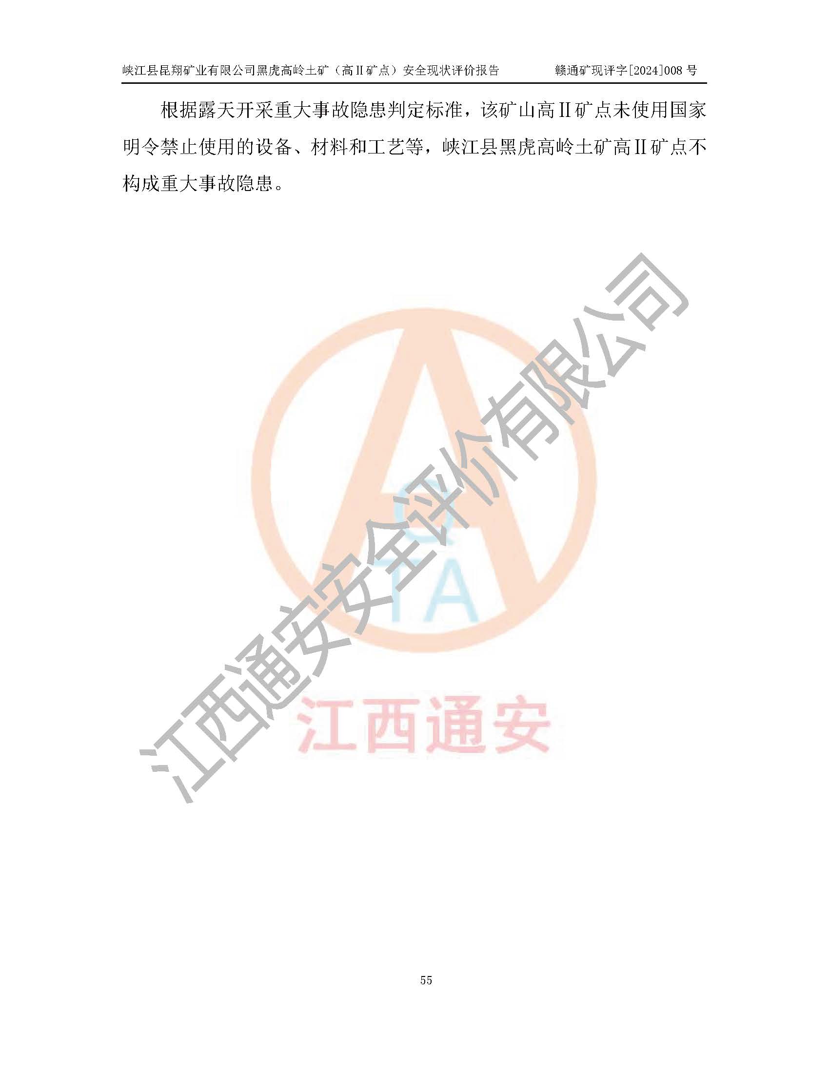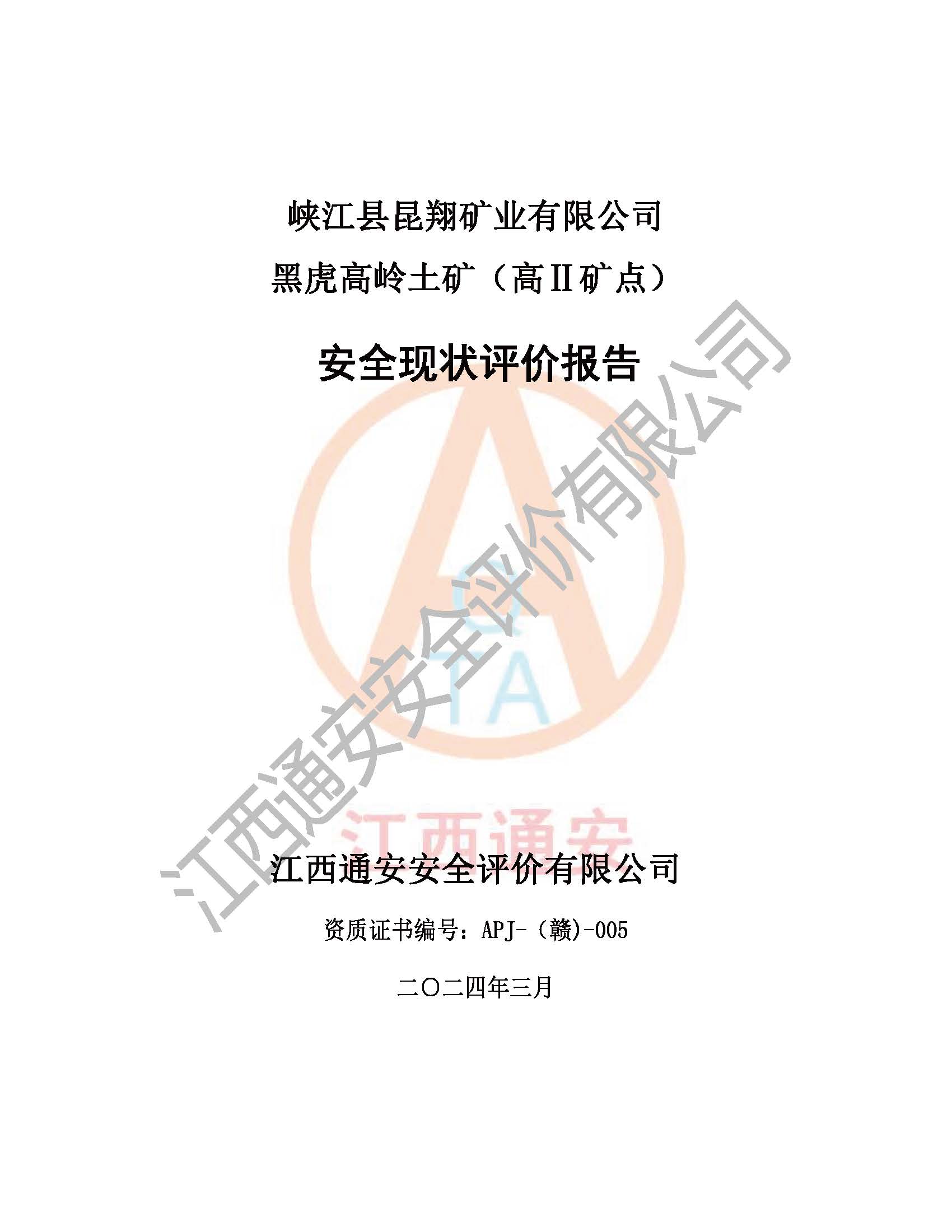 評價報告名稱 | 峽江縣昆翔礦業(yè)有限公司黑虎高嶺土礦(高Ⅱ礦點)安全現(xiàn)狀評價報告 | |||