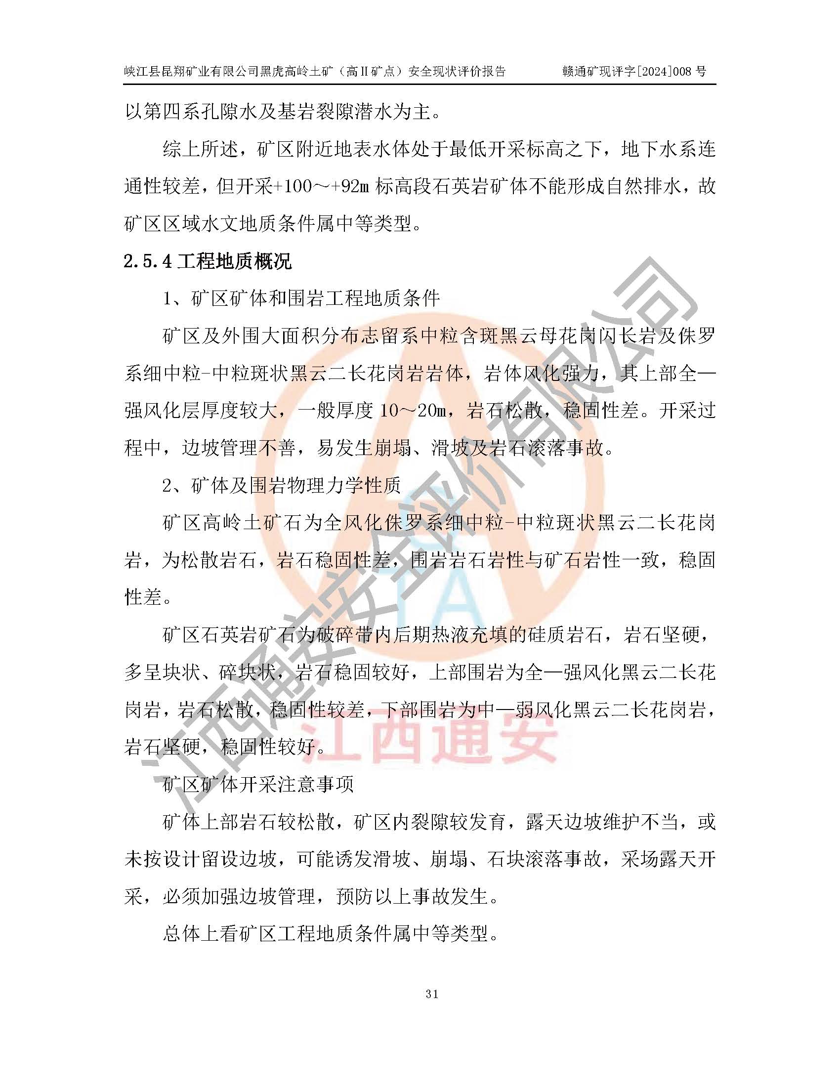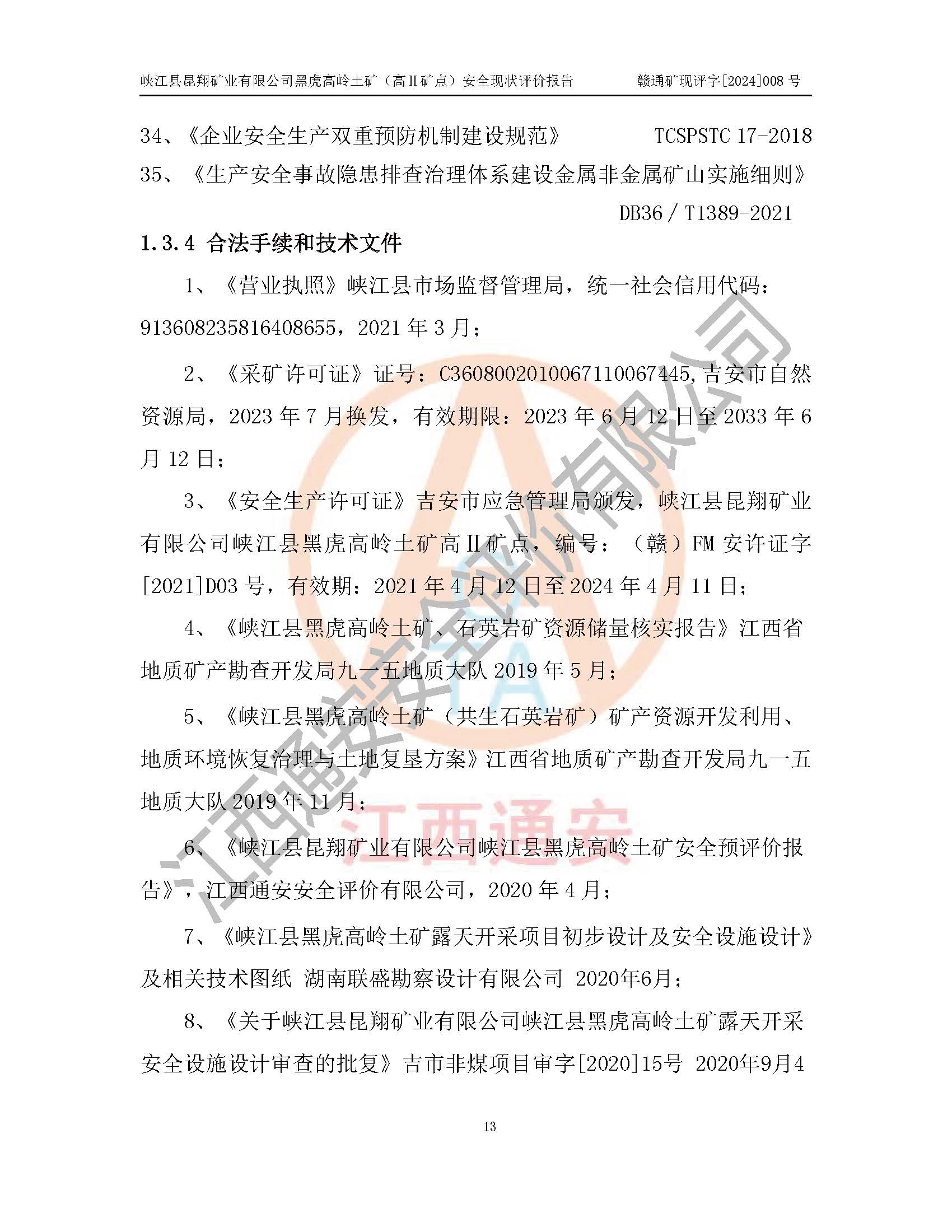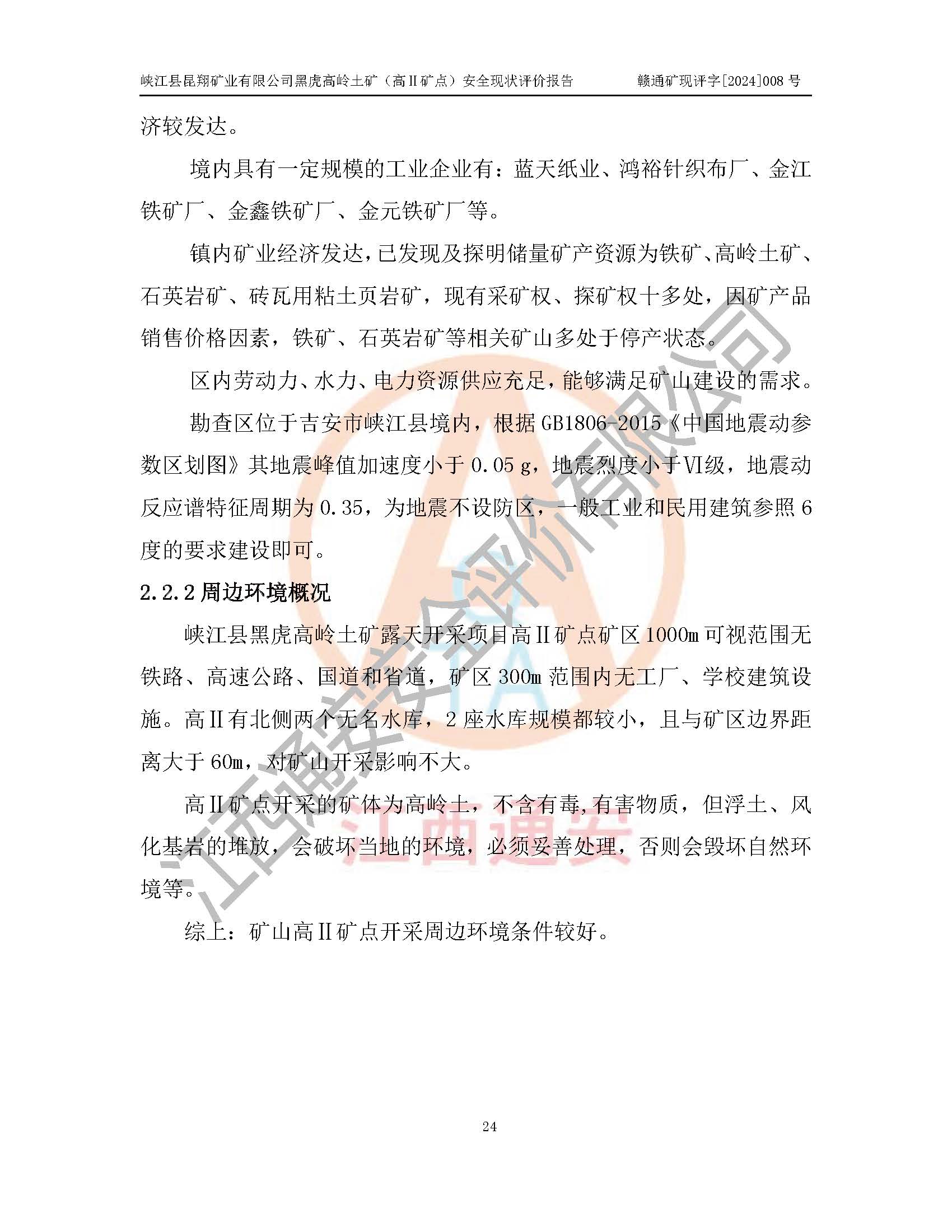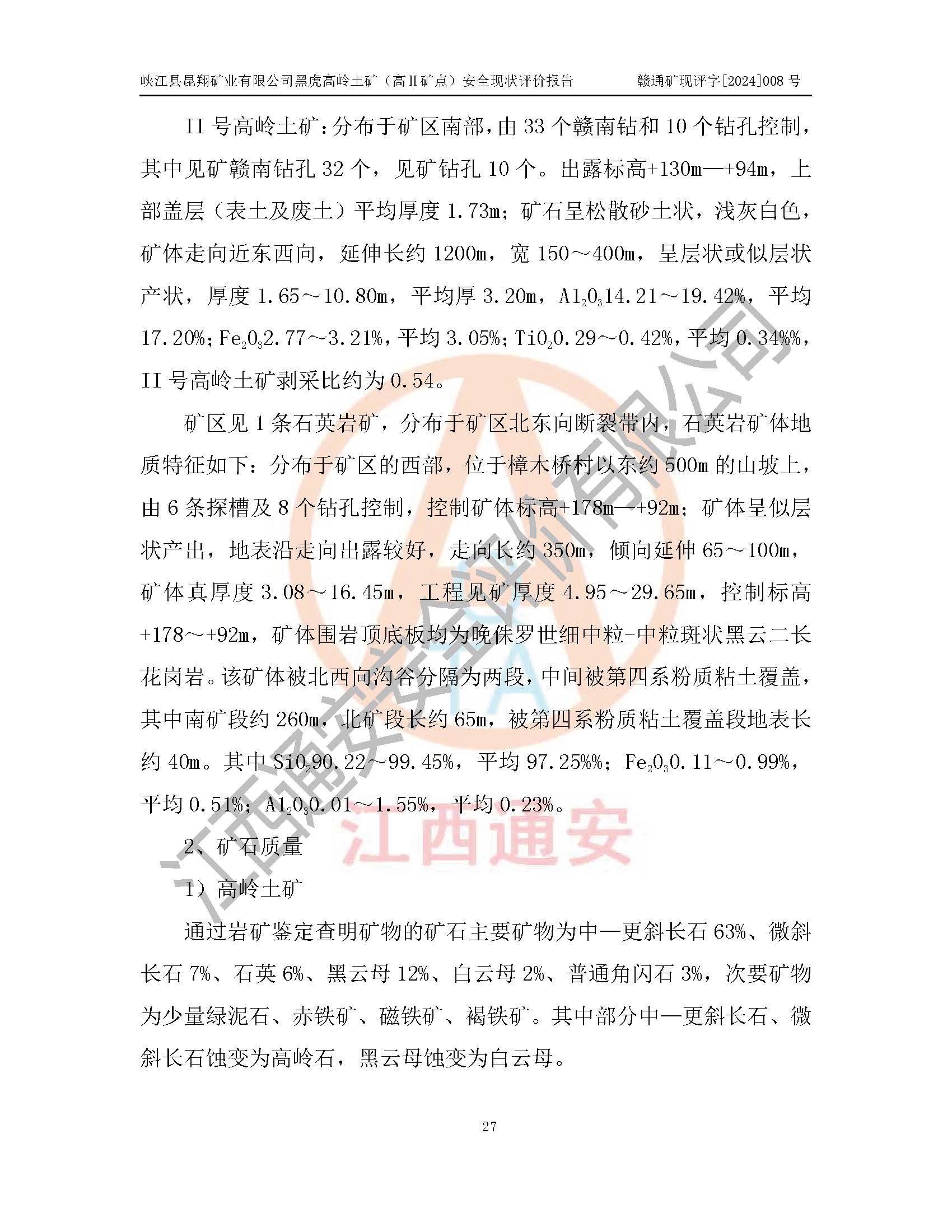 評價報告名稱 | 峽江縣昆翔礦業(yè)有限公司黑虎高嶺土礦(高Ⅱ礦點)安全現(xiàn)狀評價報告 | |||