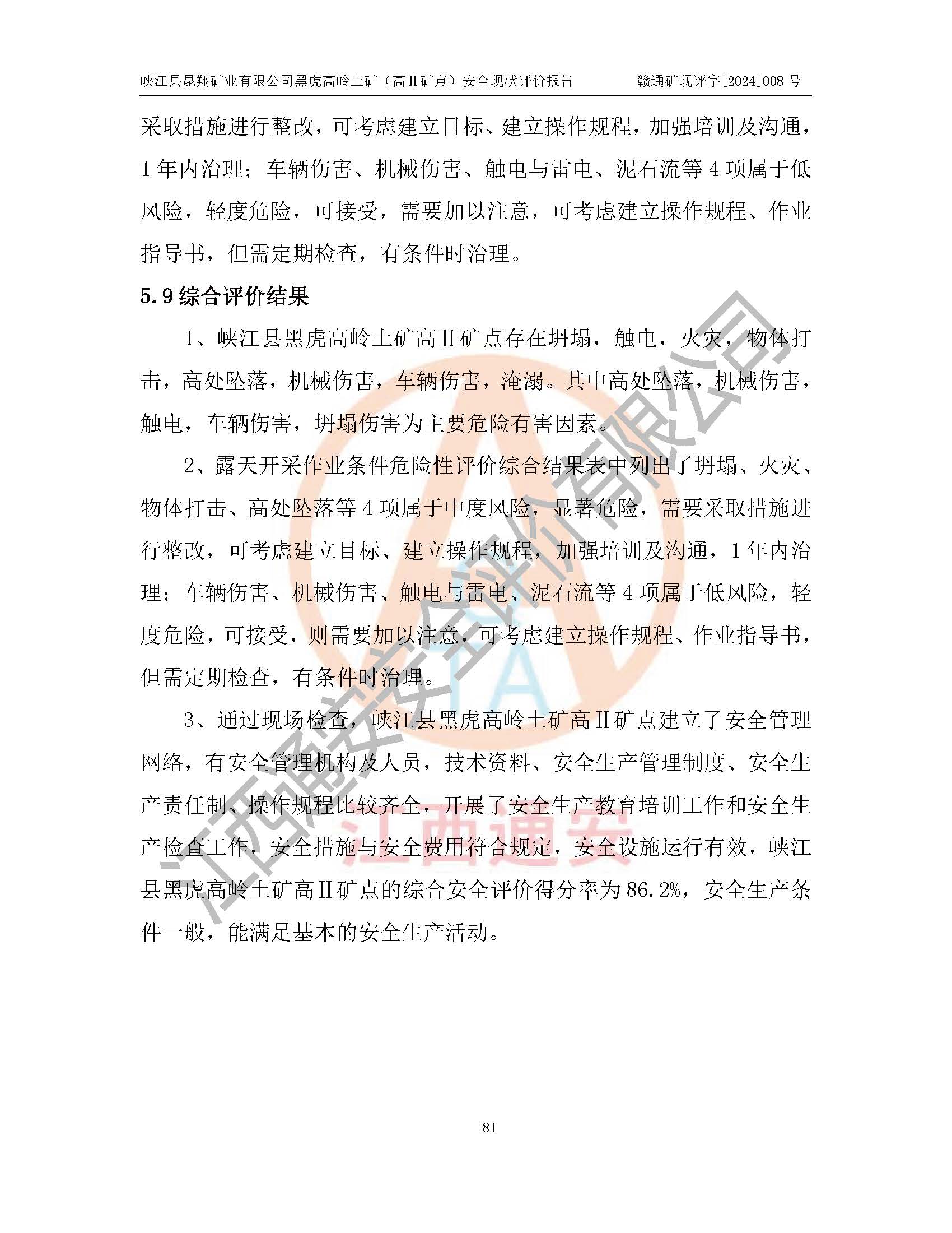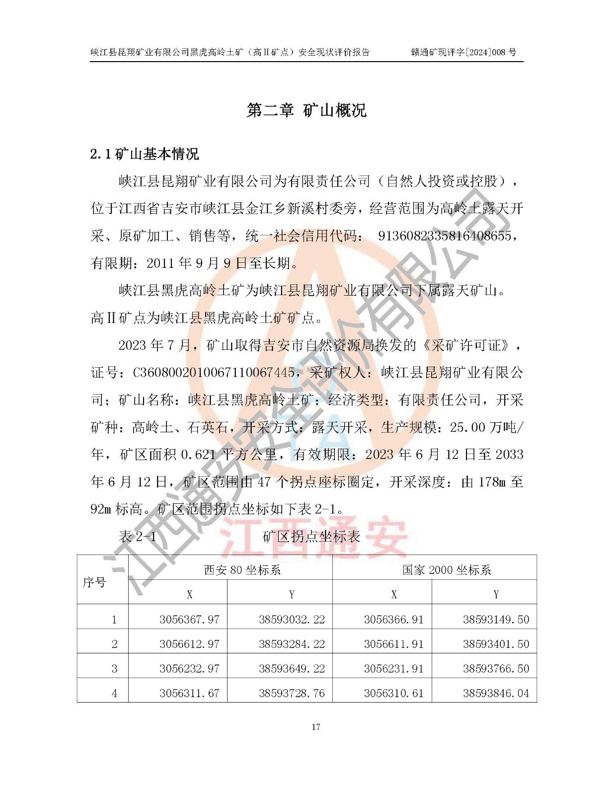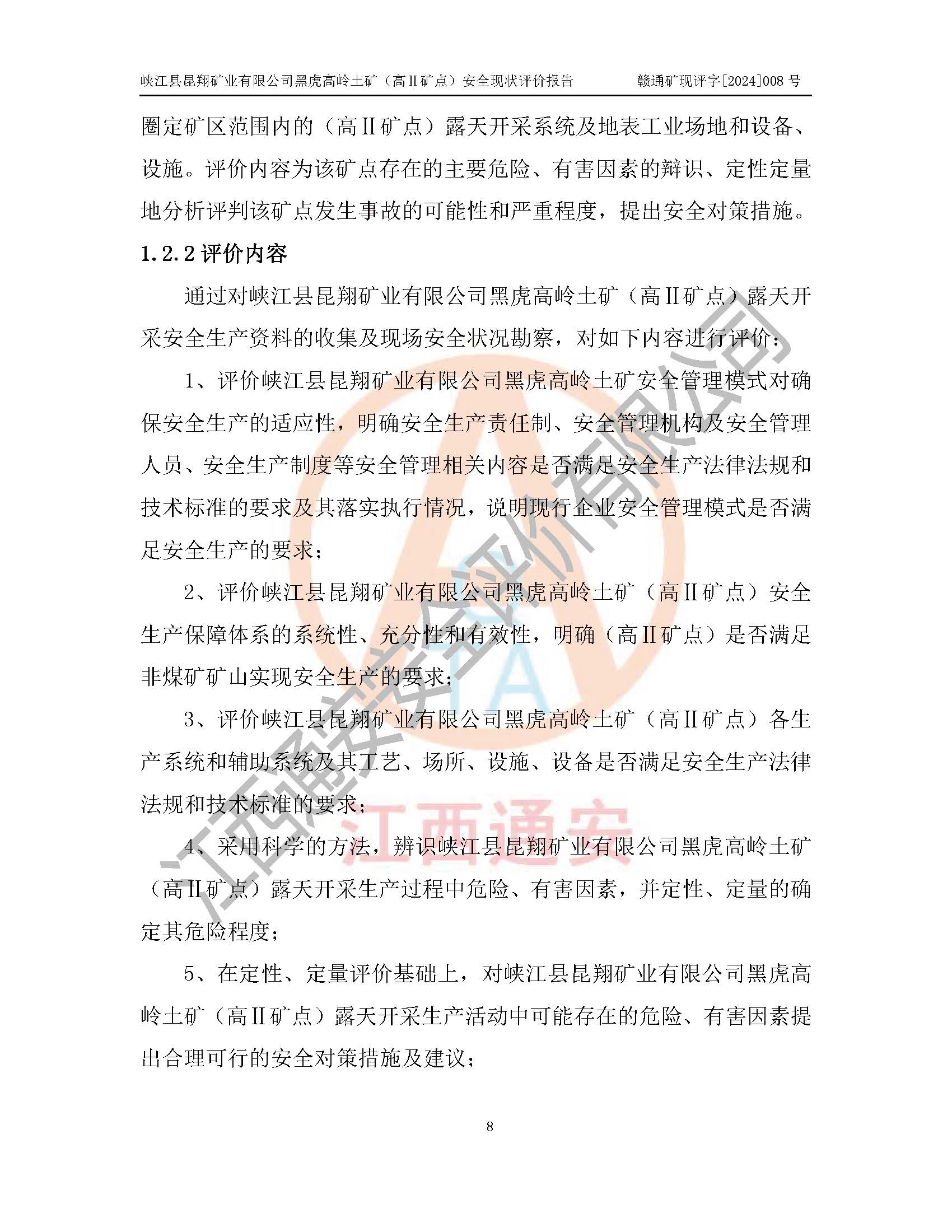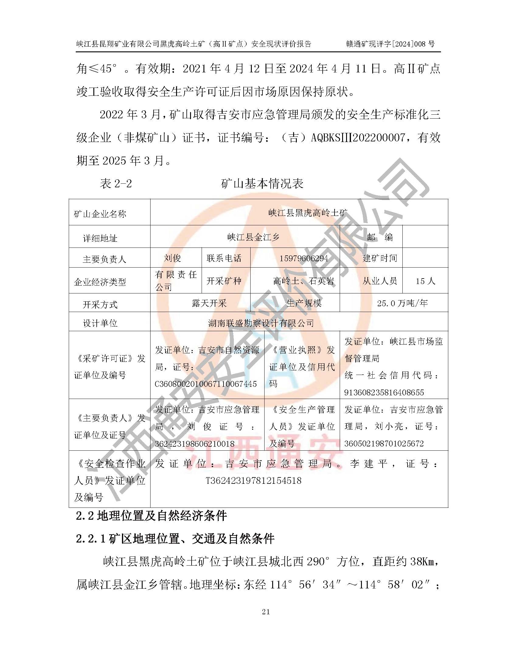 評價報告名稱 | 峽江縣昆翔礦業(yè)有限公司黑虎高嶺土礦(高Ⅱ礦點)安全現(xiàn)狀評價報告 | |||