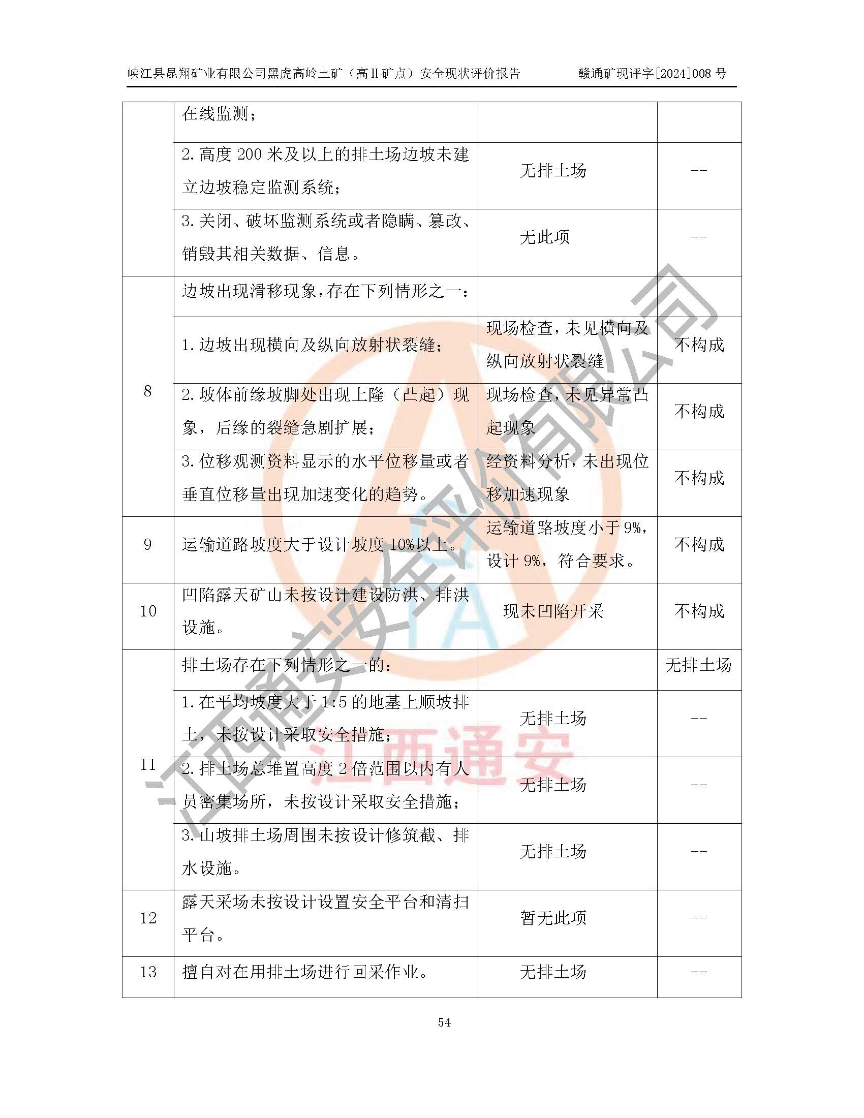評價結(jié)論 | 峽江縣黑虎高嶺土礦高Ⅱ礦點設(shè)備、設(shè)施和場所基本符合**安全生產(chǎn)有關(guān)法律、法規(guī)、標準及規(guī)范的要求。礦山高Ⅱ礦點采用露天開采、公路開拓、汽車運輸方式,安全生產(chǎn)條件一般,能滿足基本的安全生產(chǎn)活動;安全管理能滿足法規(guī)要求,高Ⅱ礦點露天開采符合**規(guī)定的安全生產(chǎn)條件。 | |||