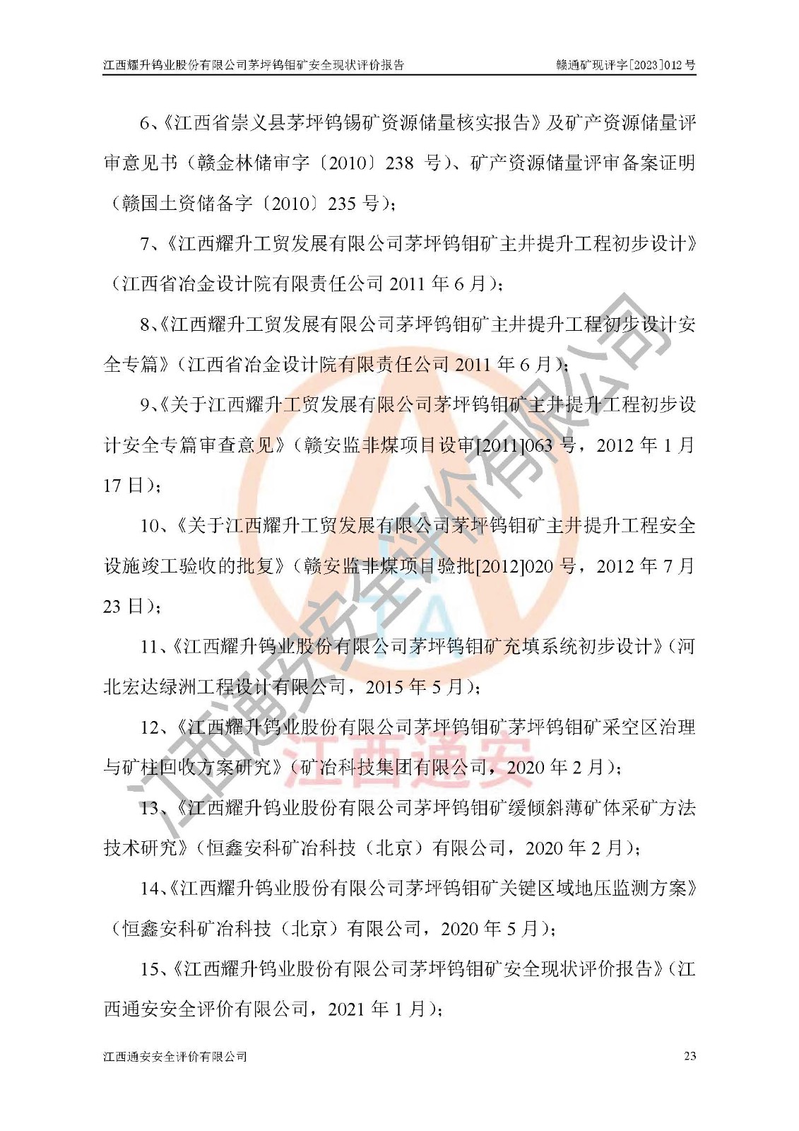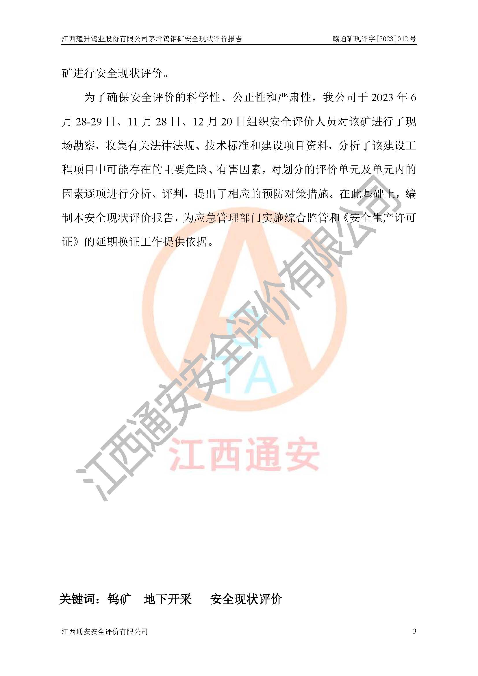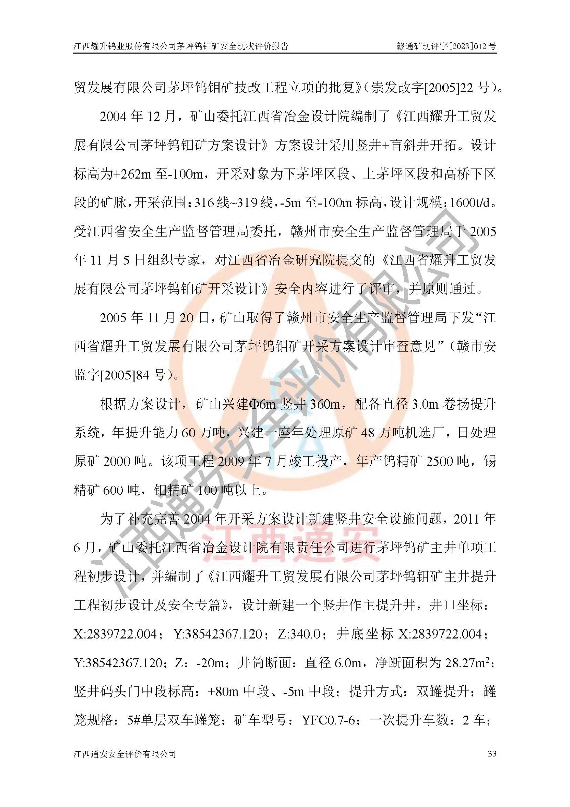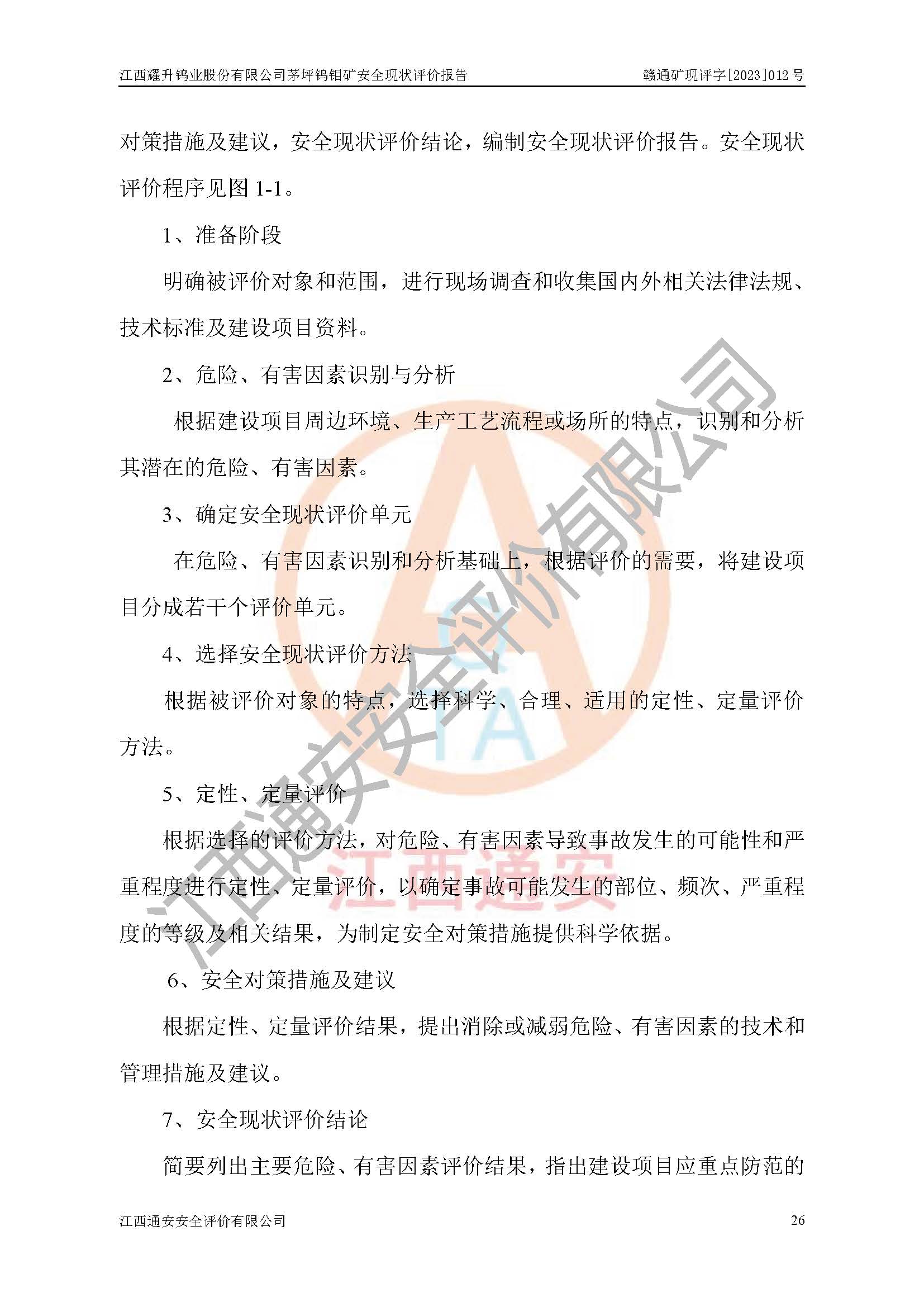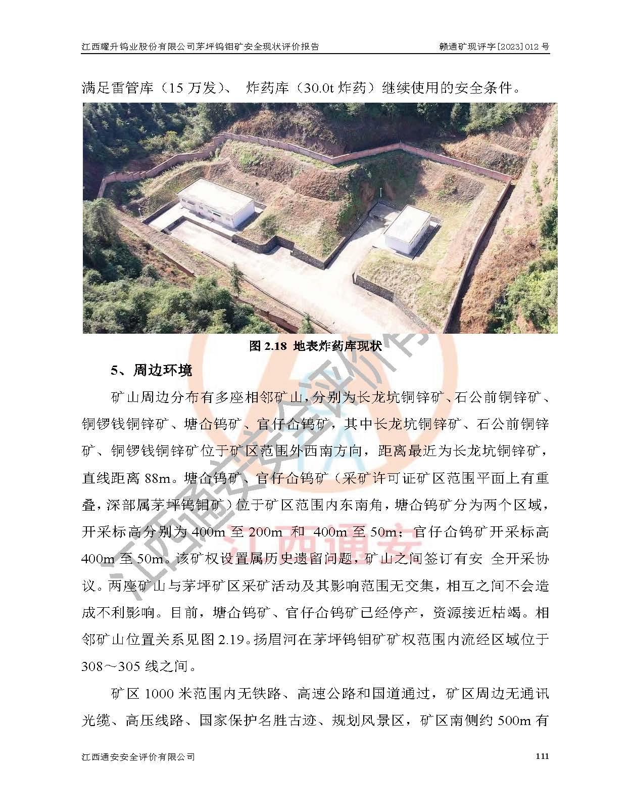 項目名稱 | 江西耀升鎢業(yè)股份有限公司茅坪鎢鉬礦安全現(xiàn)狀評價報告 | ||||