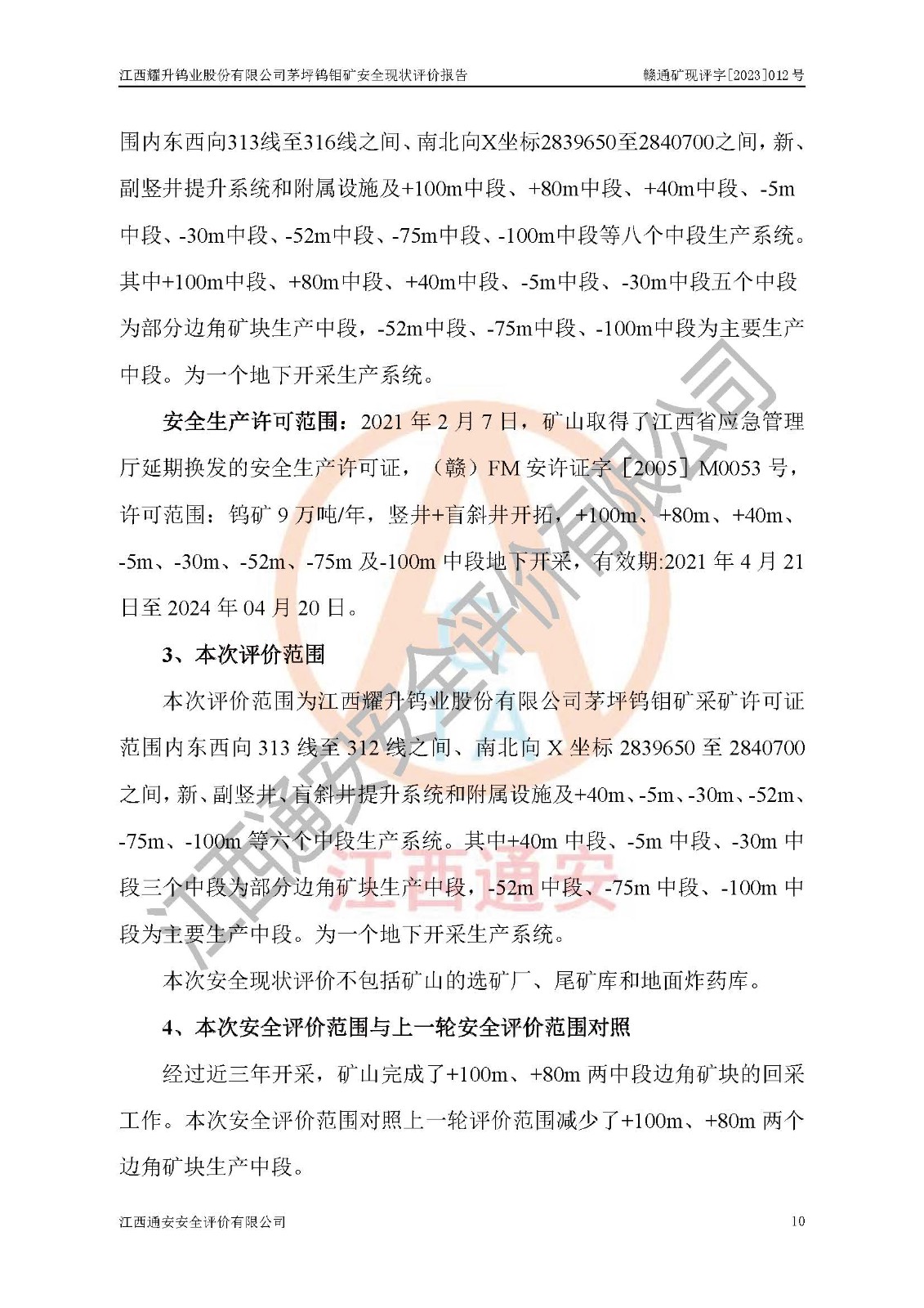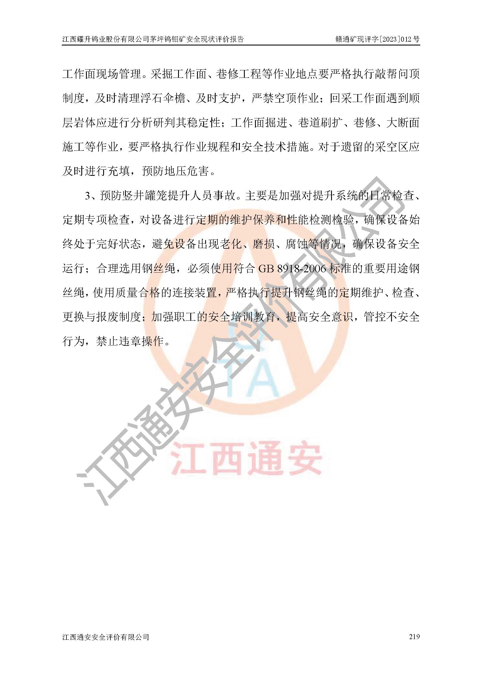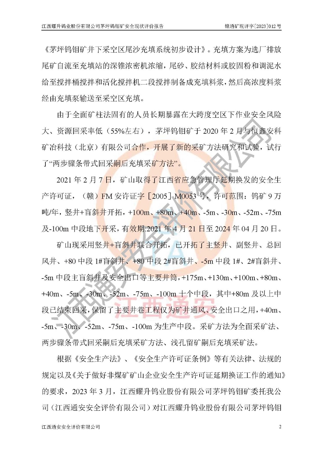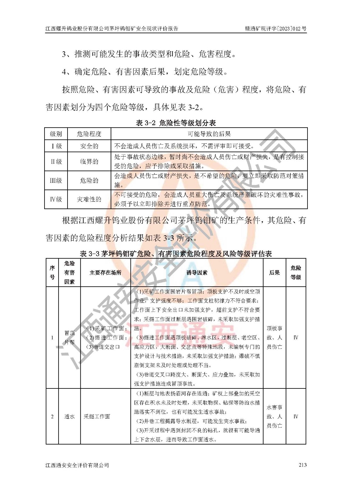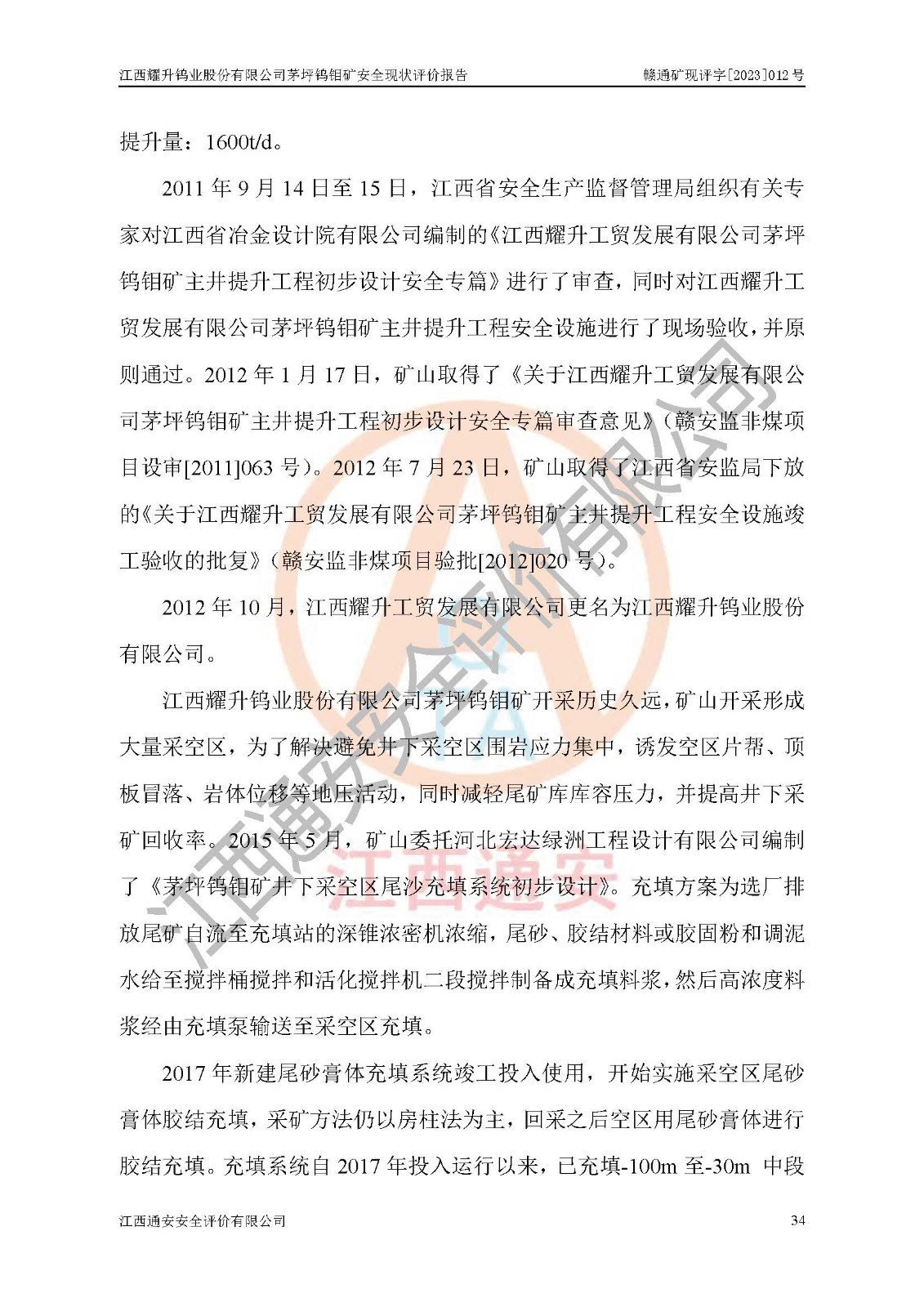 項目名稱 | 江西耀升鎢業(yè)股份有限公司茅坪鎢鉬礦安全現(xiàn)狀評價報告 | ||||