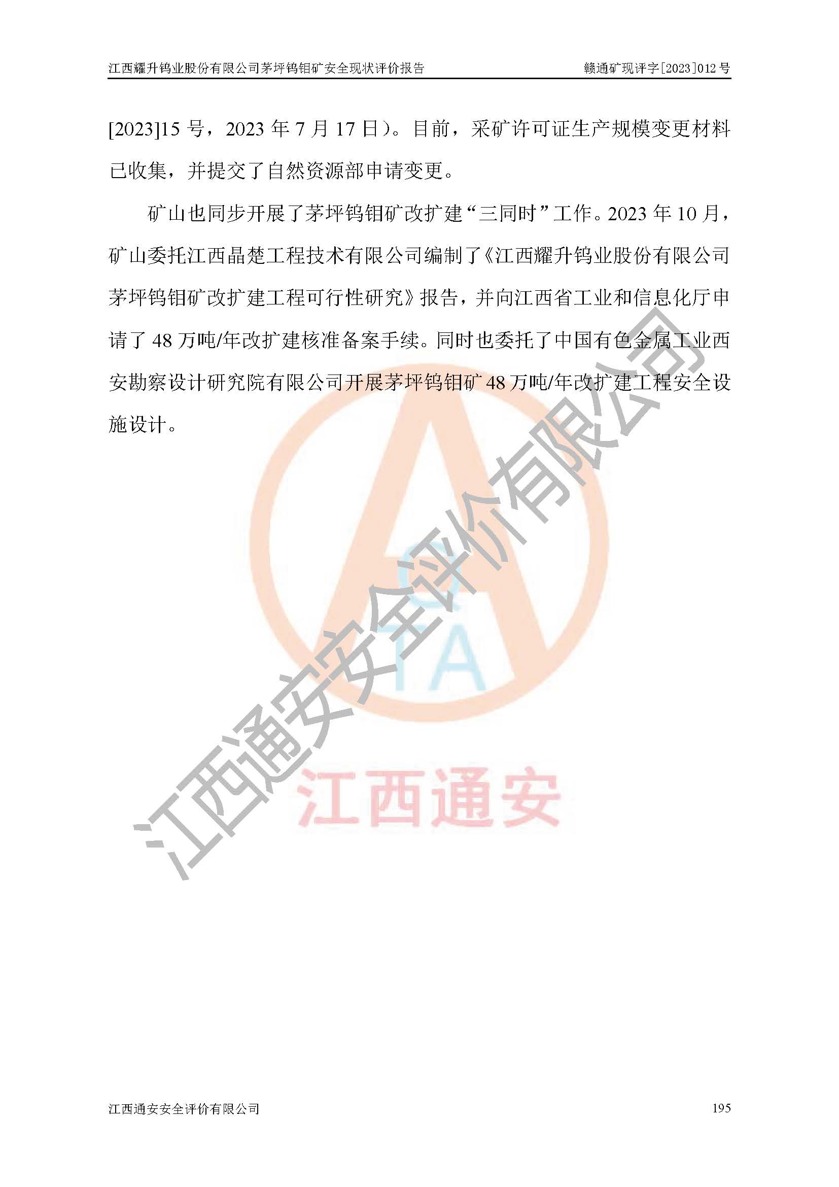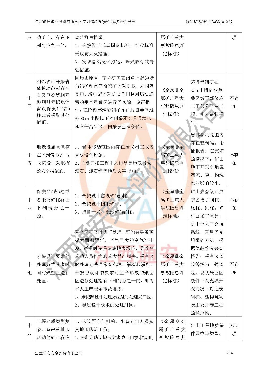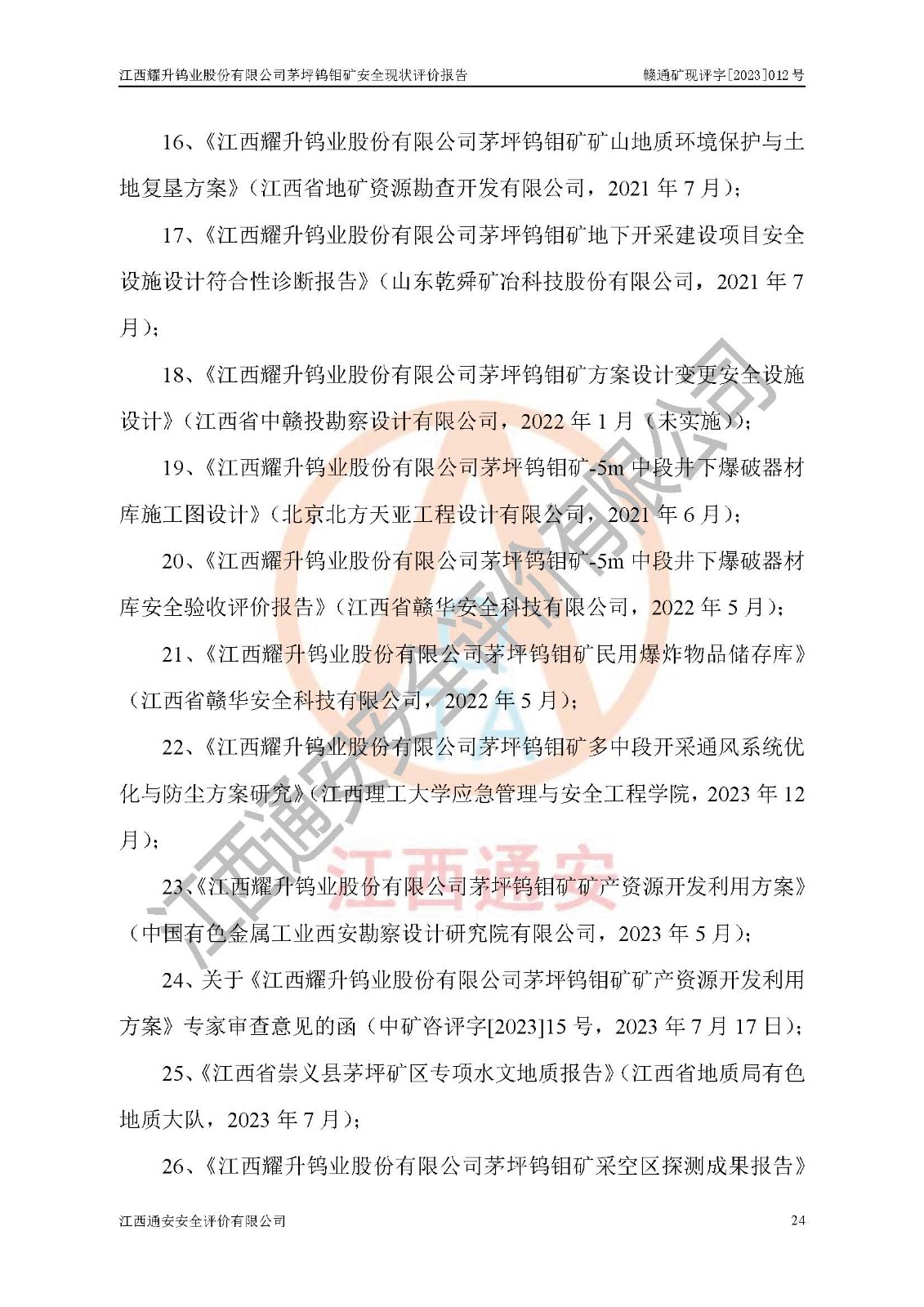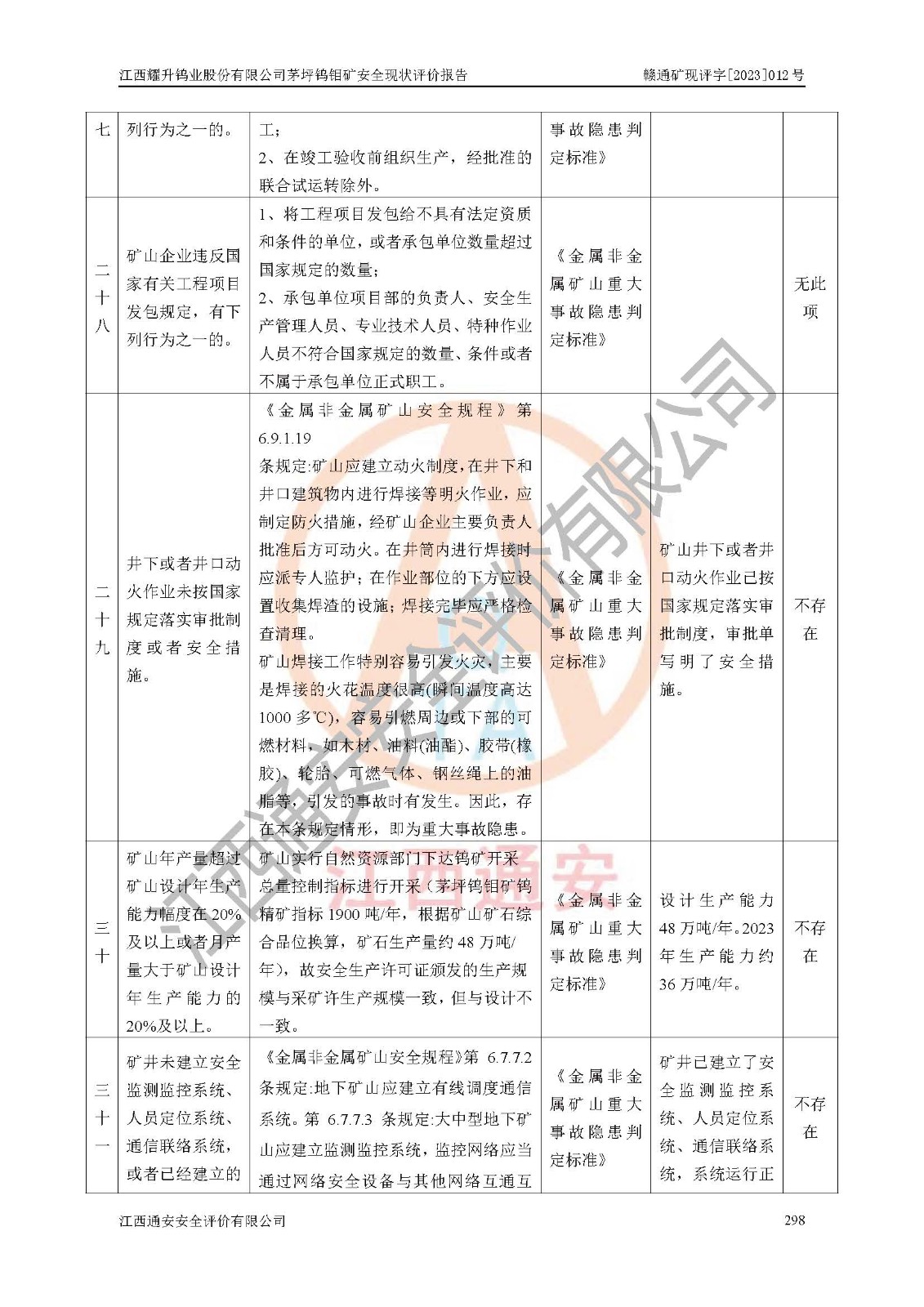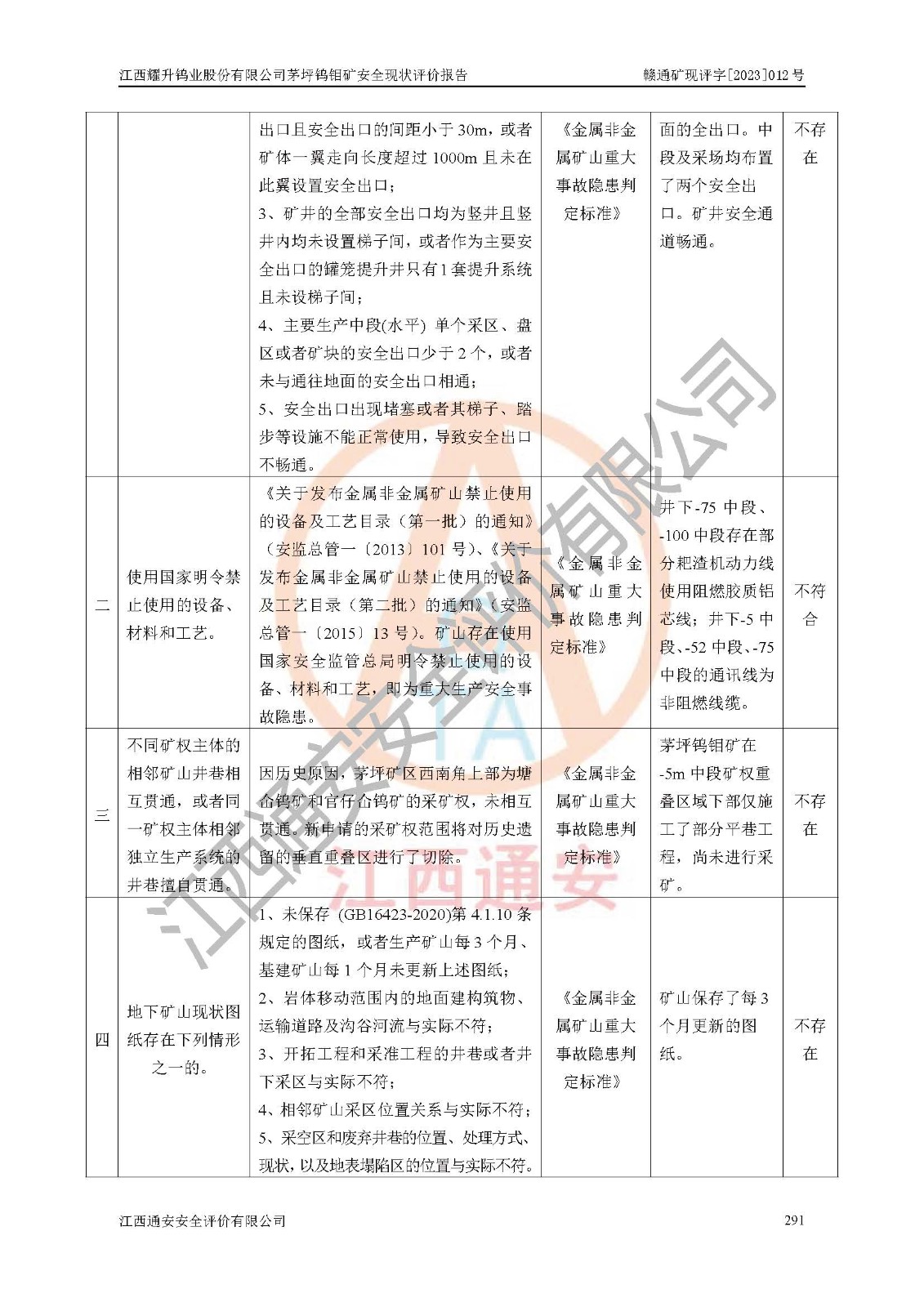 項目名稱 | 江西耀升鎢業(yè)股份有限公司茅坪鎢鉬礦安全現(xiàn)狀評價報告 | ||||