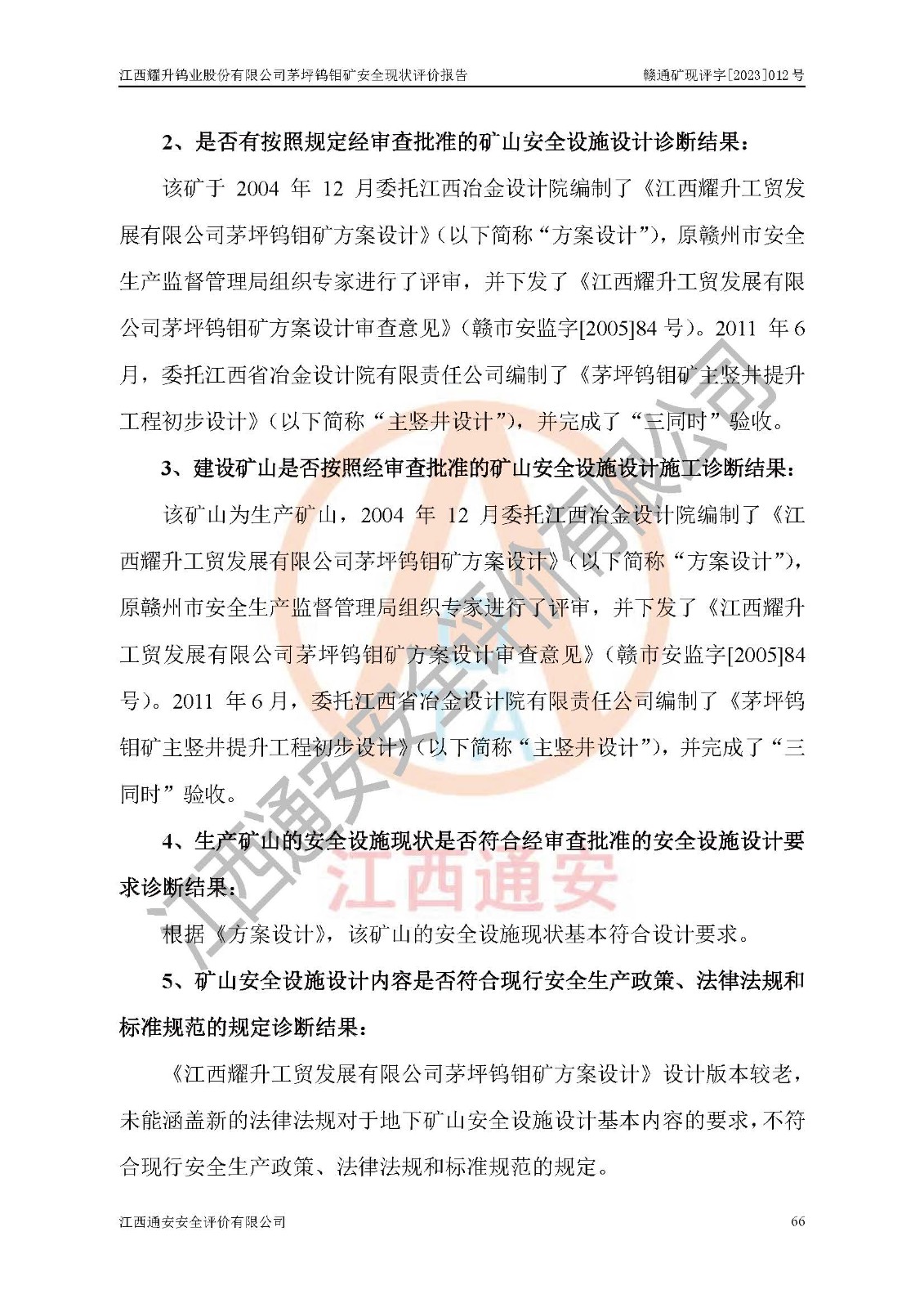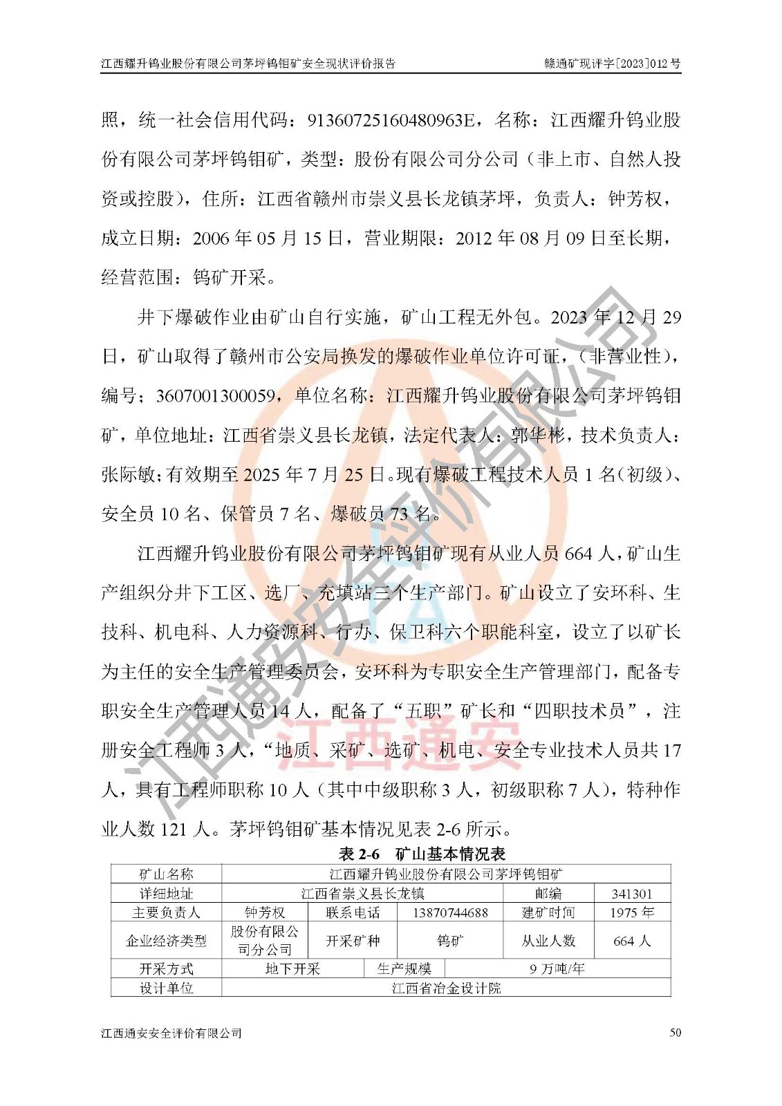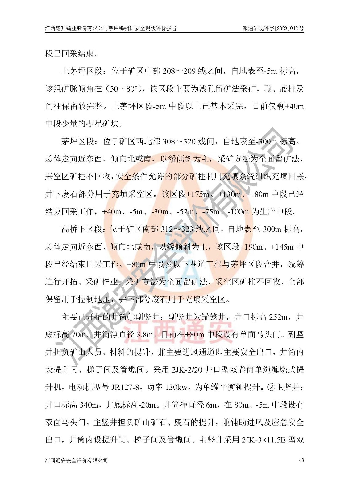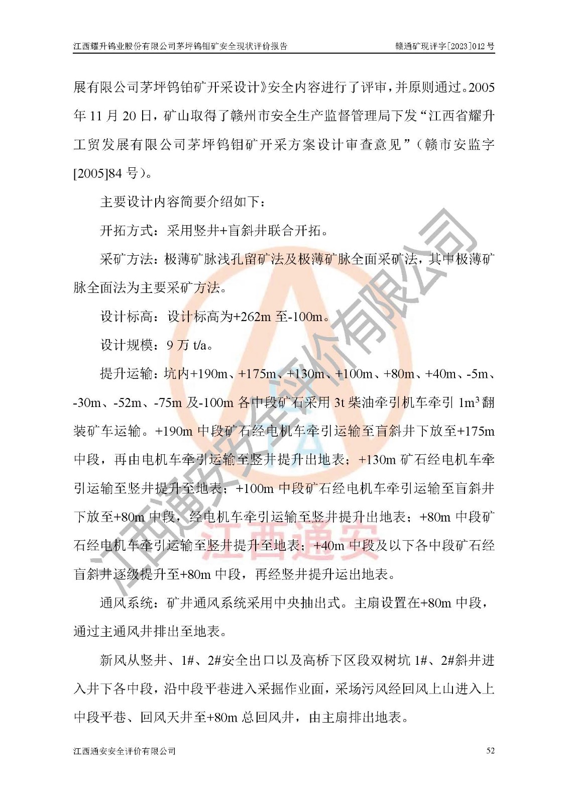 項目名稱 | 江西耀升鎢業(yè)股份有限公司茅坪鎢鉬礦安全現(xiàn)狀評價報告 | ||||