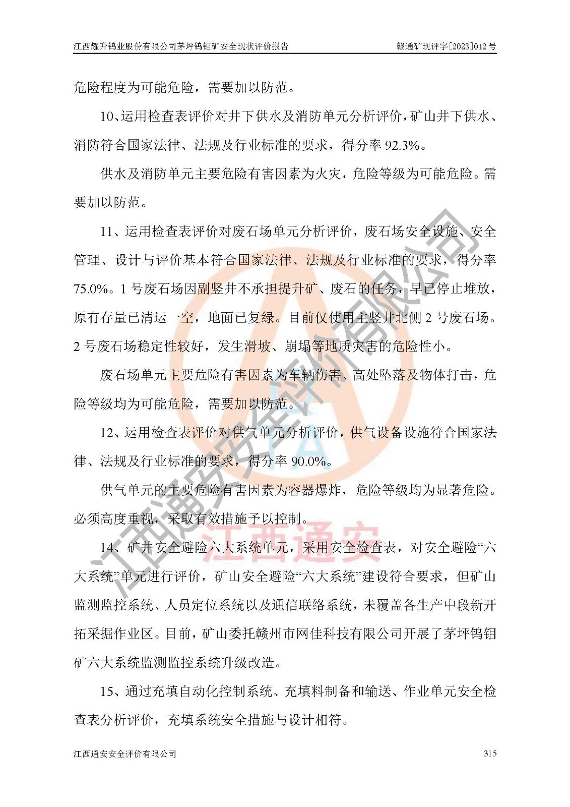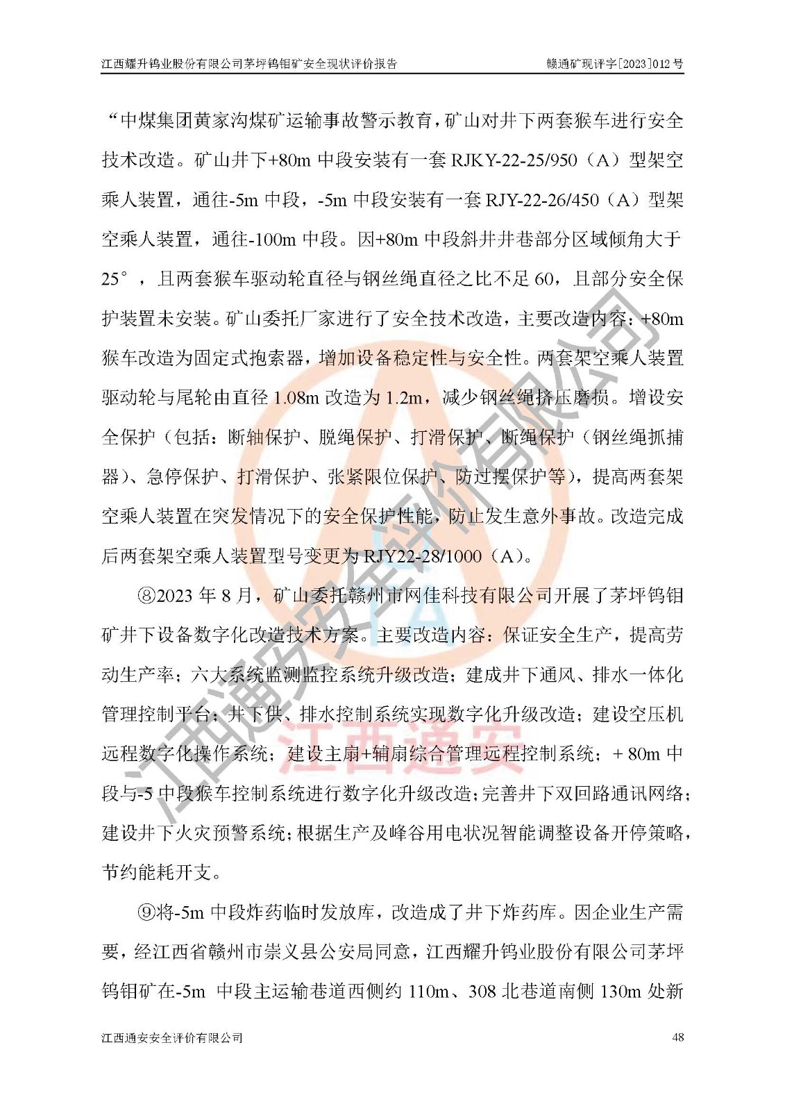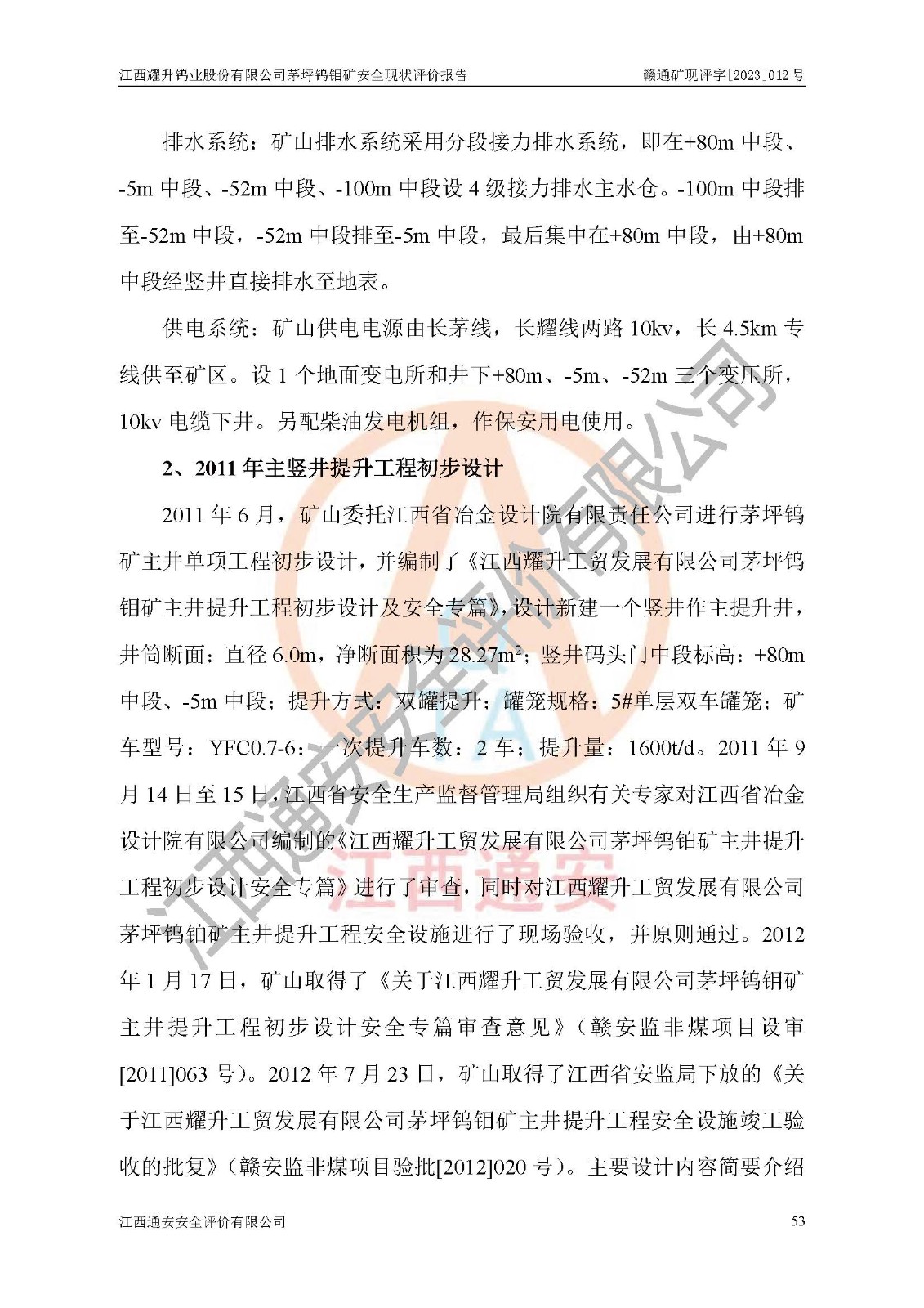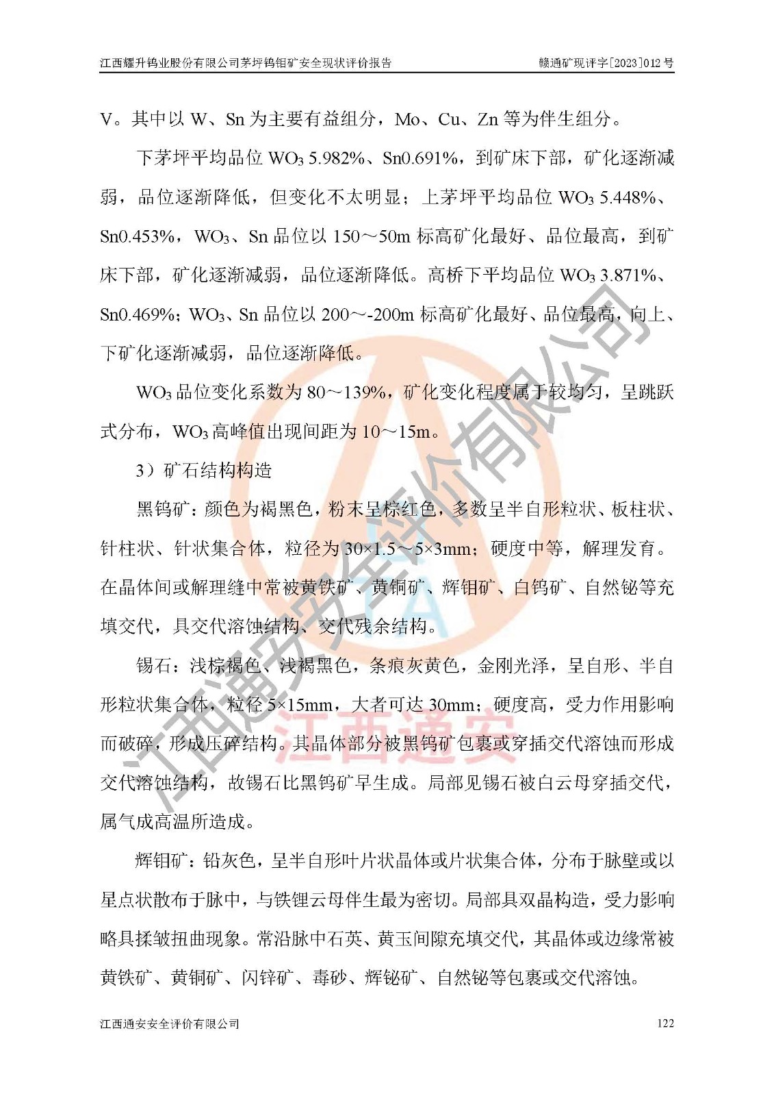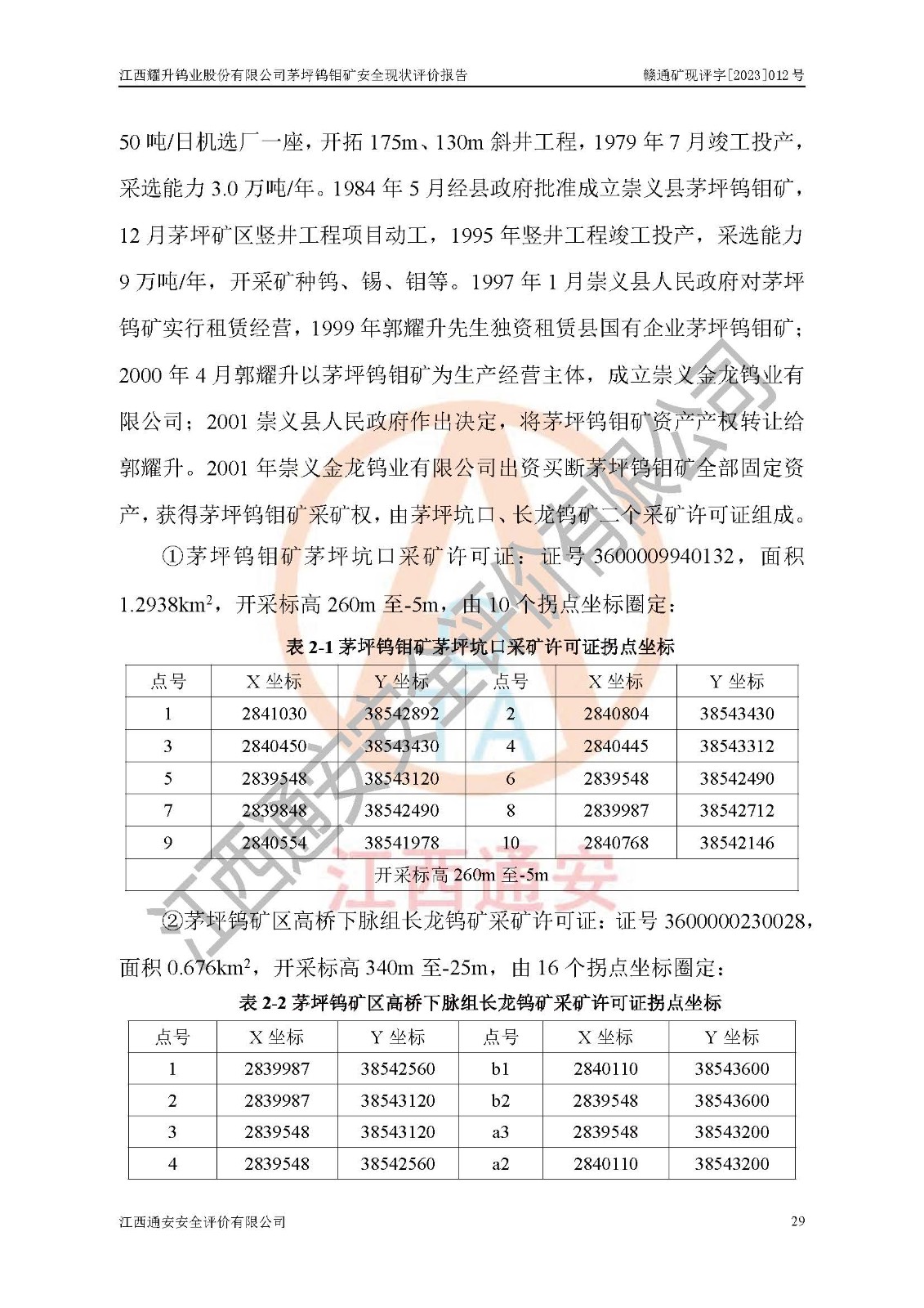 項目名稱 | 江西耀升鎢業(yè)股份有限公司茅坪鎢鉬礦安全現(xiàn)狀評價報告 | ||||
