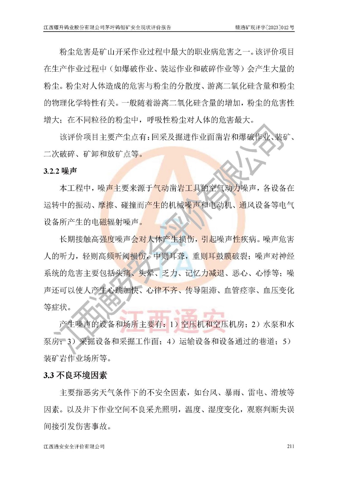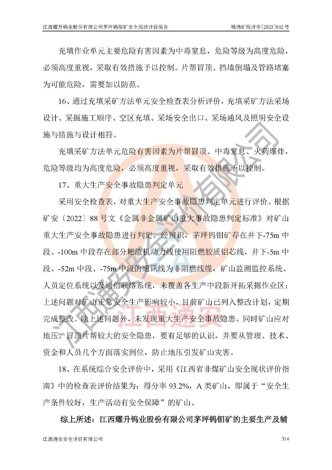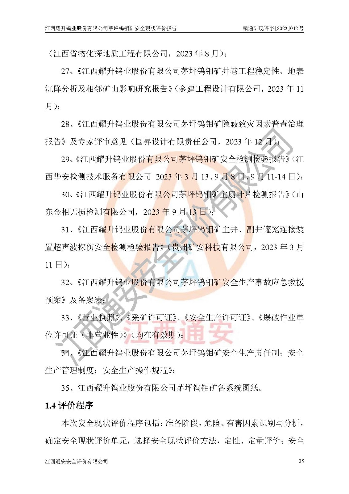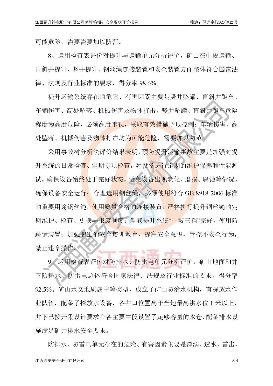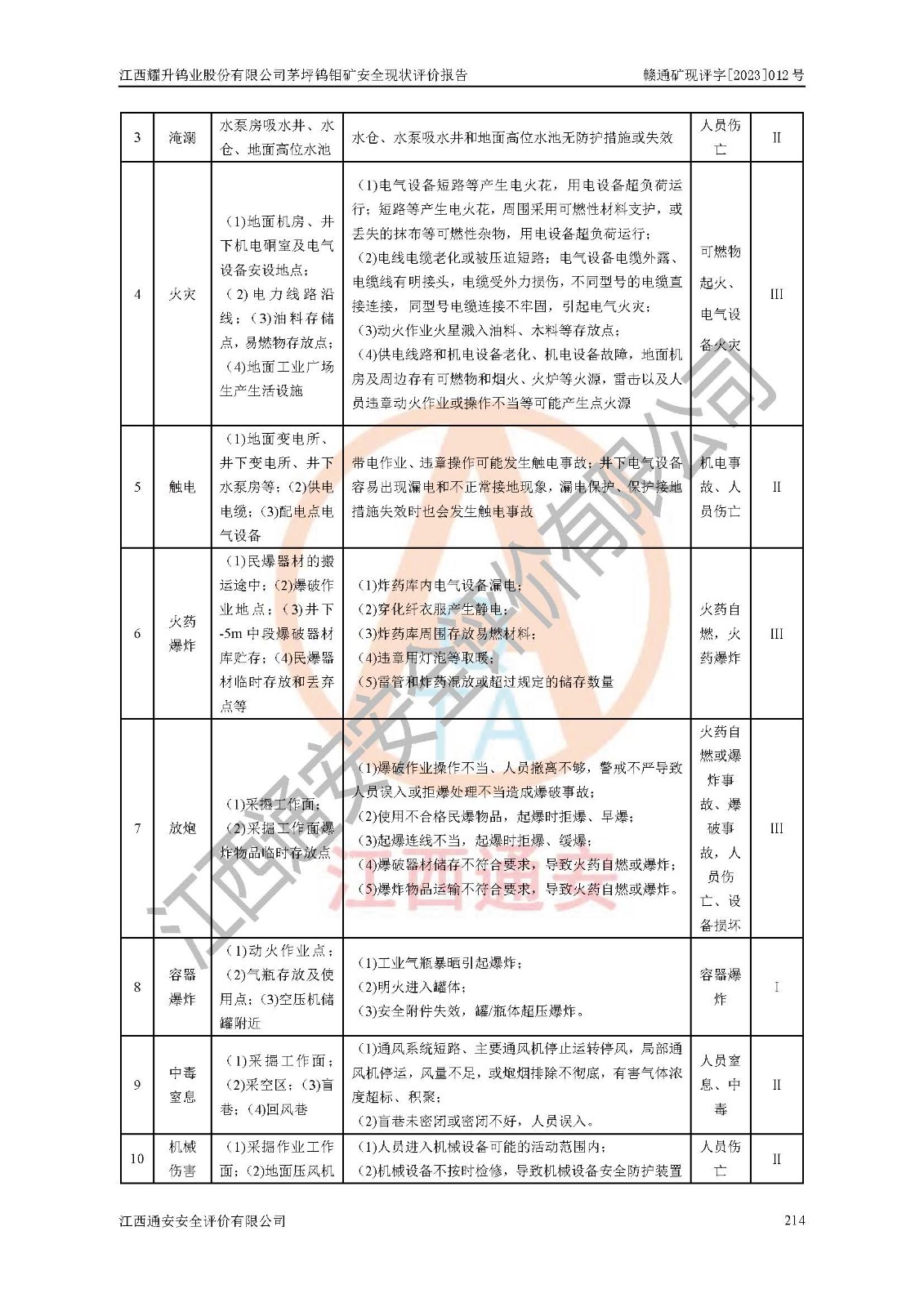 項目名稱 | 江西耀升鎢業(yè)股份有限公司茅坪鎢鉬礦安全現(xiàn)狀評價報告 | ||||