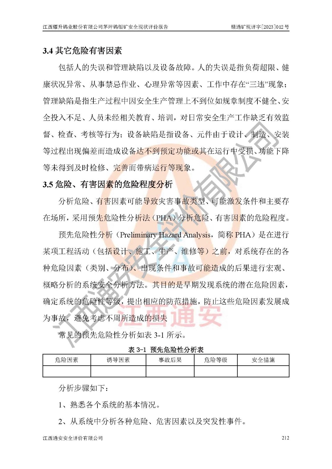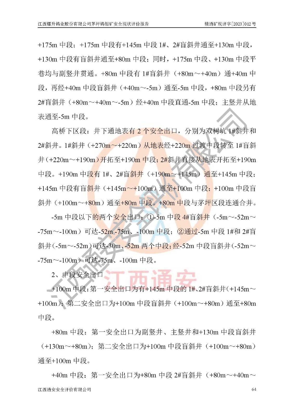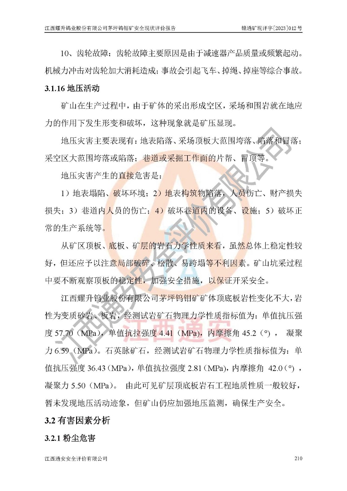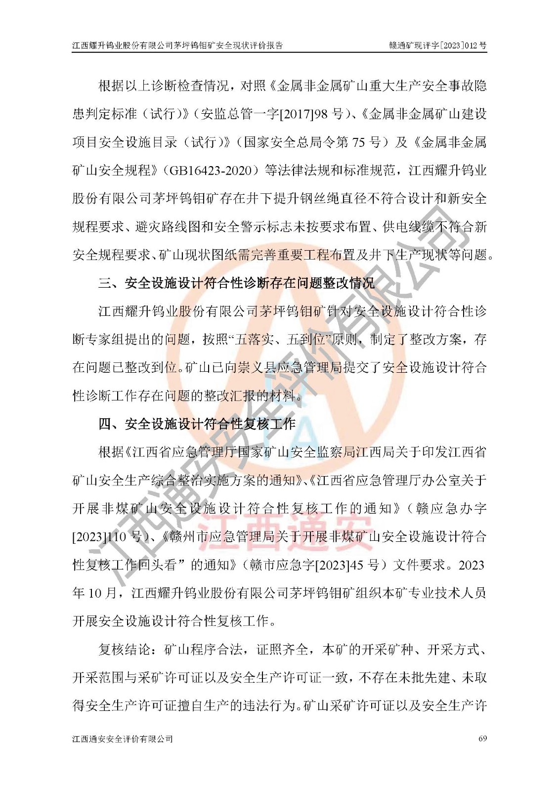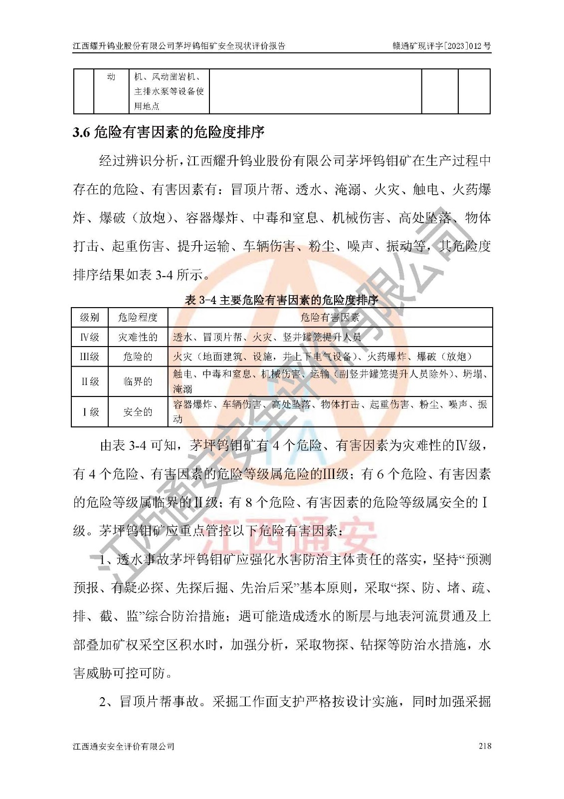 項目名稱 | 江西耀升鎢業(yè)股份有限公司茅坪鎢鉬礦安全現(xiàn)狀評價報告 | ||||
