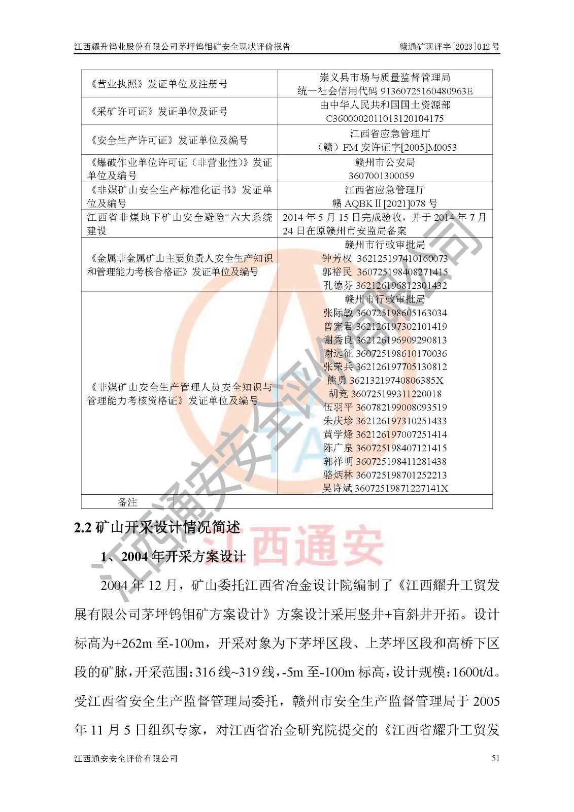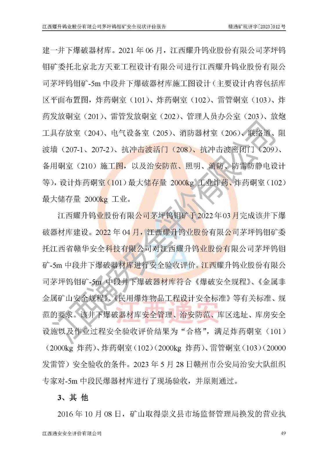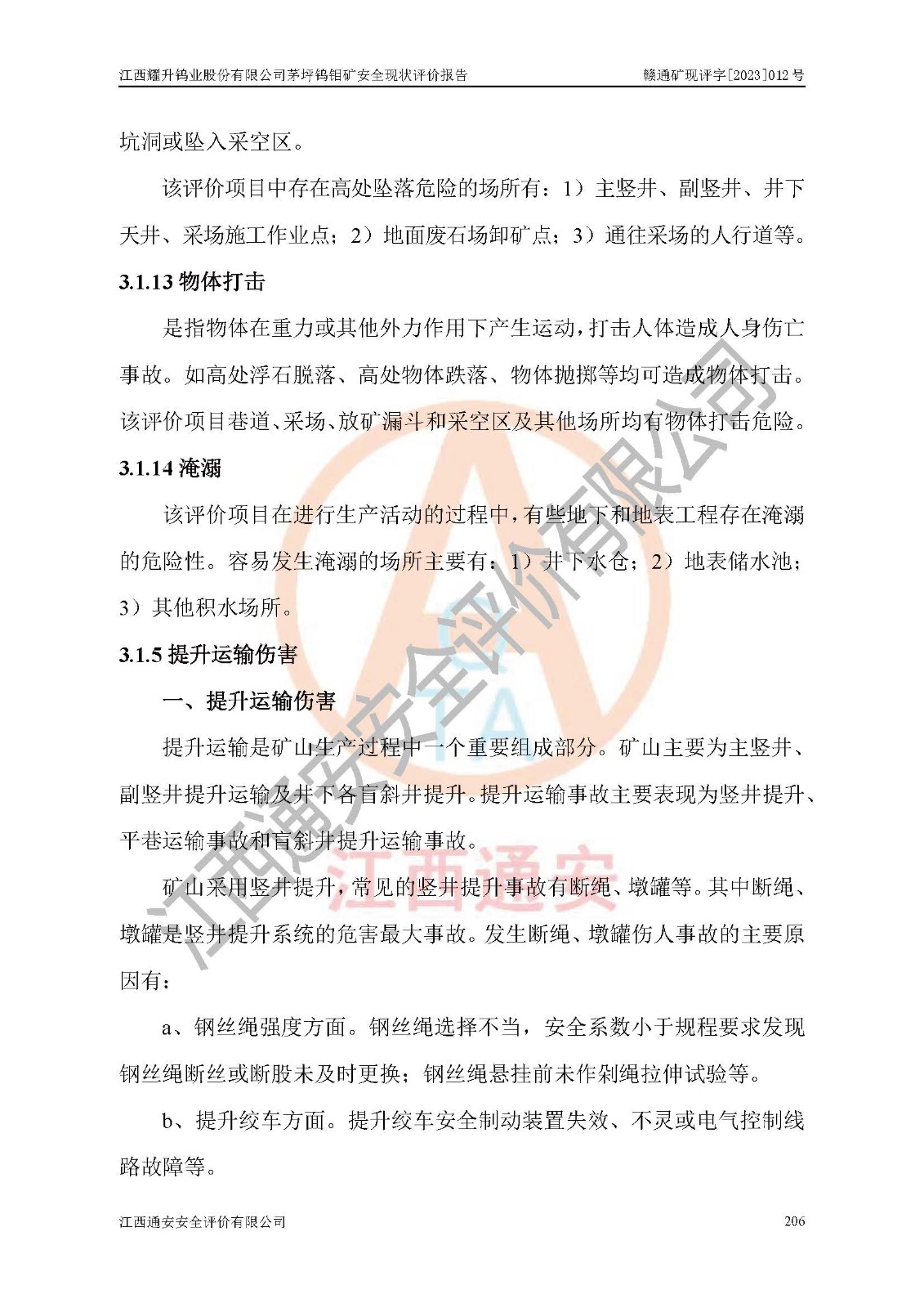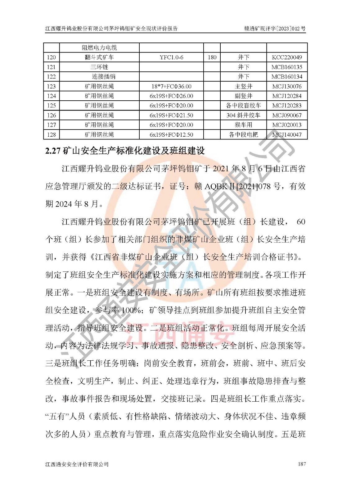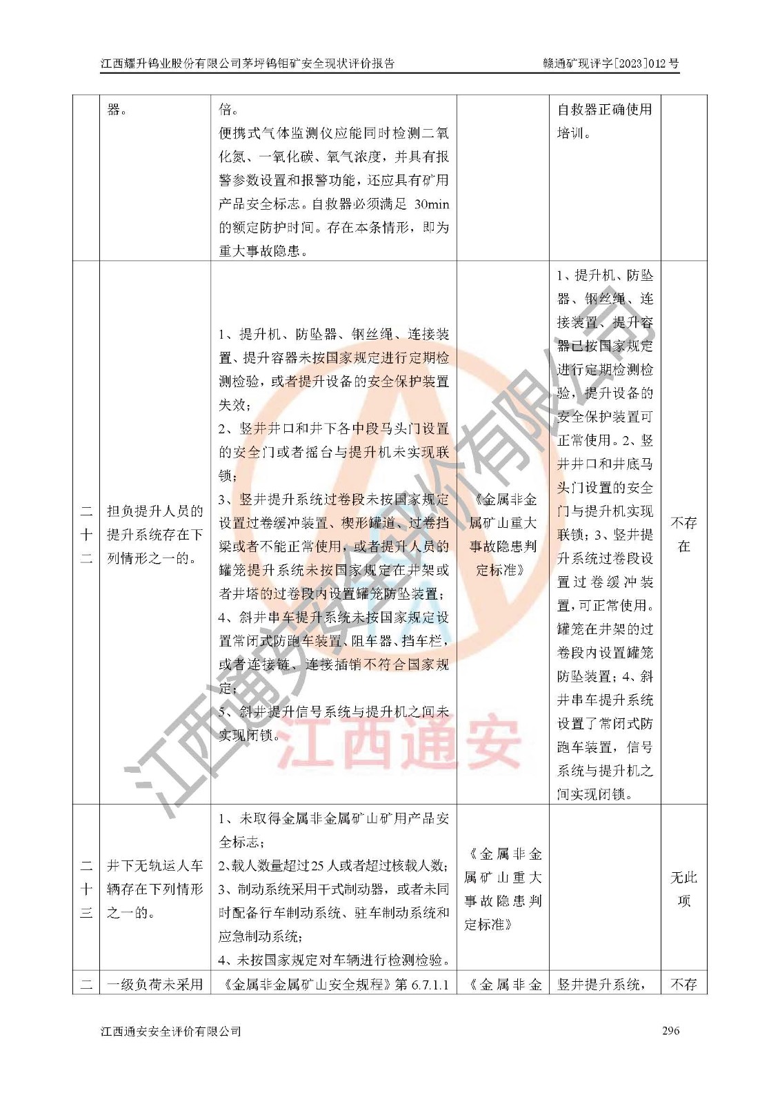 項目名稱 | 江西耀升鎢業(yè)股份有限公司茅坪鎢鉬礦安全現(xiàn)狀評價報告 | ||||