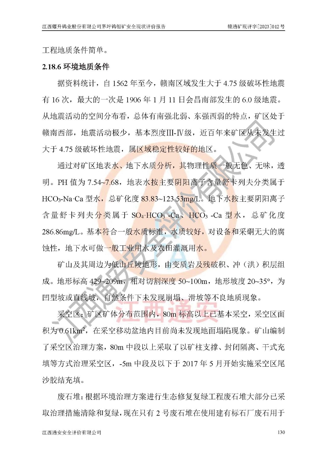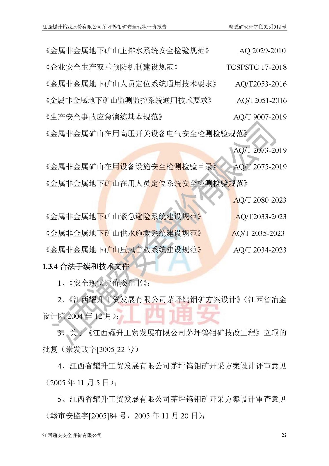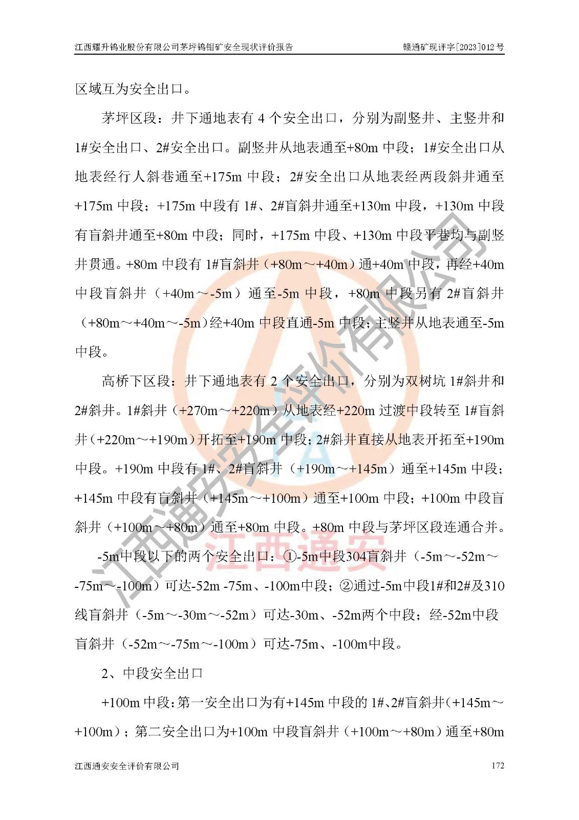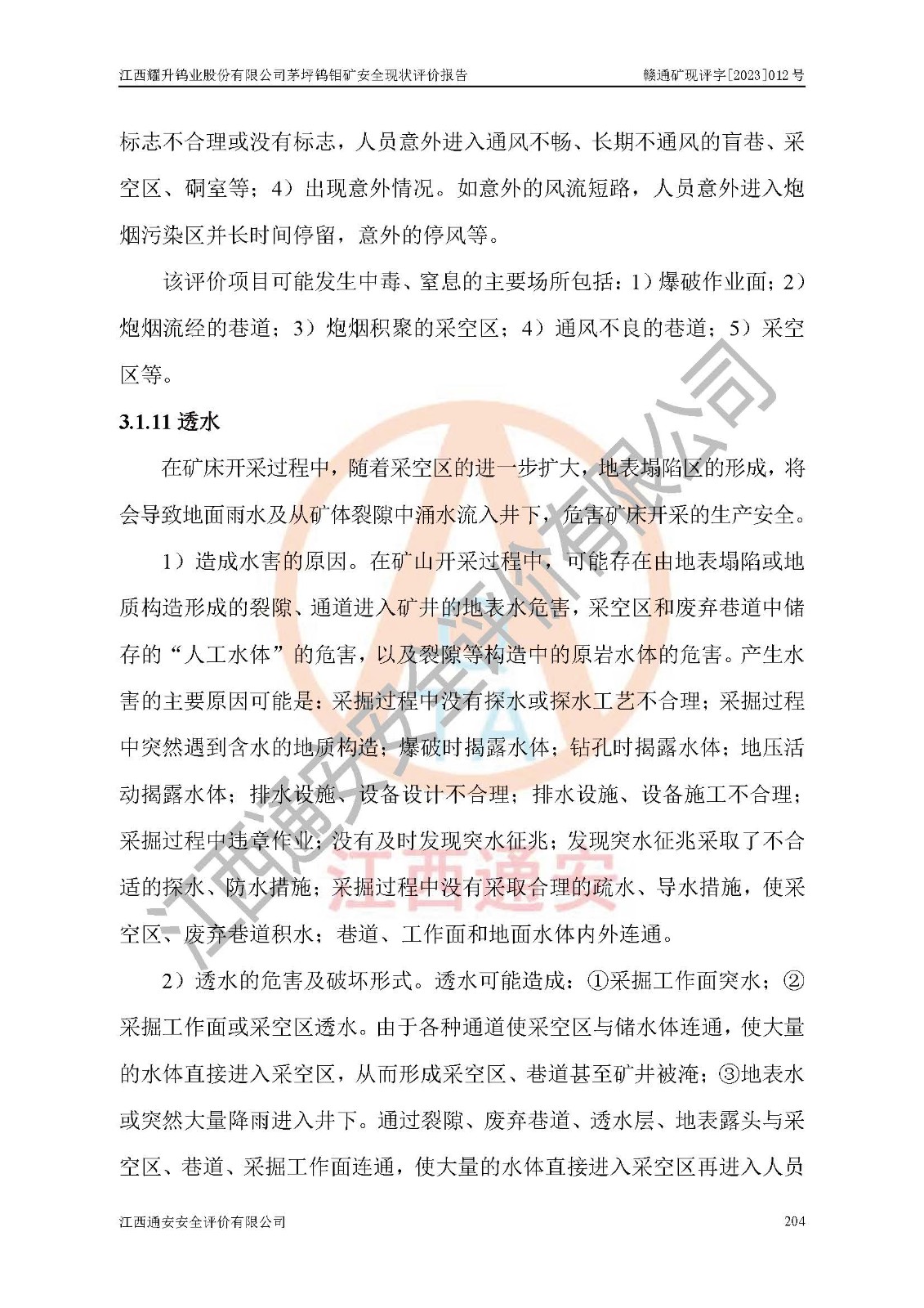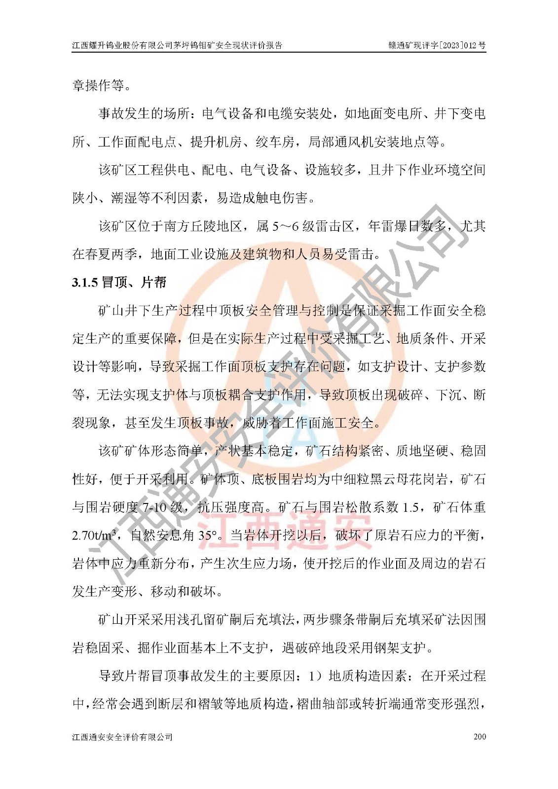 項目名稱 | 江西耀升鎢業(yè)股份有限公司茅坪鎢鉬礦安全現(xiàn)狀評價報告 | ||||