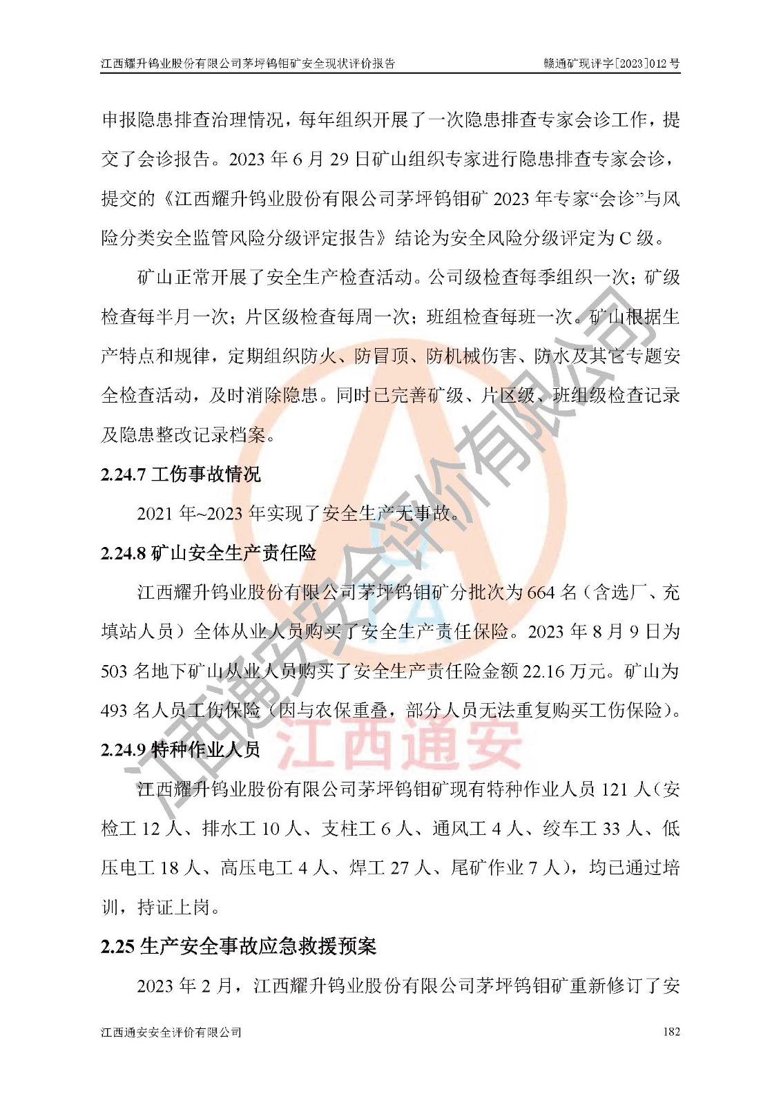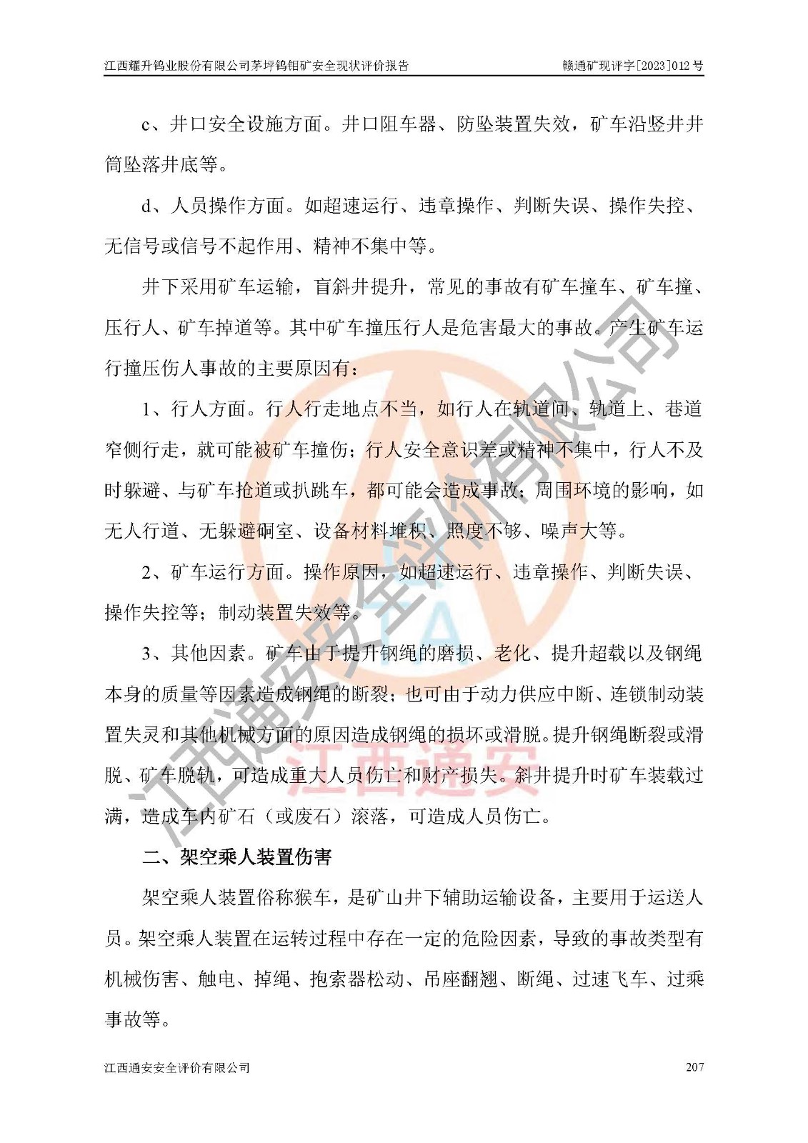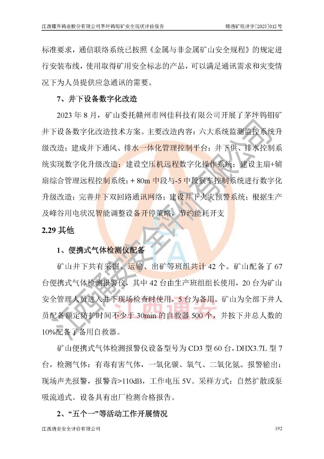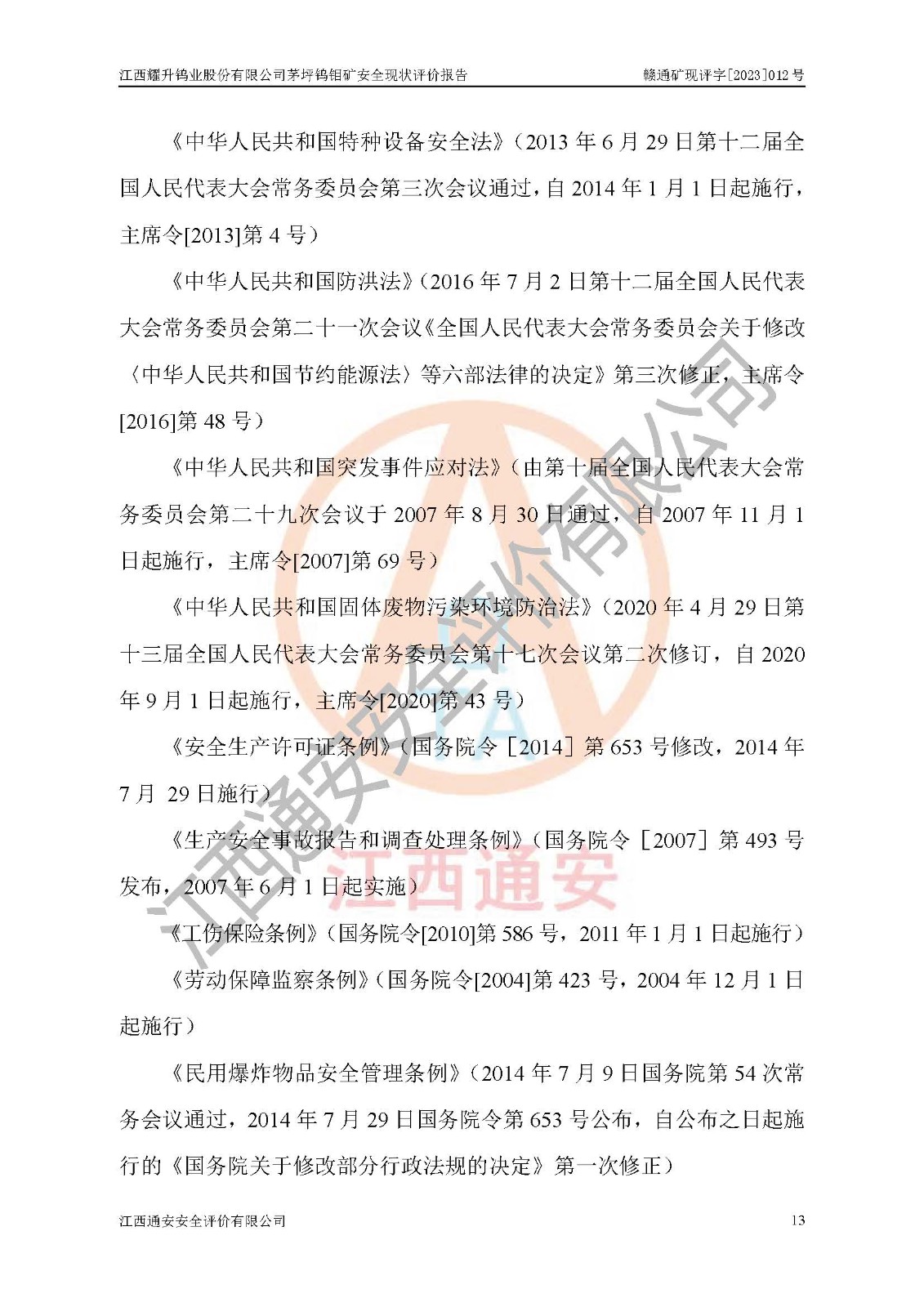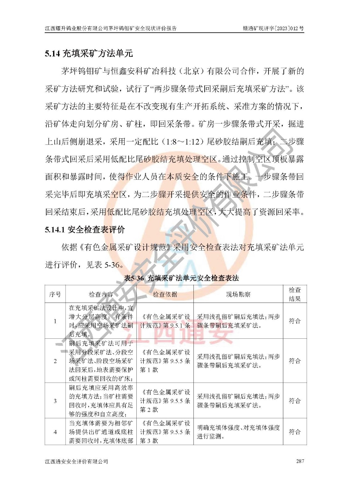 項目名稱 | 江西耀升鎢業(yè)股份有限公司茅坪鎢鉬礦安全現(xiàn)狀評價報告 | ||||