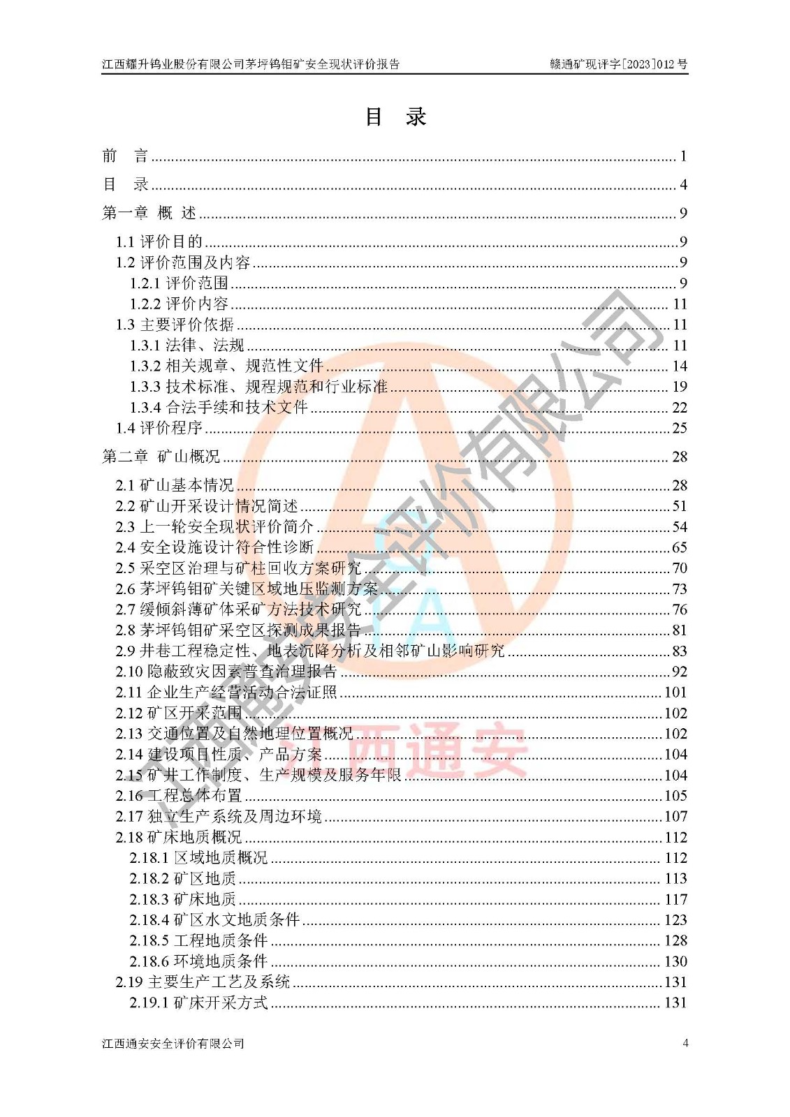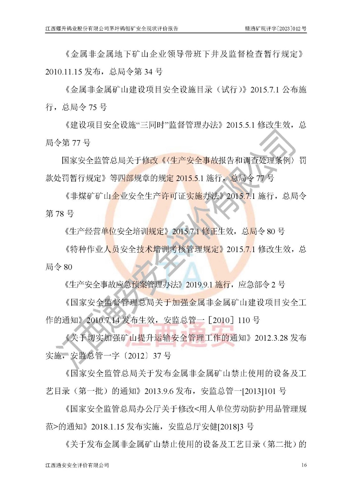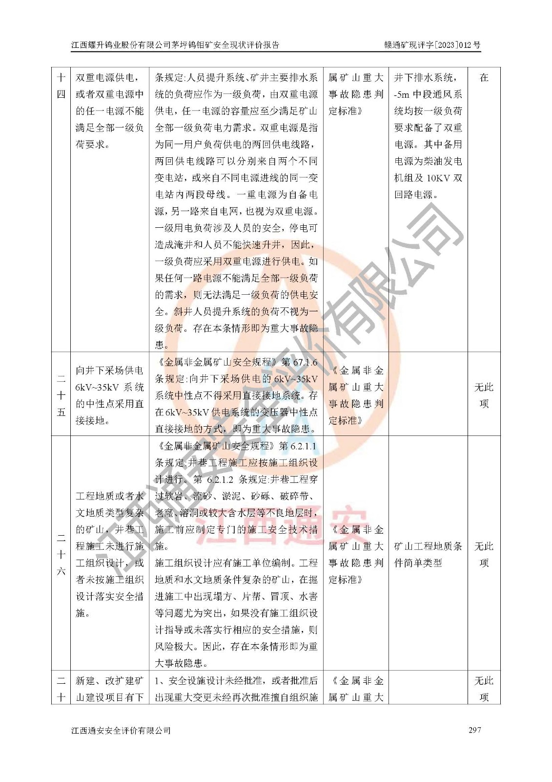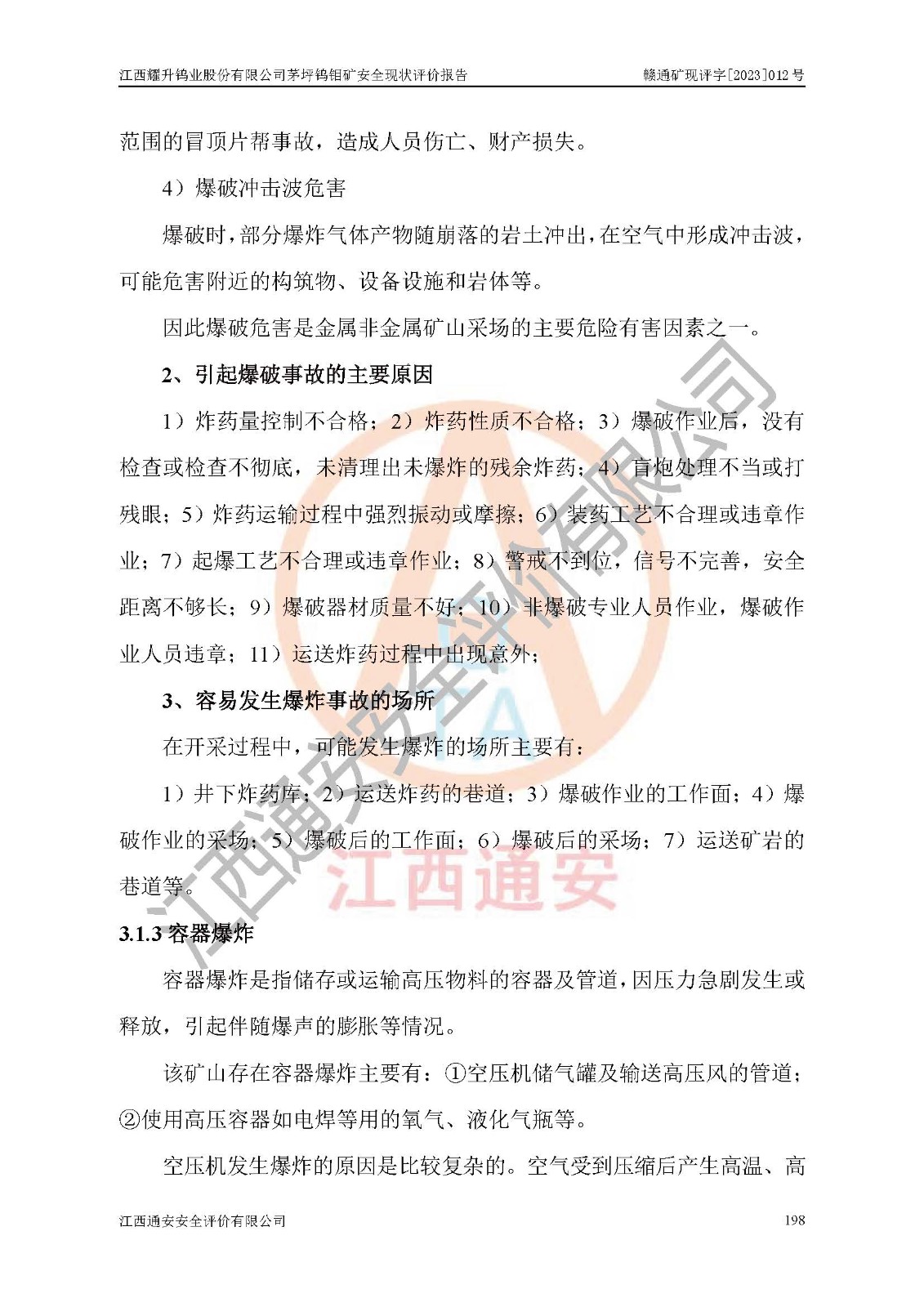 項目名稱 | 江西耀升鎢業(yè)股份有限公司茅坪鎢鉬礦安全現(xiàn)狀評價報告 | ||||