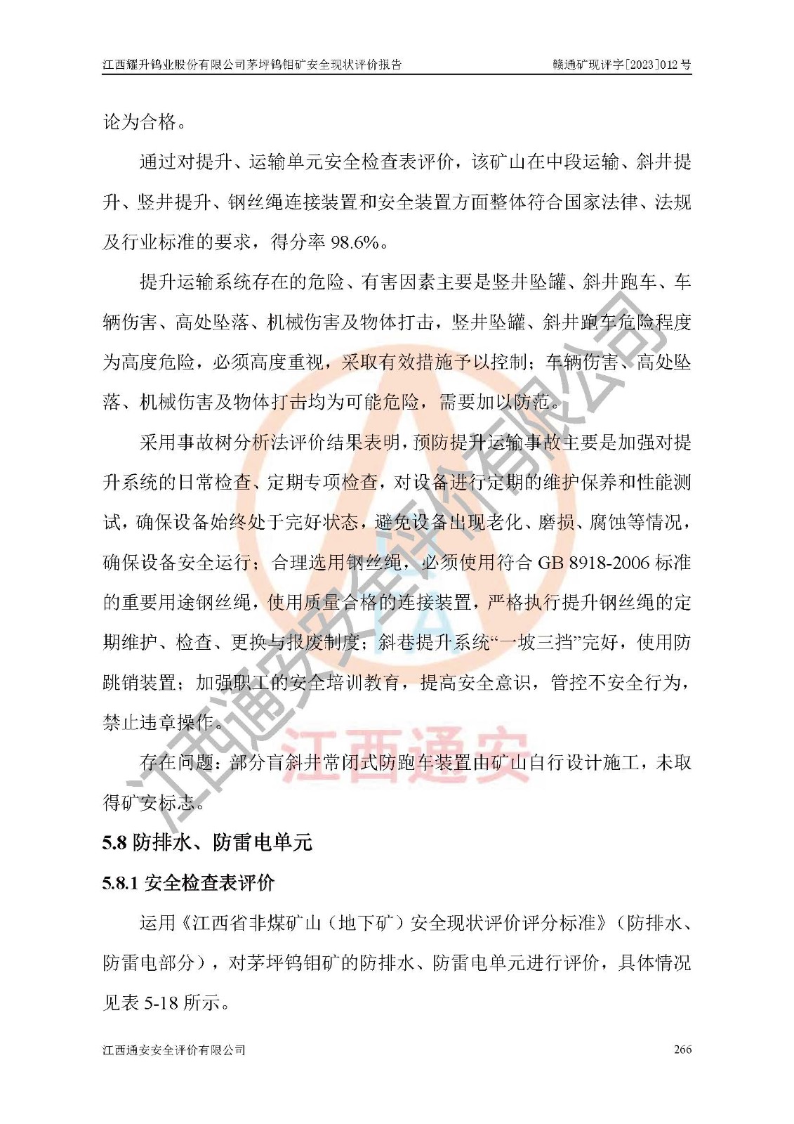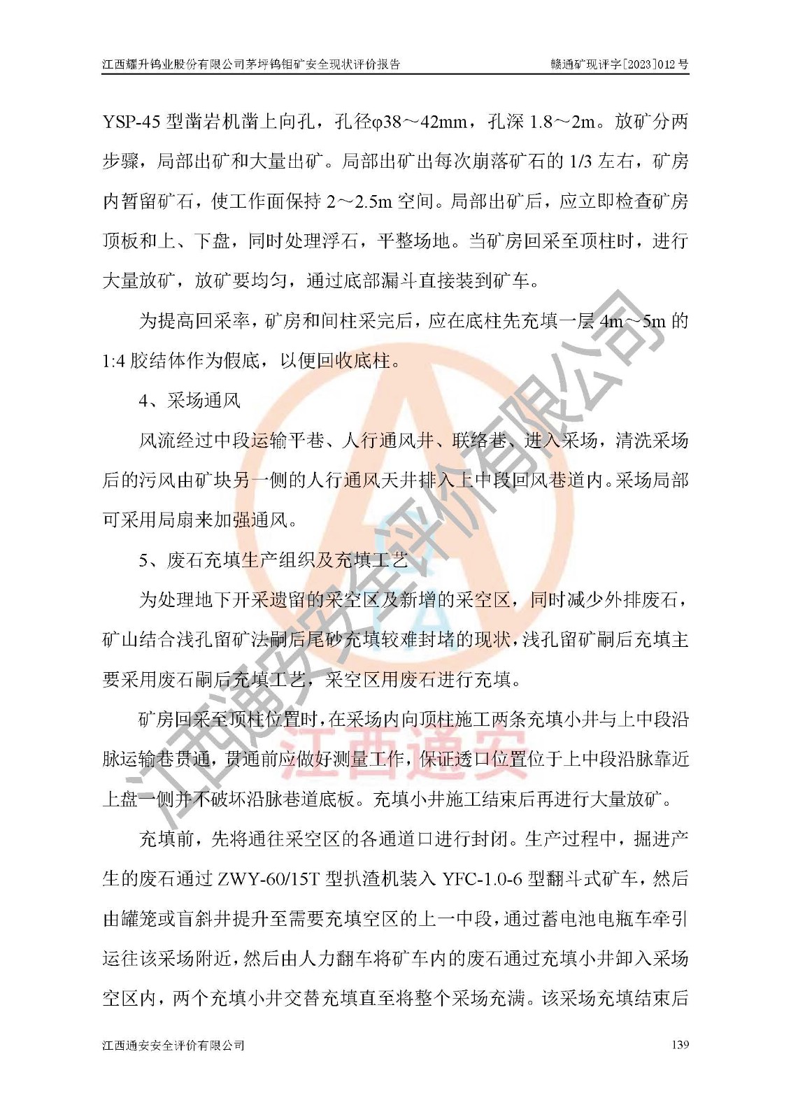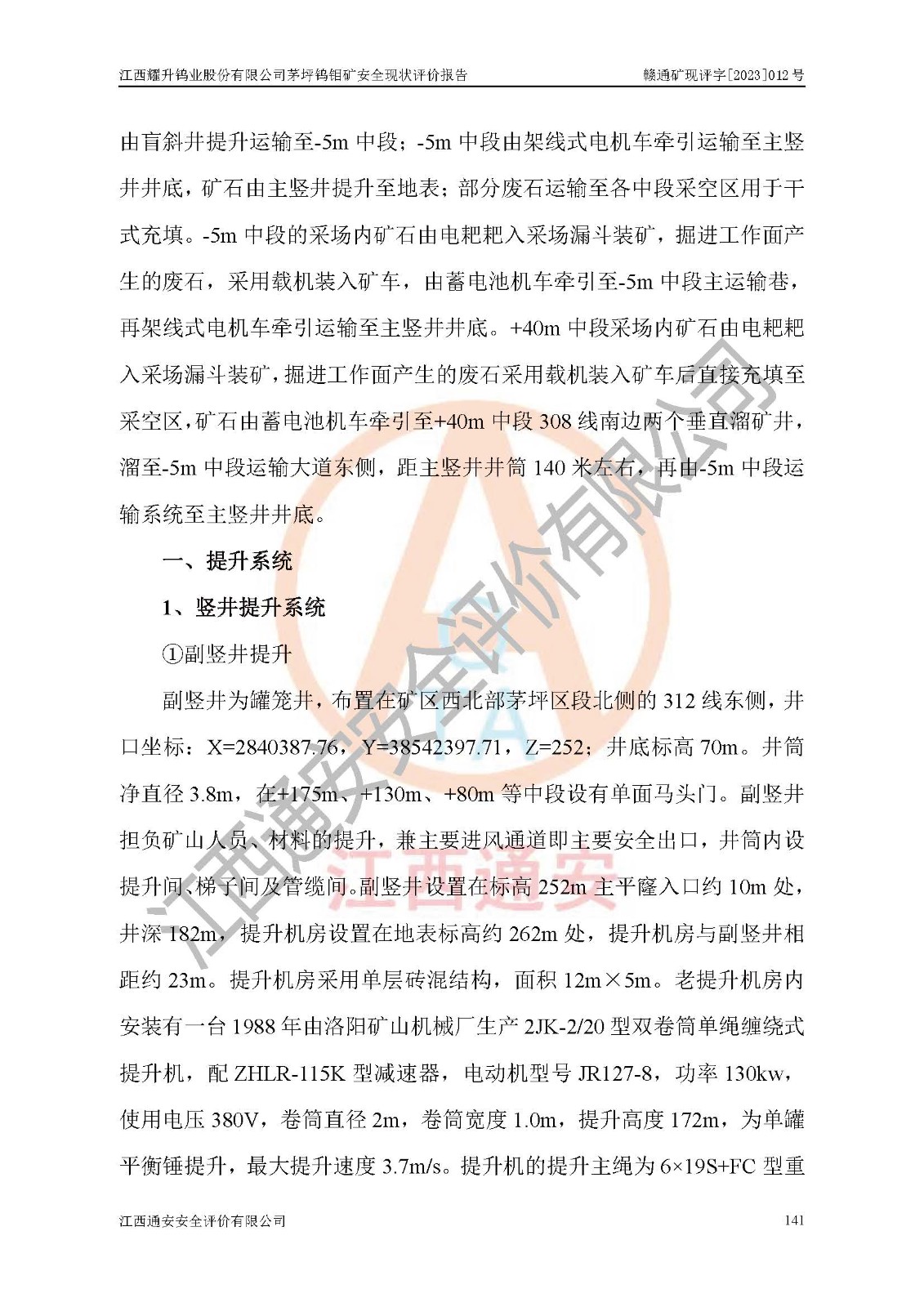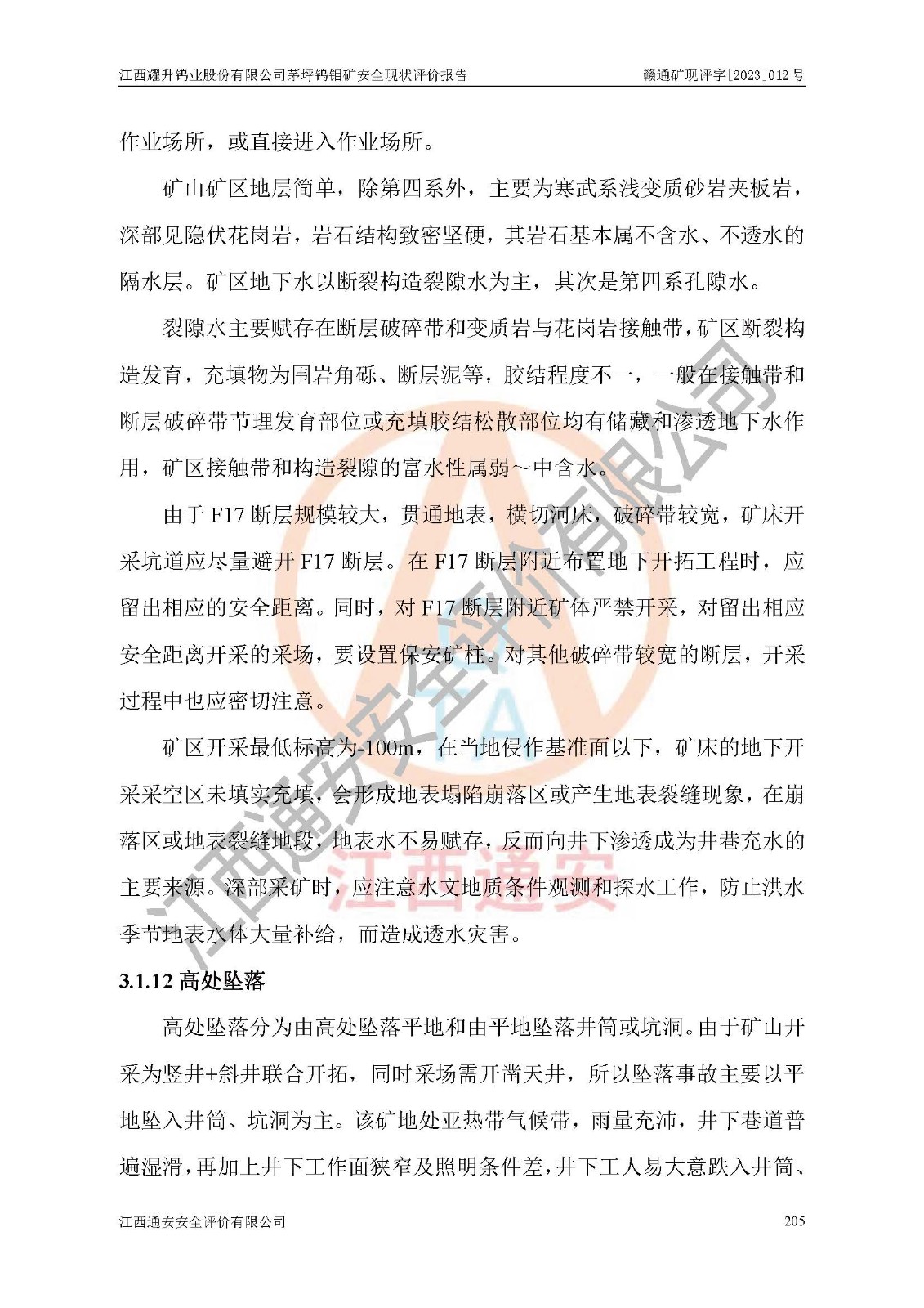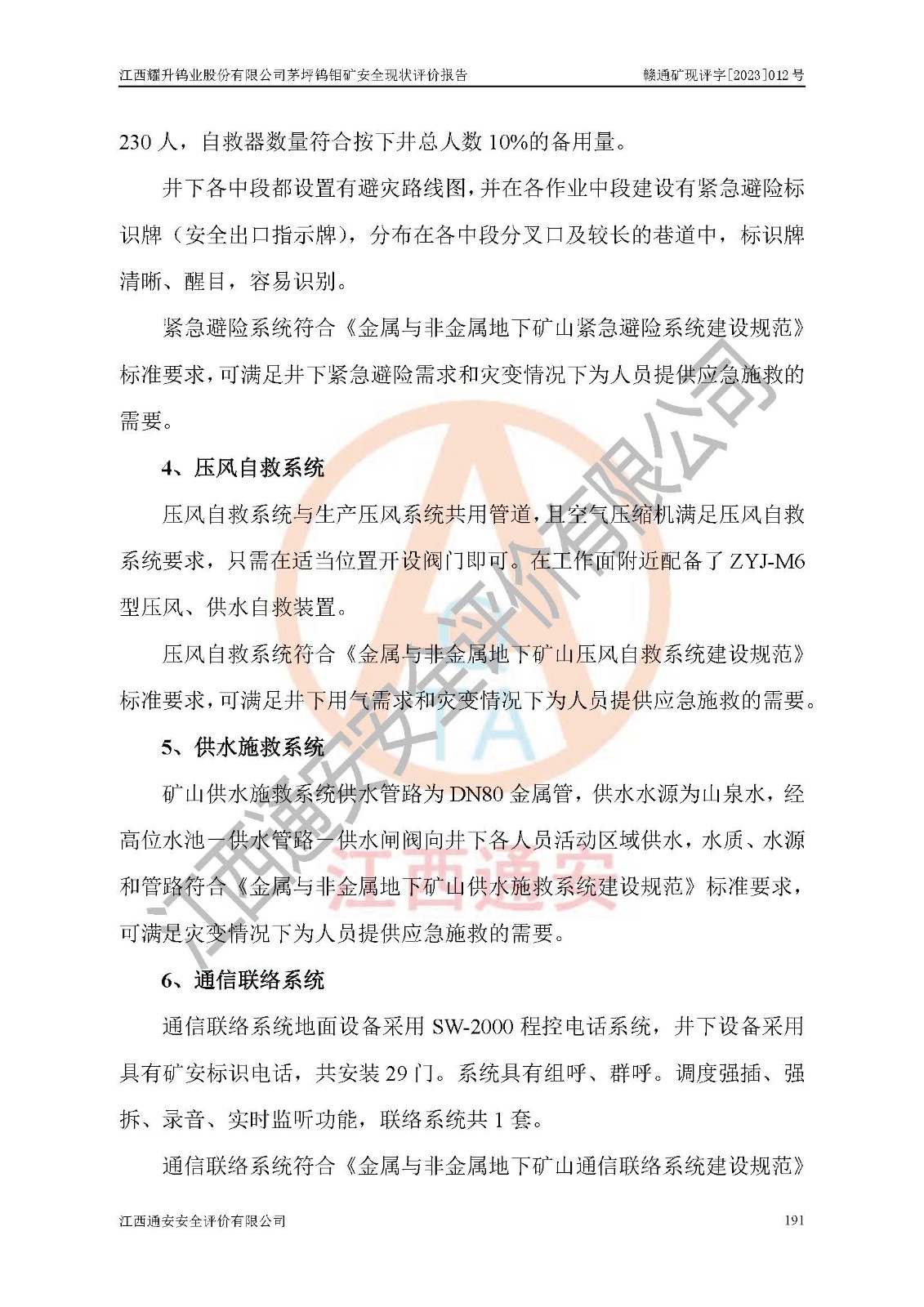 項目名稱 | 江西耀升鎢業(yè)股份有限公司茅坪鎢鉬礦安全現(xiàn)狀評價報告 | ||||