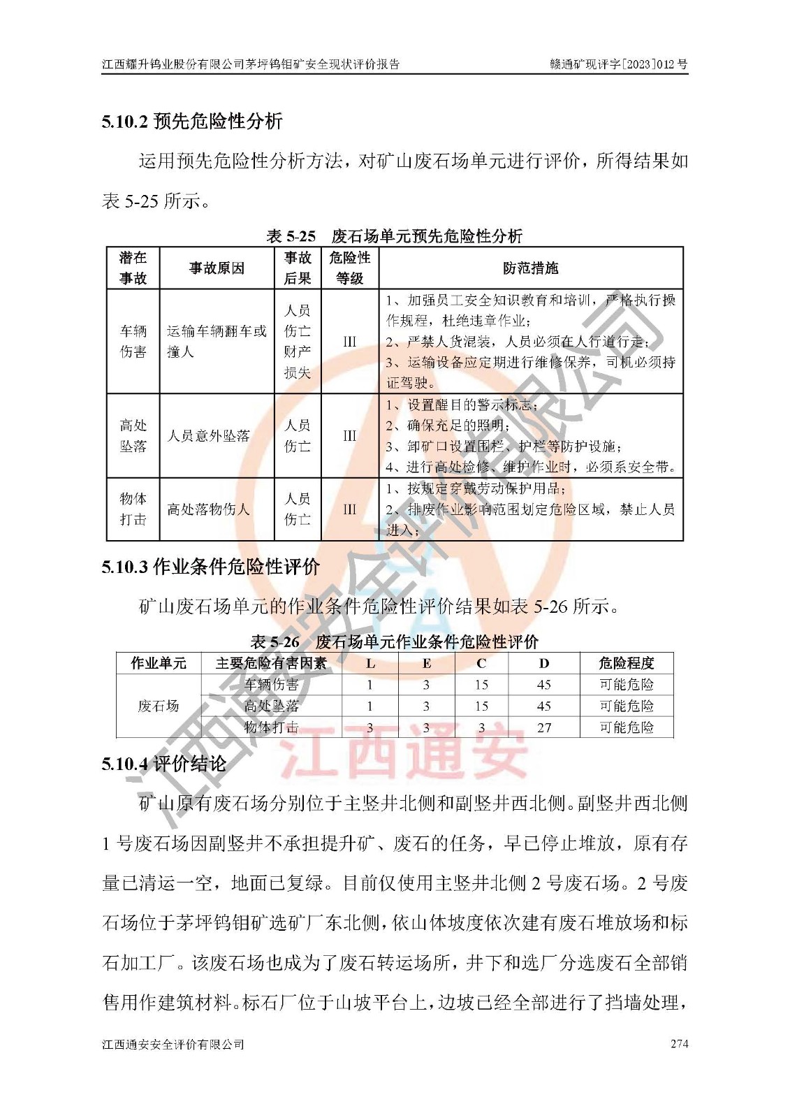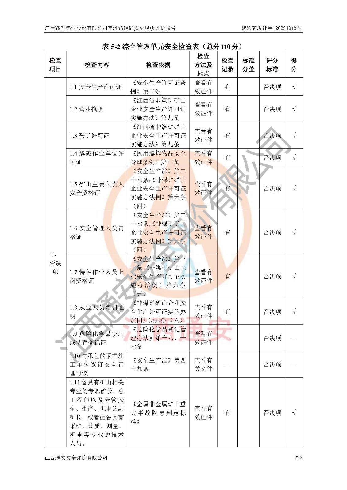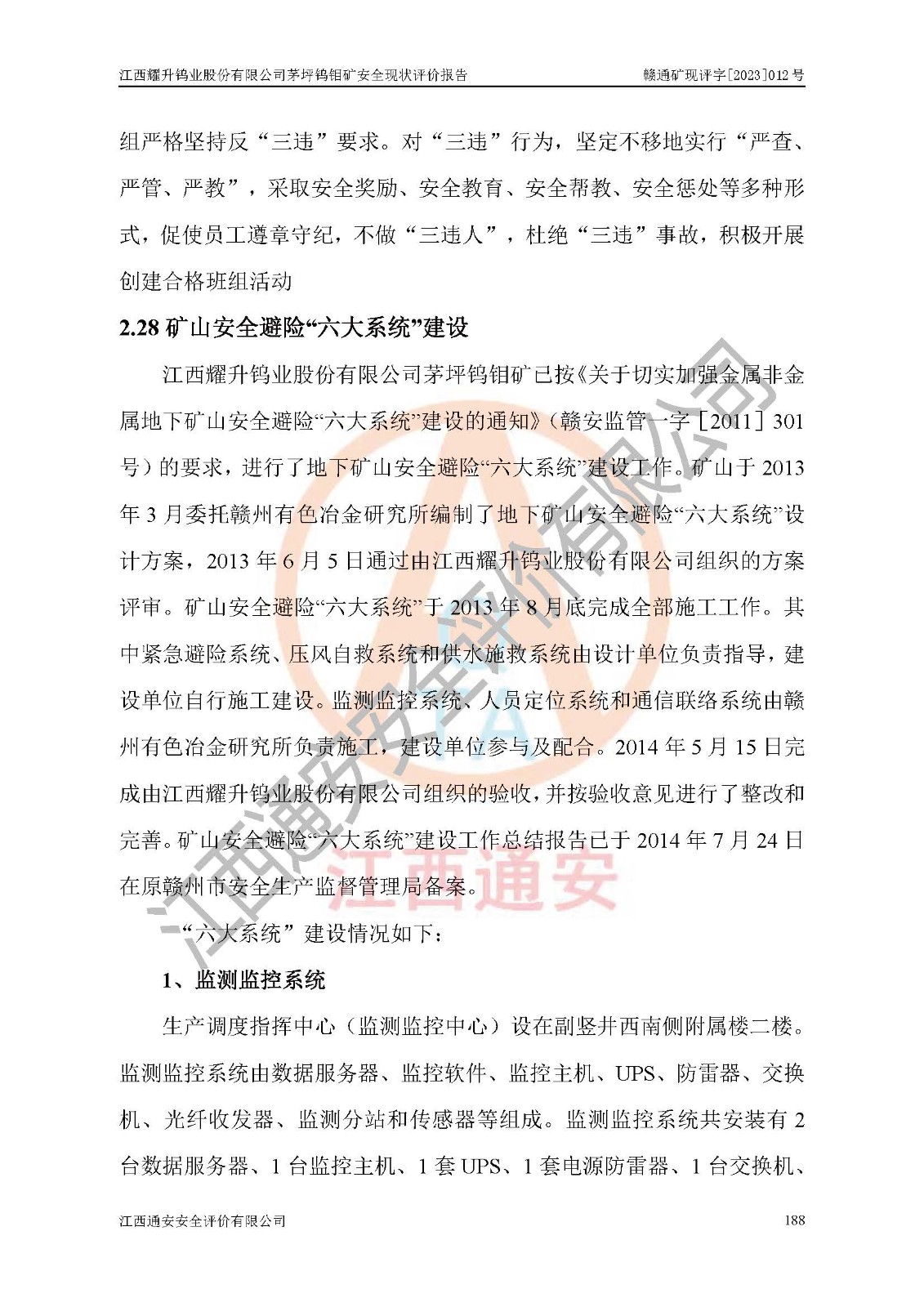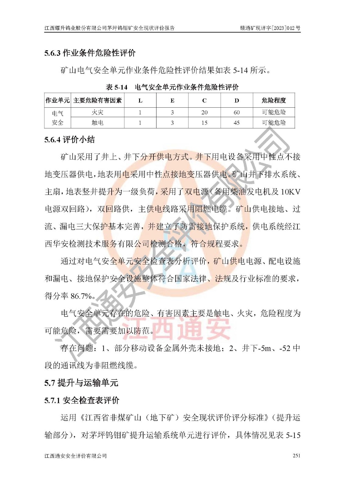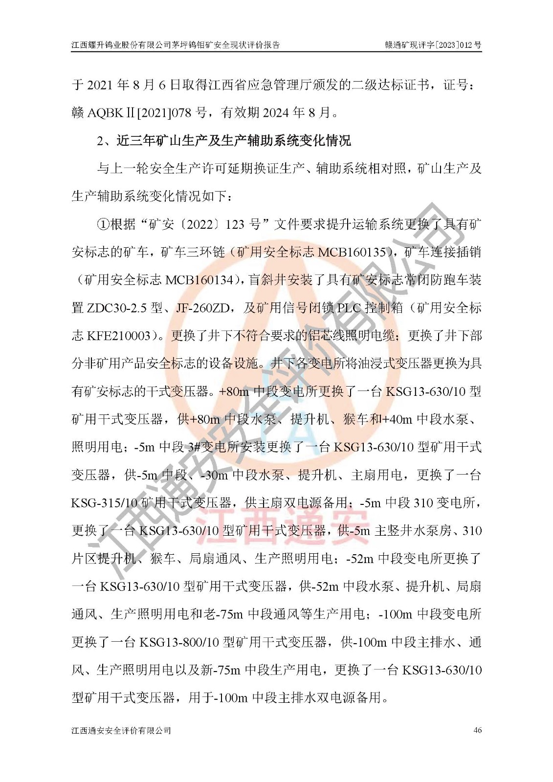 項目名稱 | 江西耀升鎢業(yè)股份有限公司茅坪鎢鉬礦安全現(xiàn)狀評價報告 | ||||