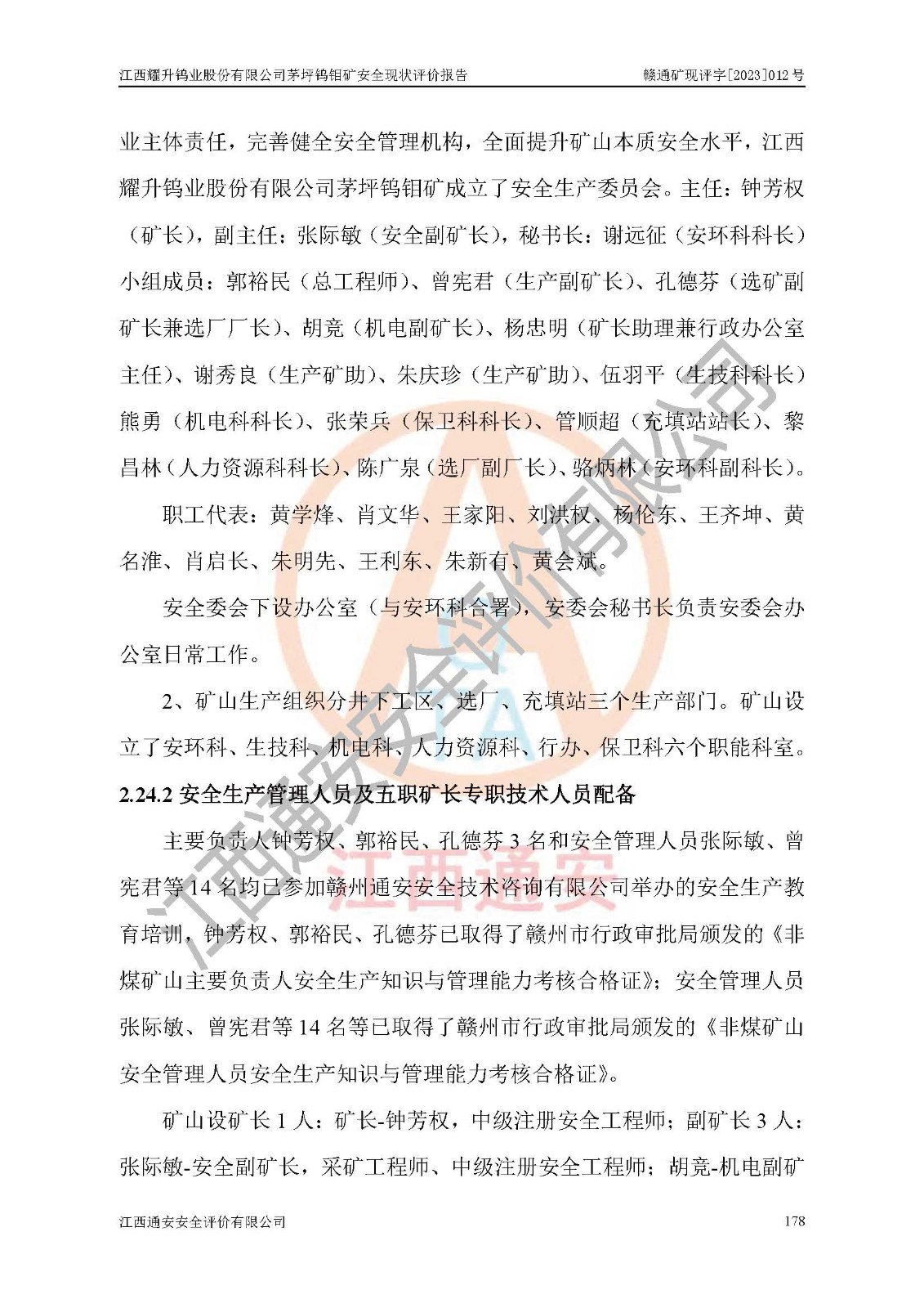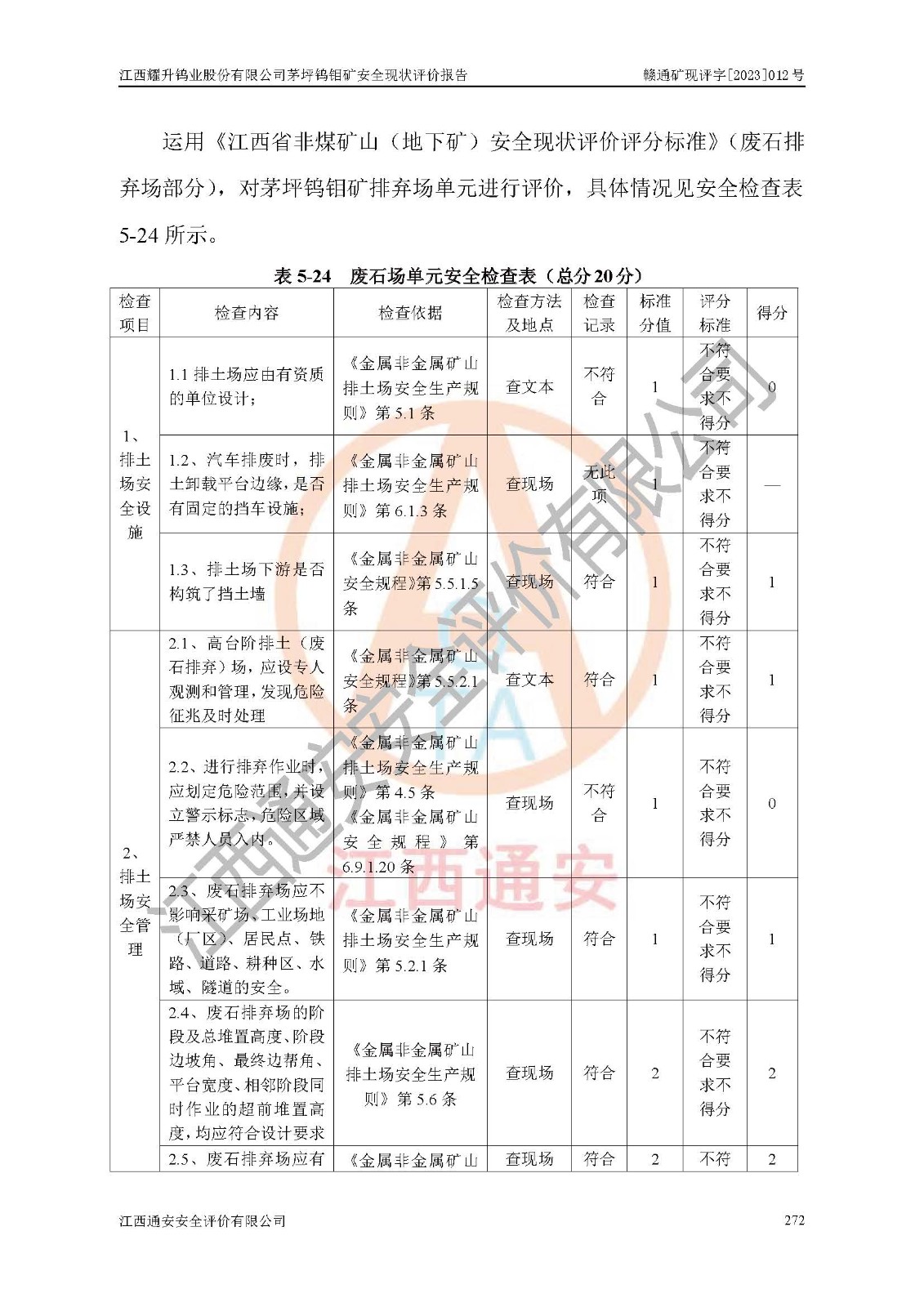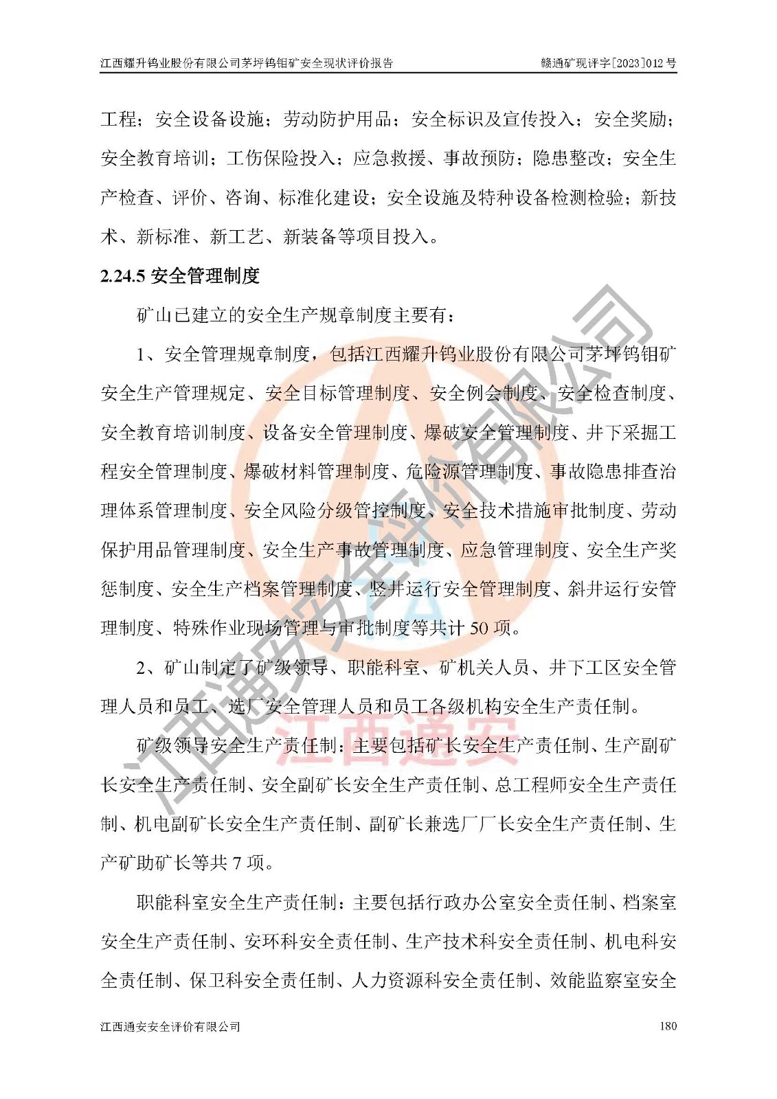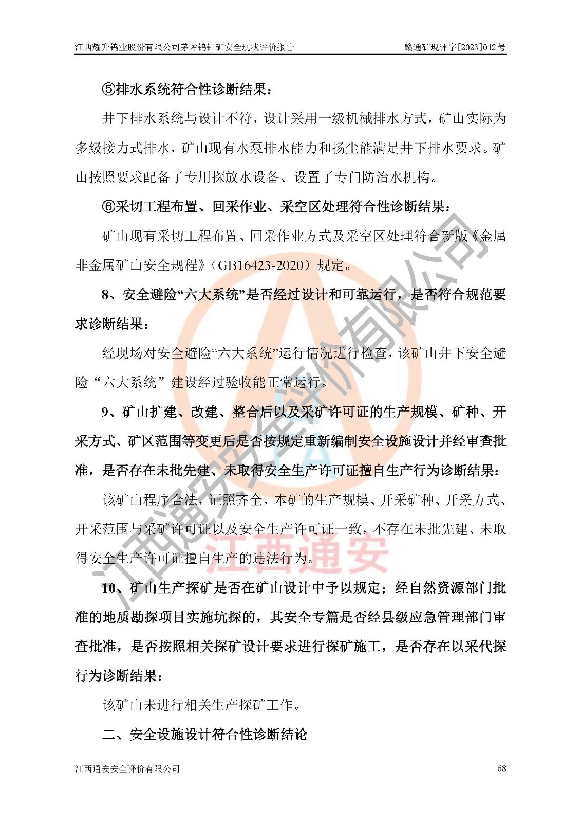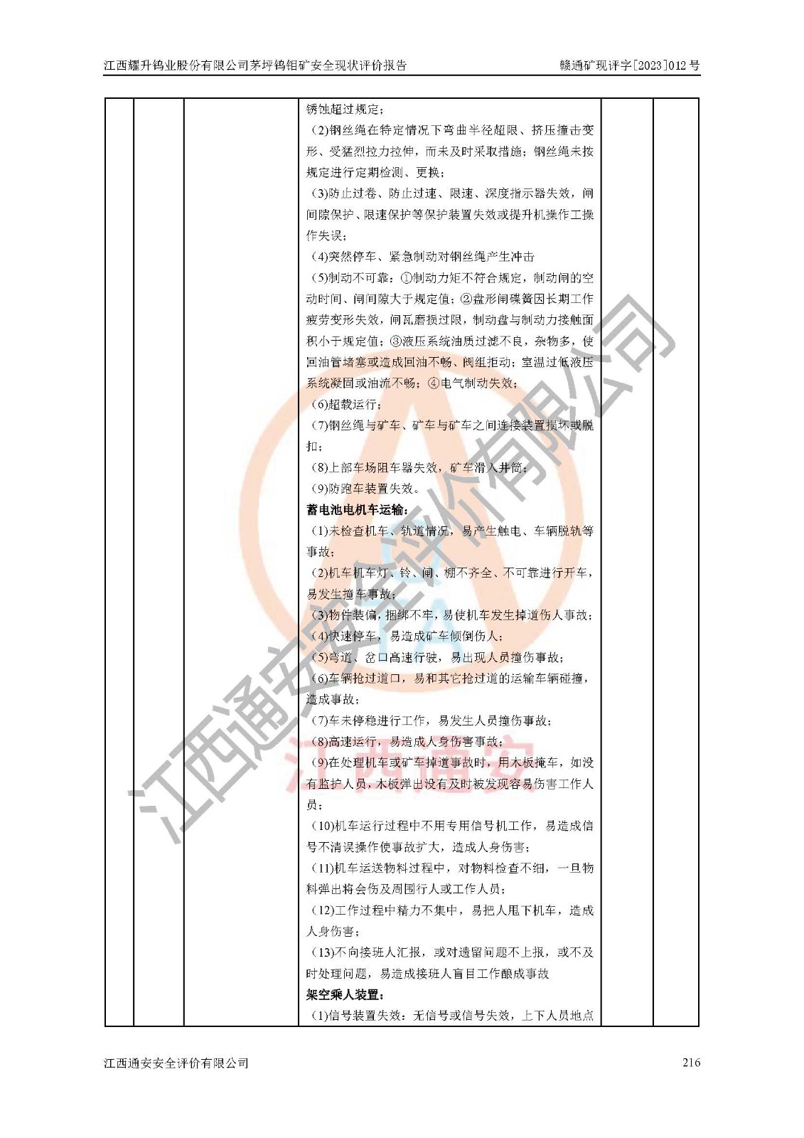 項目名稱 | 江西耀升鎢業(yè)股份有限公司茅坪鎢鉬礦安全現(xiàn)狀評價報告 | ||||