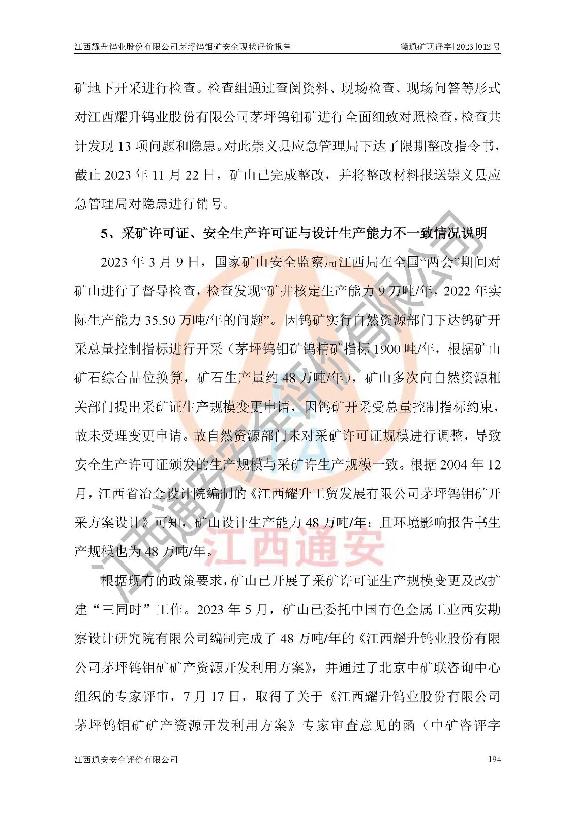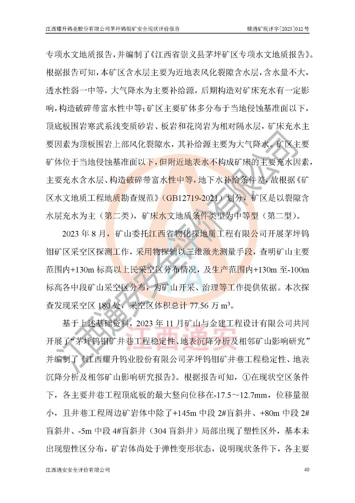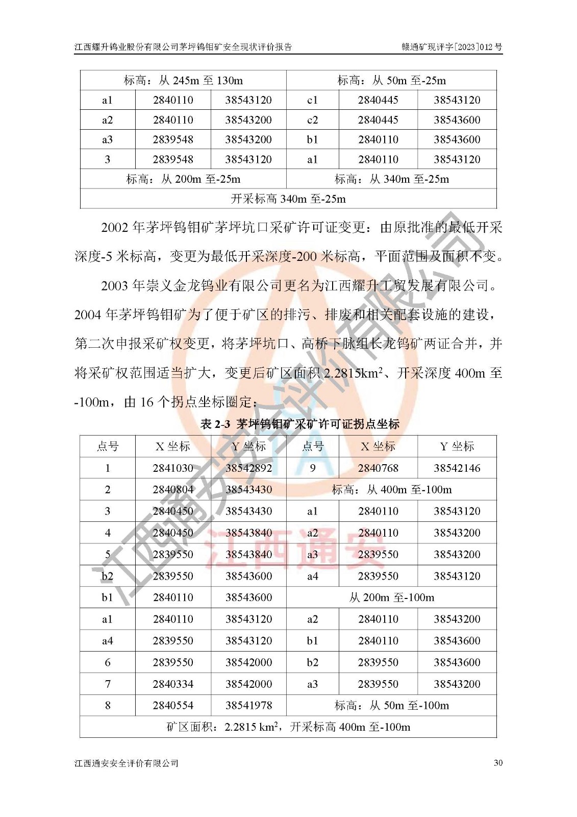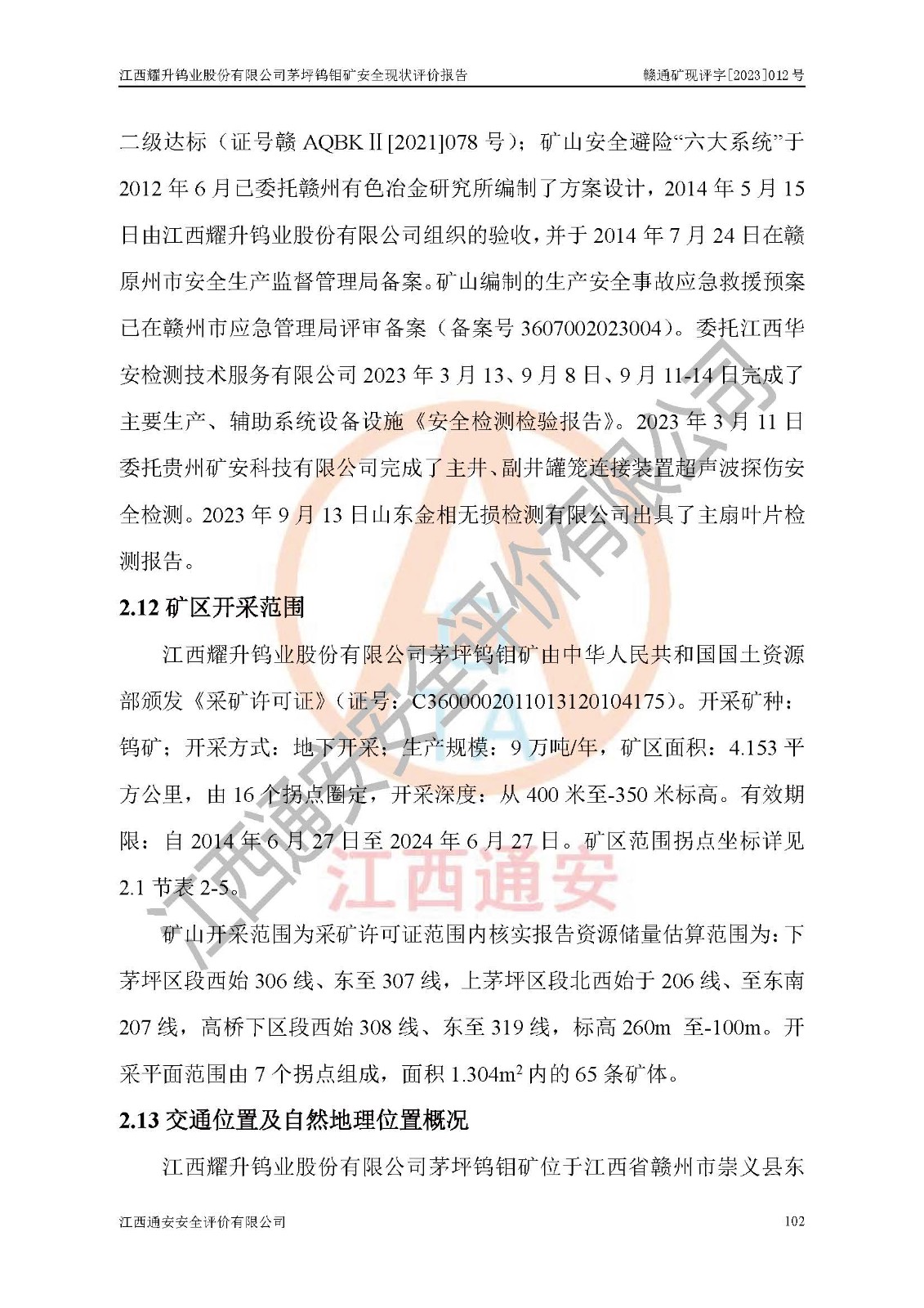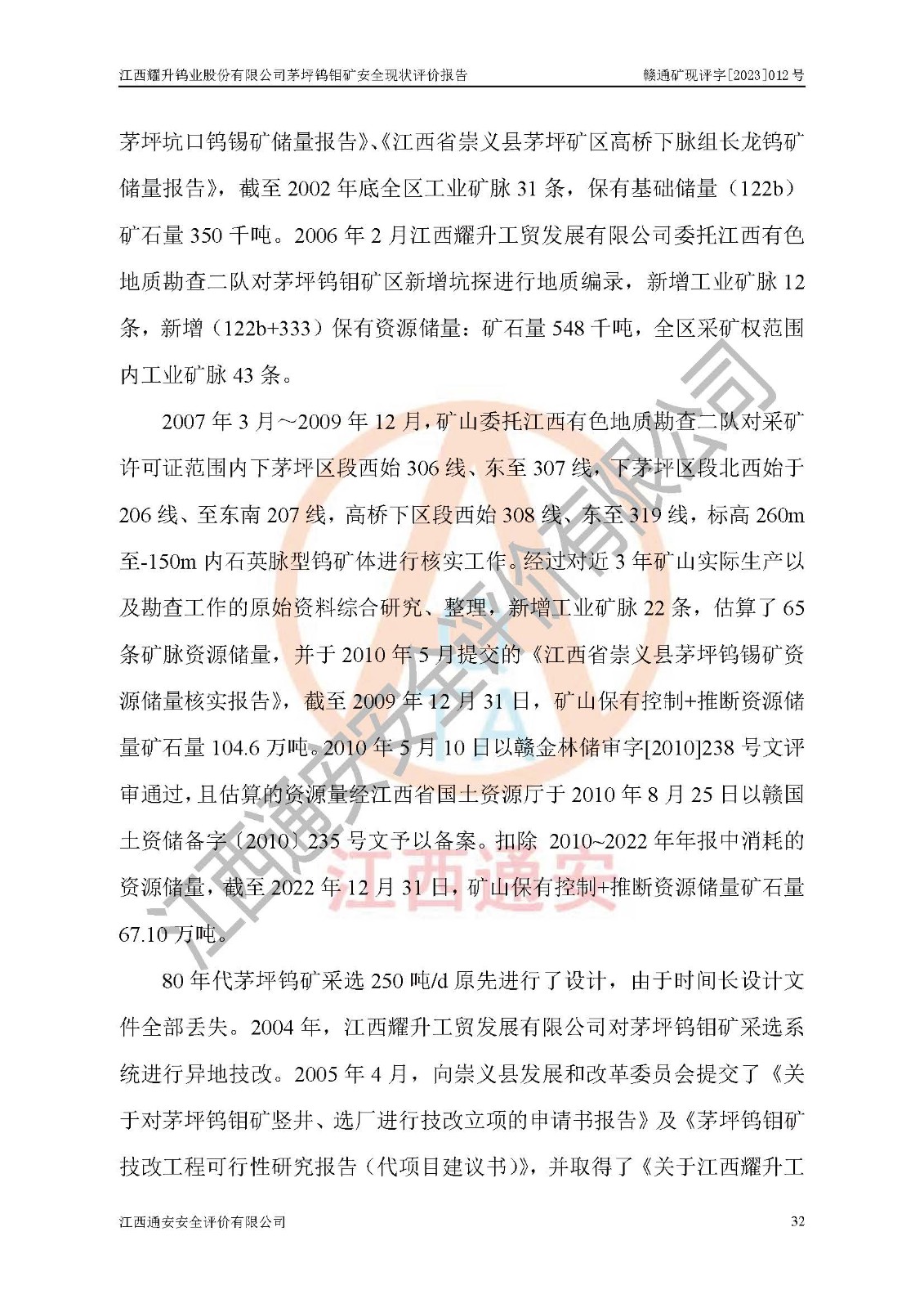 報告編號:贛通礦現(xiàn)評字[2023]012號