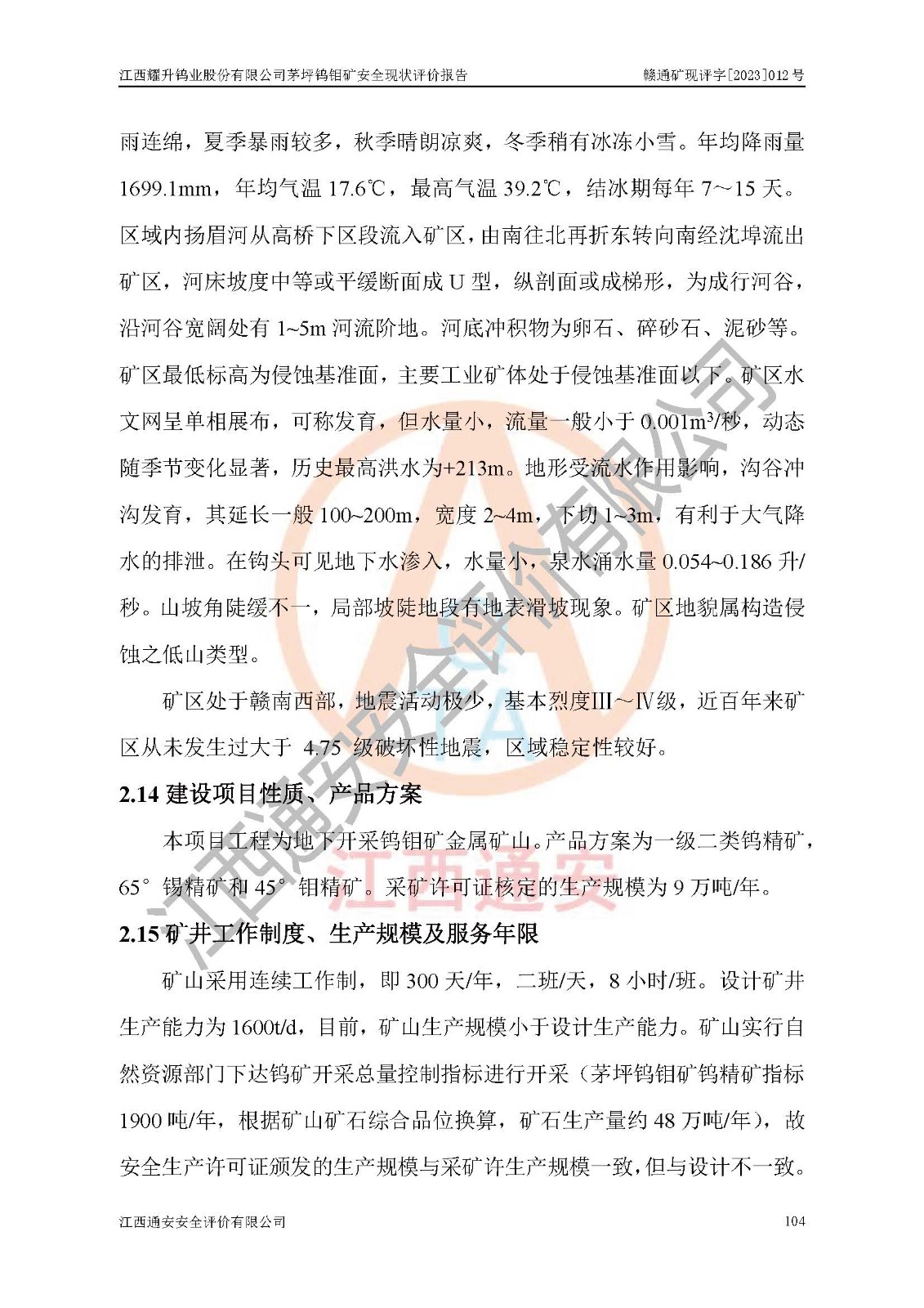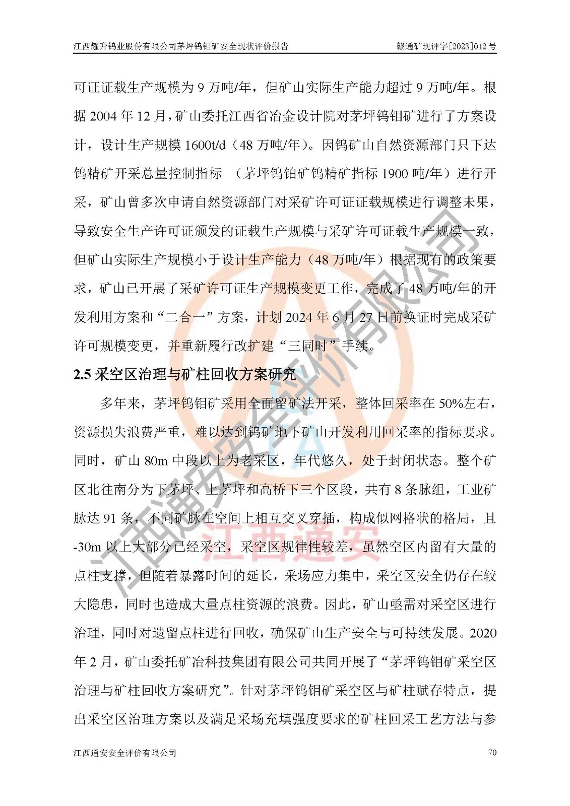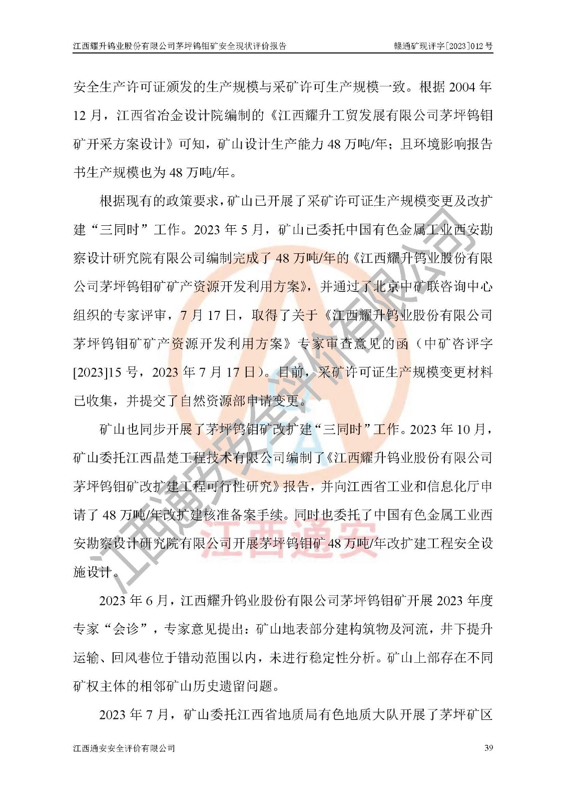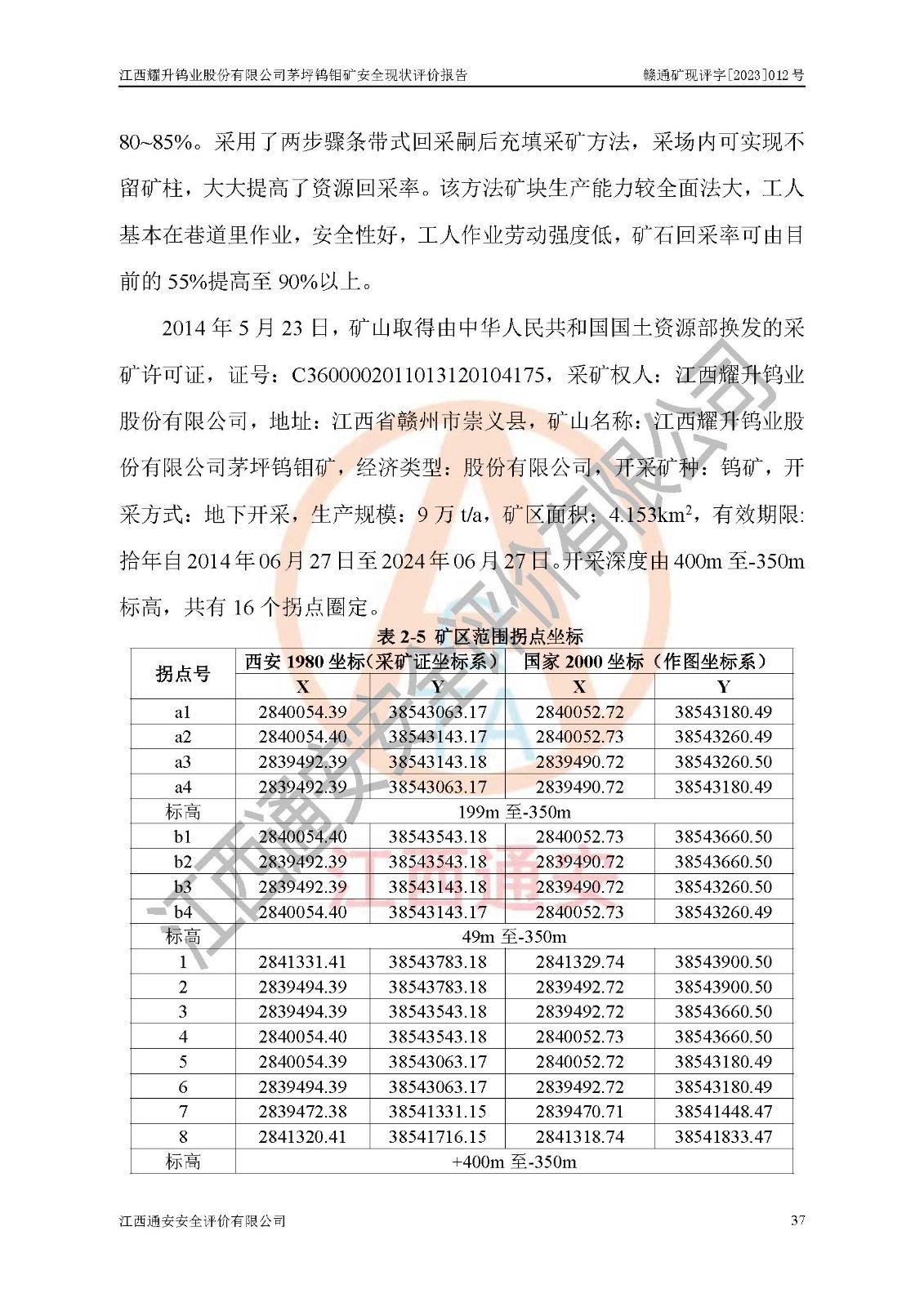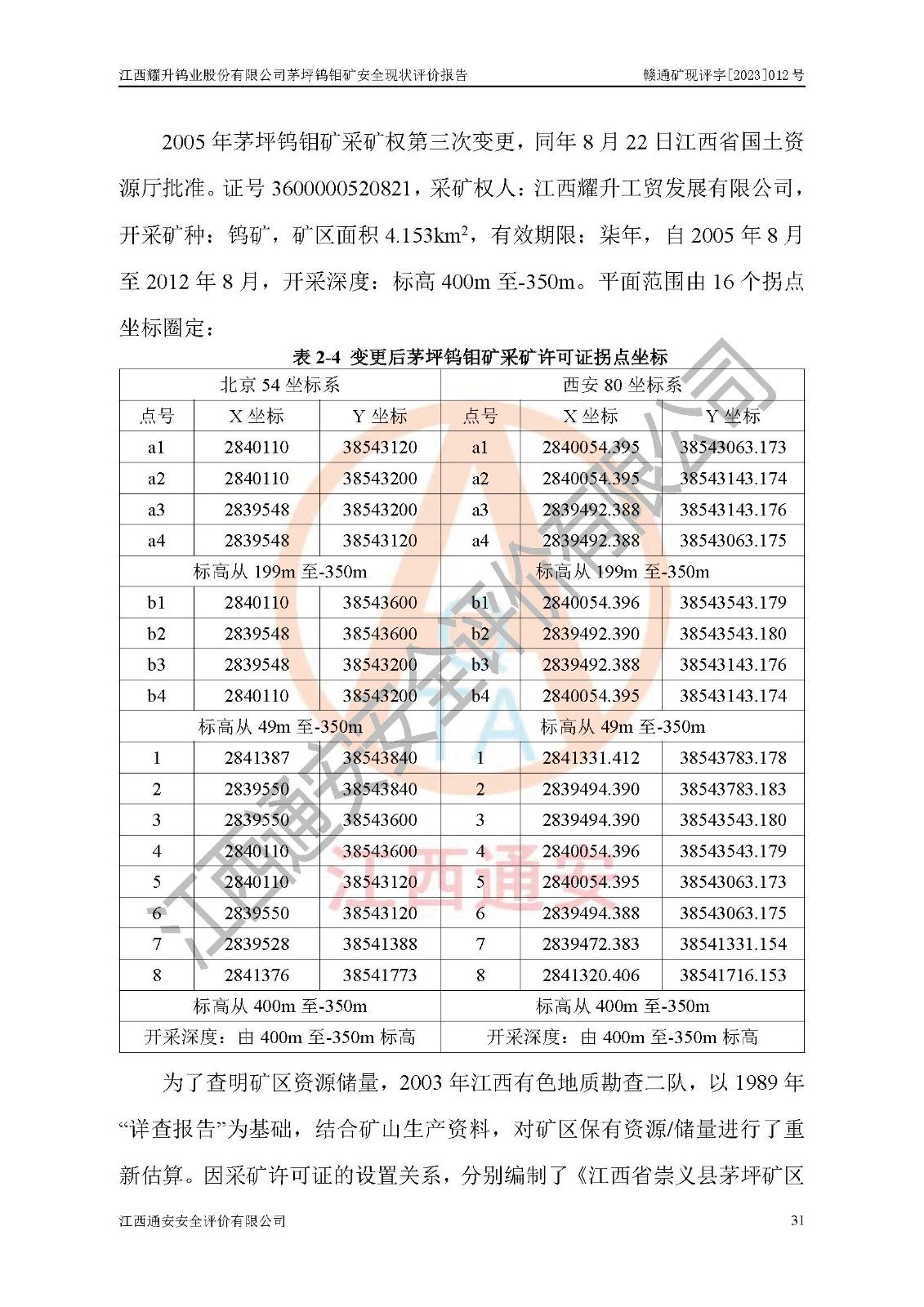 報告編號:贛通礦現(xiàn)評字[2023]012號