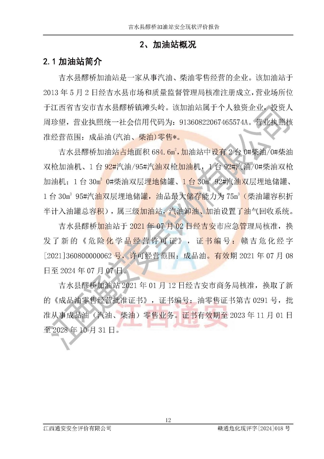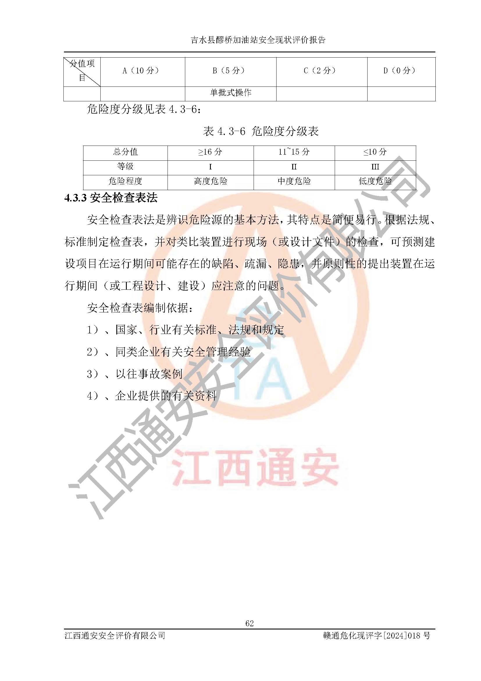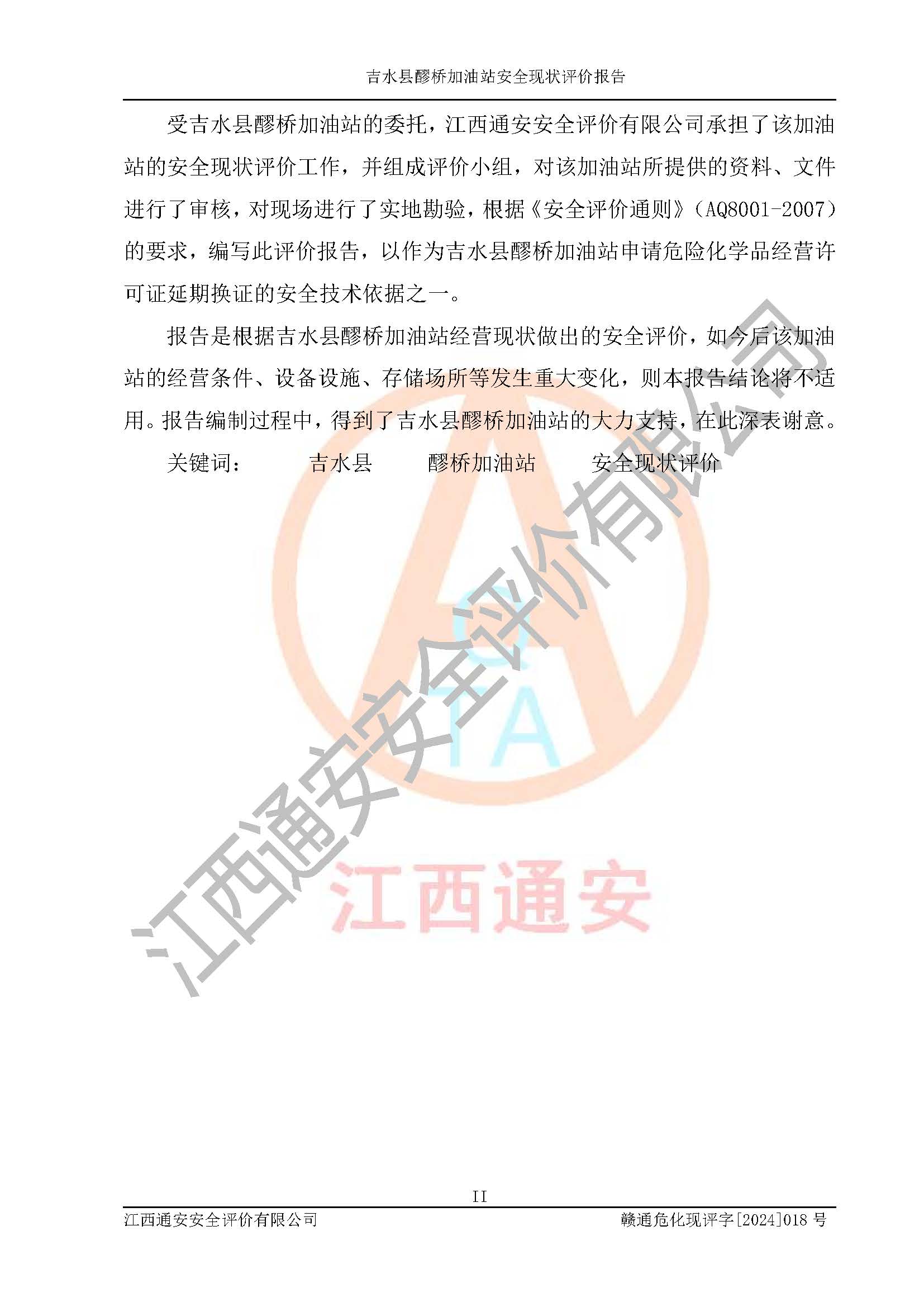 項(xiàng)目名稱 | 吉水縣醪橋加油站安全現(xiàn)狀評價(jià)報(bào)告 | ||||