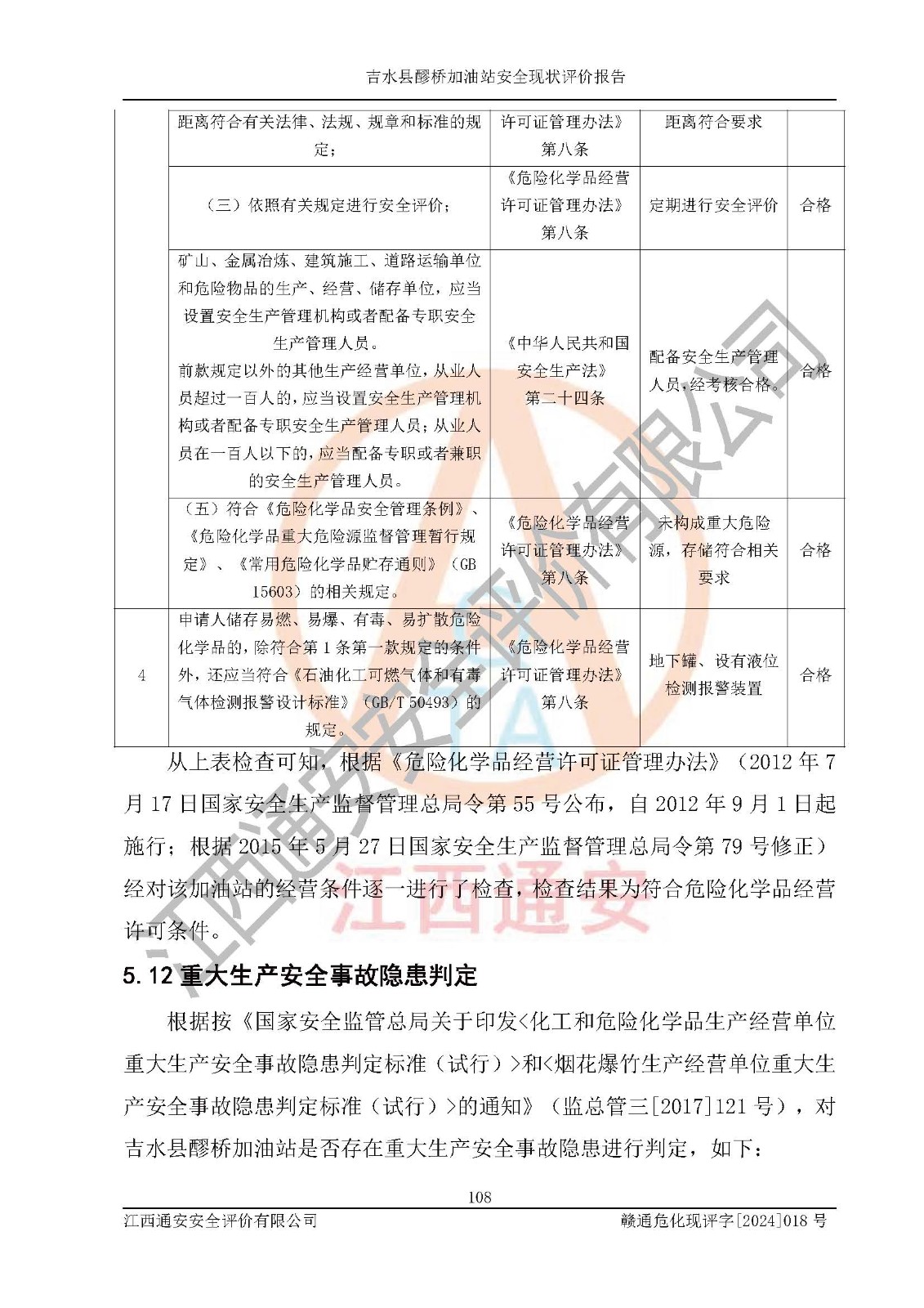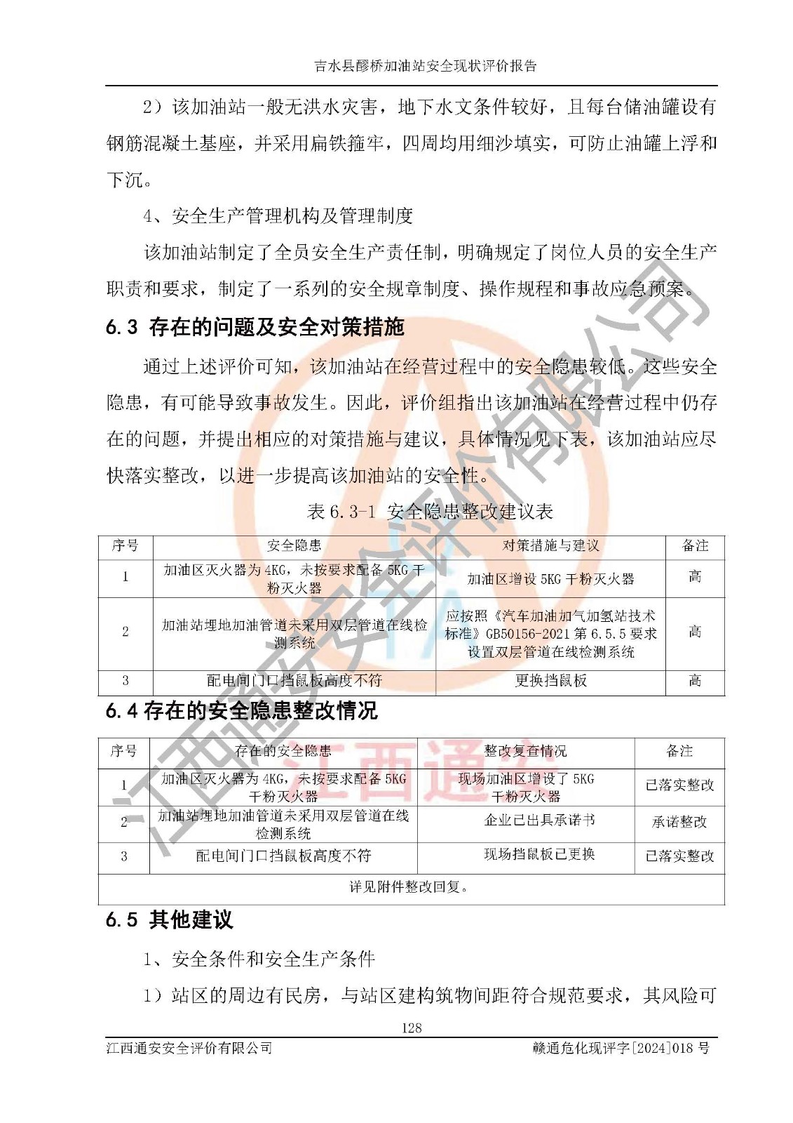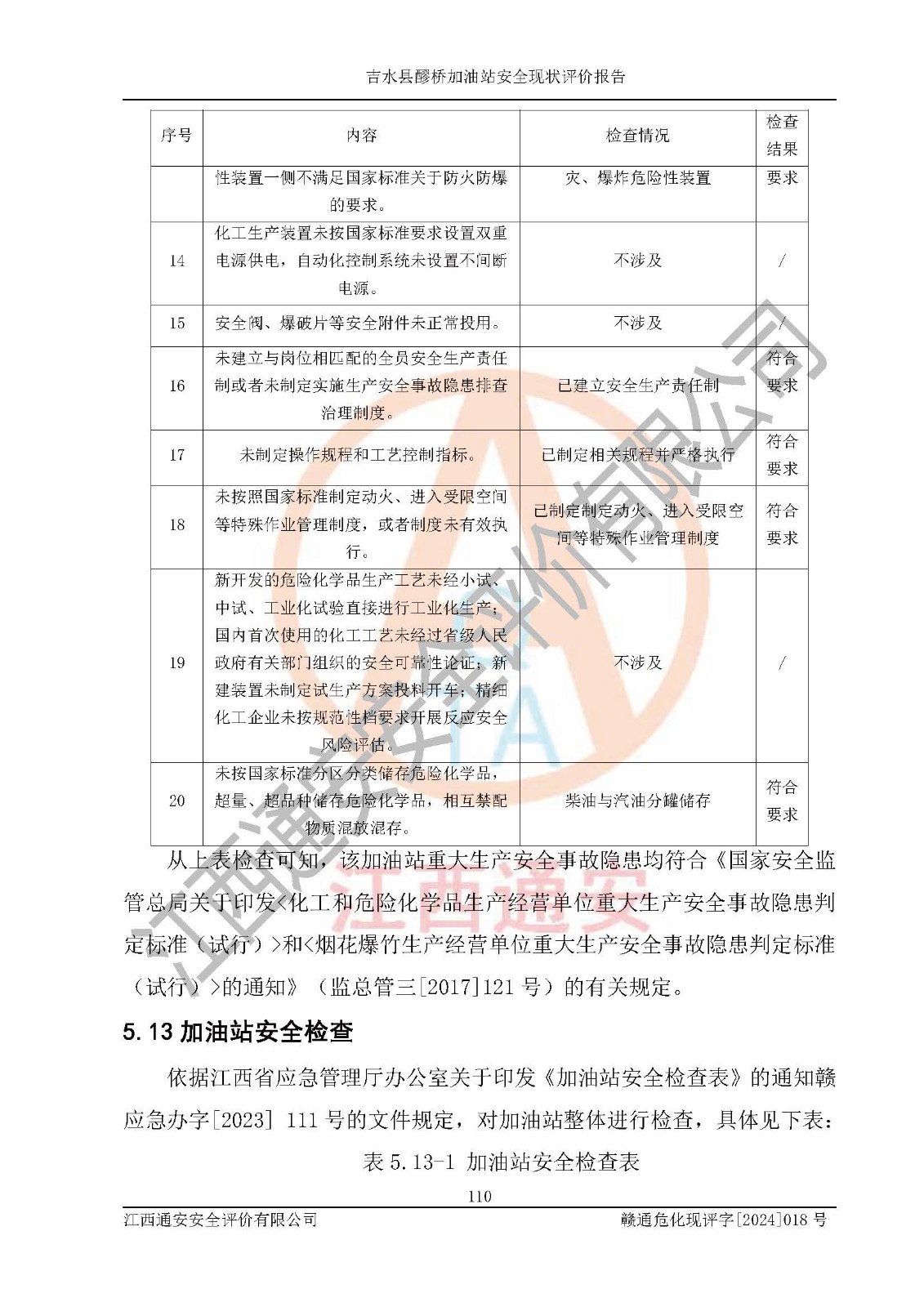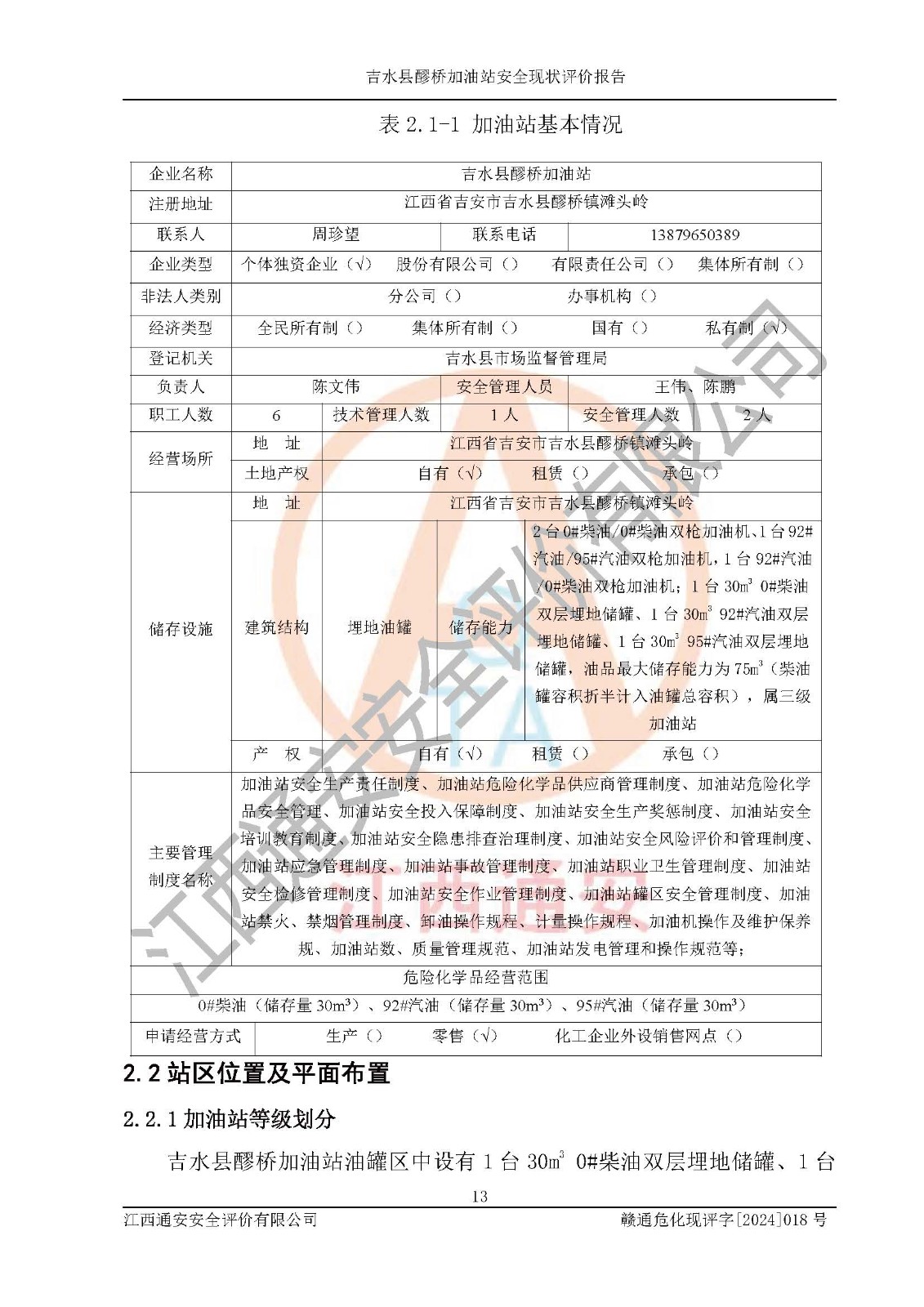 項(xiàng)目名稱 | 吉水縣醪橋加油站安全現(xiàn)狀評價(jià)報(bào)告 | ||||