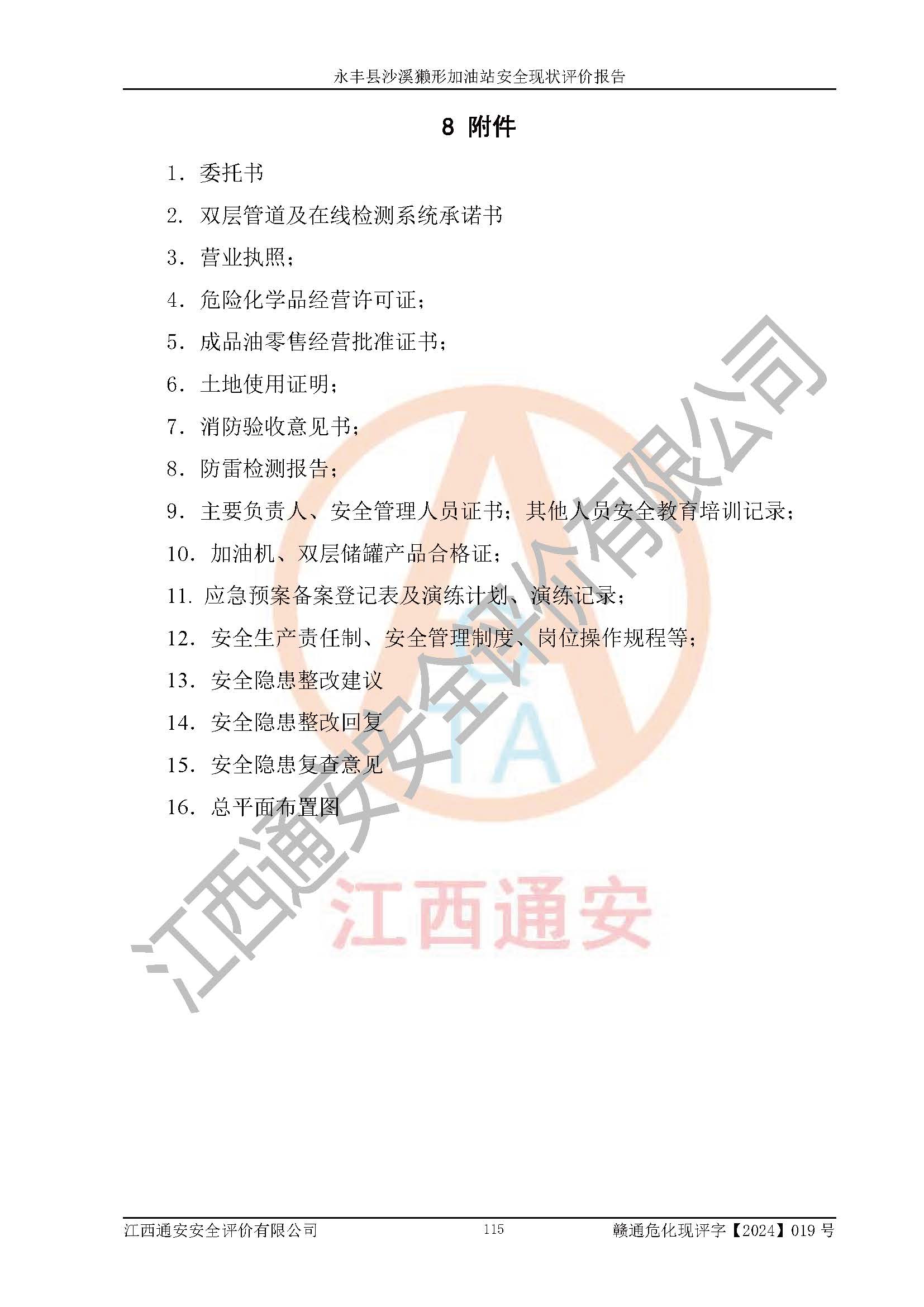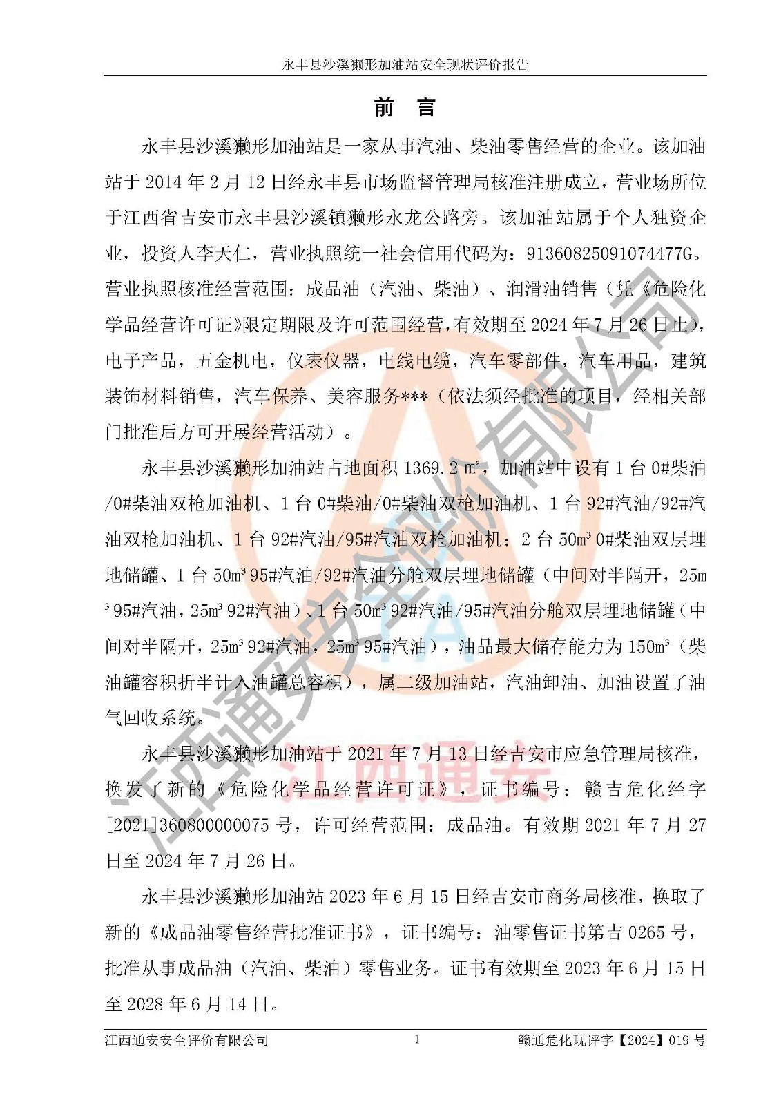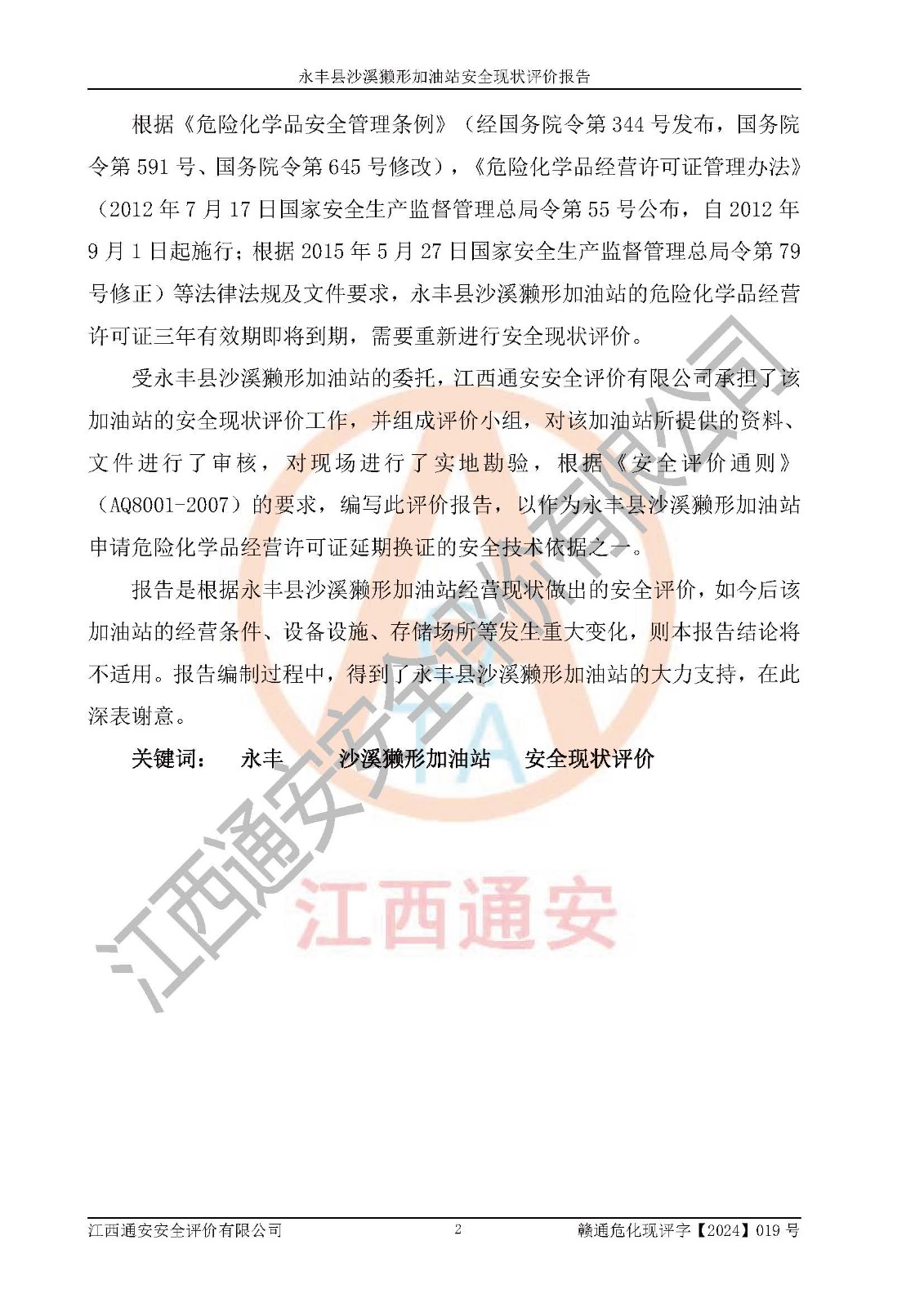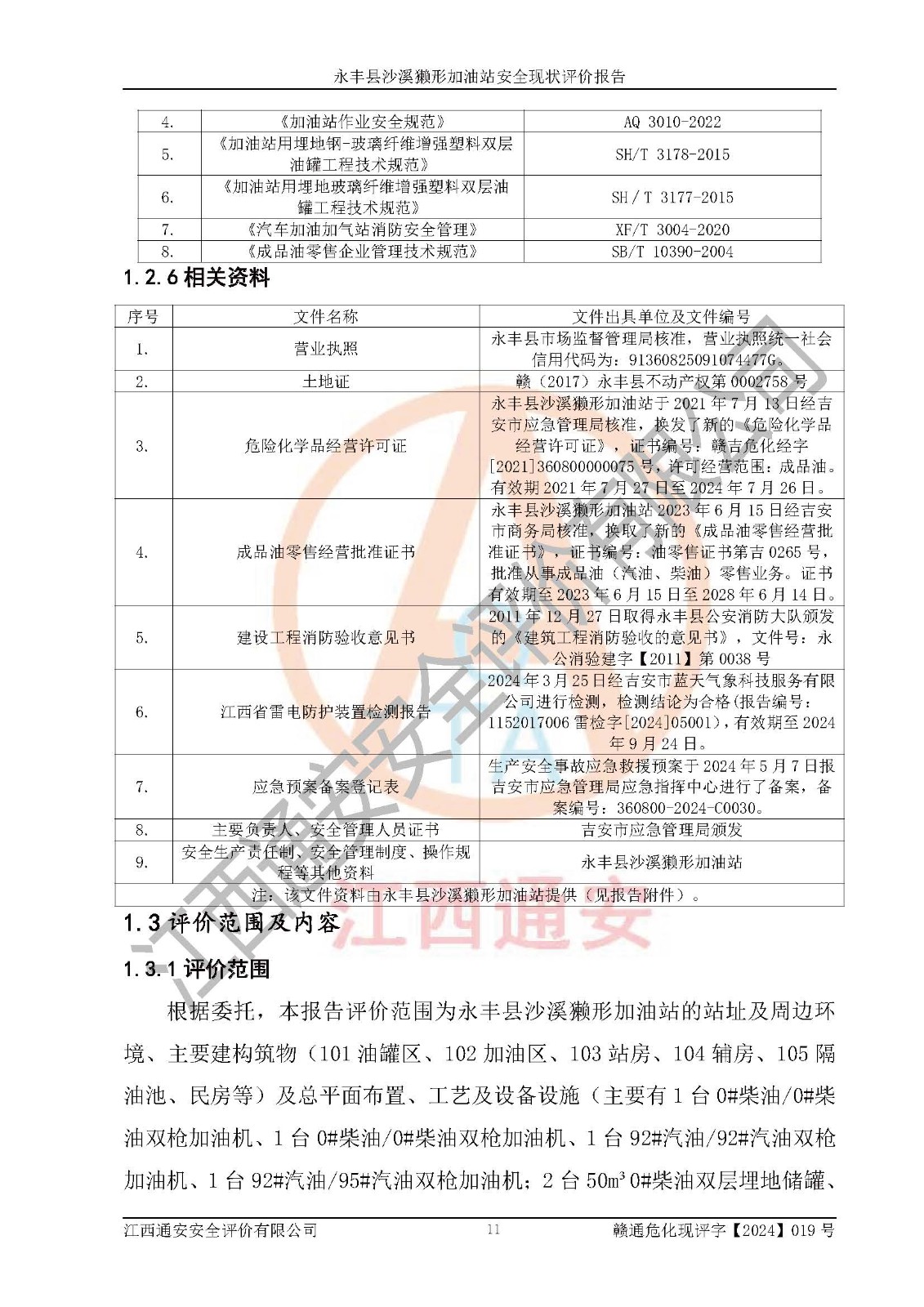 項目名稱 | 永豐縣沙溪獺形加油站安全現(xiàn)狀評價報告 | ||||