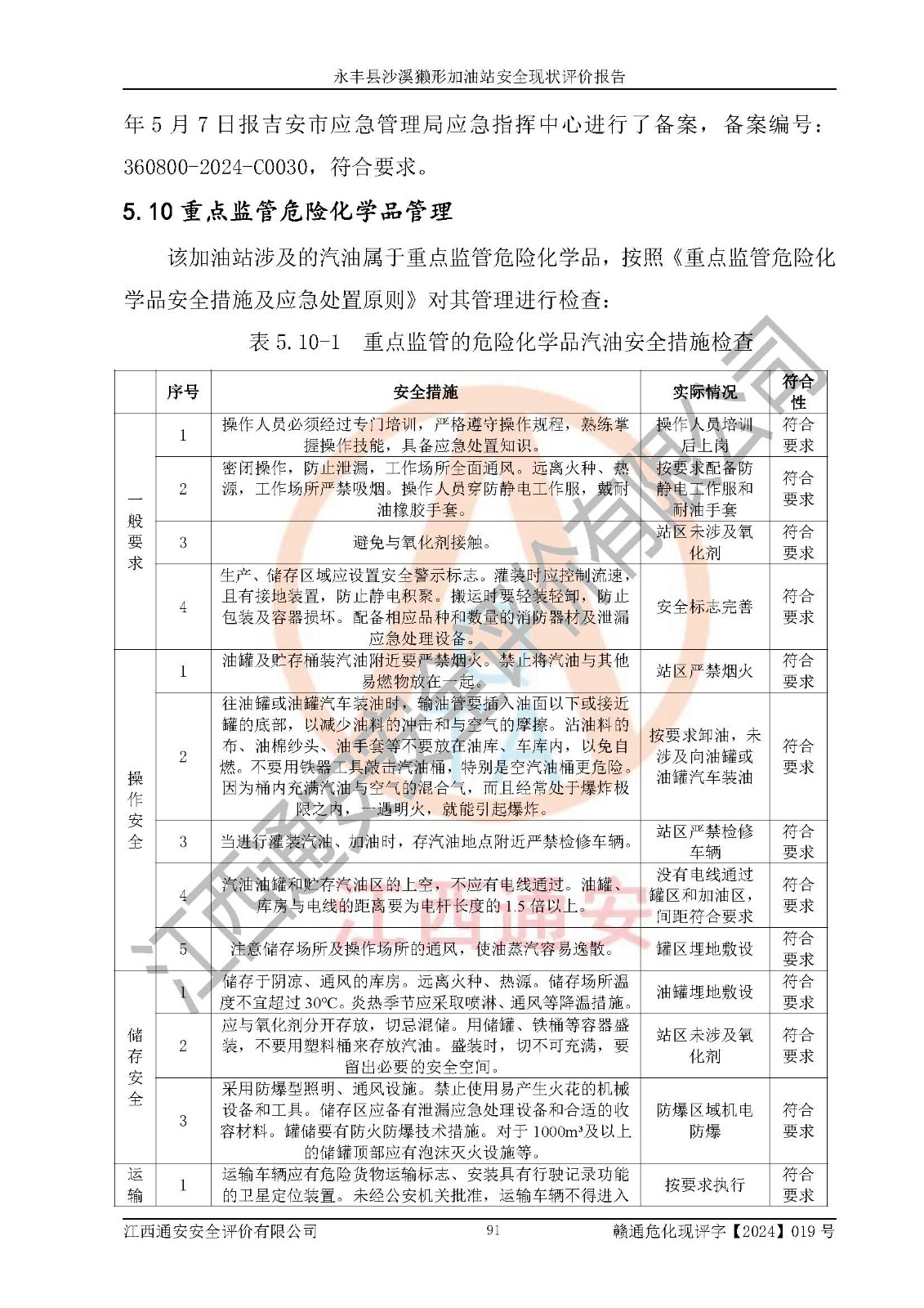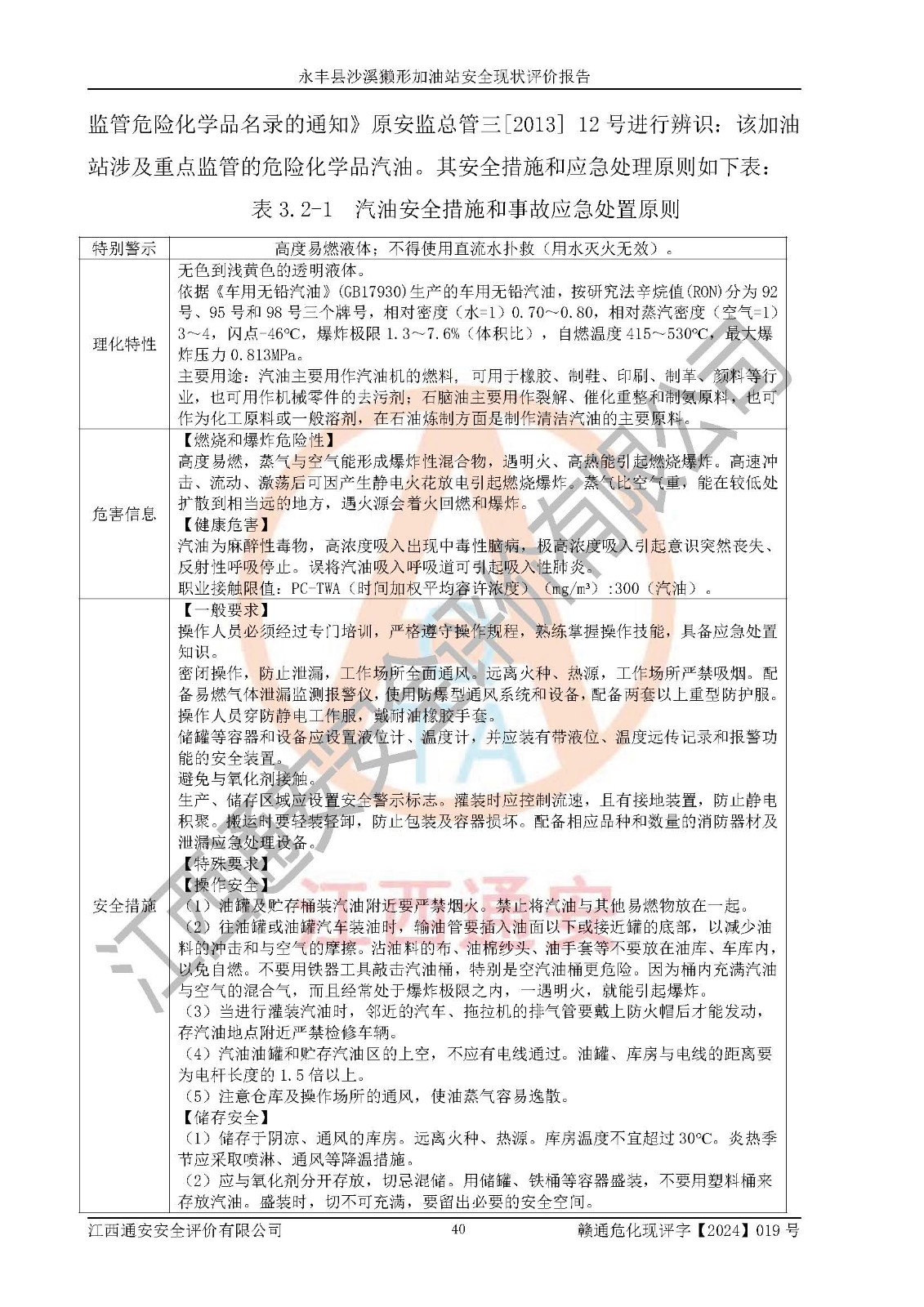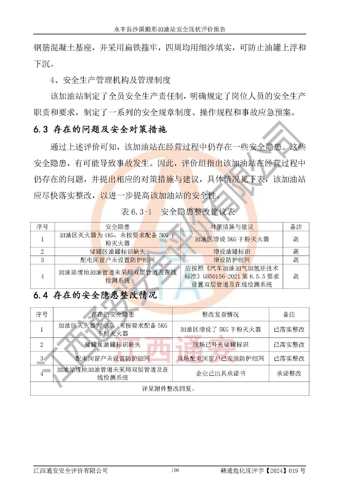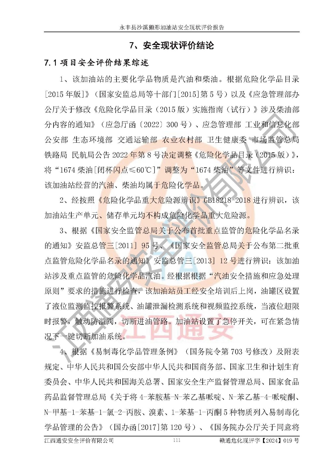 項目名稱 | 永豐縣沙溪獺形加油站安全現(xiàn)狀評價報告 | ||||