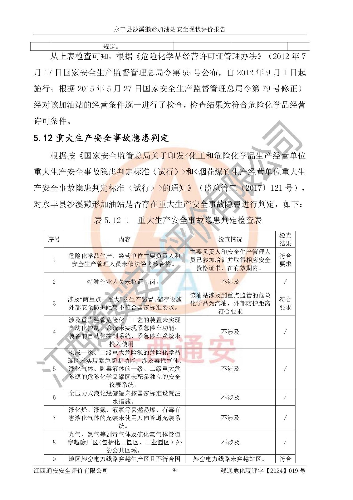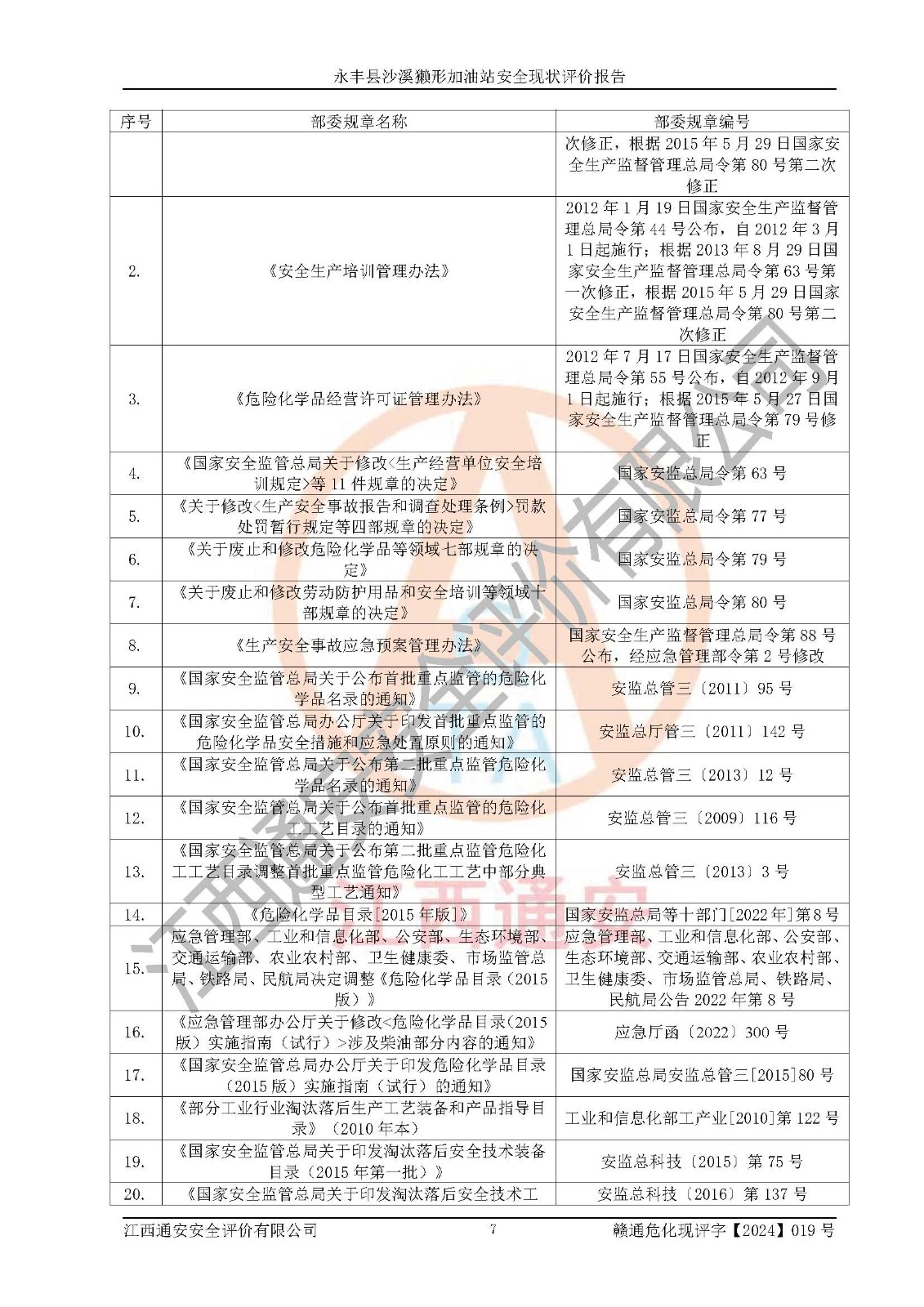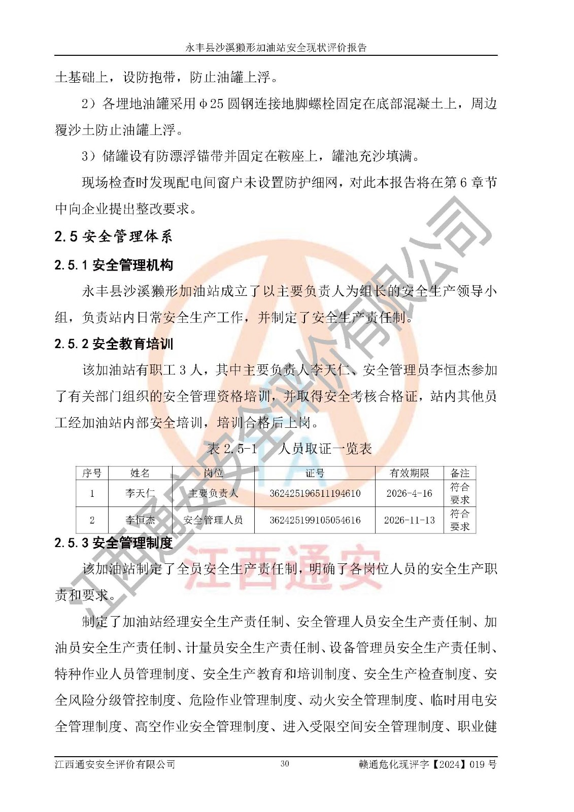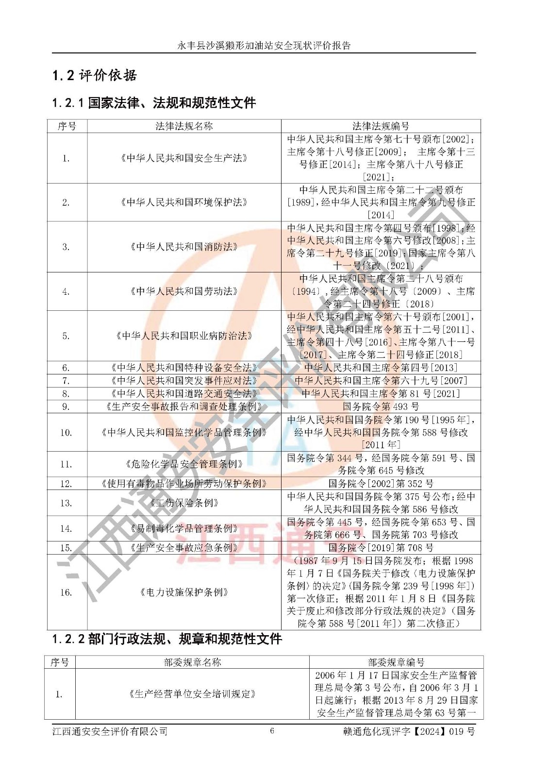 項目名稱 | 永豐縣沙溪獺形加油站安全現(xiàn)狀評價報告 | ||||