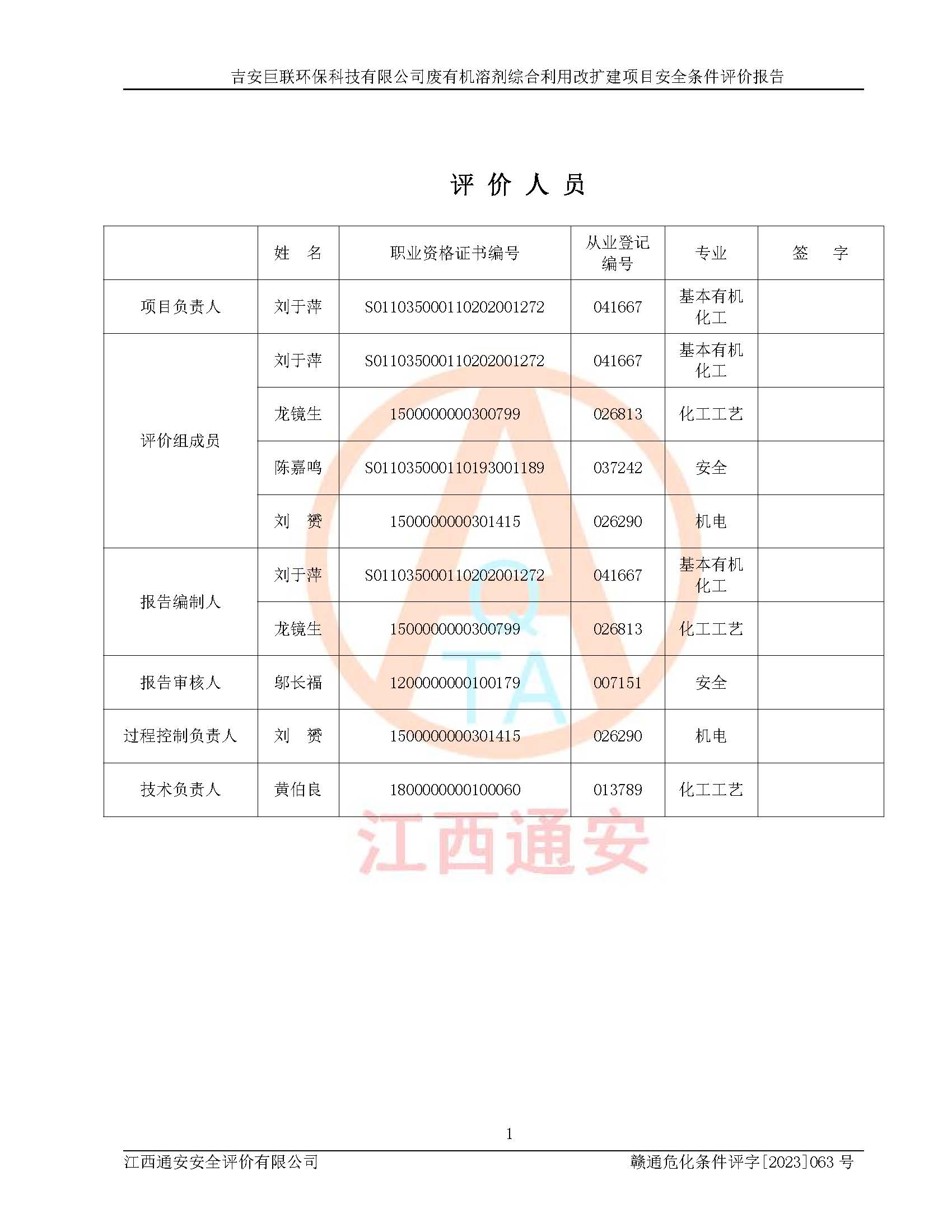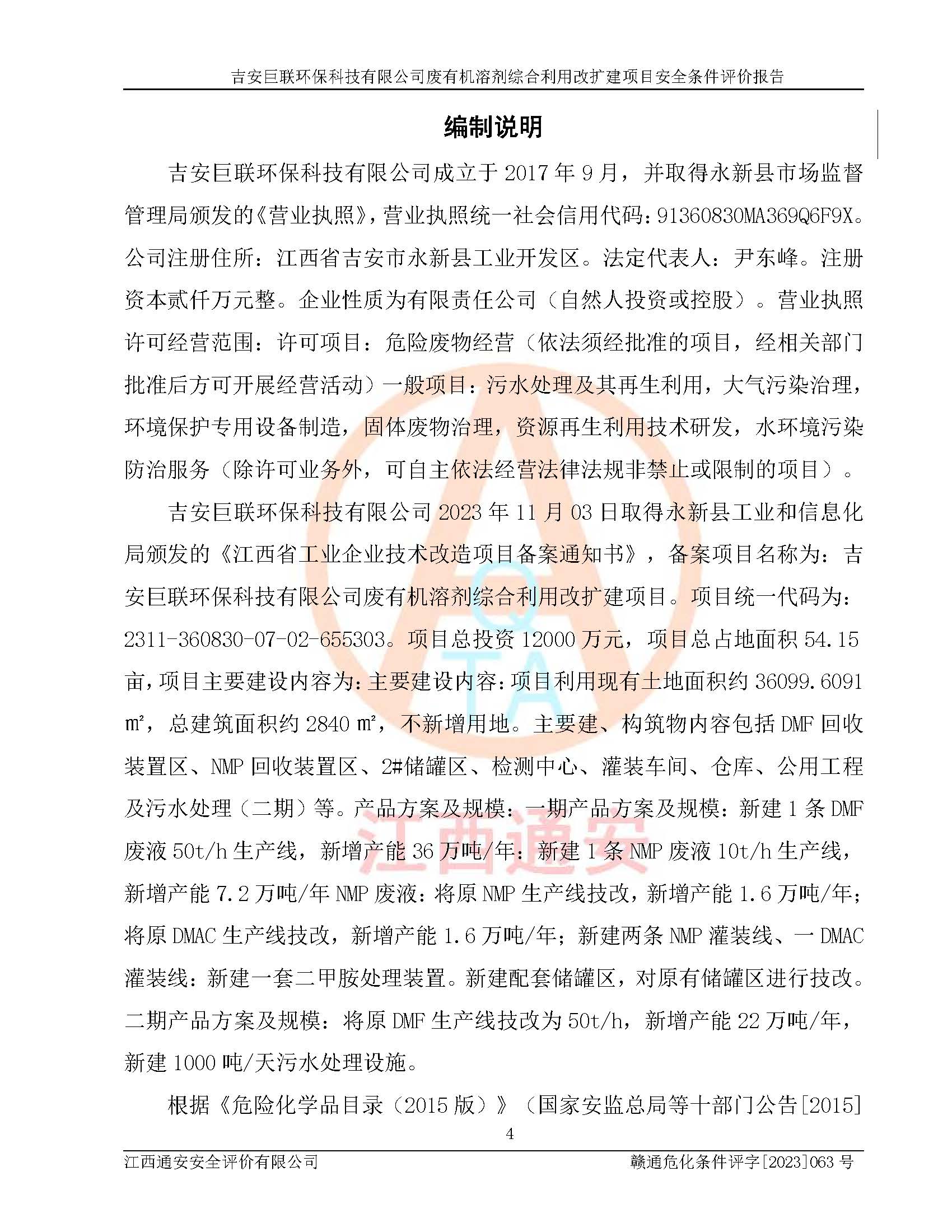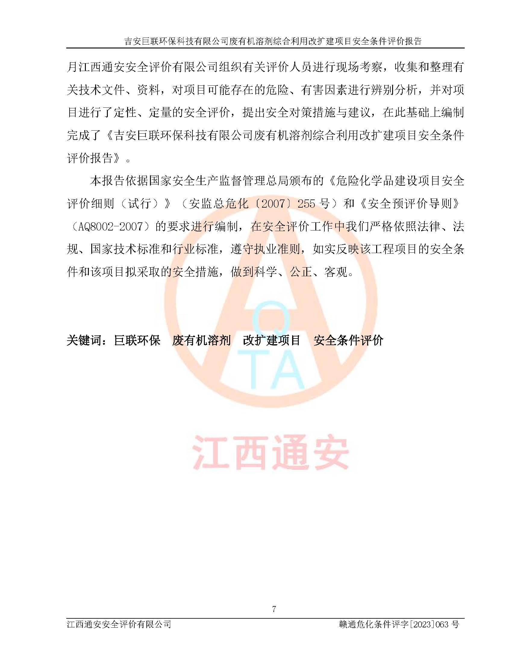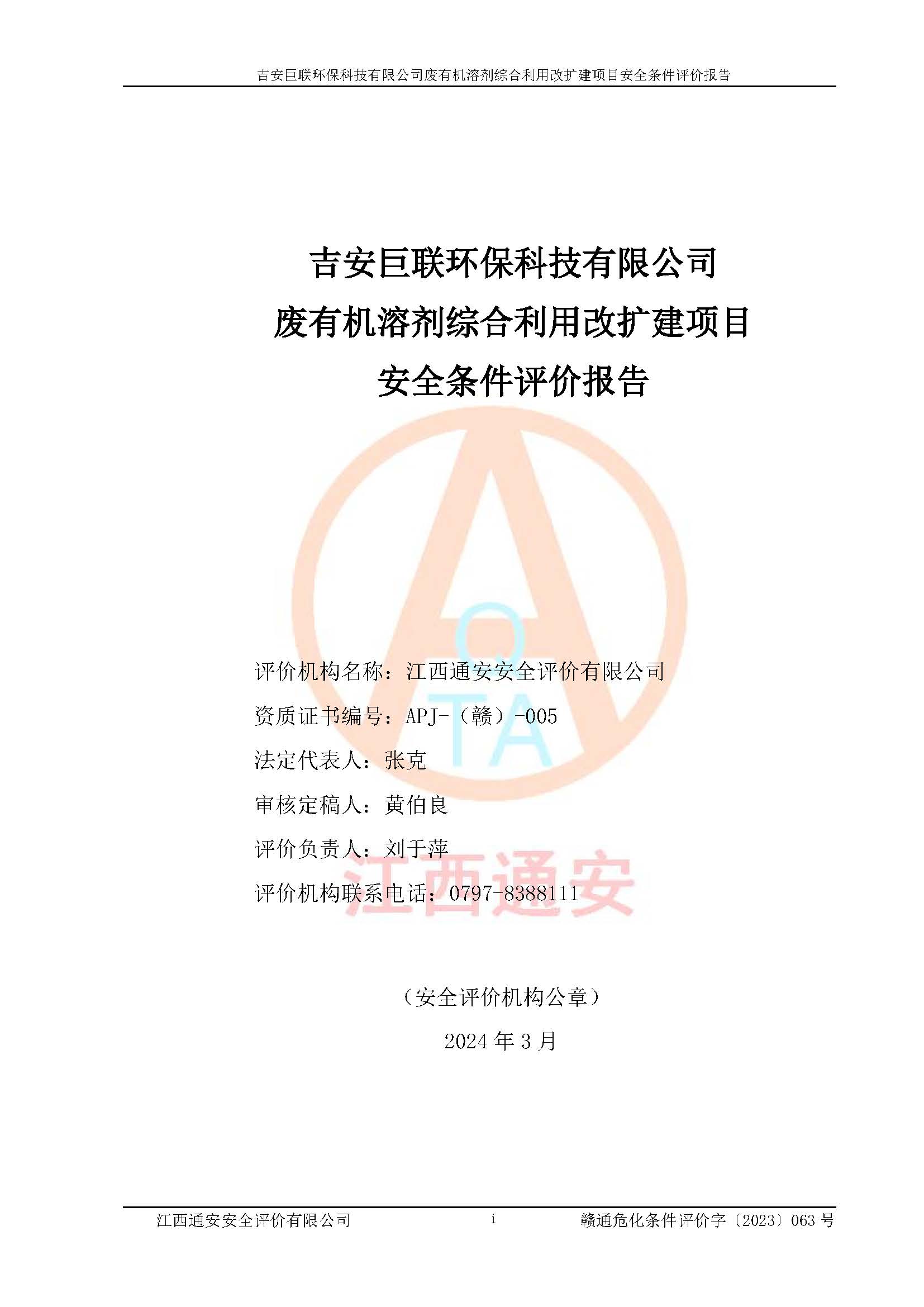 評(píng)價(jià)報(bào)告名稱 | 吉安巨聯(lián)**科技有限公司廢有機(jī)溶劑綜合利用改擴(kuò)建項(xiàng)目安全條件評(píng)價(jià)報(bào)告 | |||