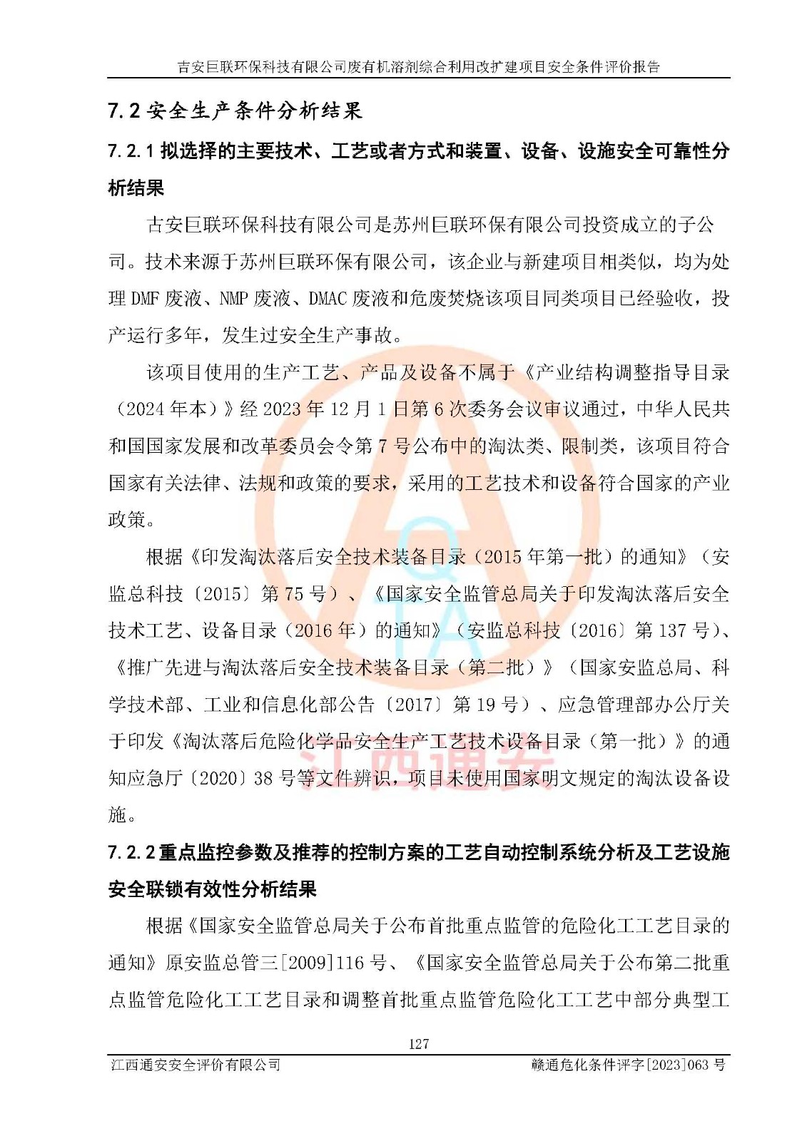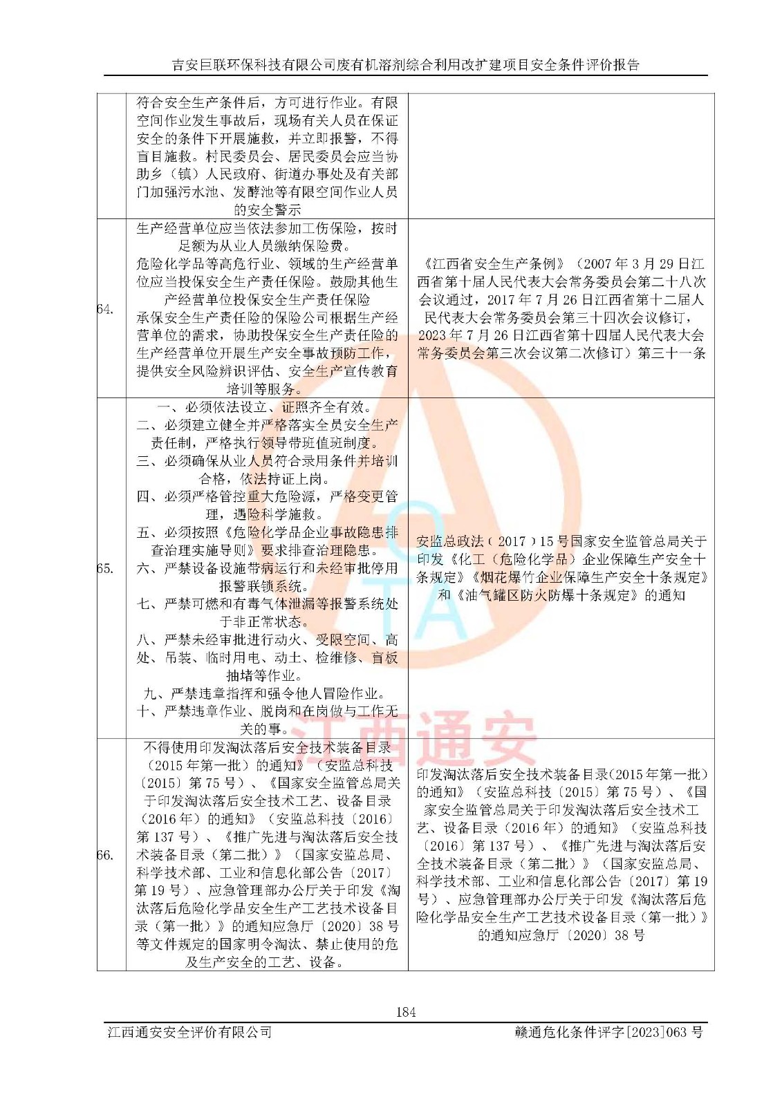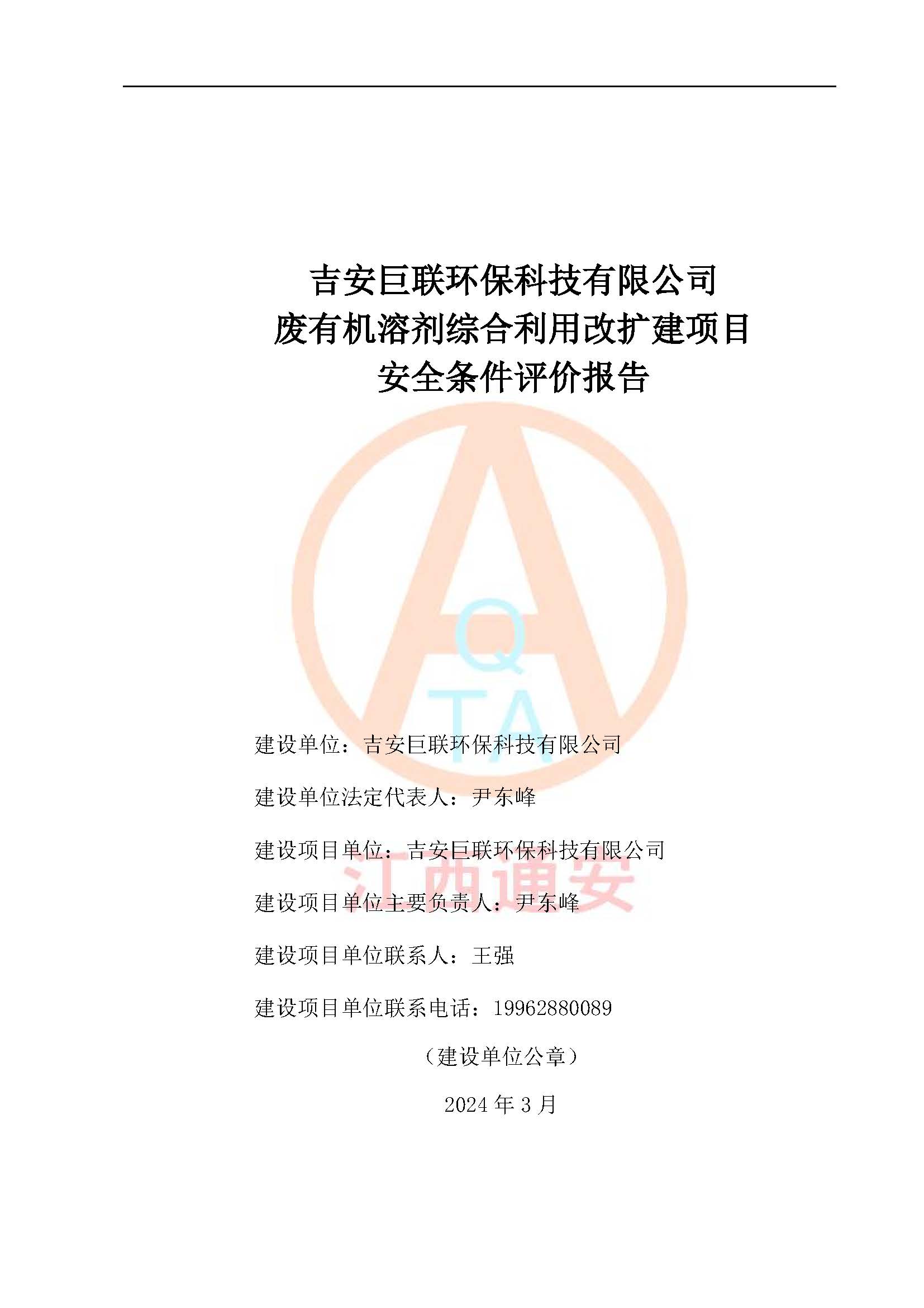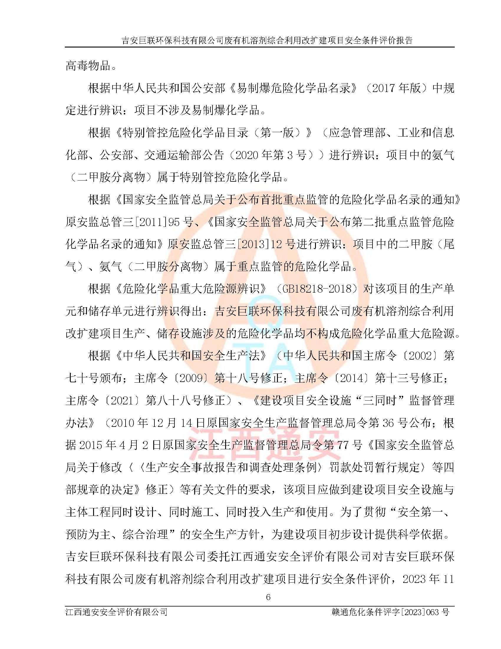 評(píng)價(jià)報(bào)告名稱 | 吉安巨聯(lián)**科技有限公司廢有機(jī)溶劑綜合利用改擴(kuò)建項(xiàng)目安全條件評(píng)價(jià)報(bào)告 | |||